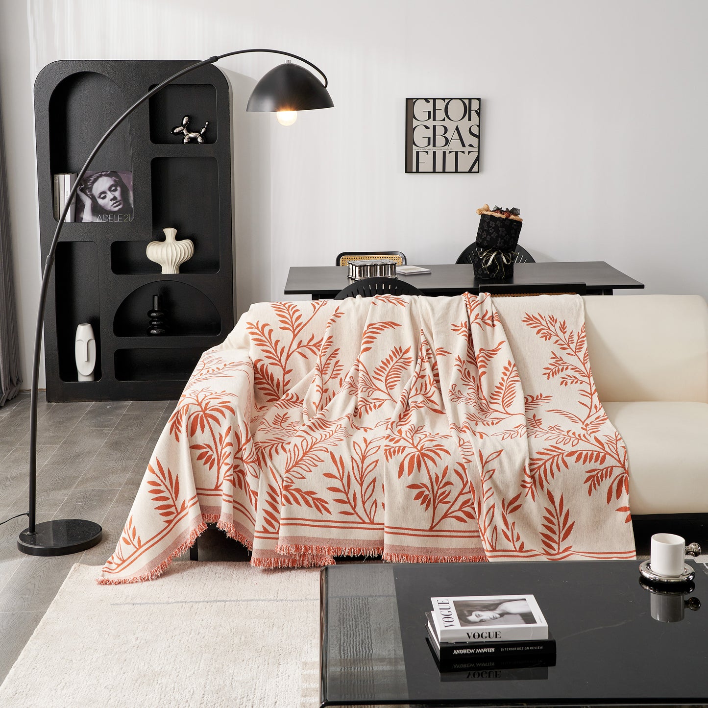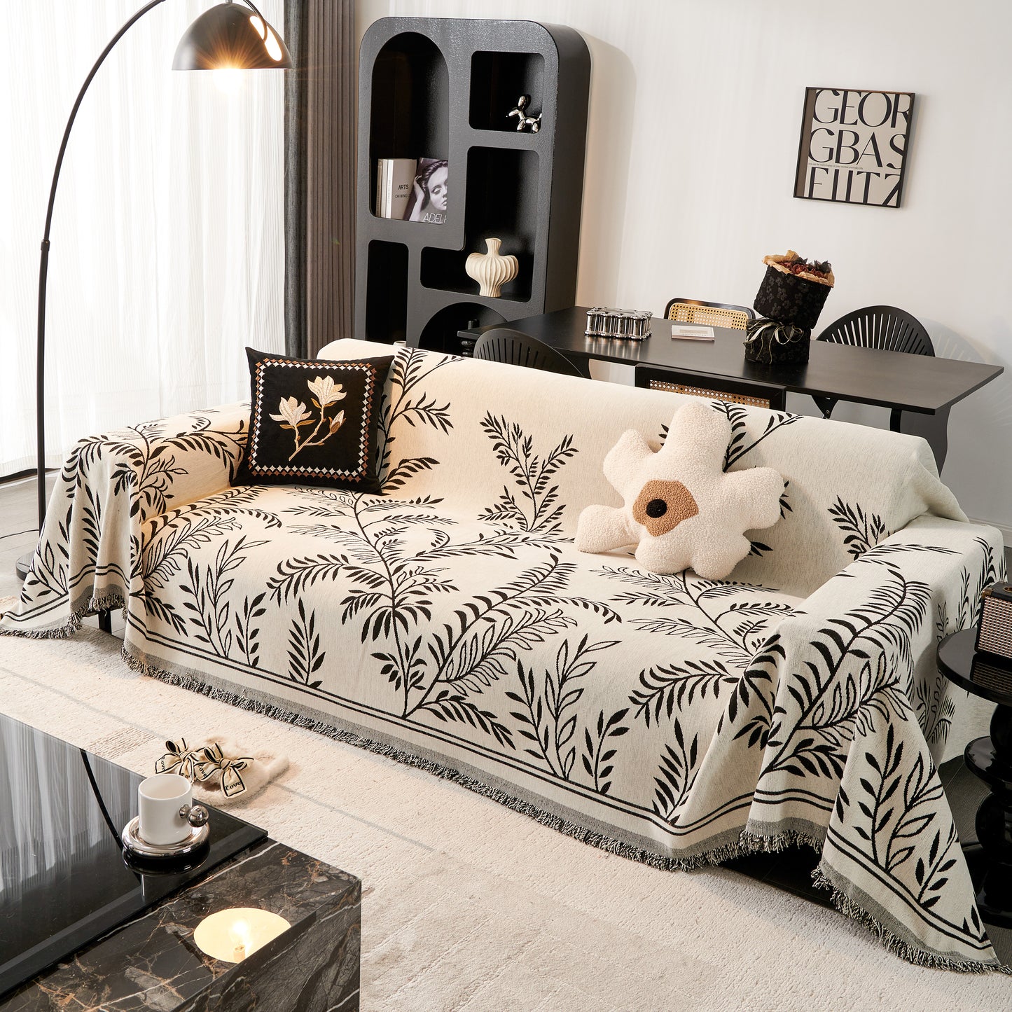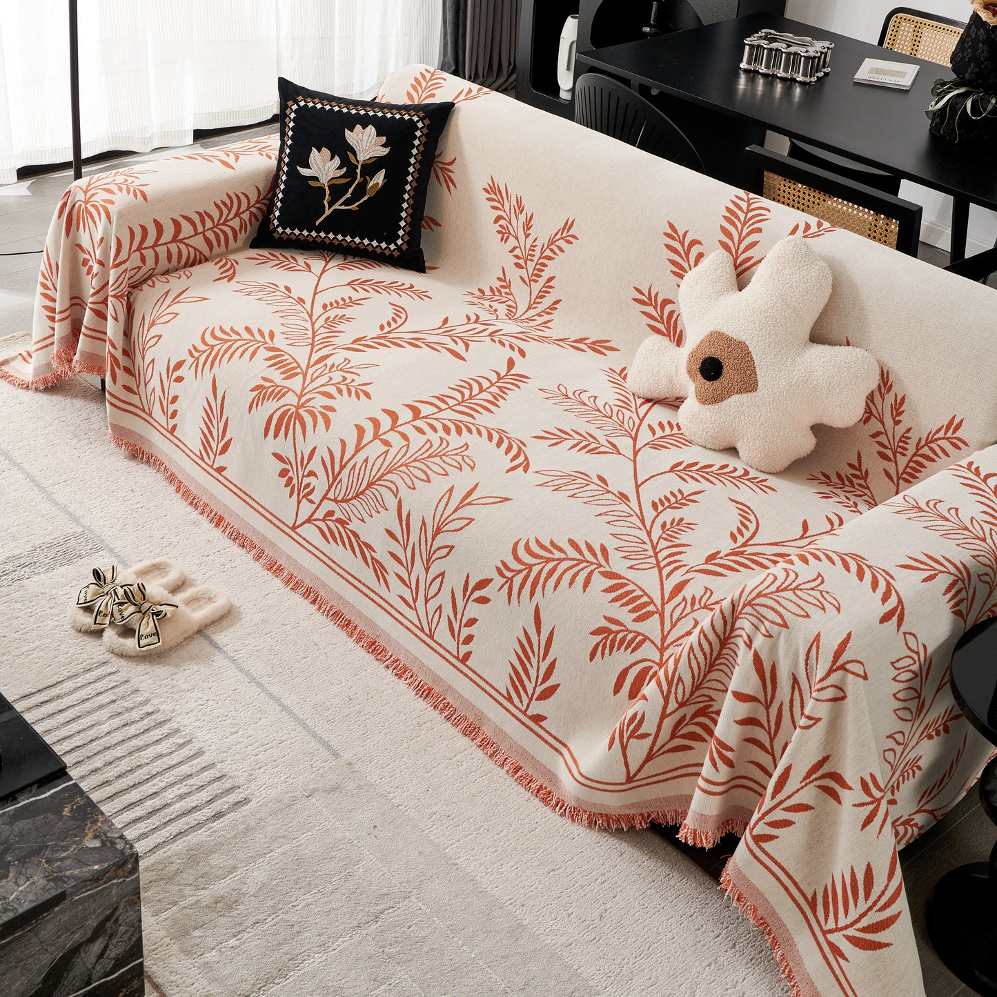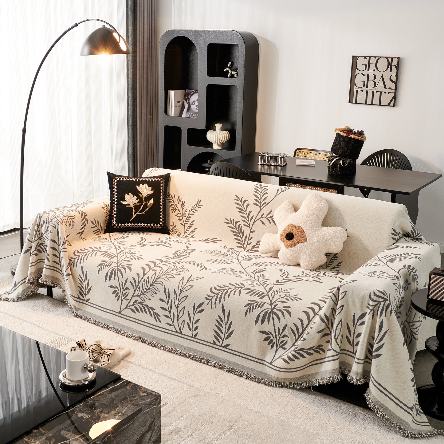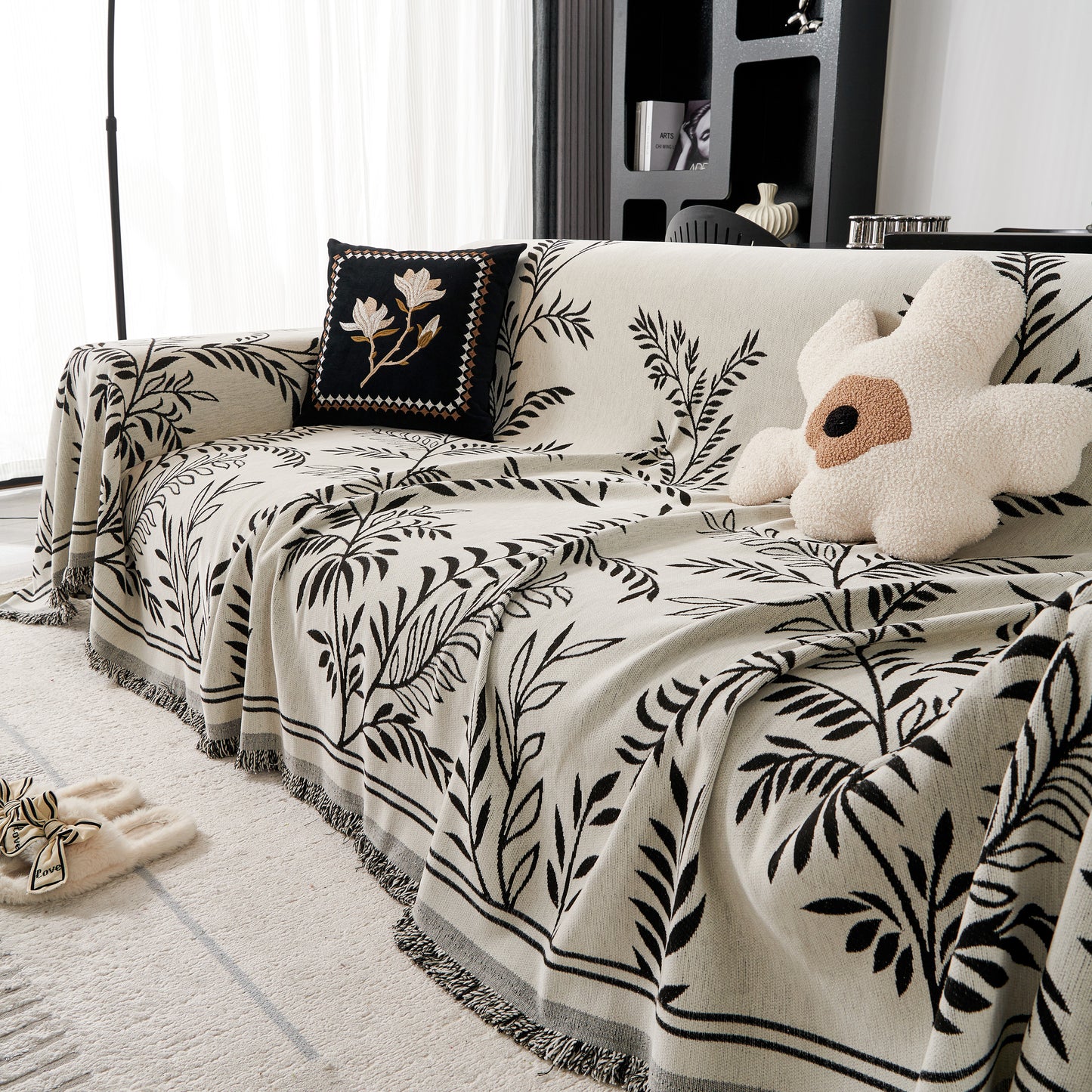 Modern Minimalist Chenille Willow Leaf Pattern Couch Cover Blanket, Luxurious Blankets for The Sofa