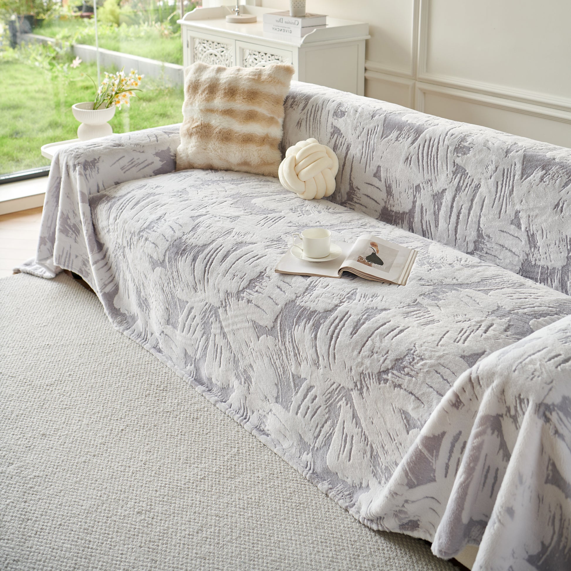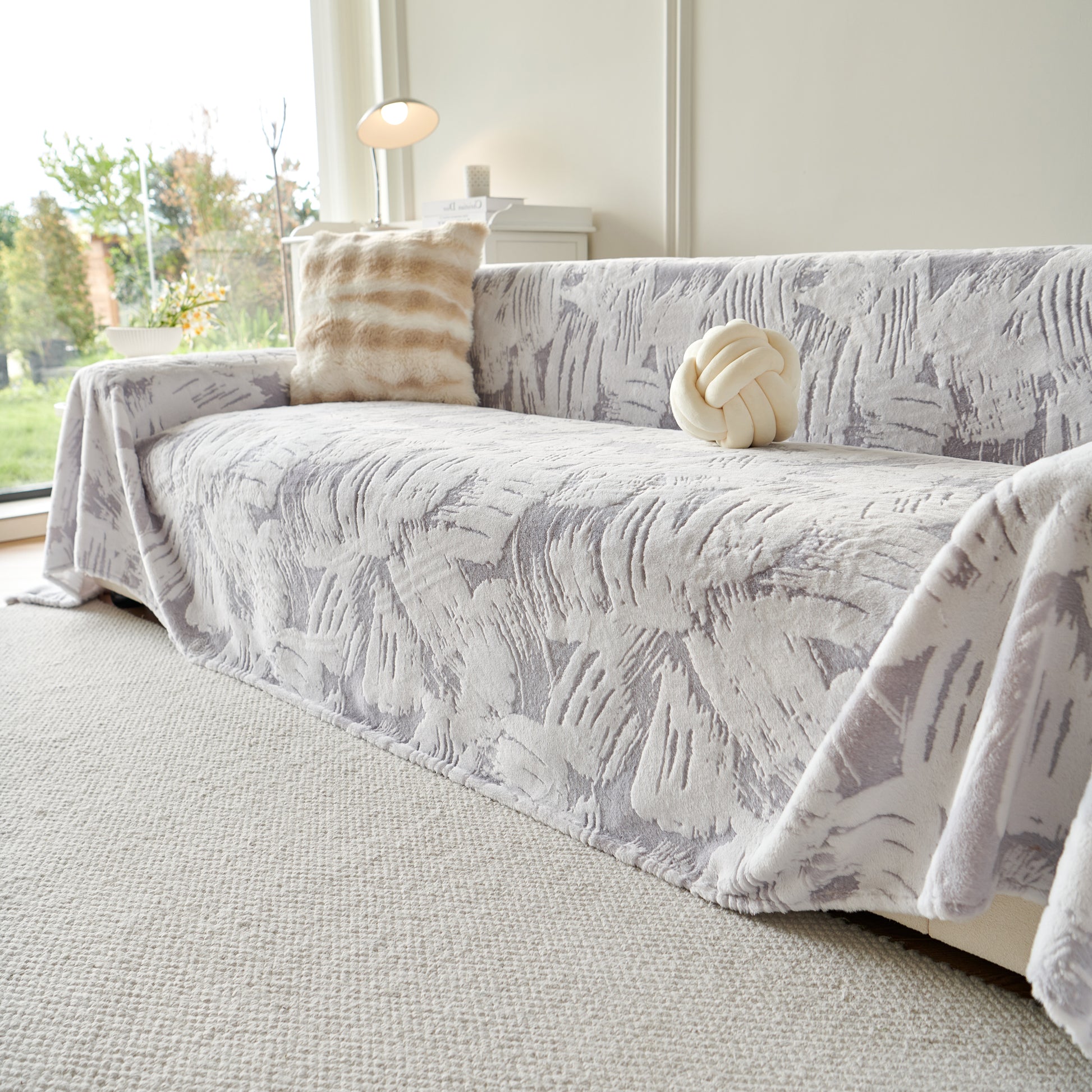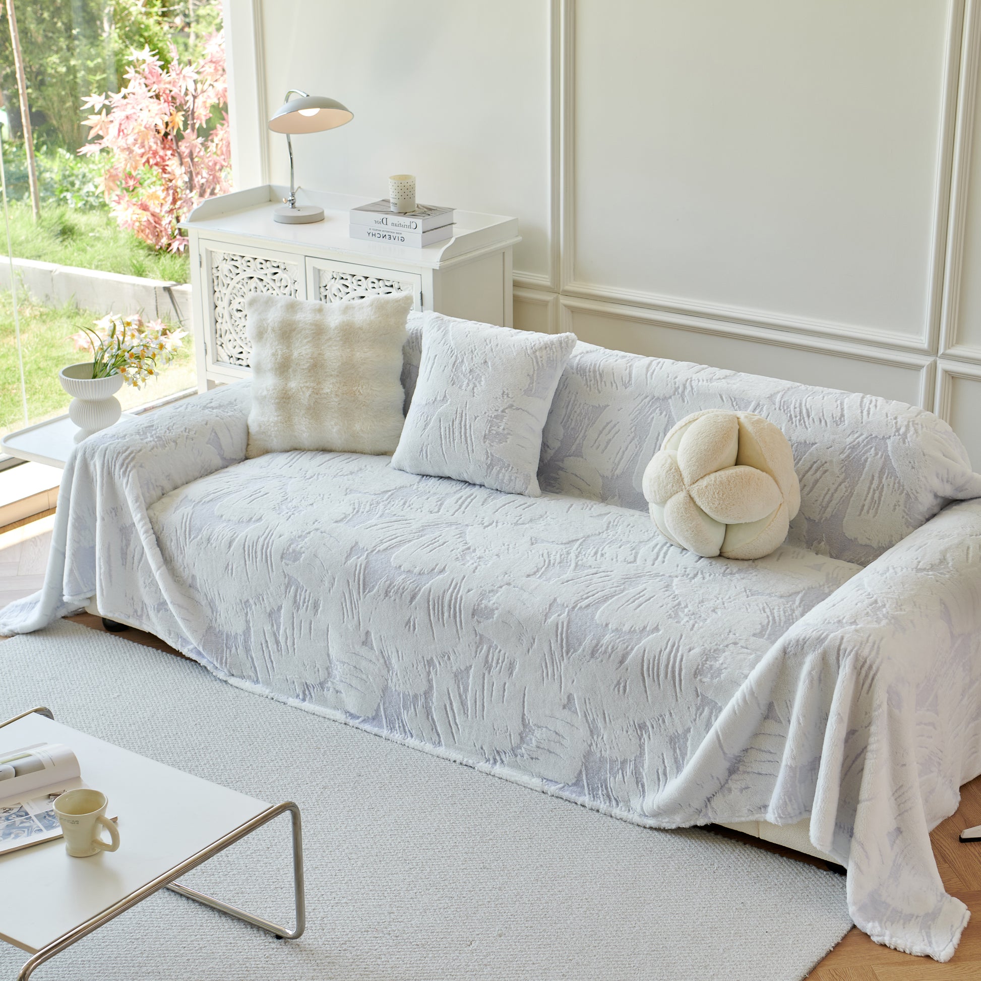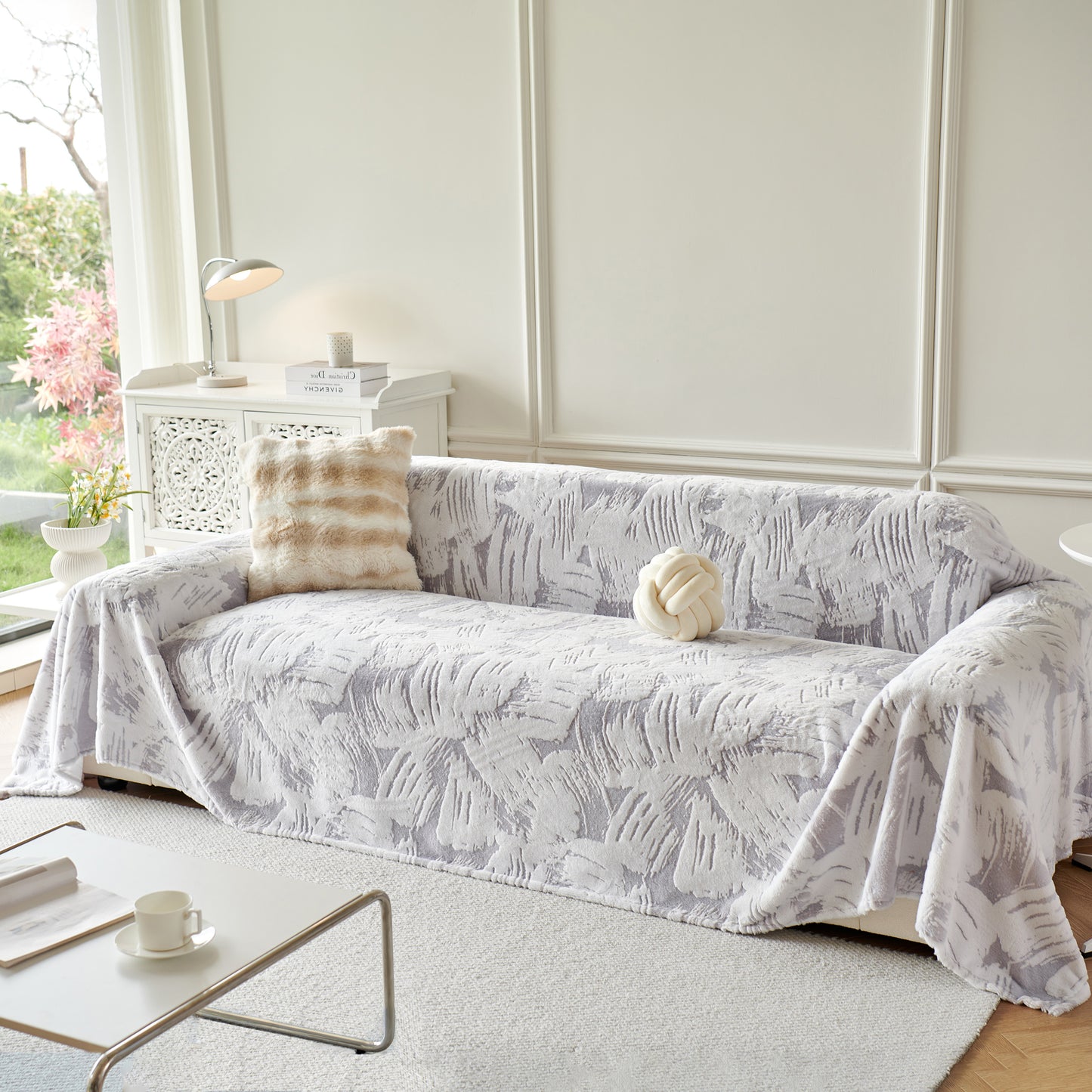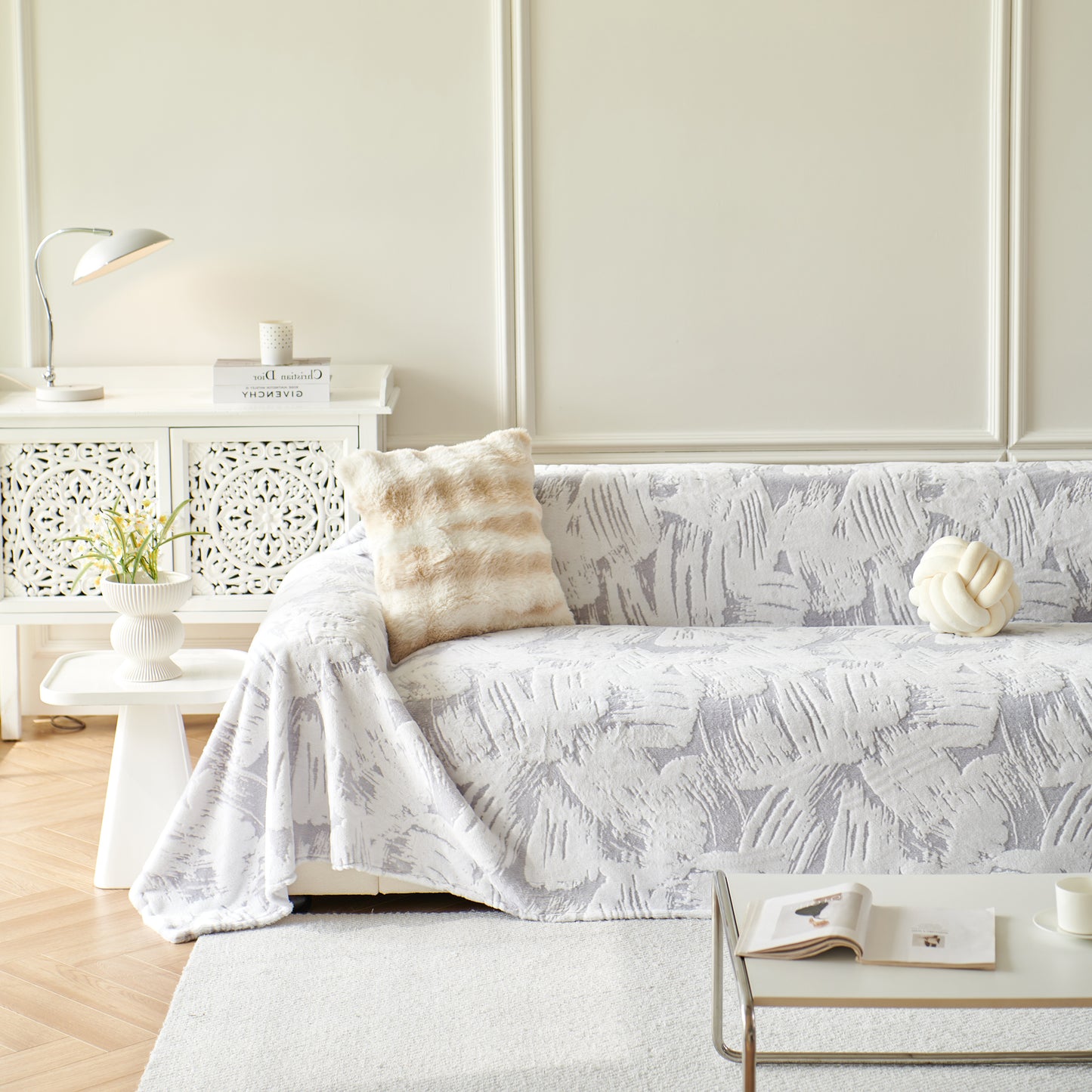 Plush Faux Fur Warm Sofa Cover with Waves Jacquard Textured Throw Blankets for Couch