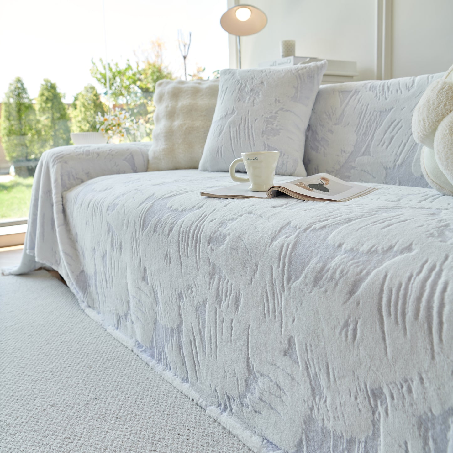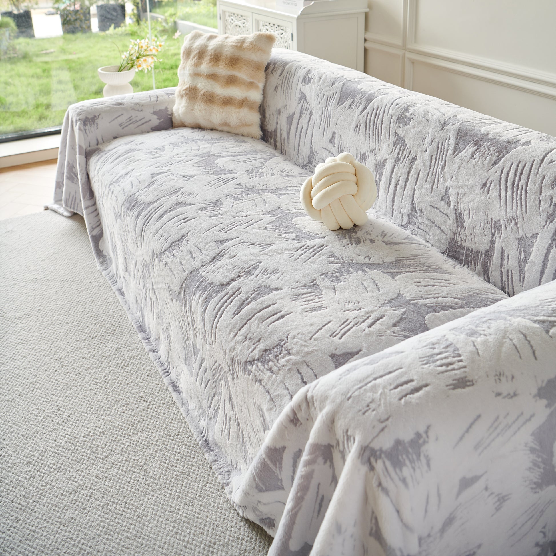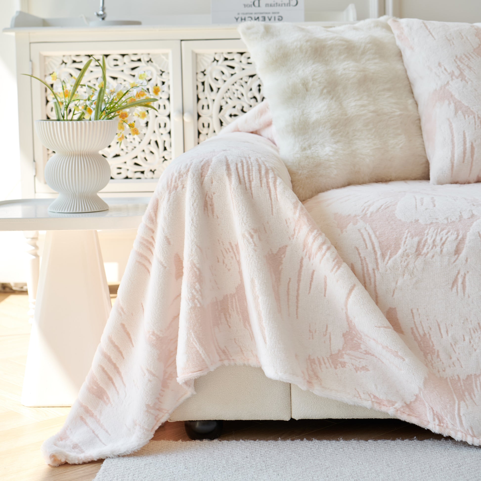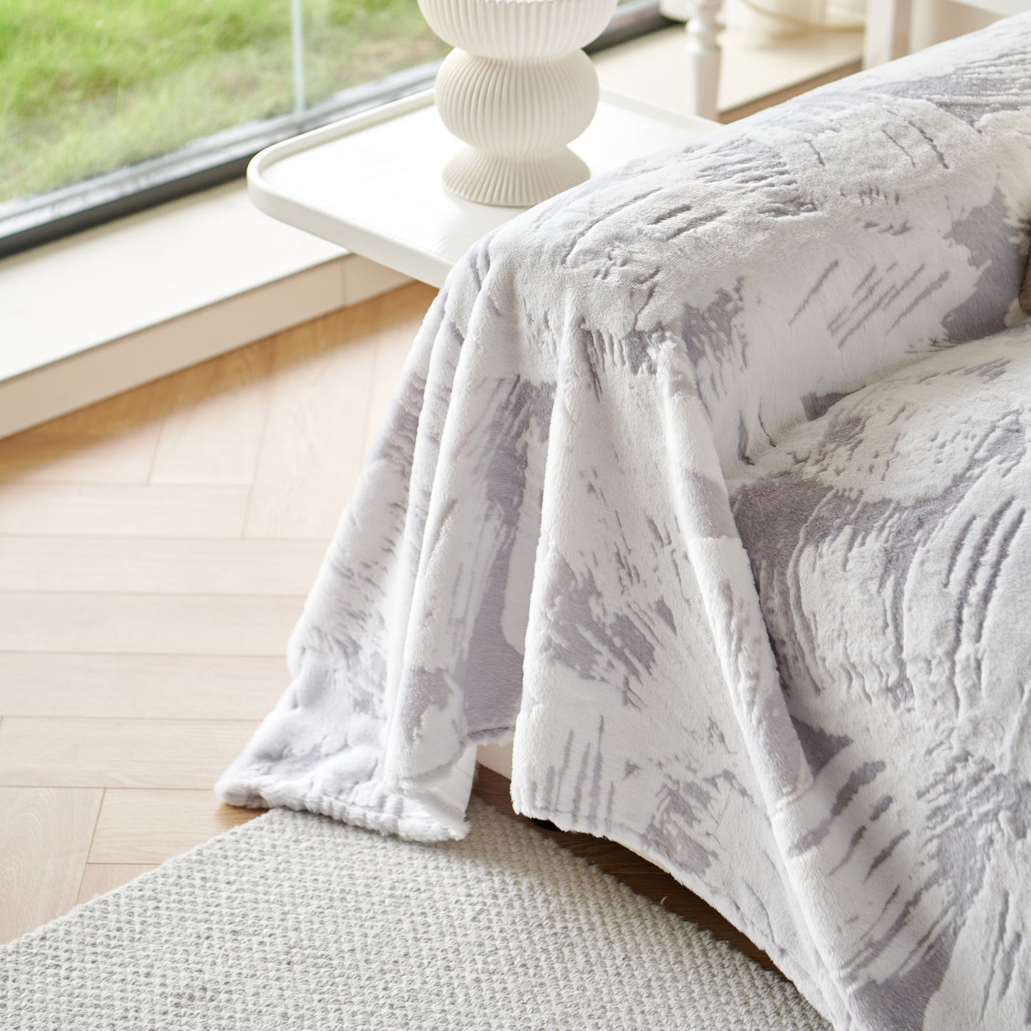 Plush Faux Fur Warm Sofa Cover with Waves Jacquard Textured Throw Blankets for Couch
