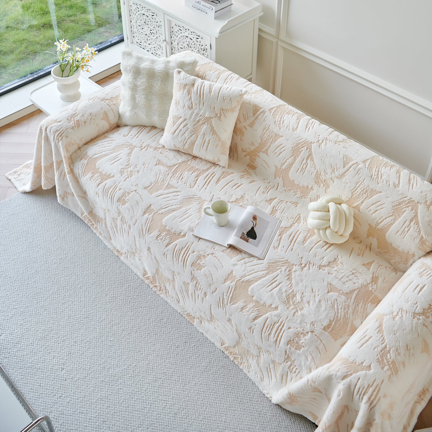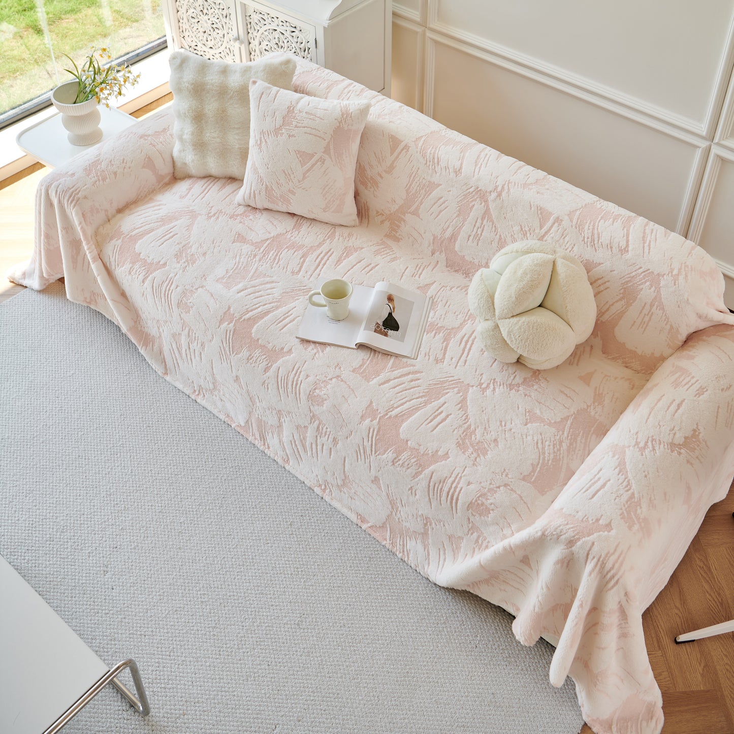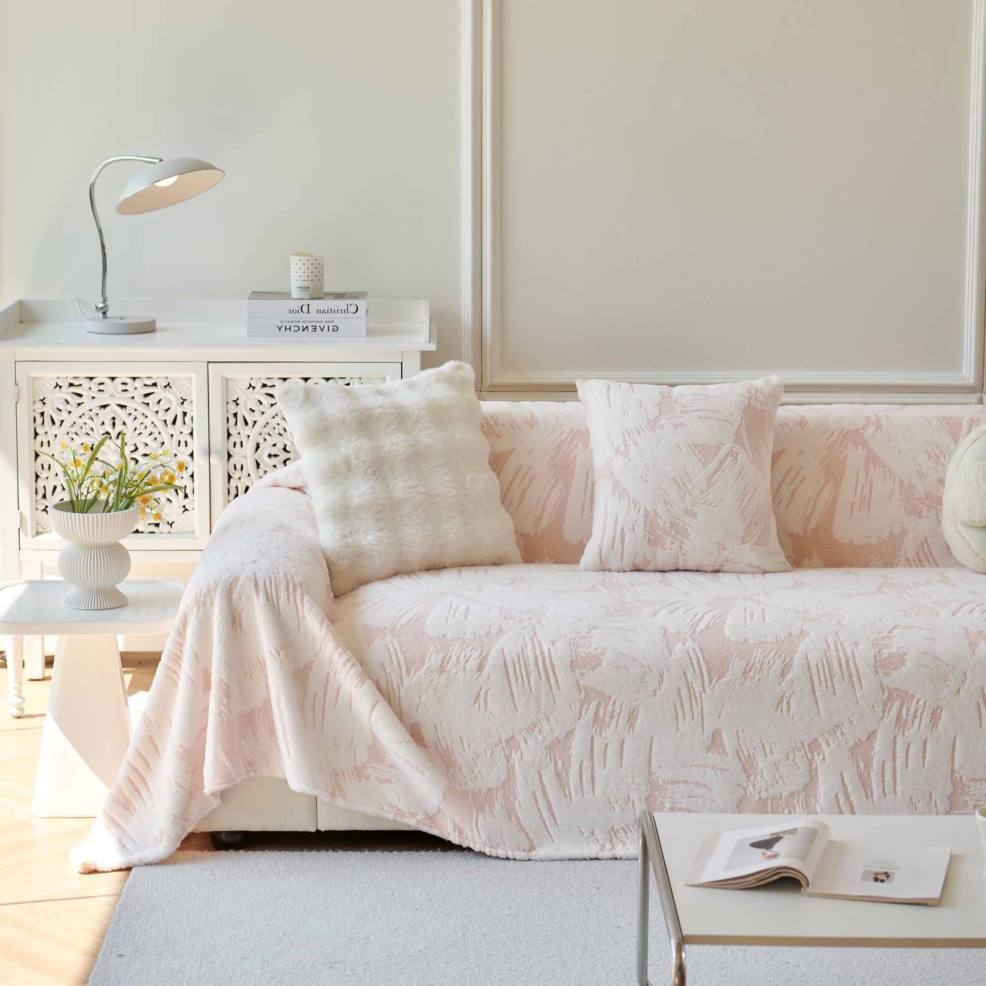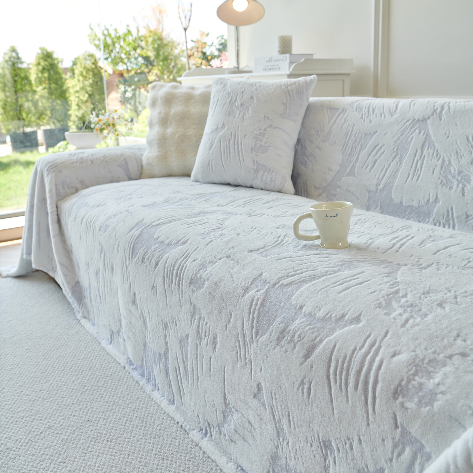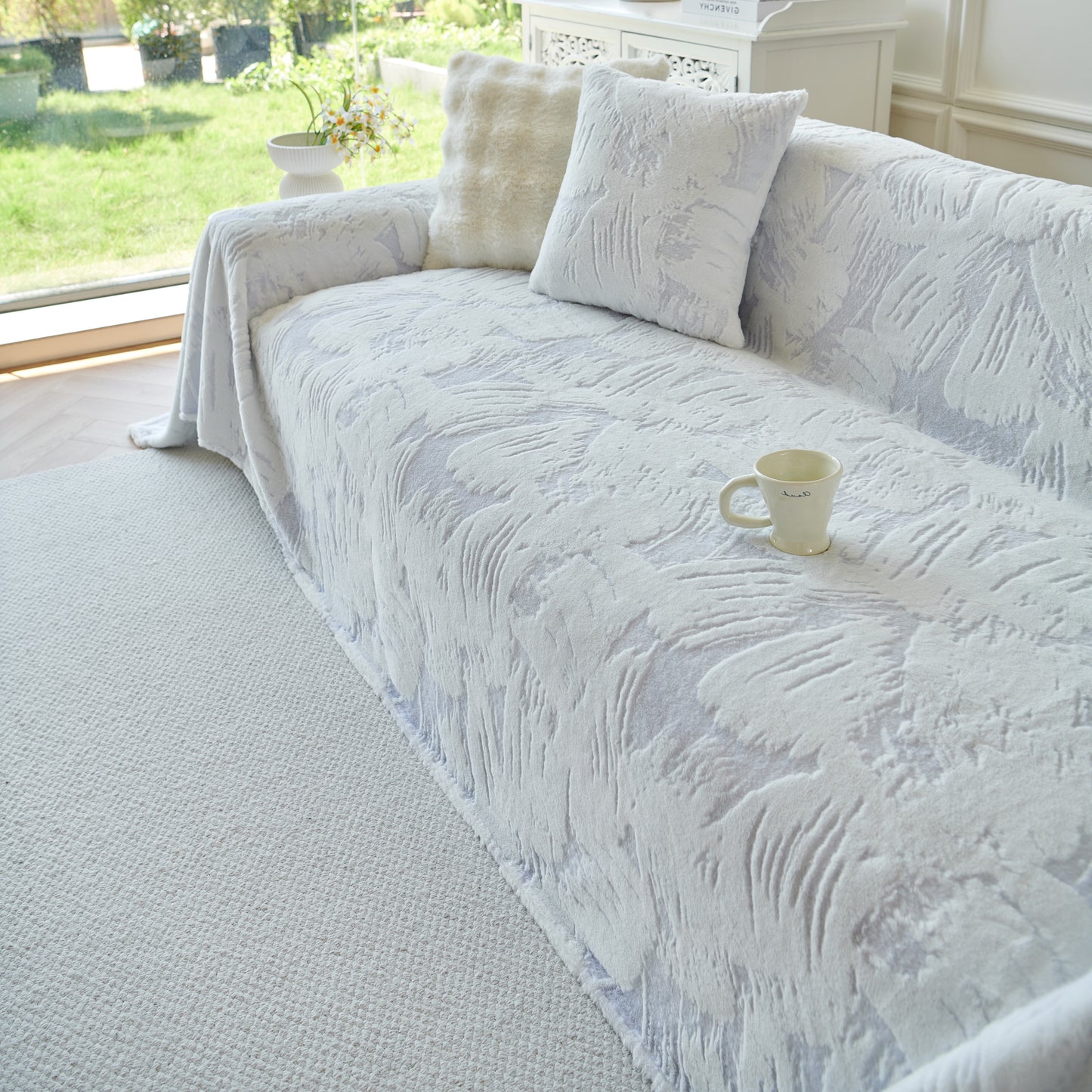 Plush Faux Fur Warm Sofa Cover with Waves Jacquard Textured Throw Blankets for Couch