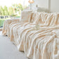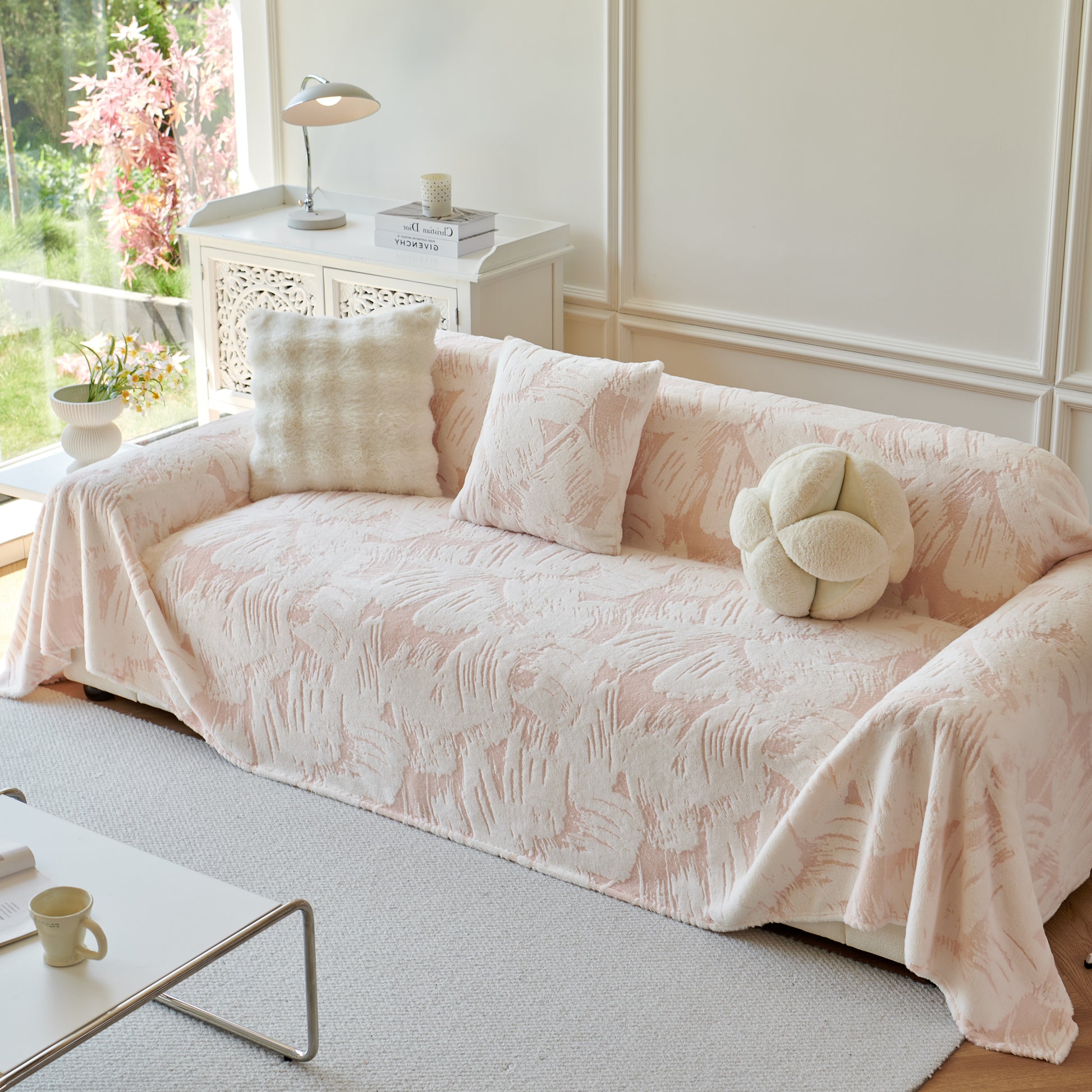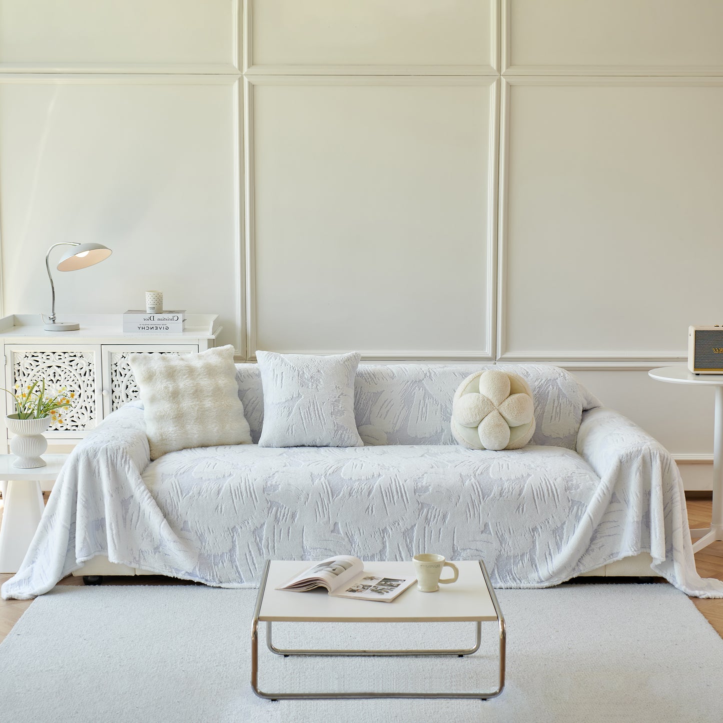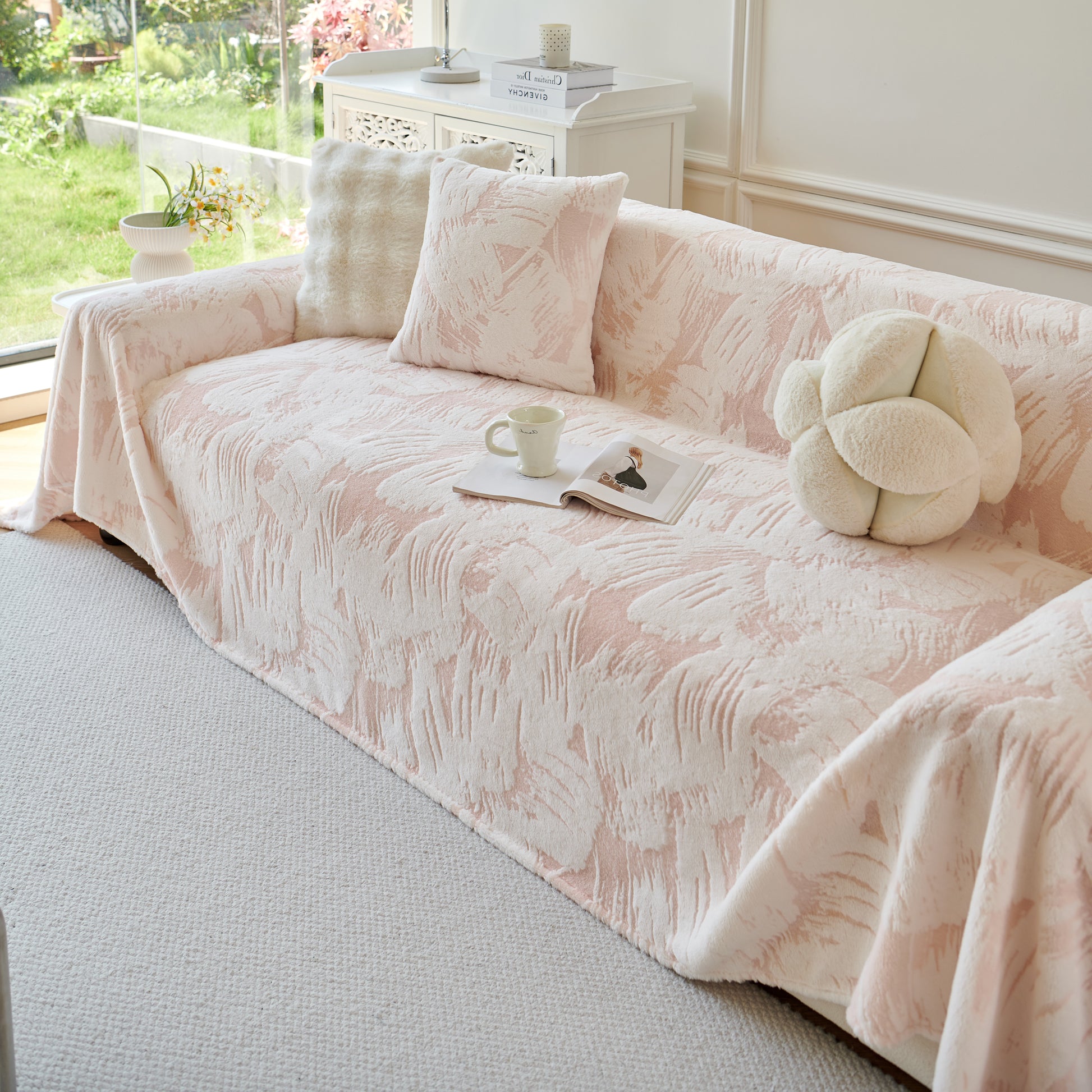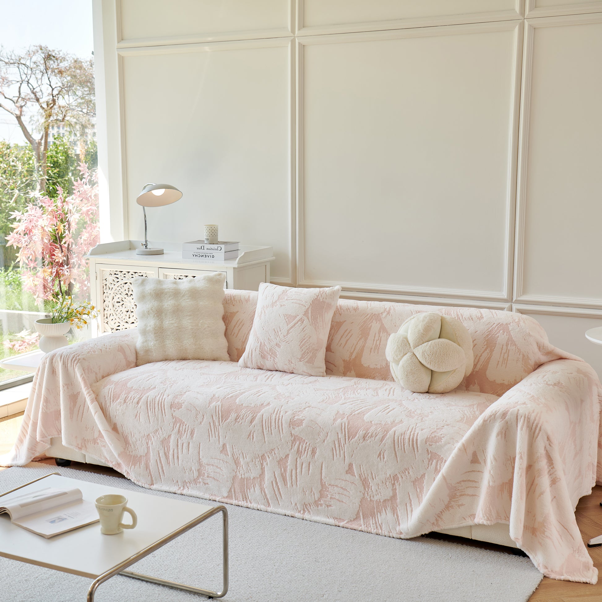 Plush Faux Fur Warm Sofa Cover with Waves Jacquard Textured Throw Blankets for Couch