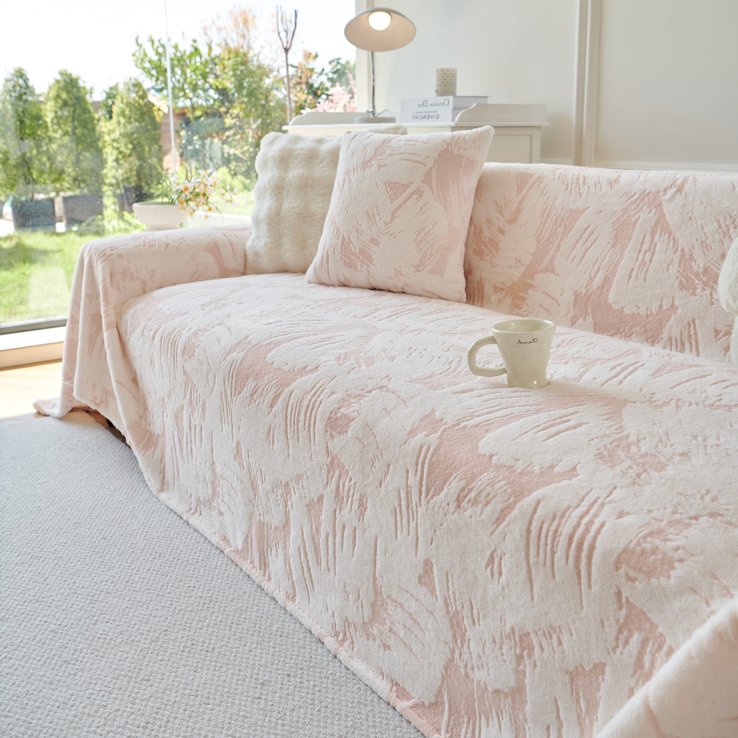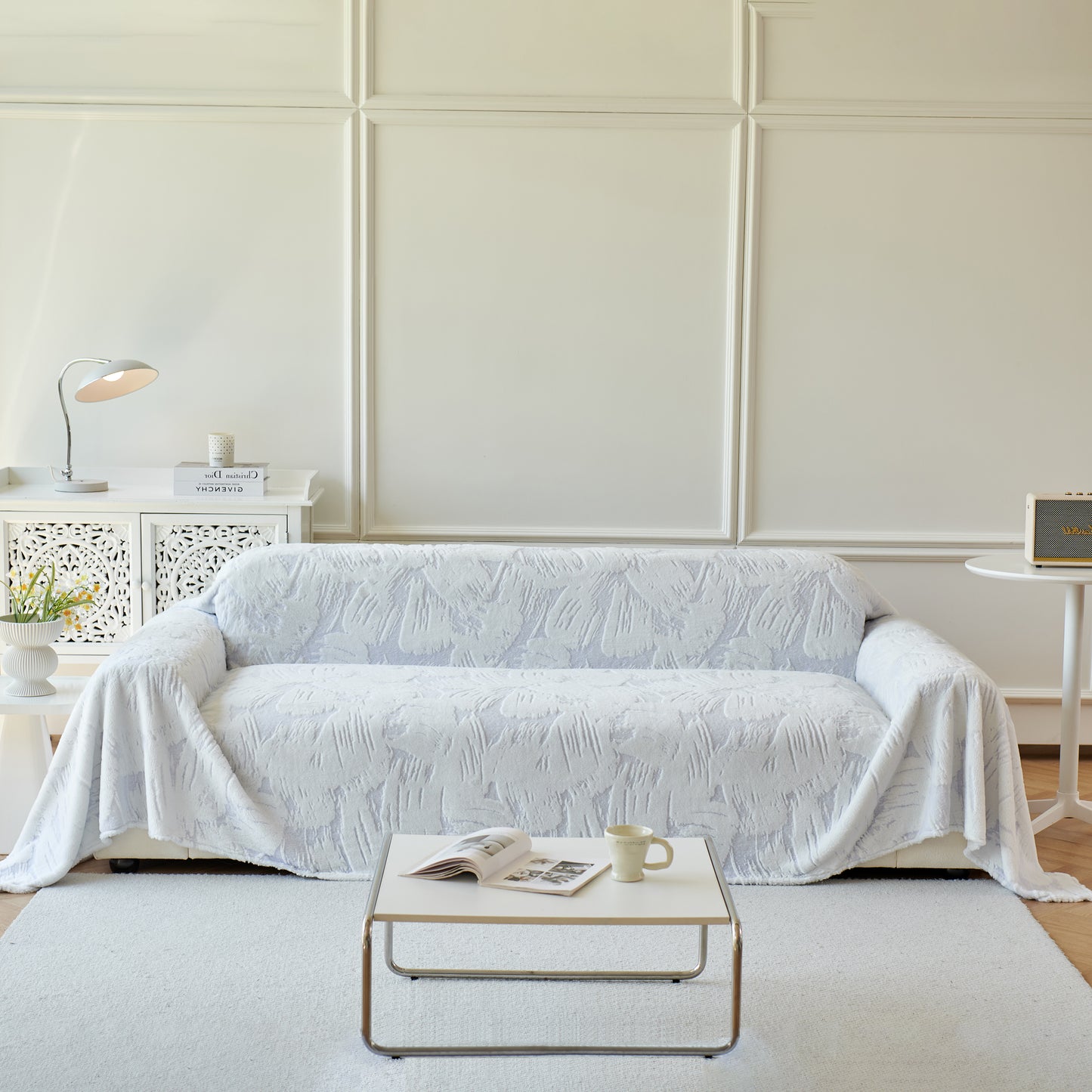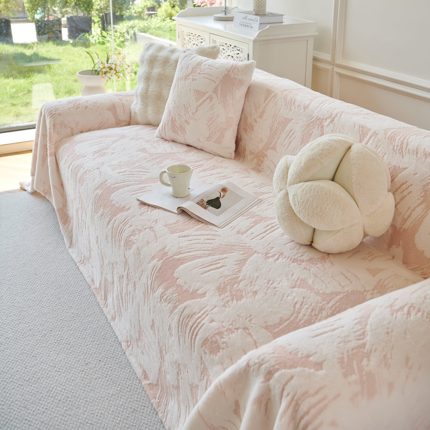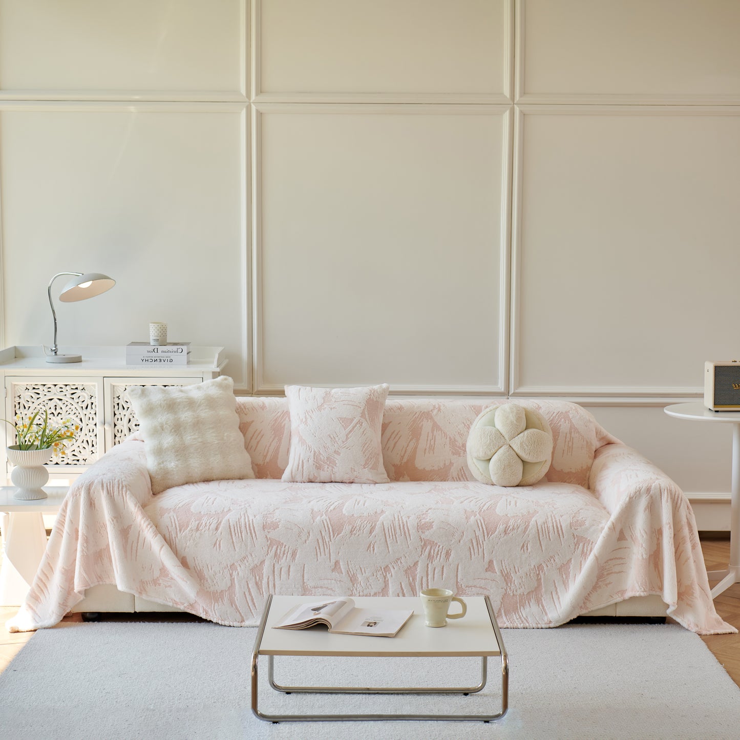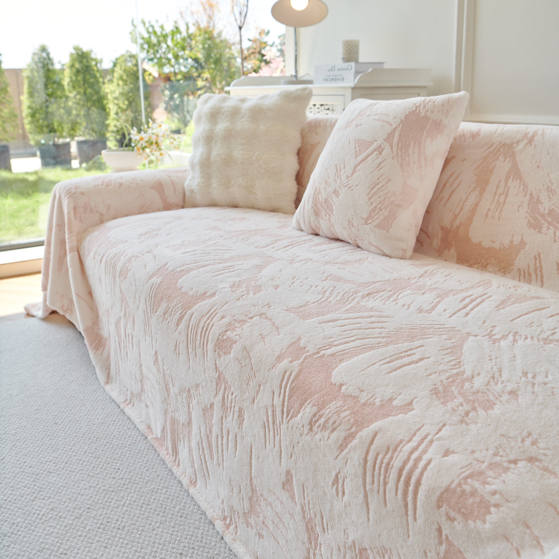 Plush Faux Fur Warm Sofa Cover with Waves Jacquard Textured Throw Blankets for Couch