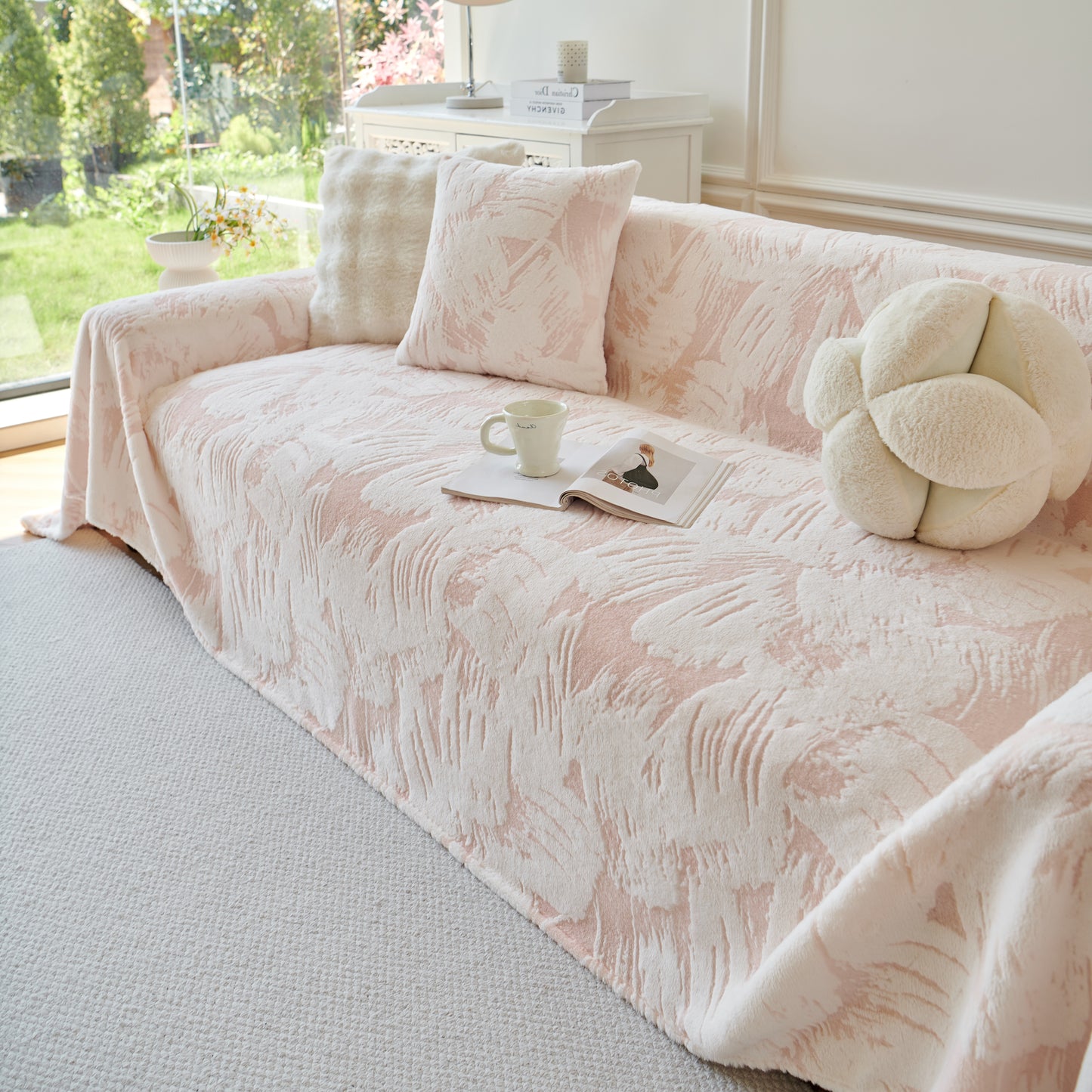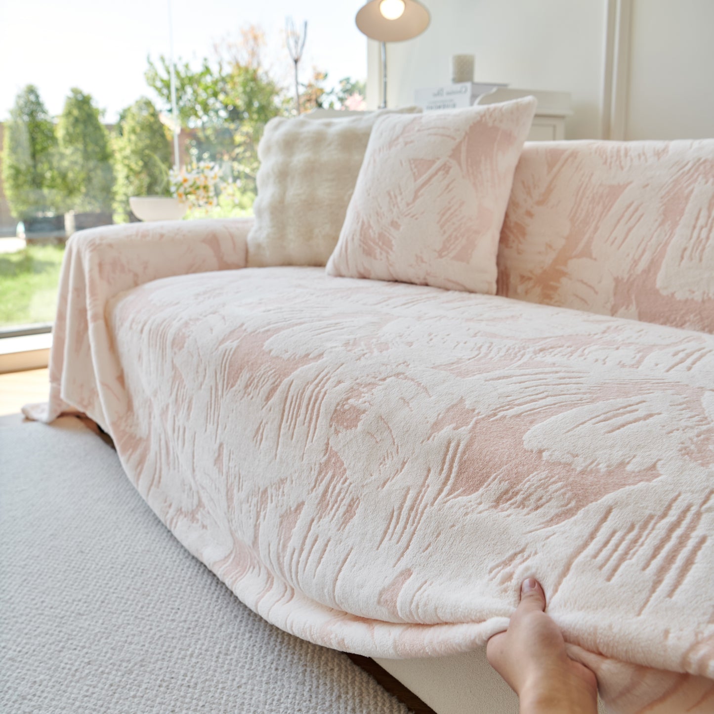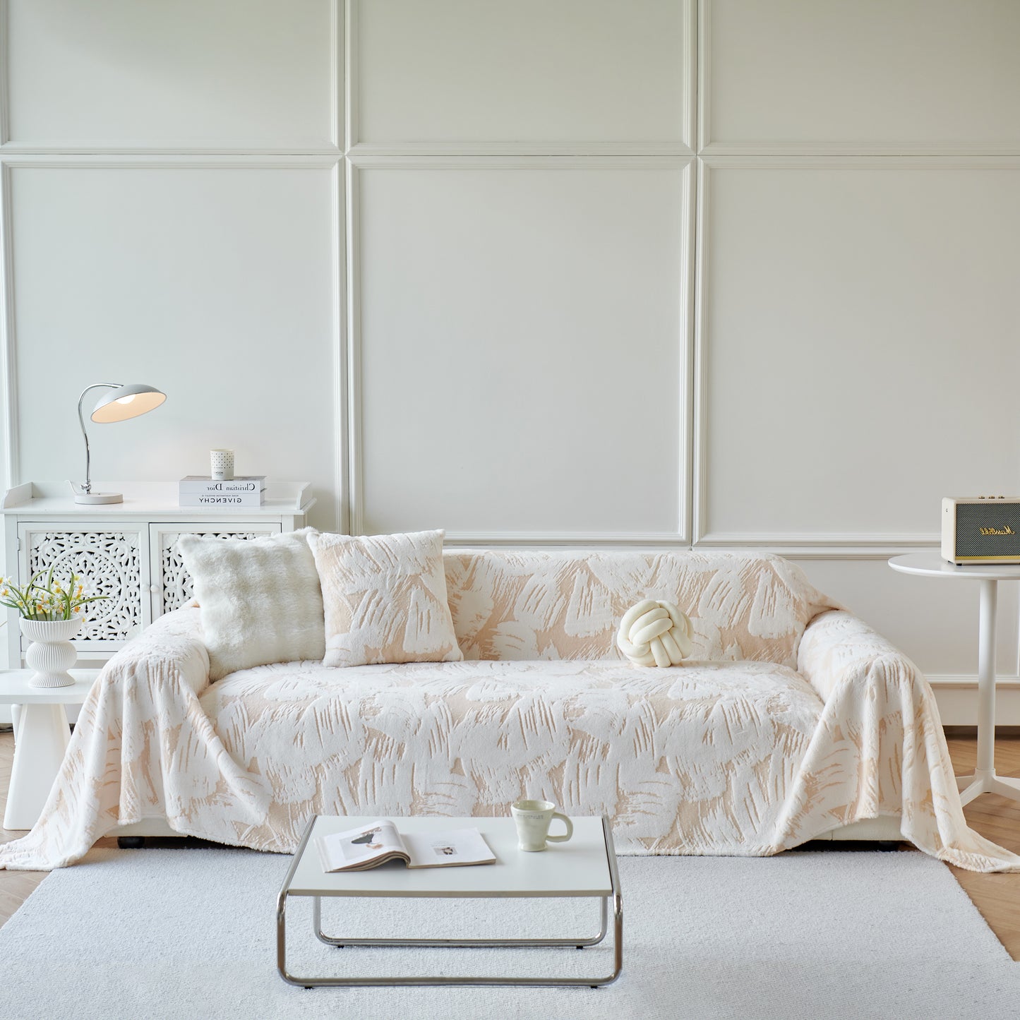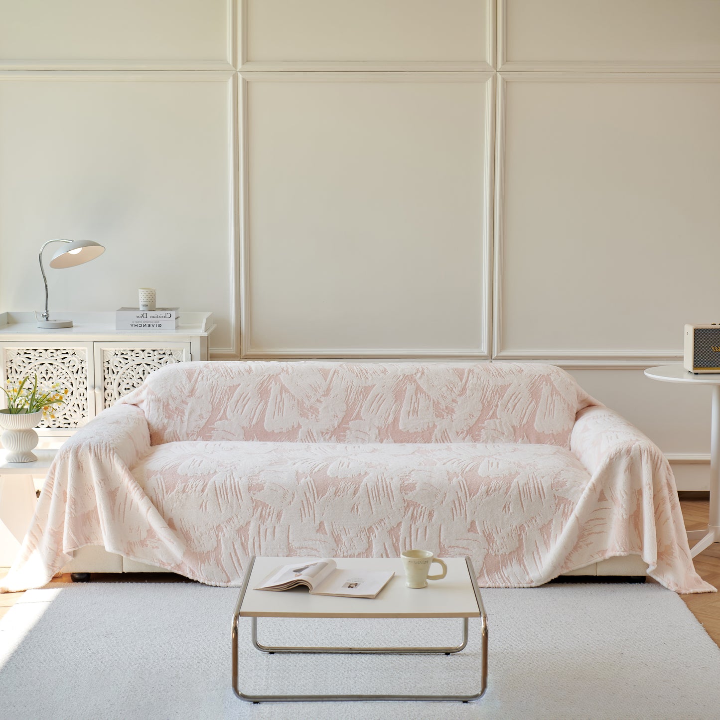 Plush Faux Fur Warm Sofa Cover with Waves Jacquard Textured Throw Blankets for Couch