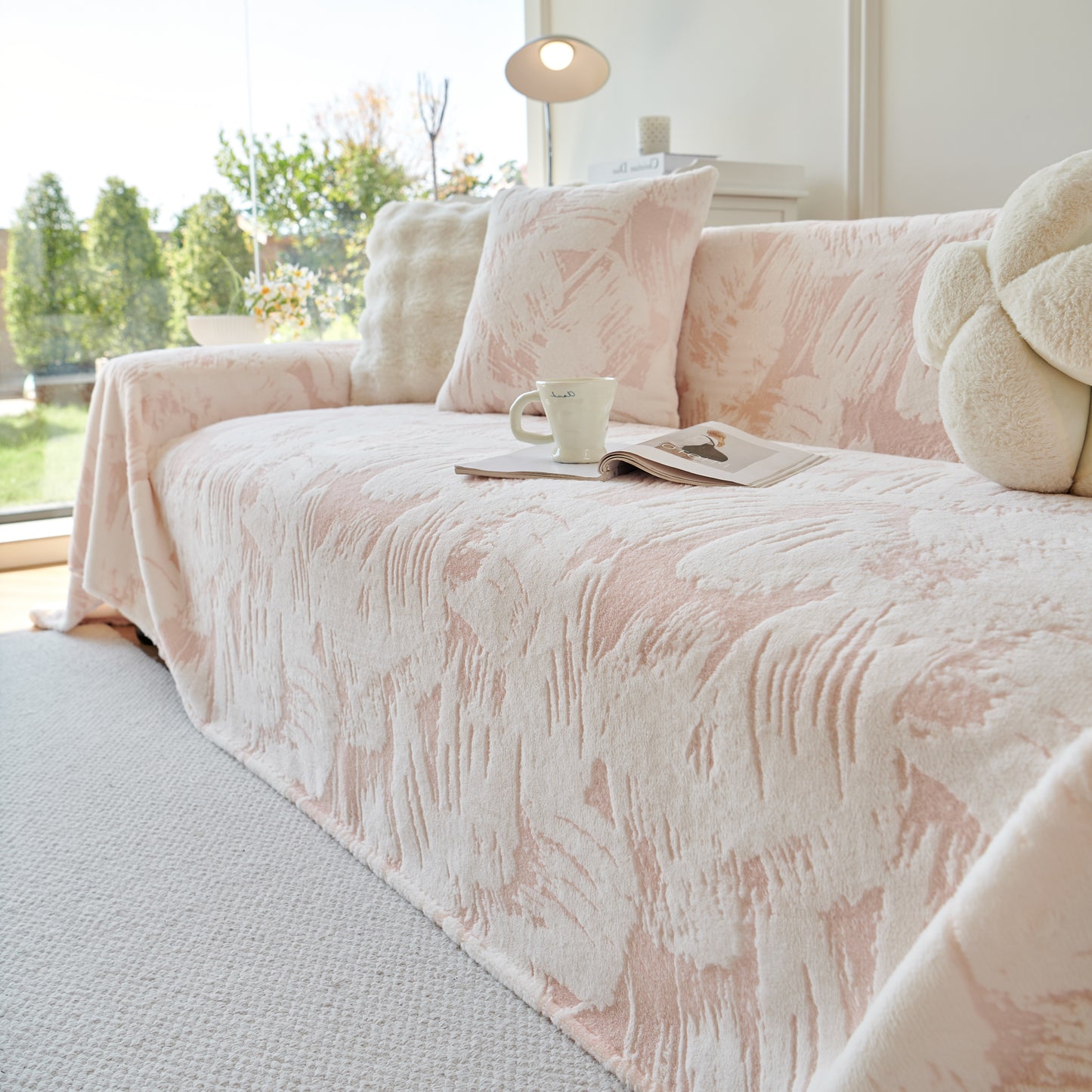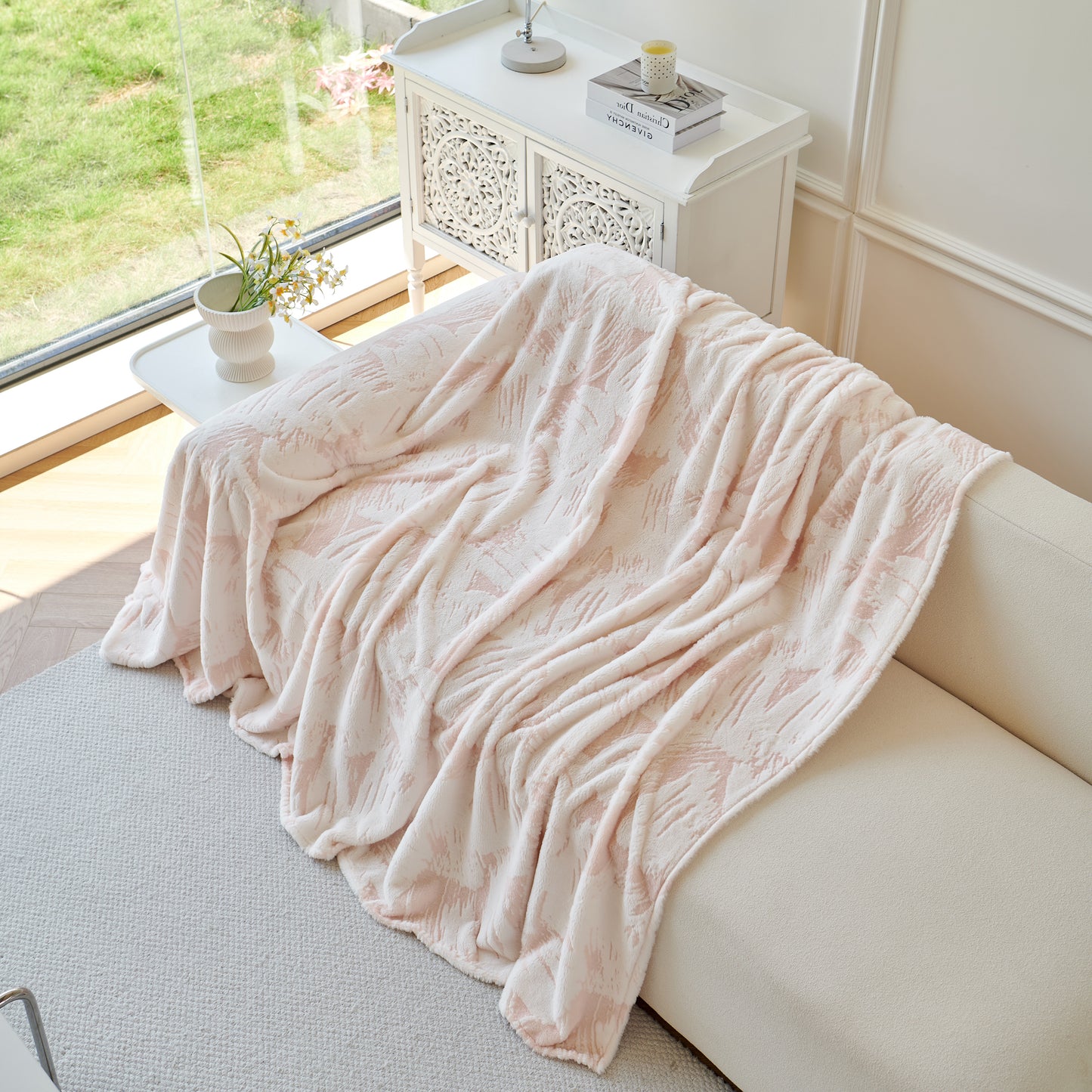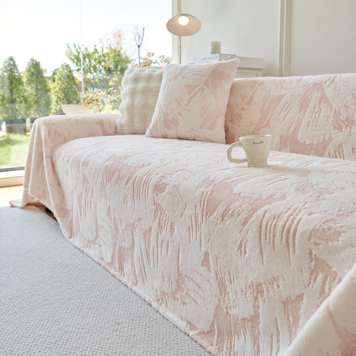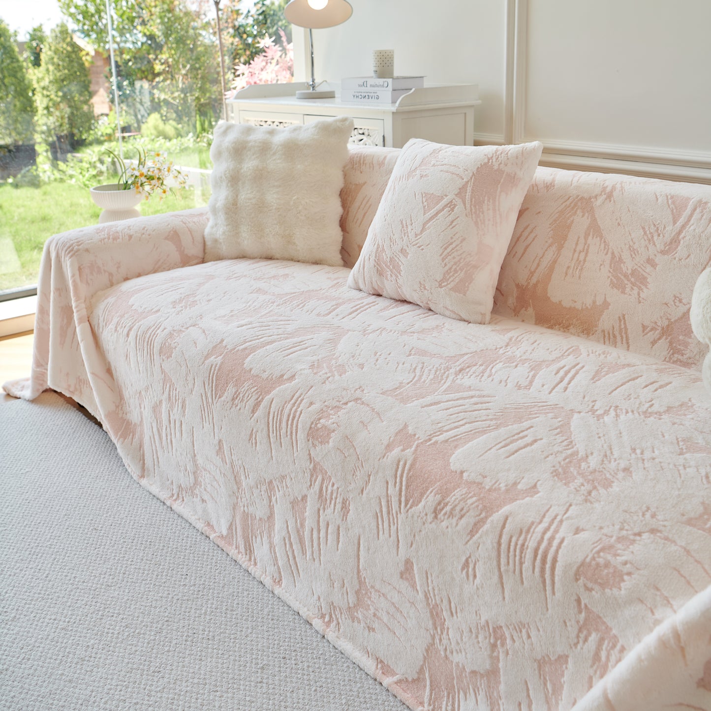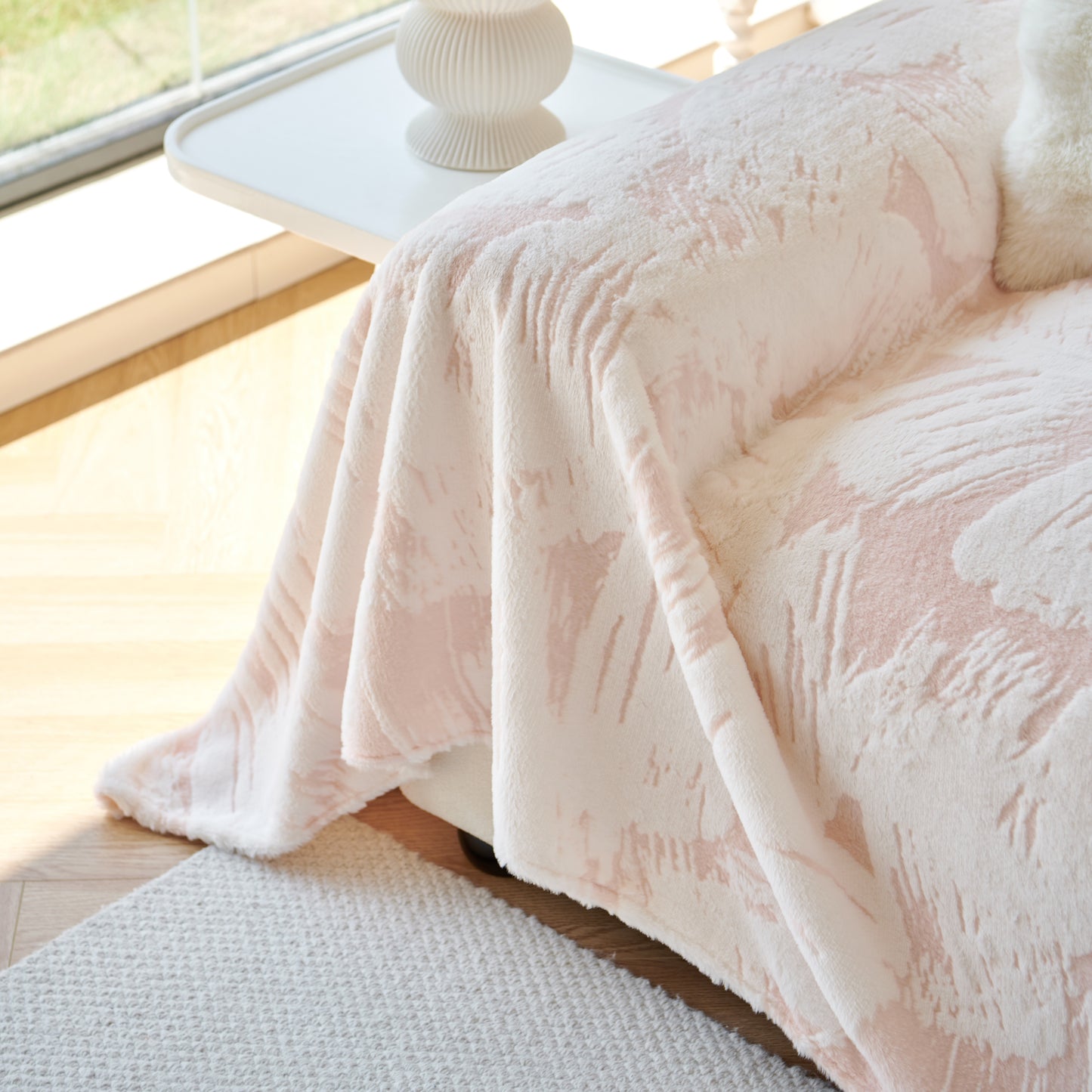 Plush Faux Fur Warm Sofa Cover with Waves Jacquard Textured Throw Blankets for Couch