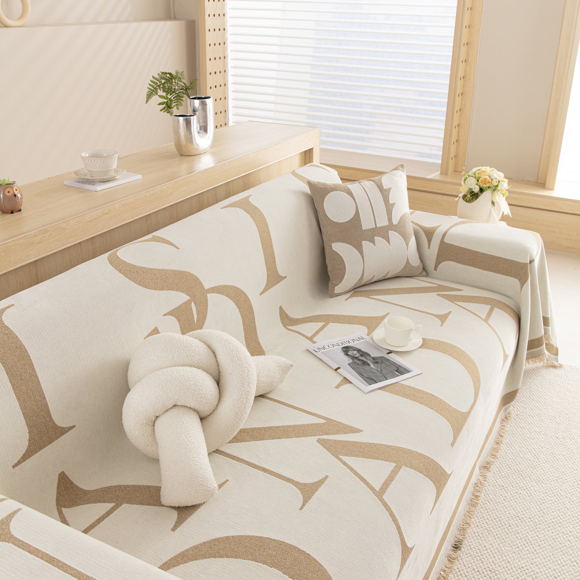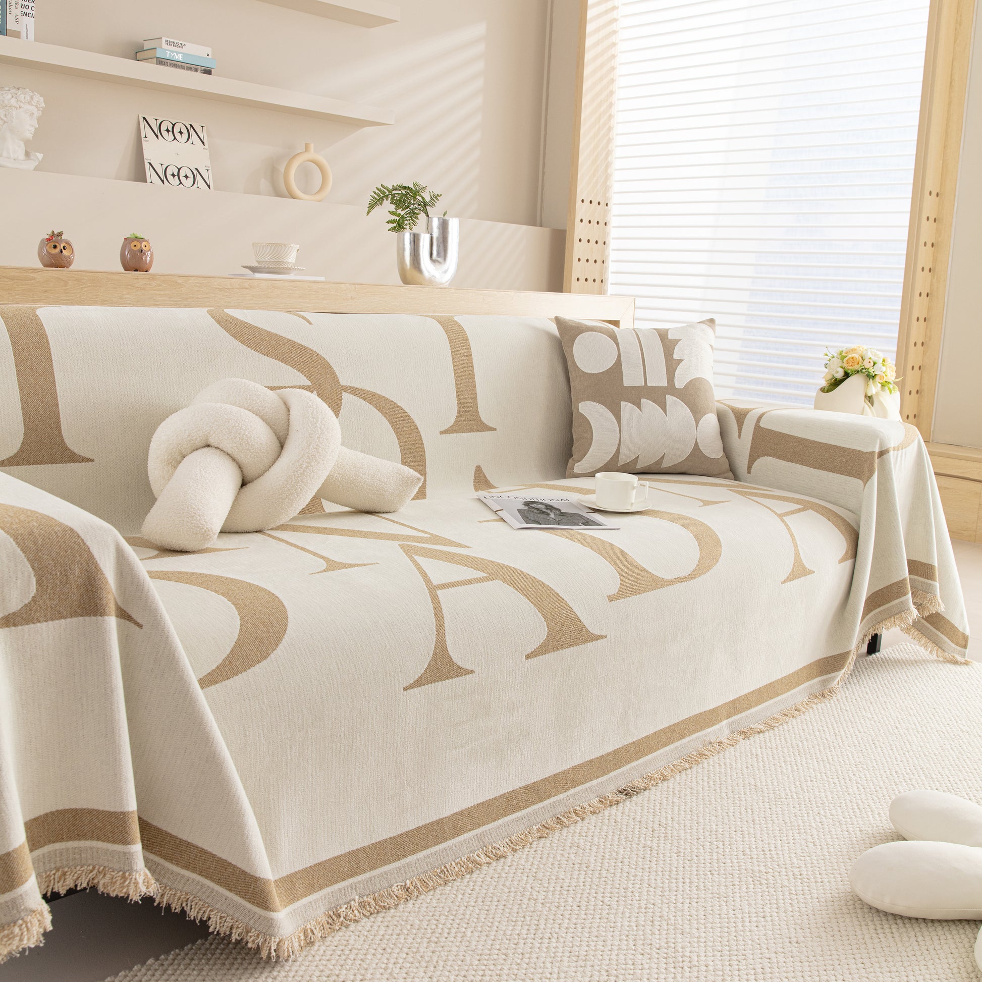 Discover our Chenille Jacquard Alphabet Sofa Blanket Cover, perfect for protecting your L-shaped sofa and adding a touch of style with its reversible design. These couch covers are also ideal for dog owners, providing a durable and washable solution. Upgrade your living space with our versatile and pet-friendly sofa covers today!