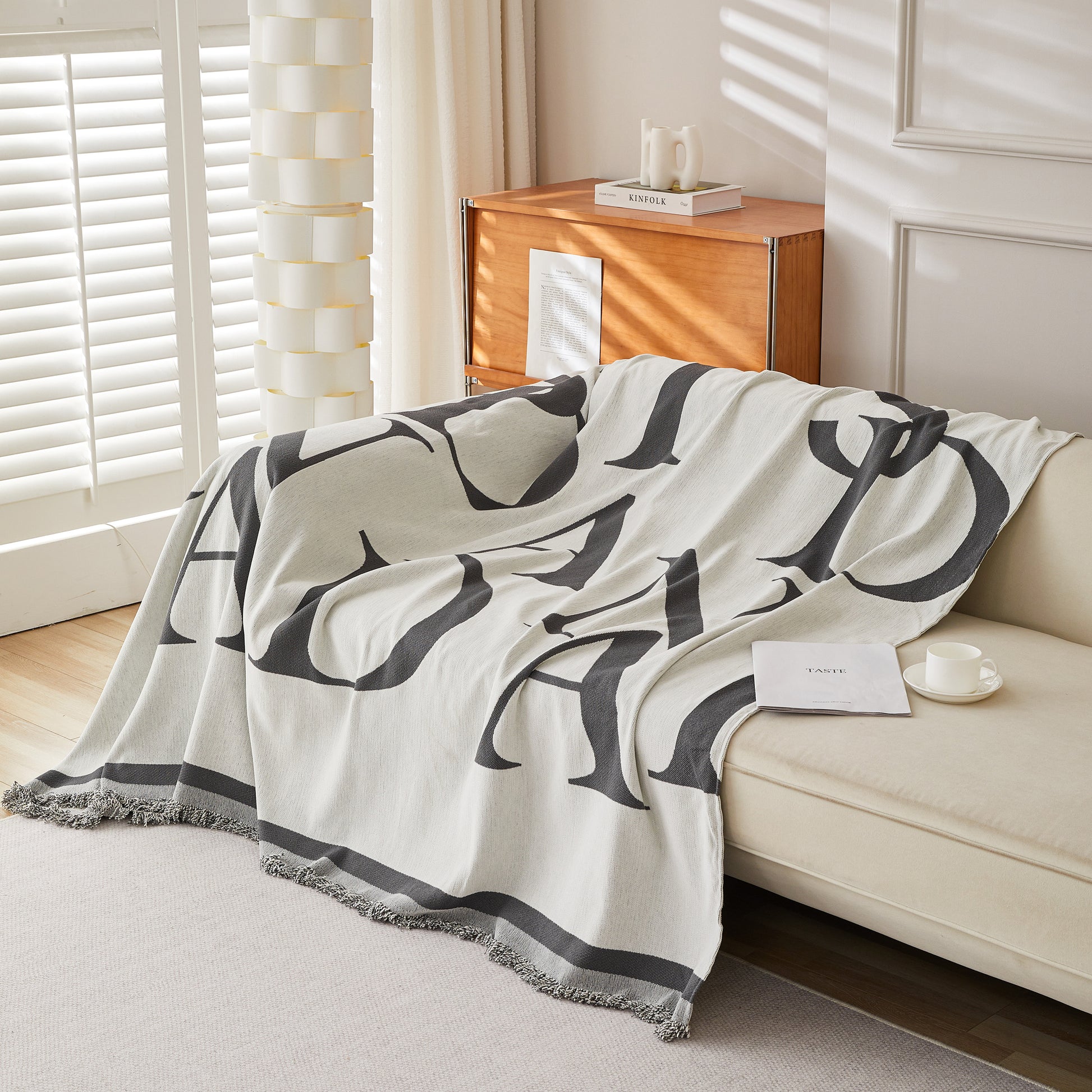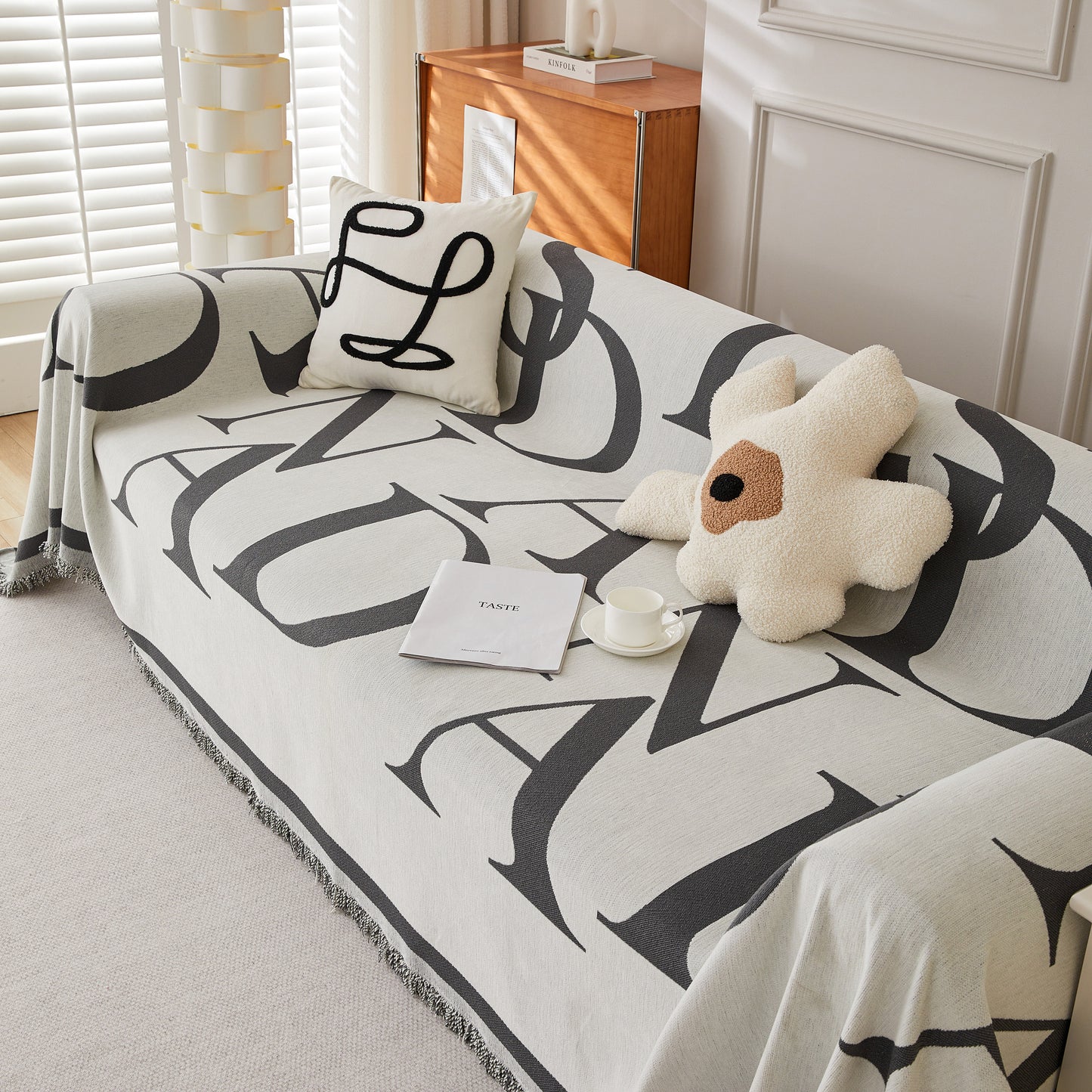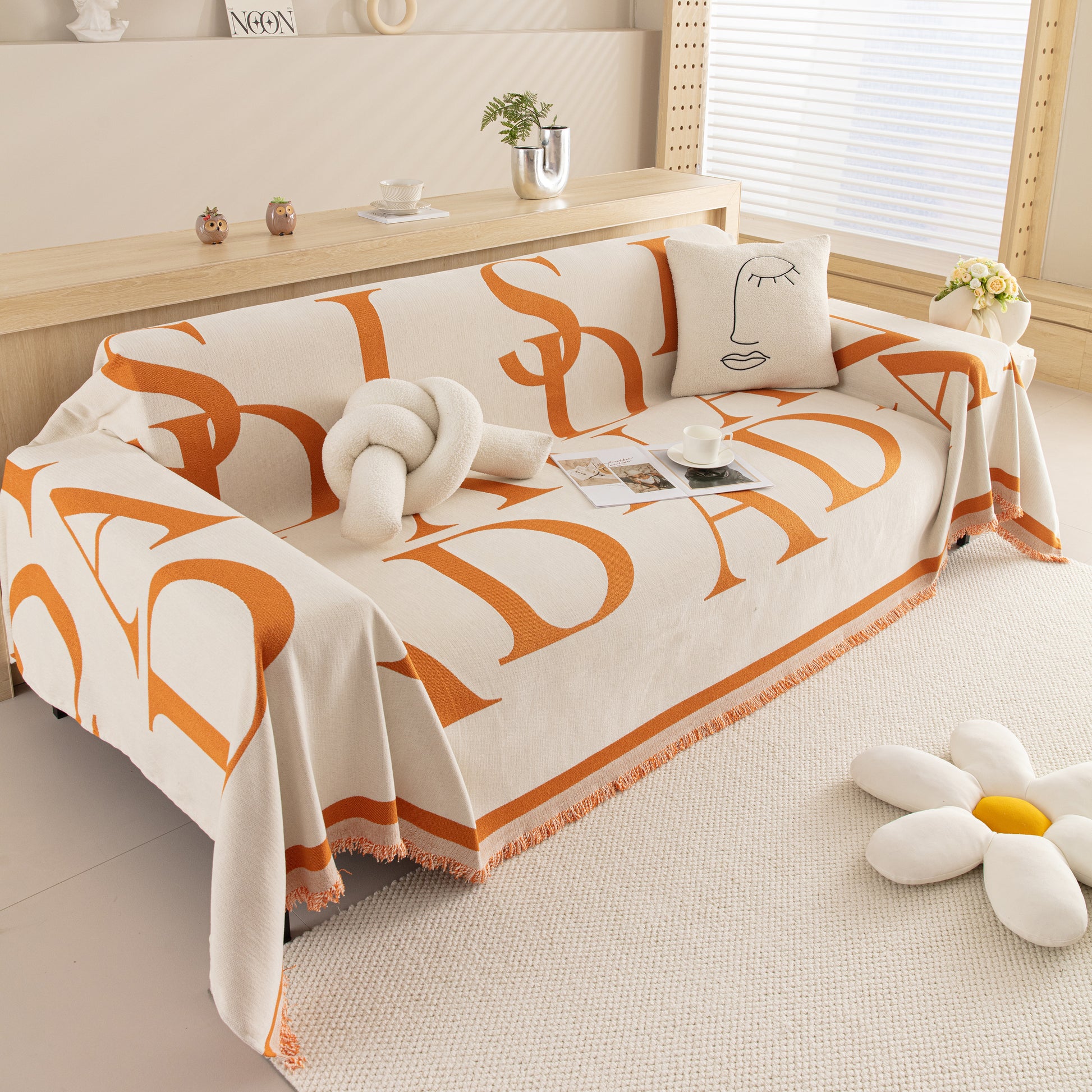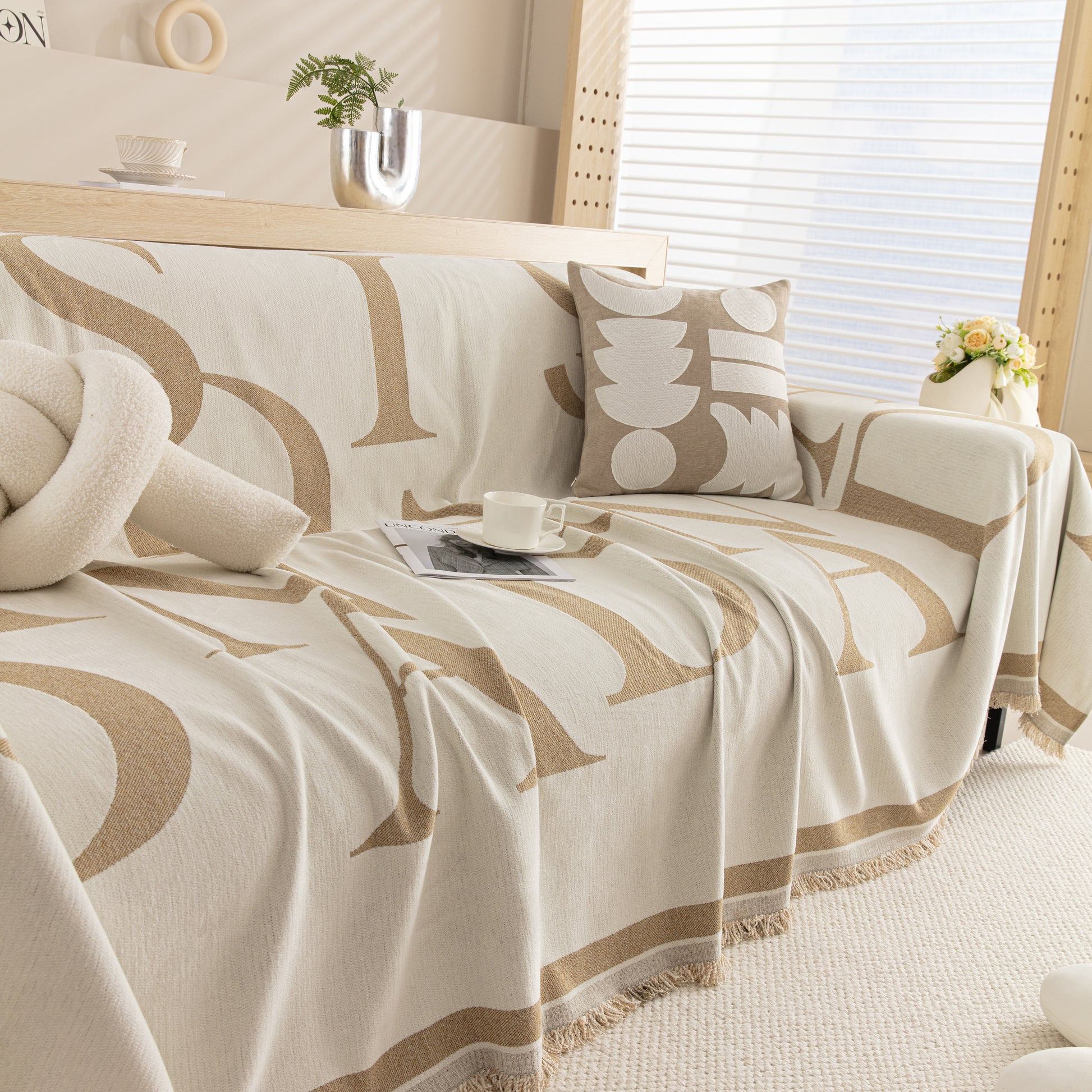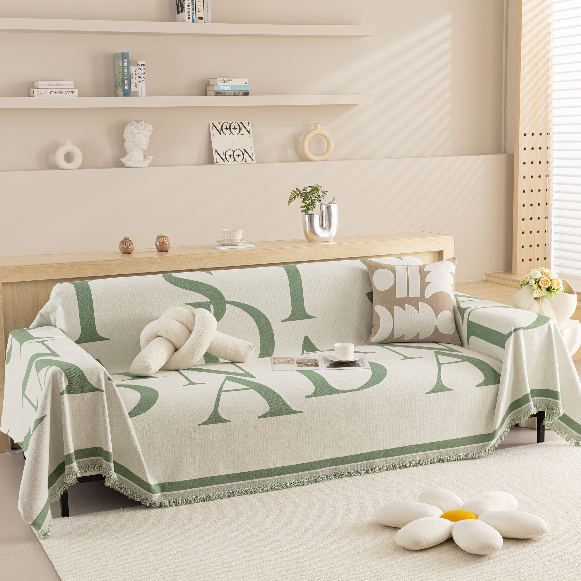 Chenille Jacquard Alphabet Sofa Blanket Cover, L Shape Sofa Cover, Reversible Couch Covers for Dogs
