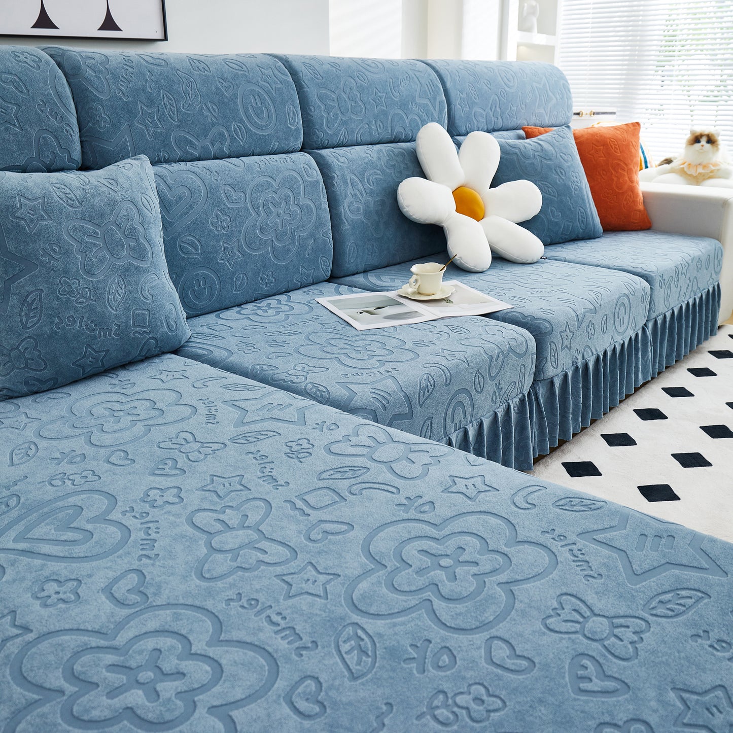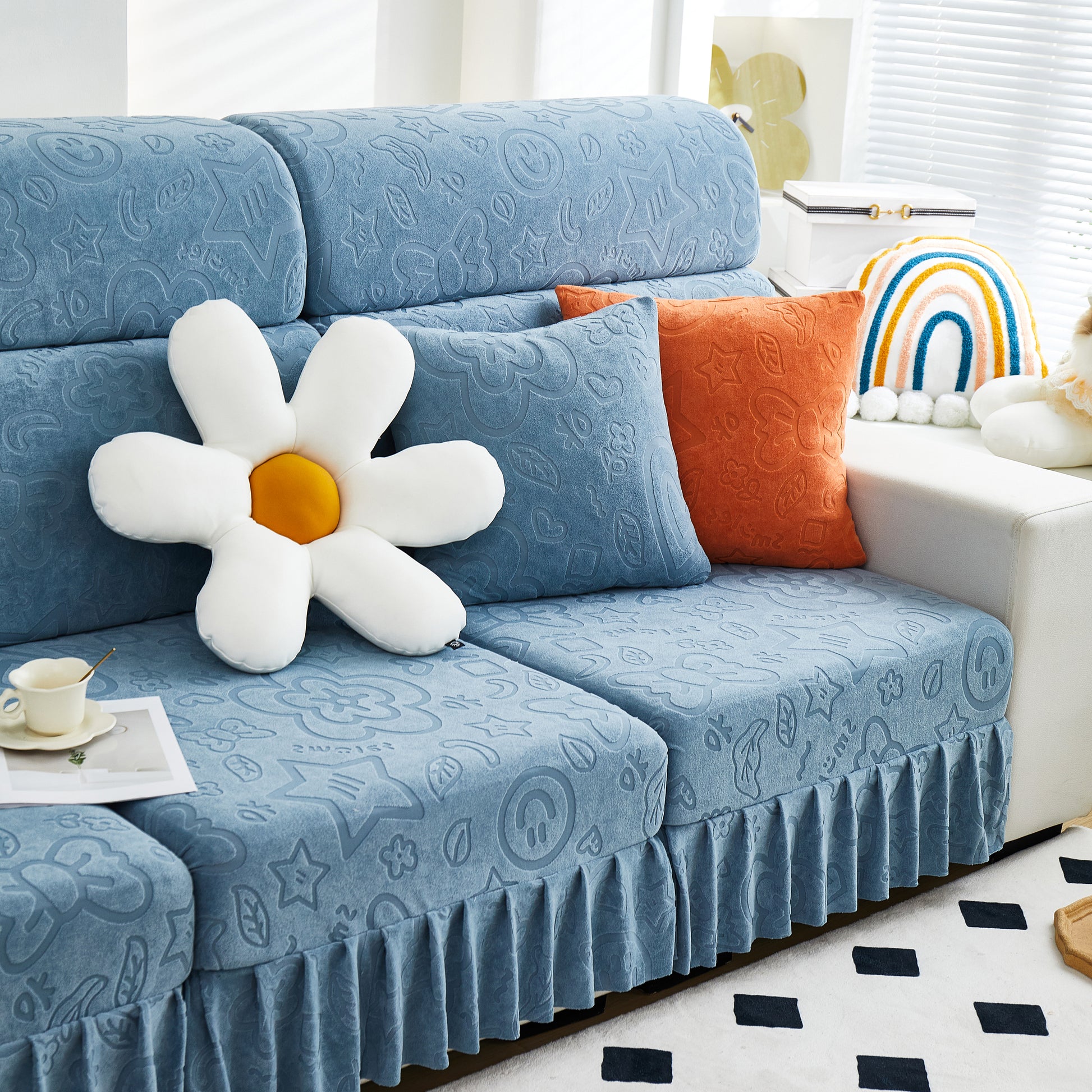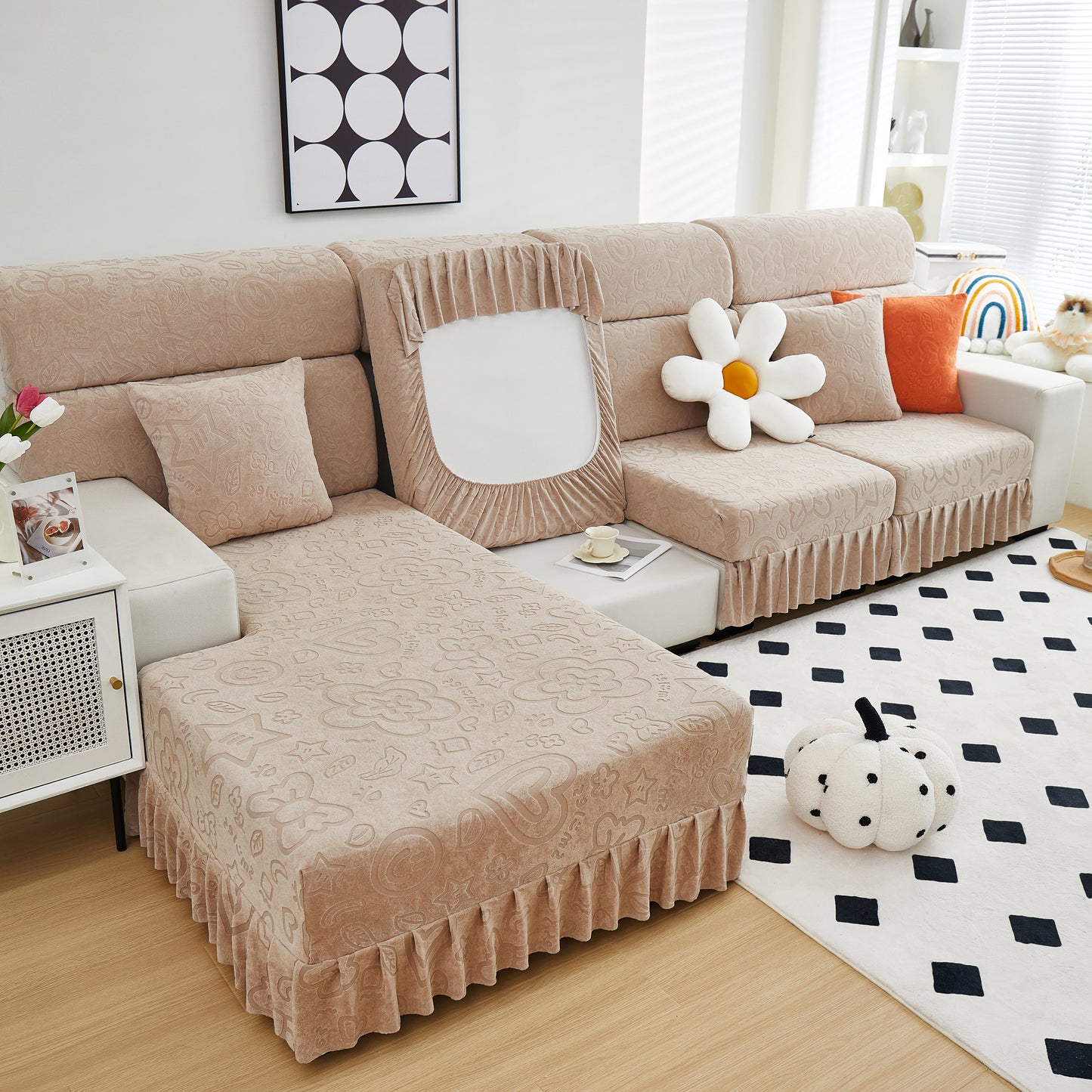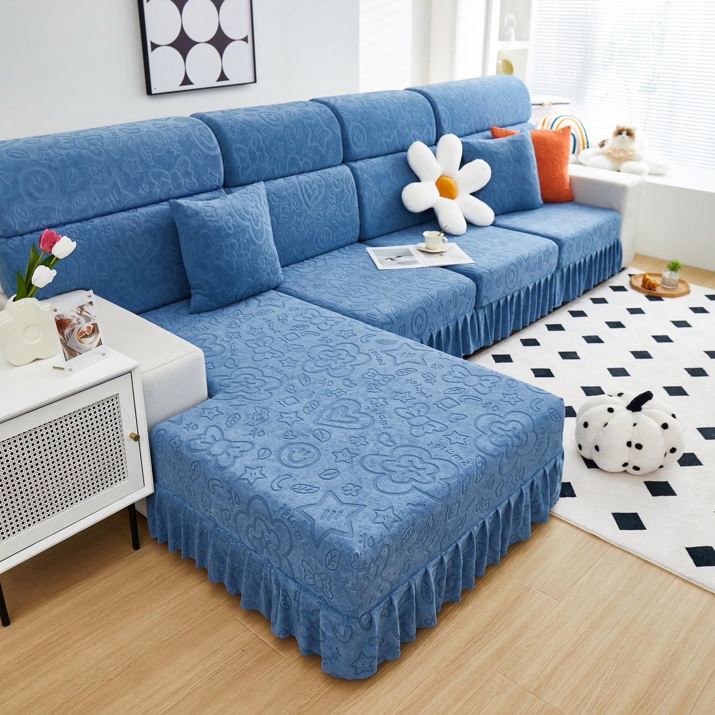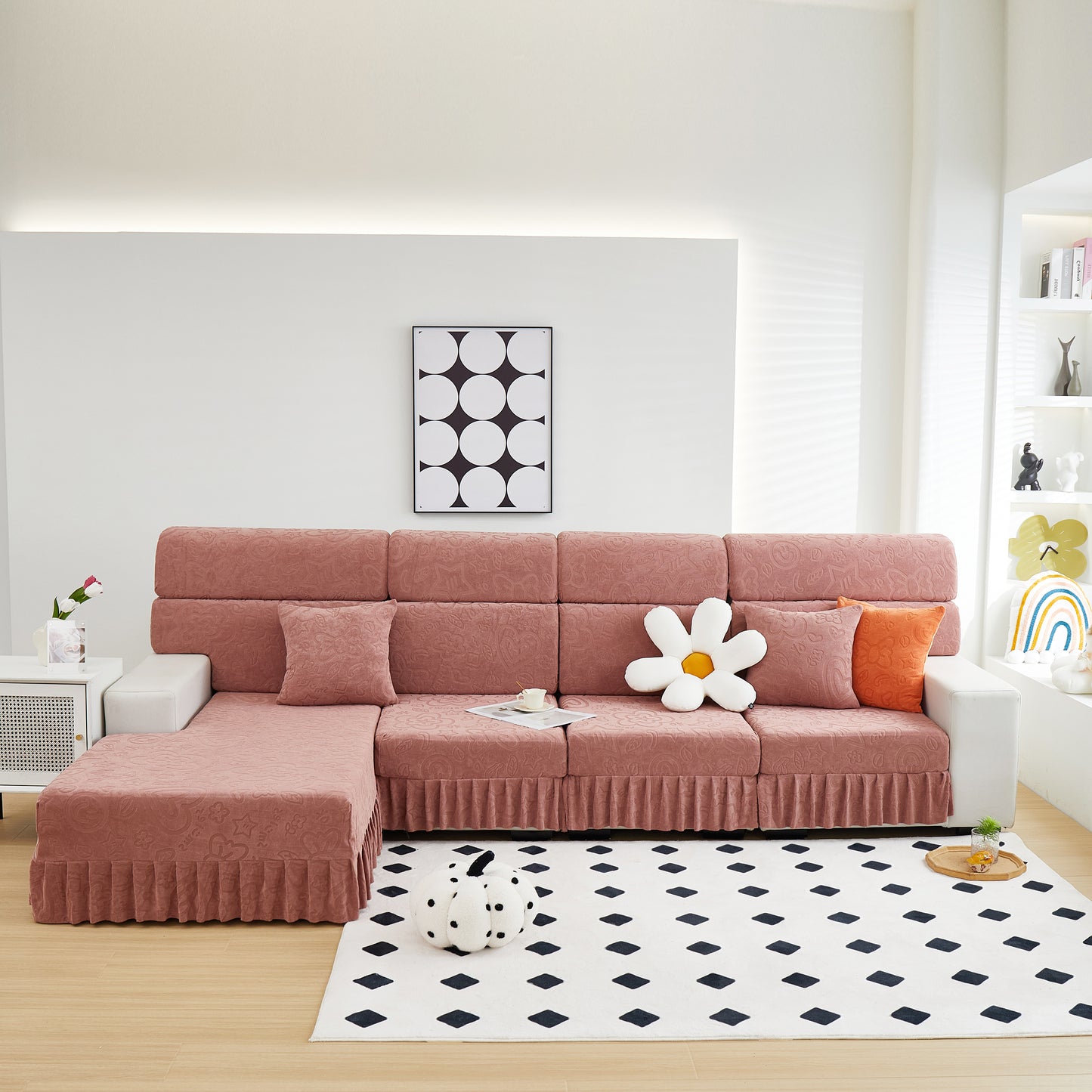 Elastic Skirted Couch Cushion Covers for 1/2/3/4-Seater Sofas, Furniture Protector for Pets, Kids
