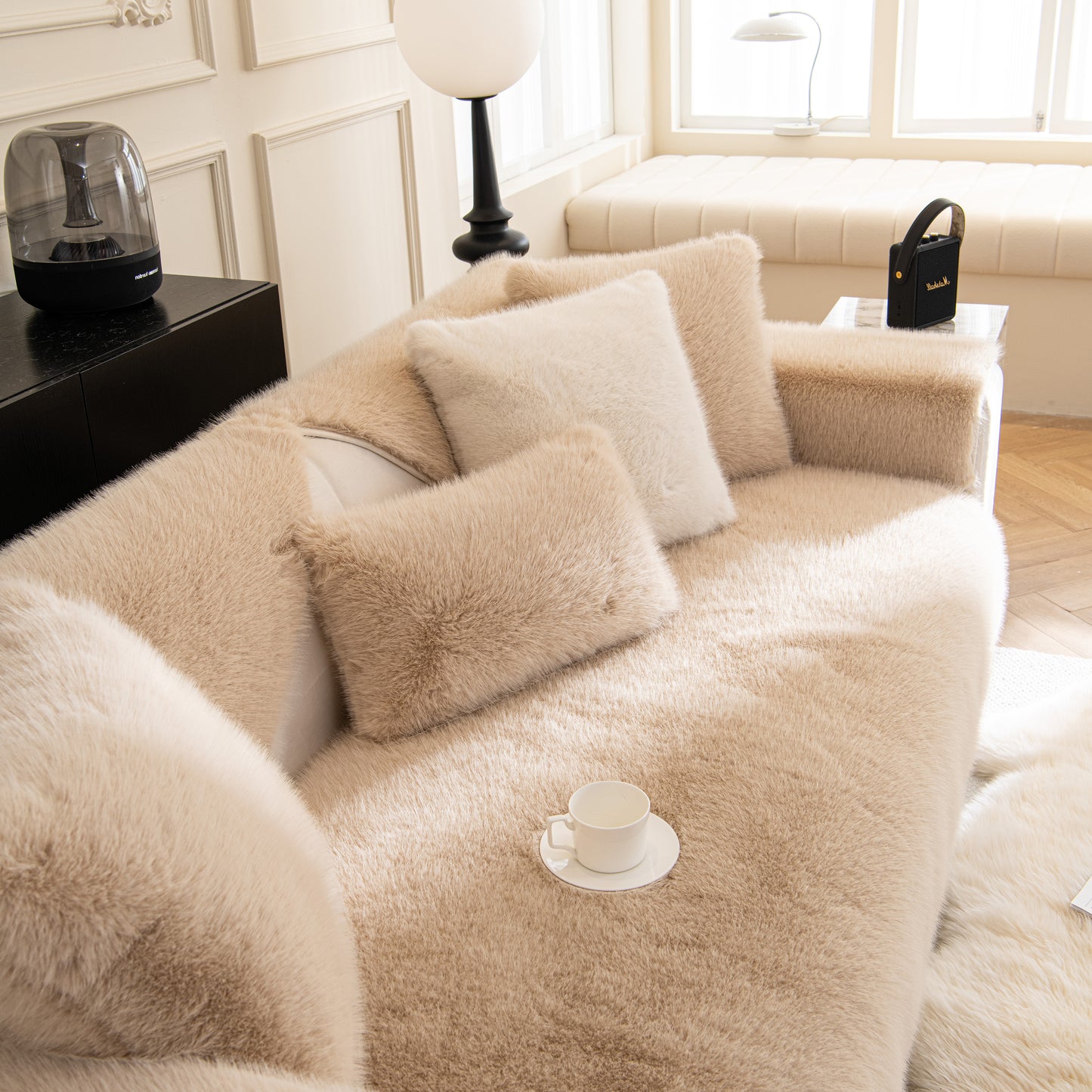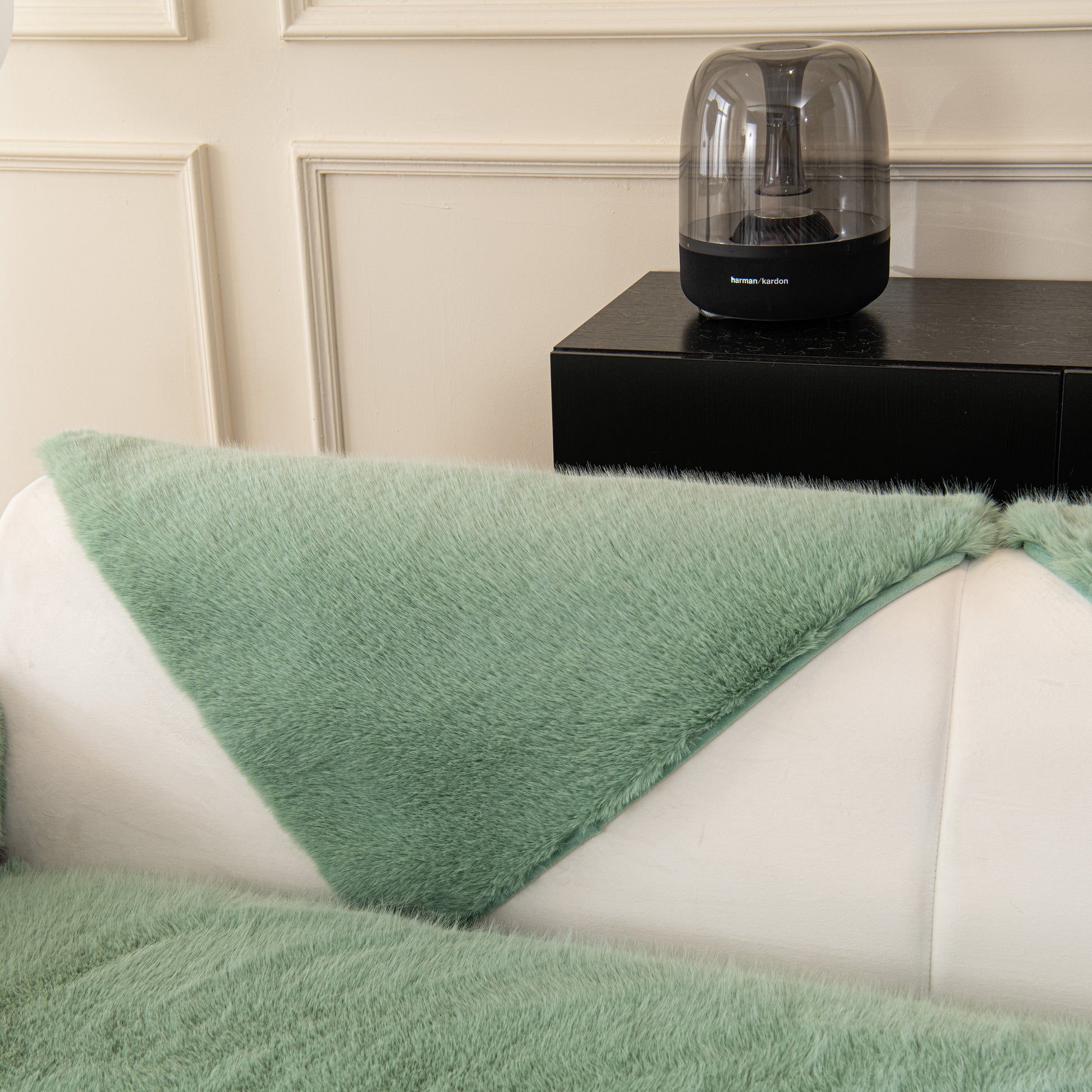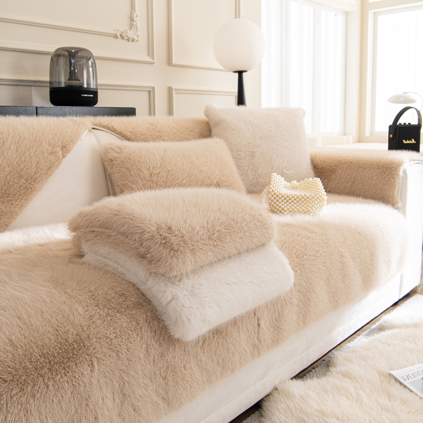 Faux Mink Velvet Luxury Fluffy Sofa Cushion, Winter Warm Thick Plush Non-slip Sofa Covers