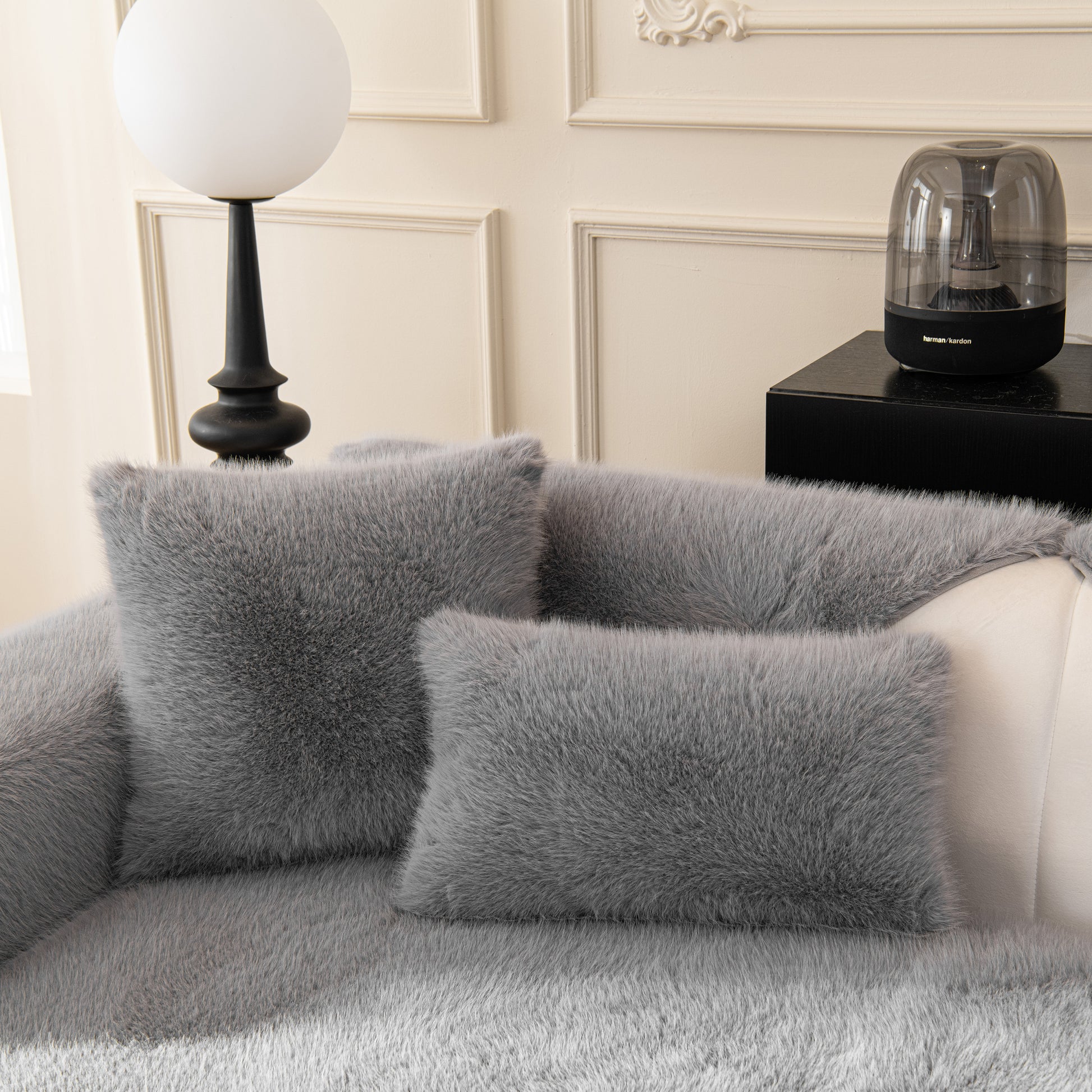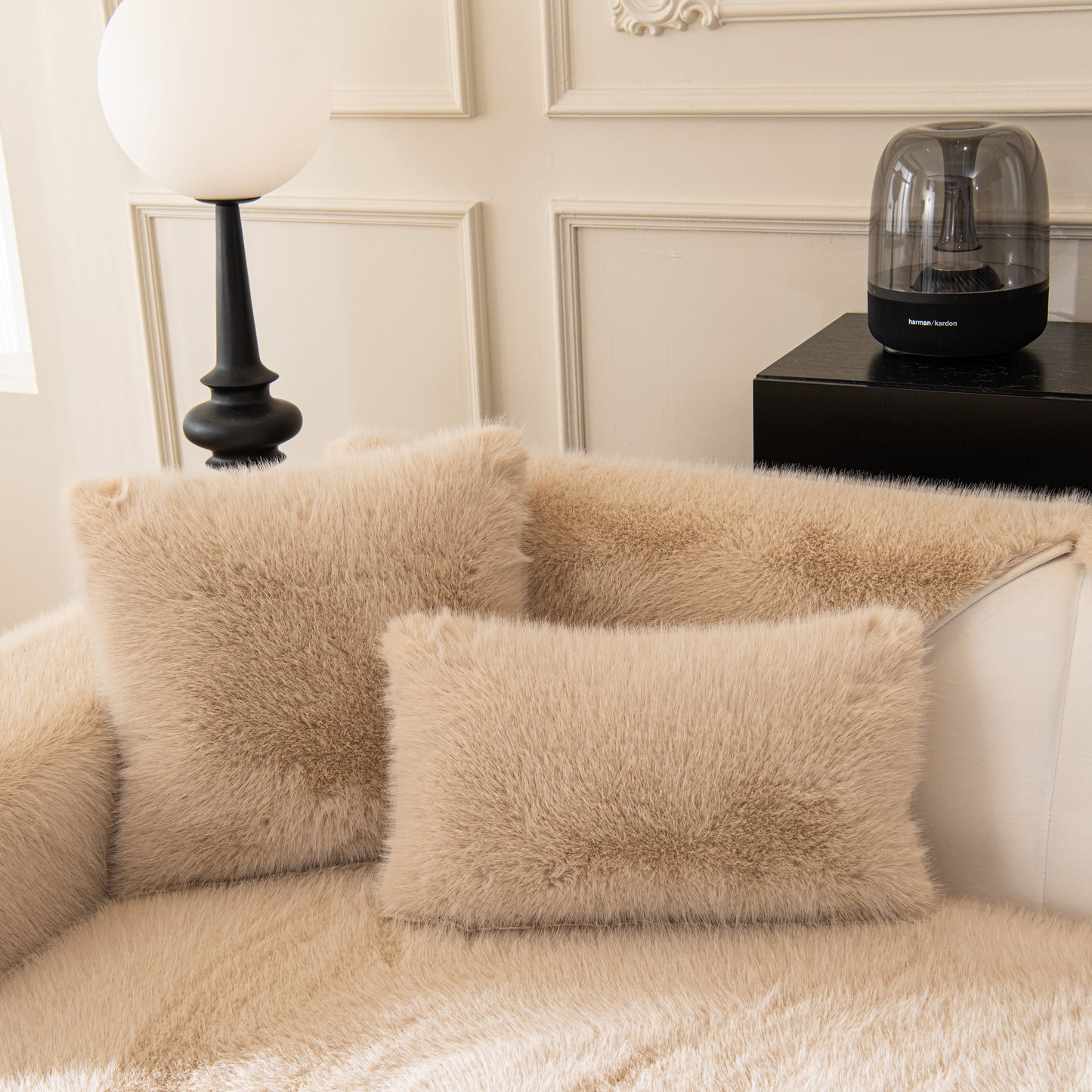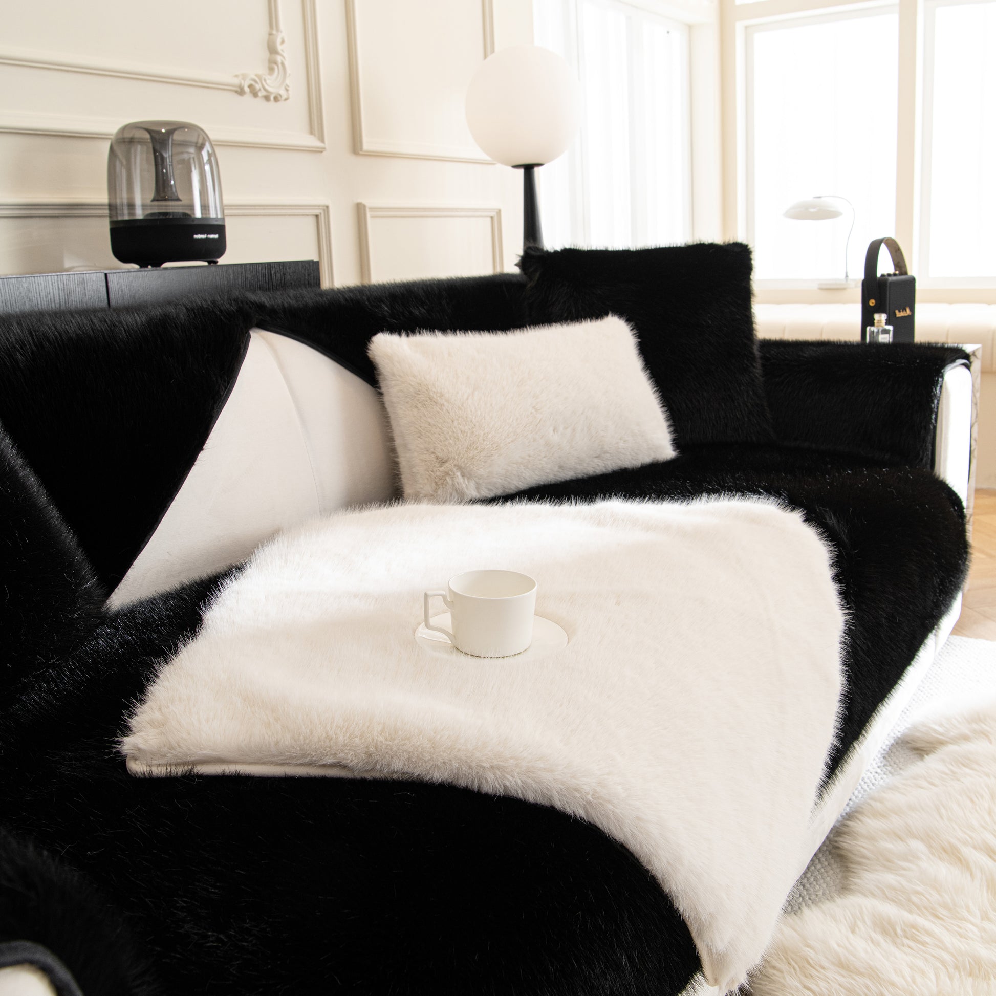 Faux Mink Velvet Luxury Fluffy Sofa Cushion, Winter Warm Thick Plush Non-slip Sofa Covers