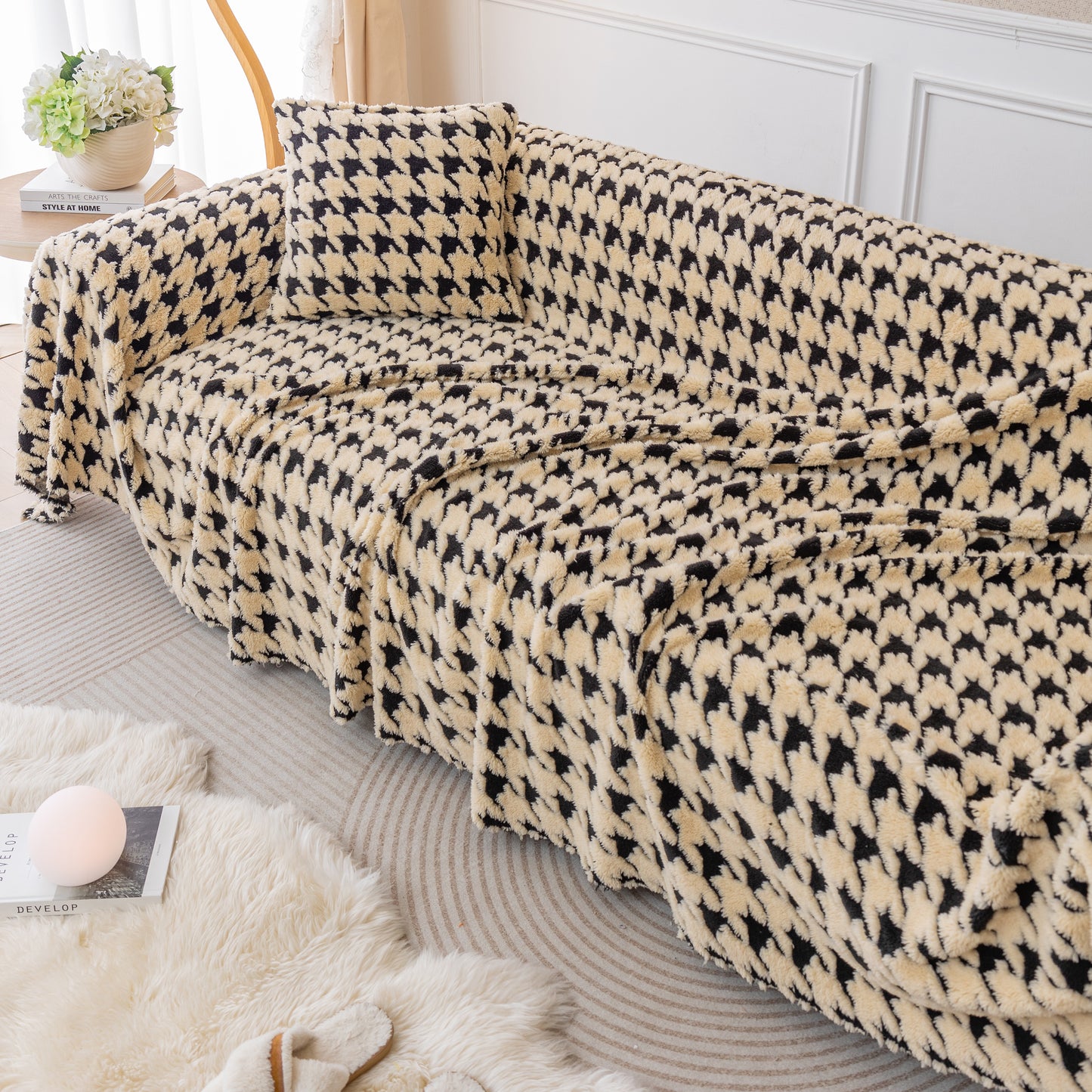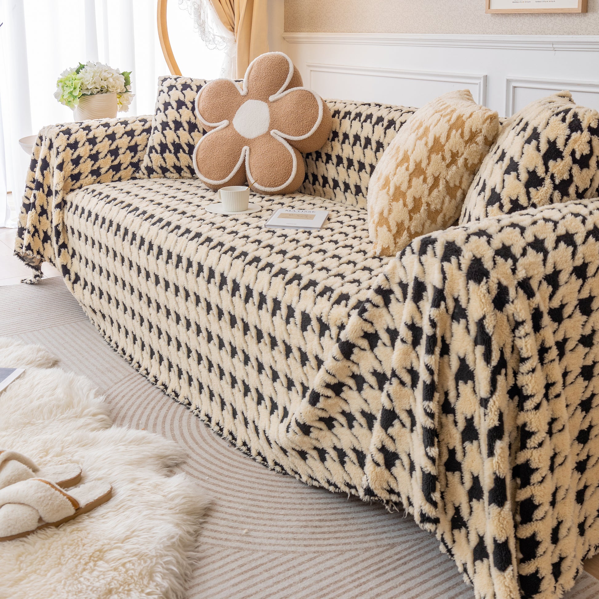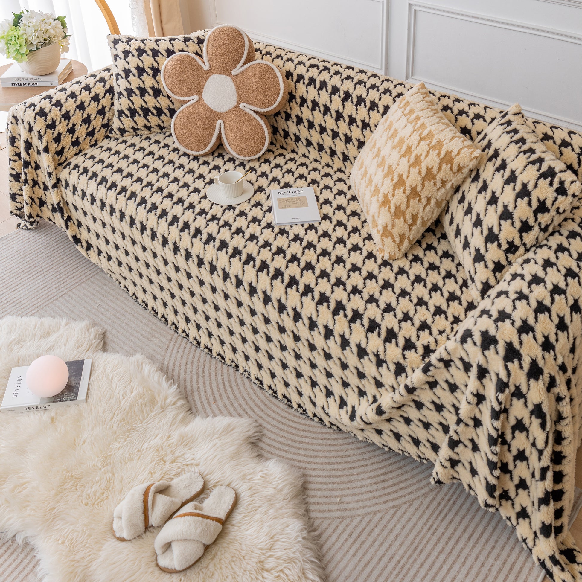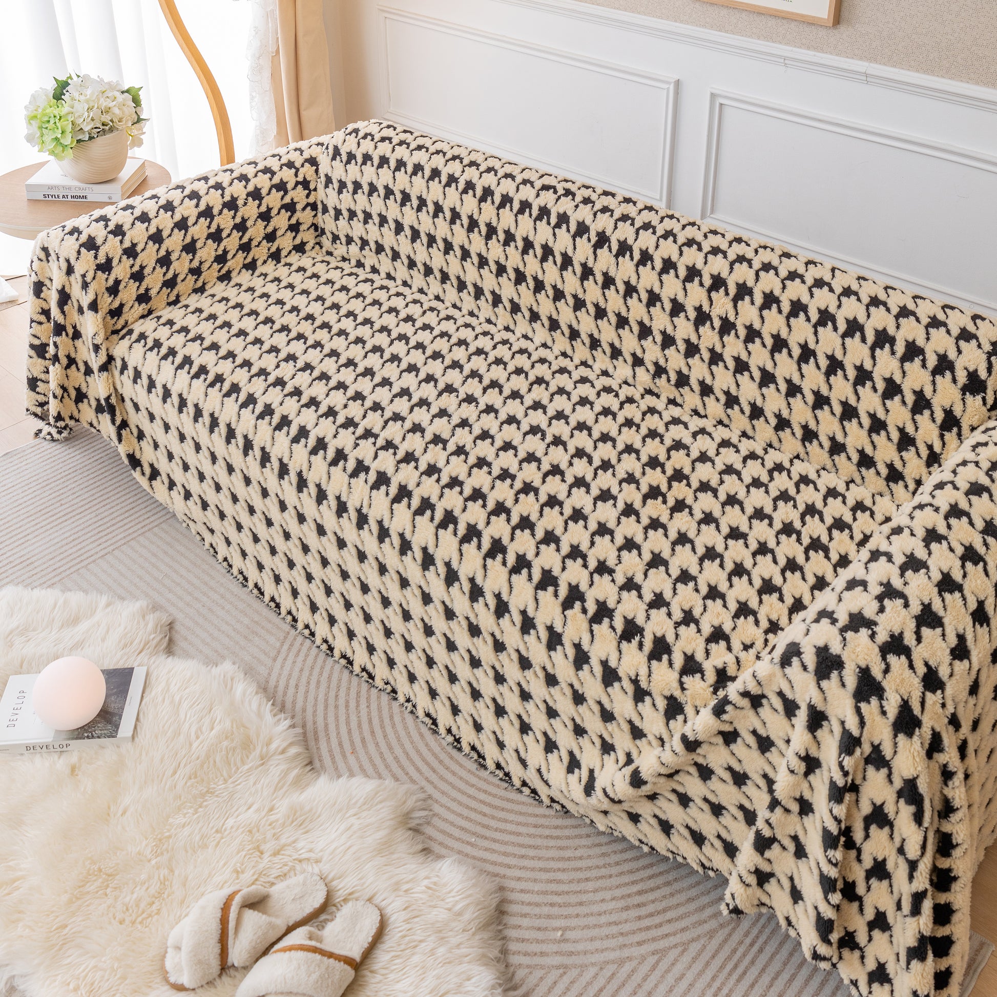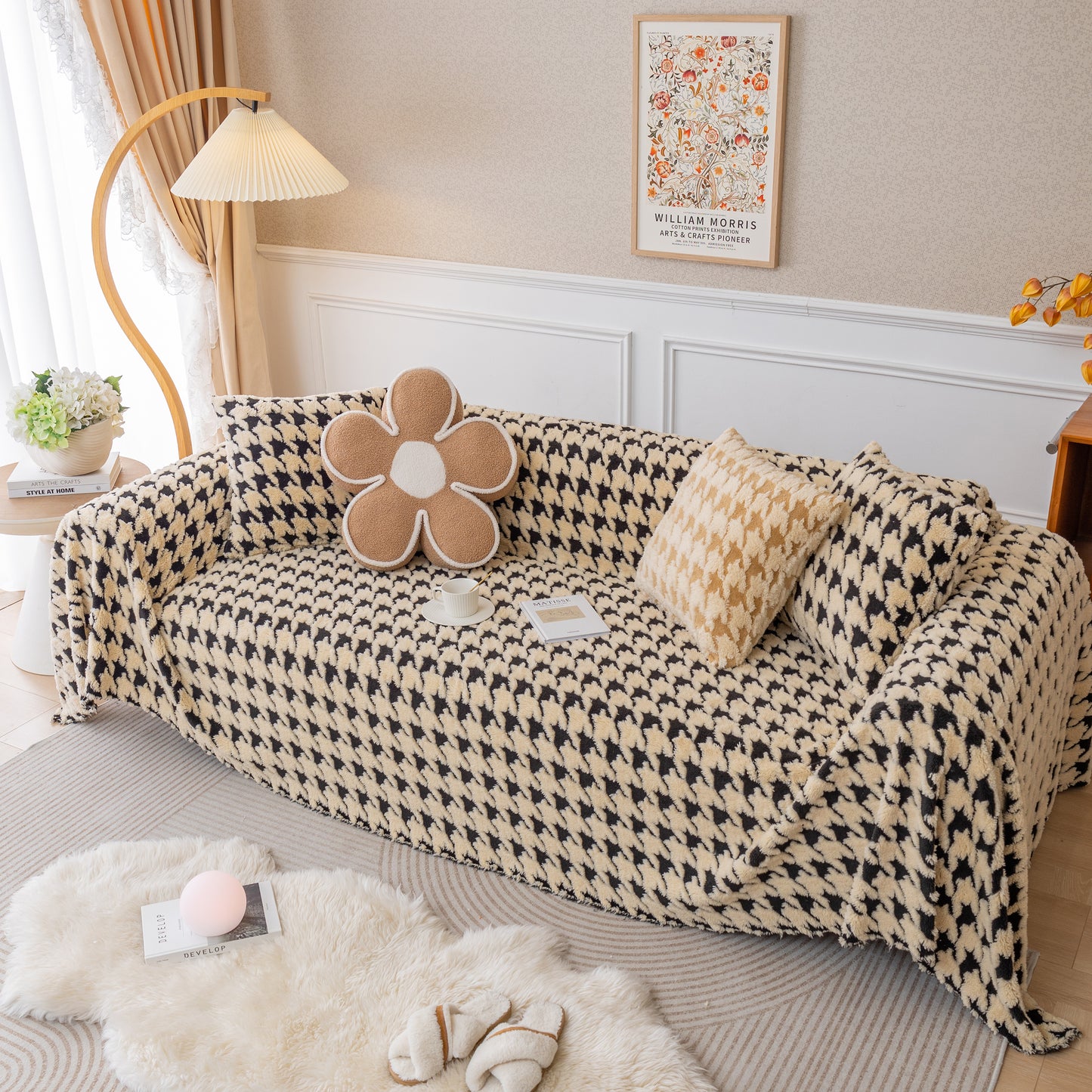 Luxury Plush Universal Couch Cover Blanket, Washable Couch Protector Houndstooth Sofa Covers