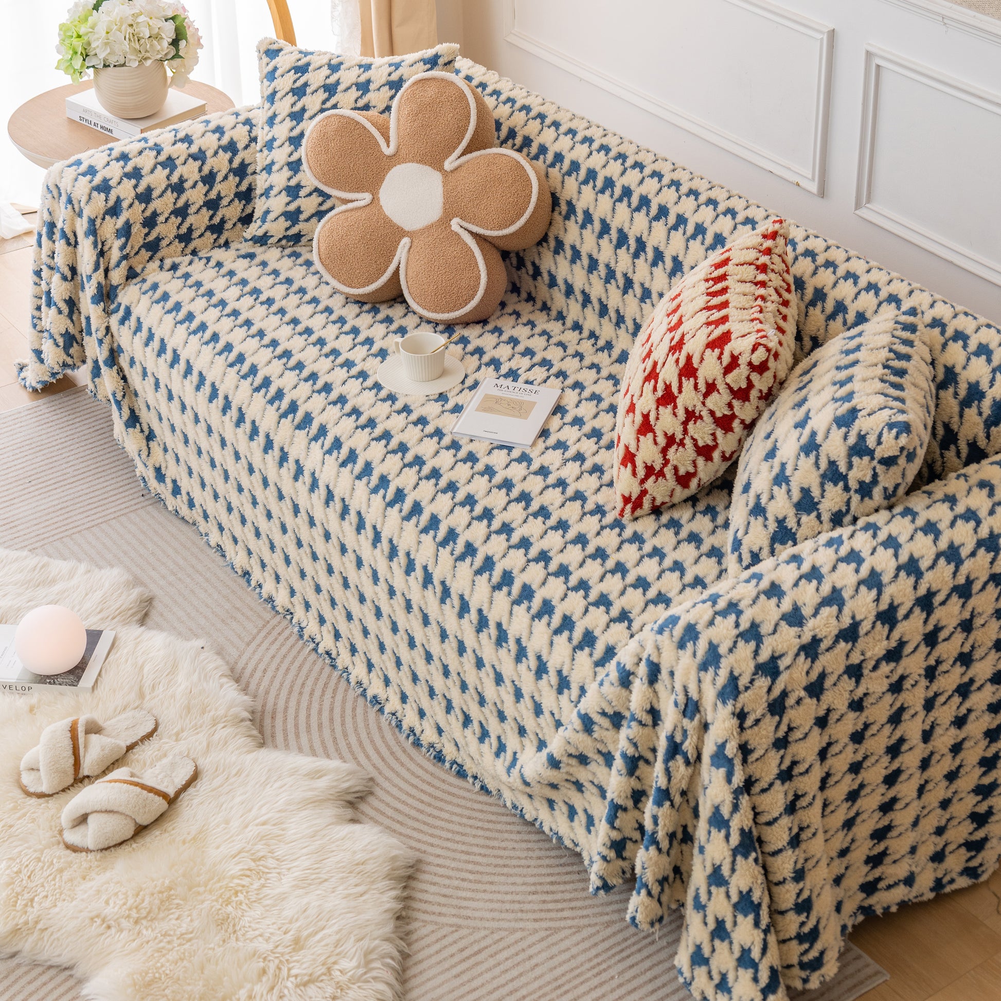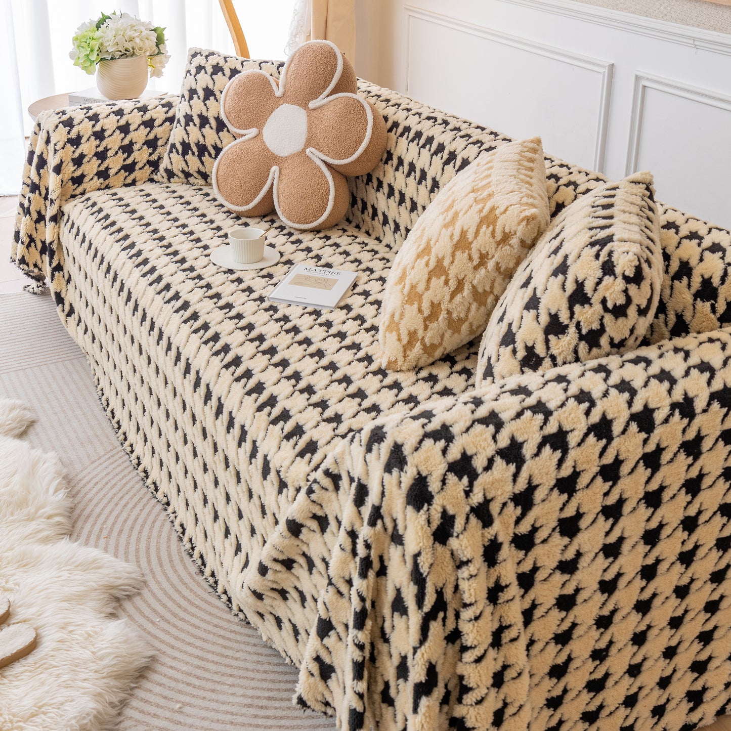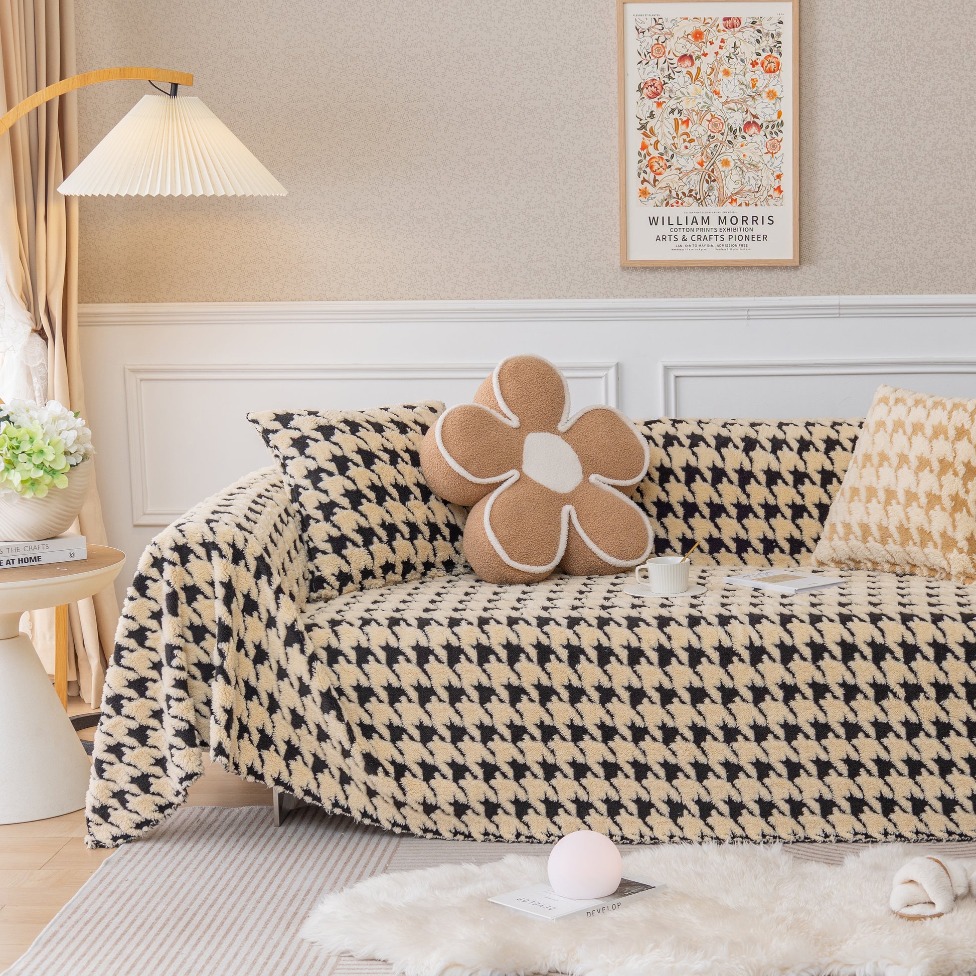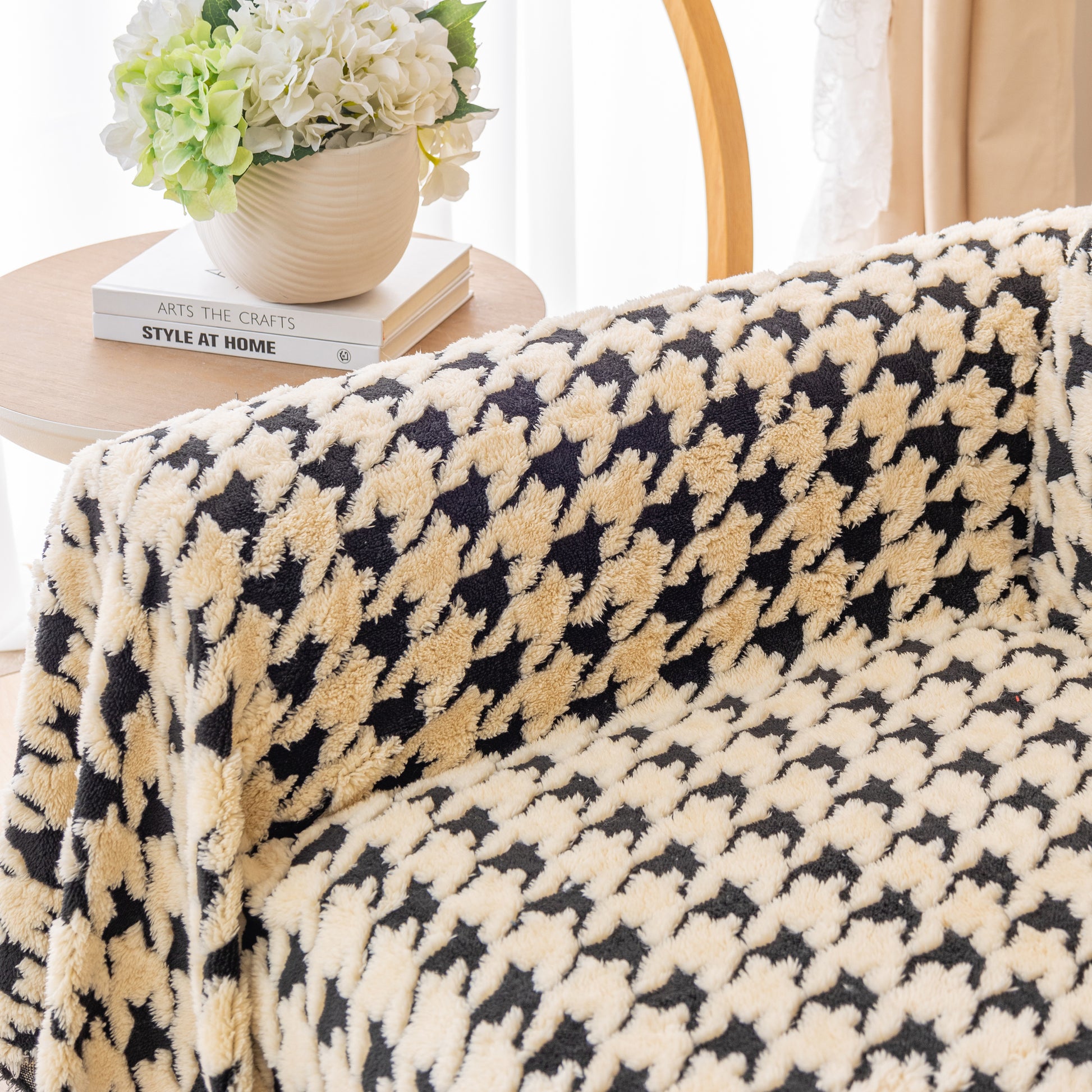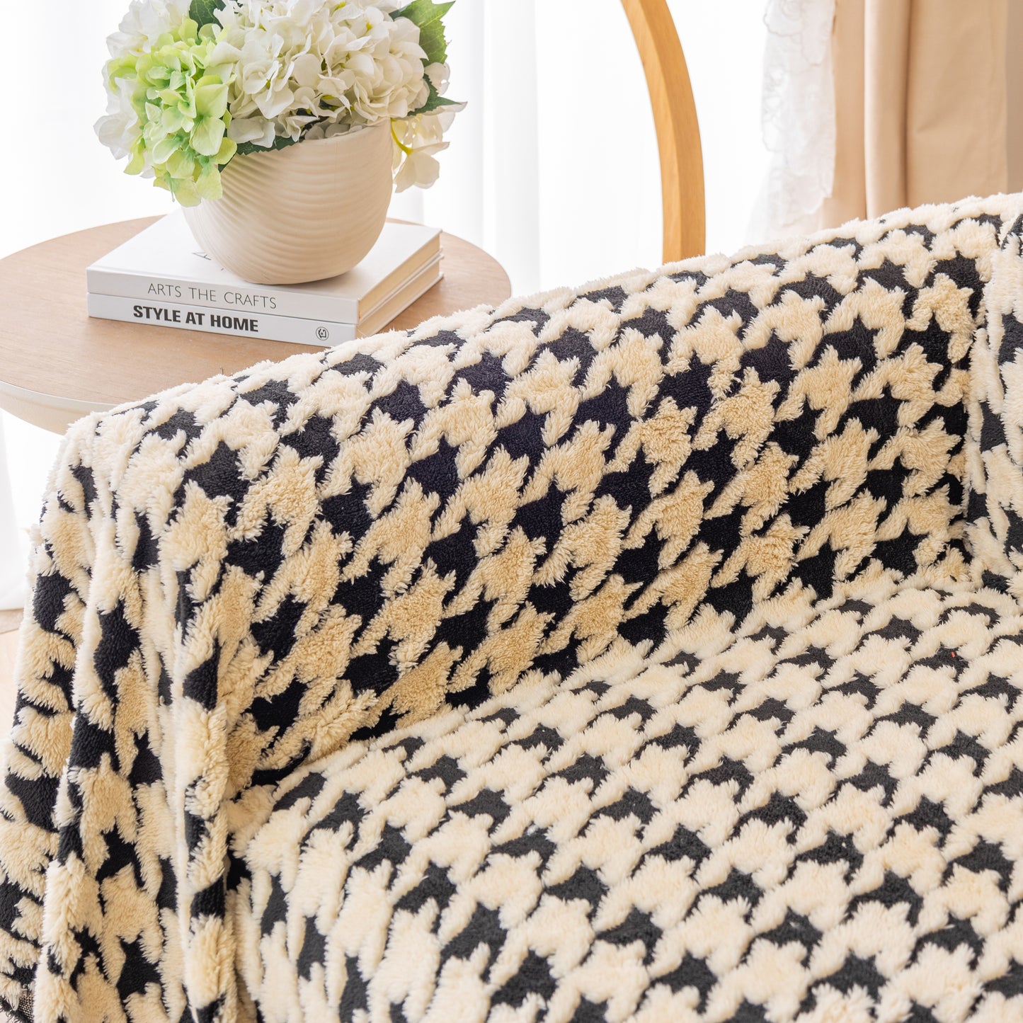 Luxury Plush Universal Couch Cover Blanket, Washable Couch Protector Houndstooth Sofa Covers