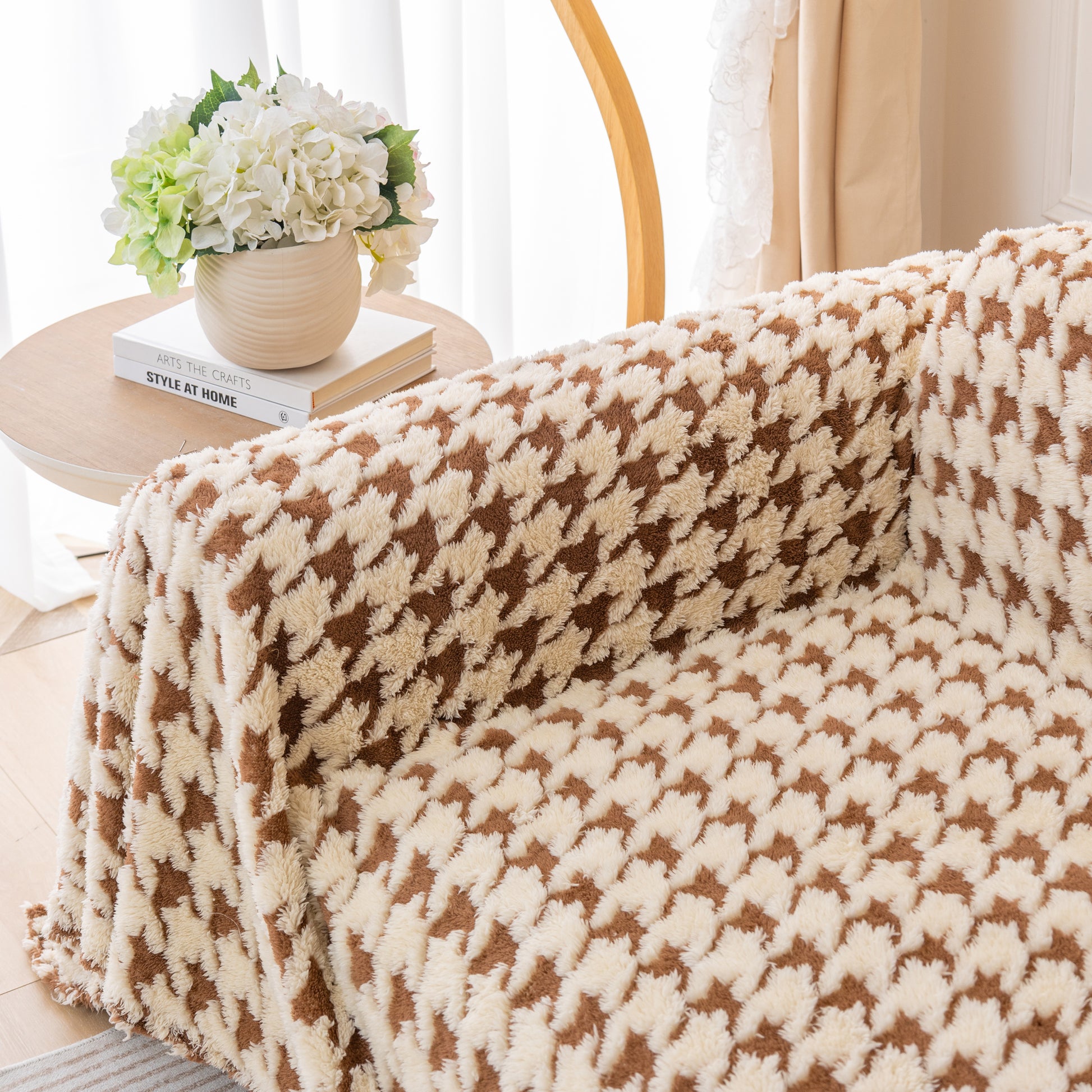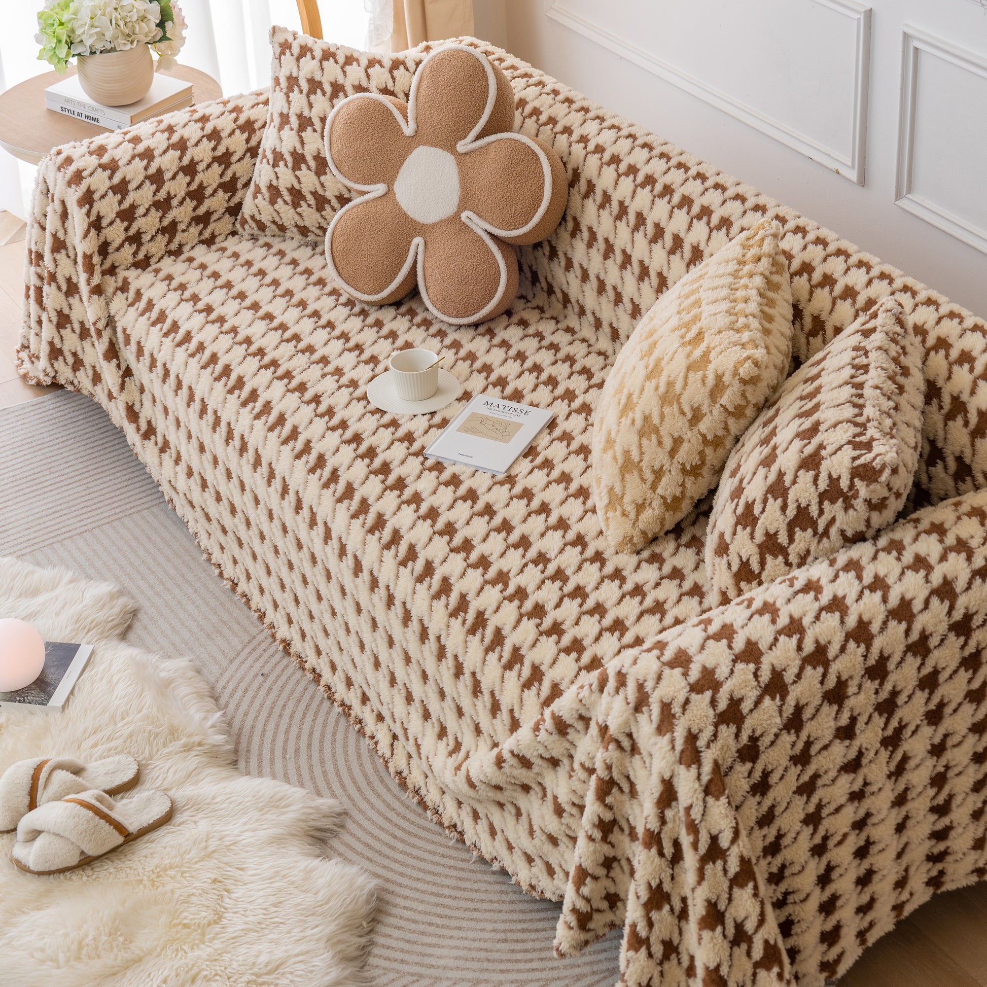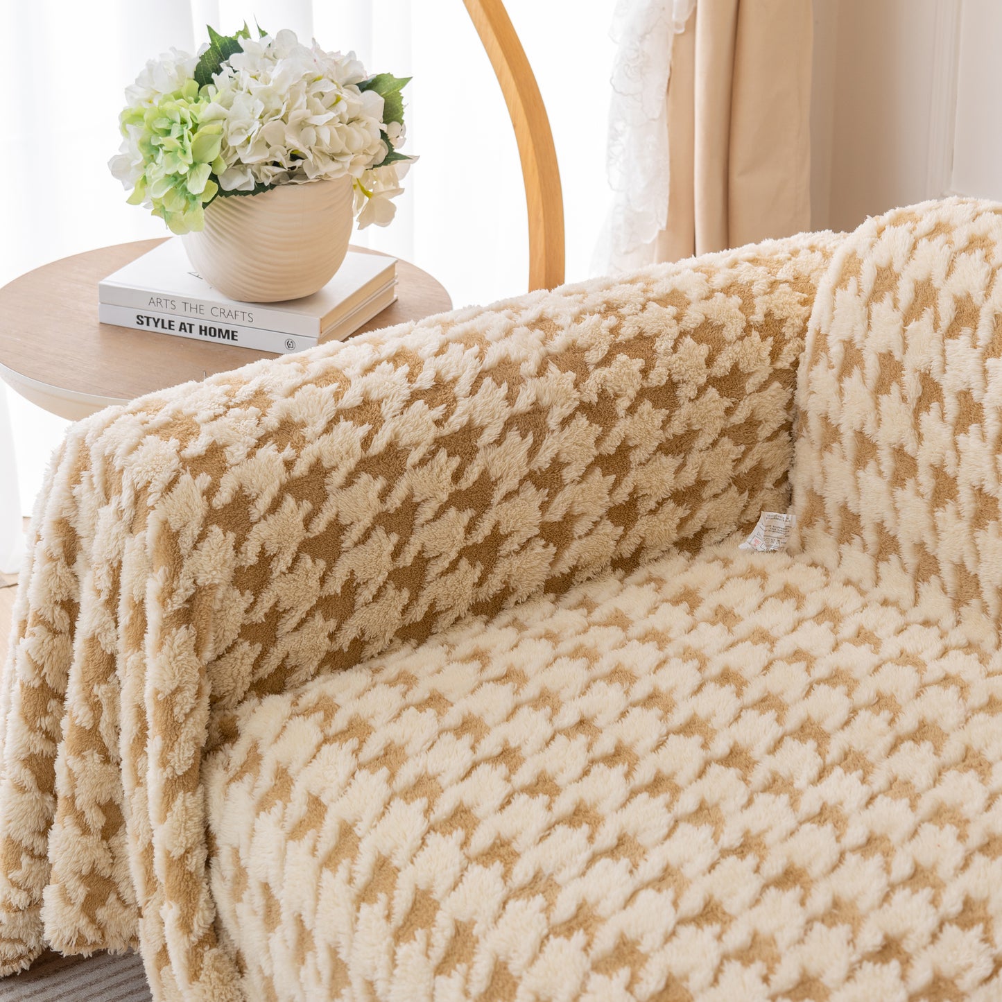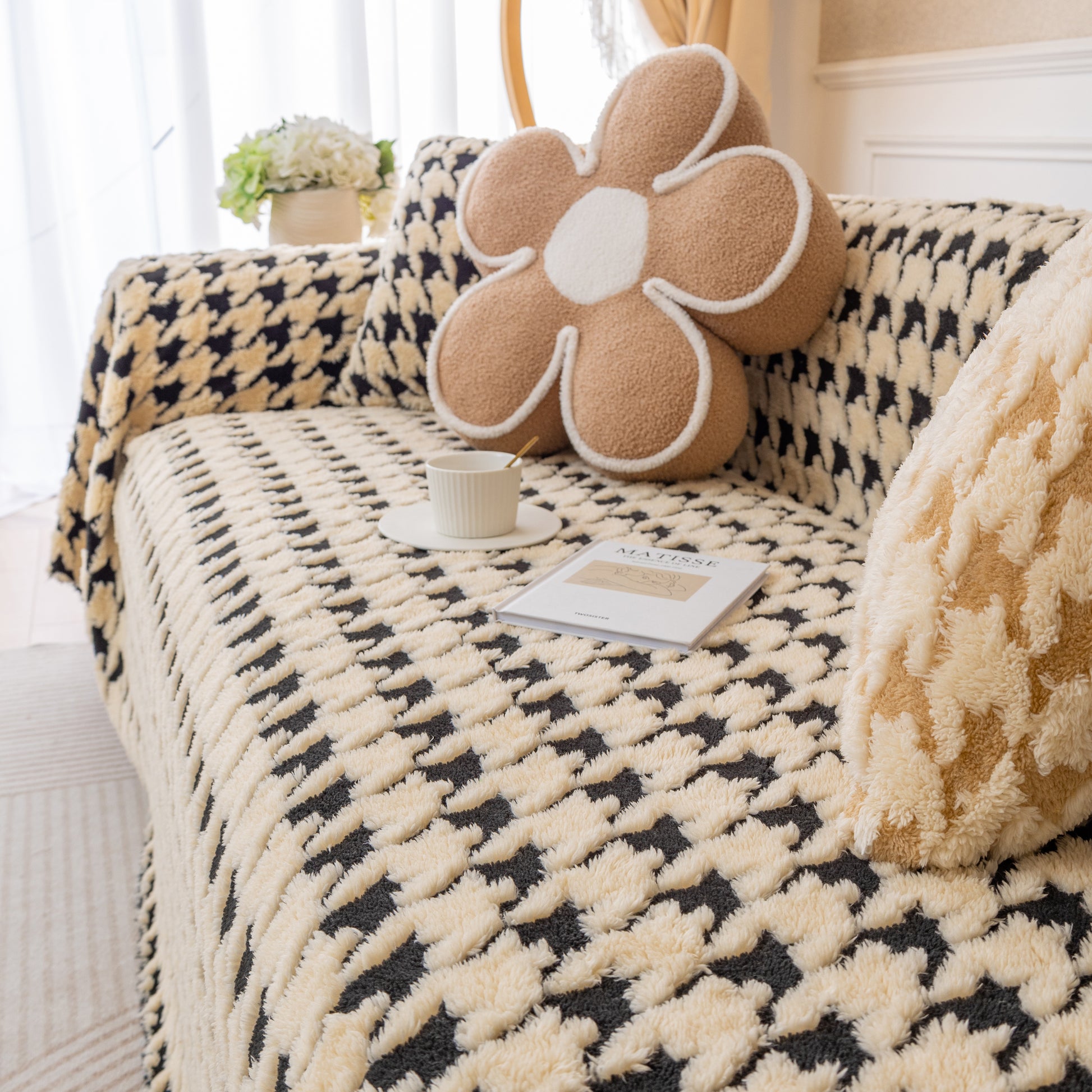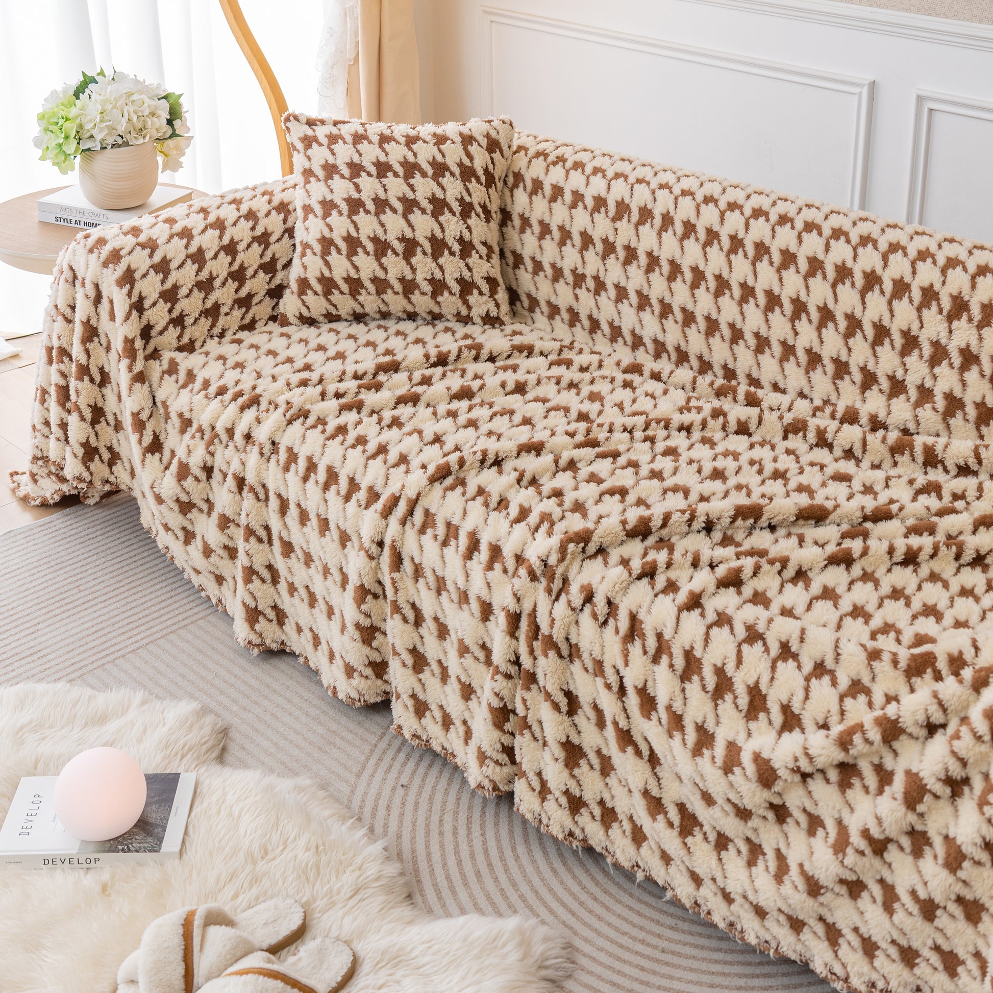 Luxury Plush Universal Couch Cover Blanket, Washable Couch Protector Houndstooth Sofa Covers