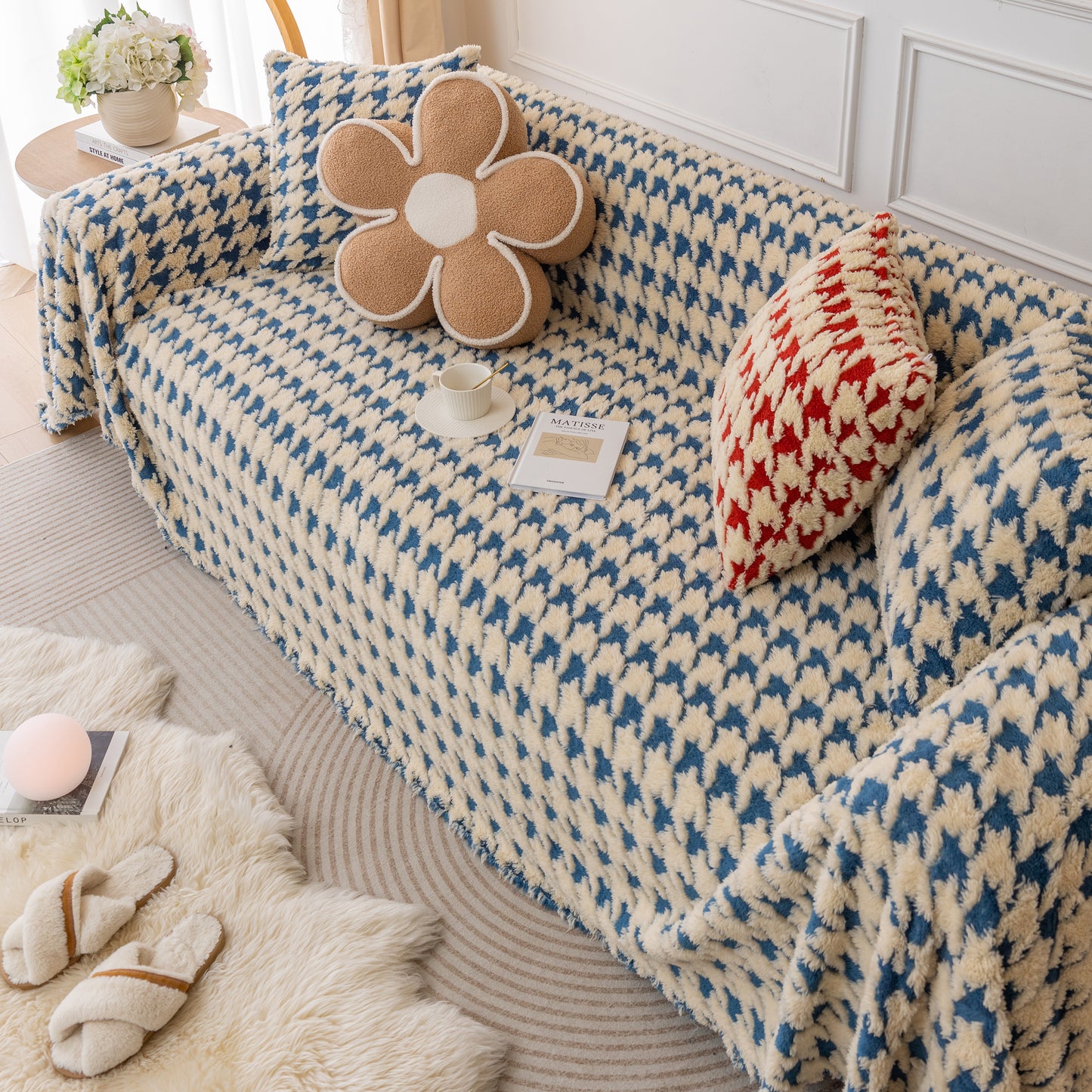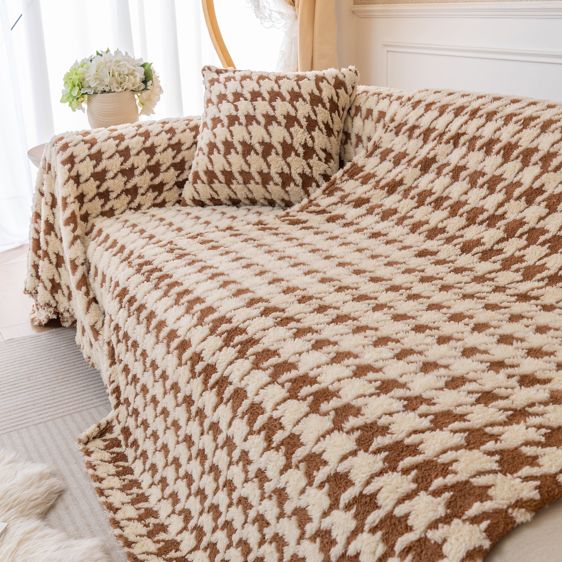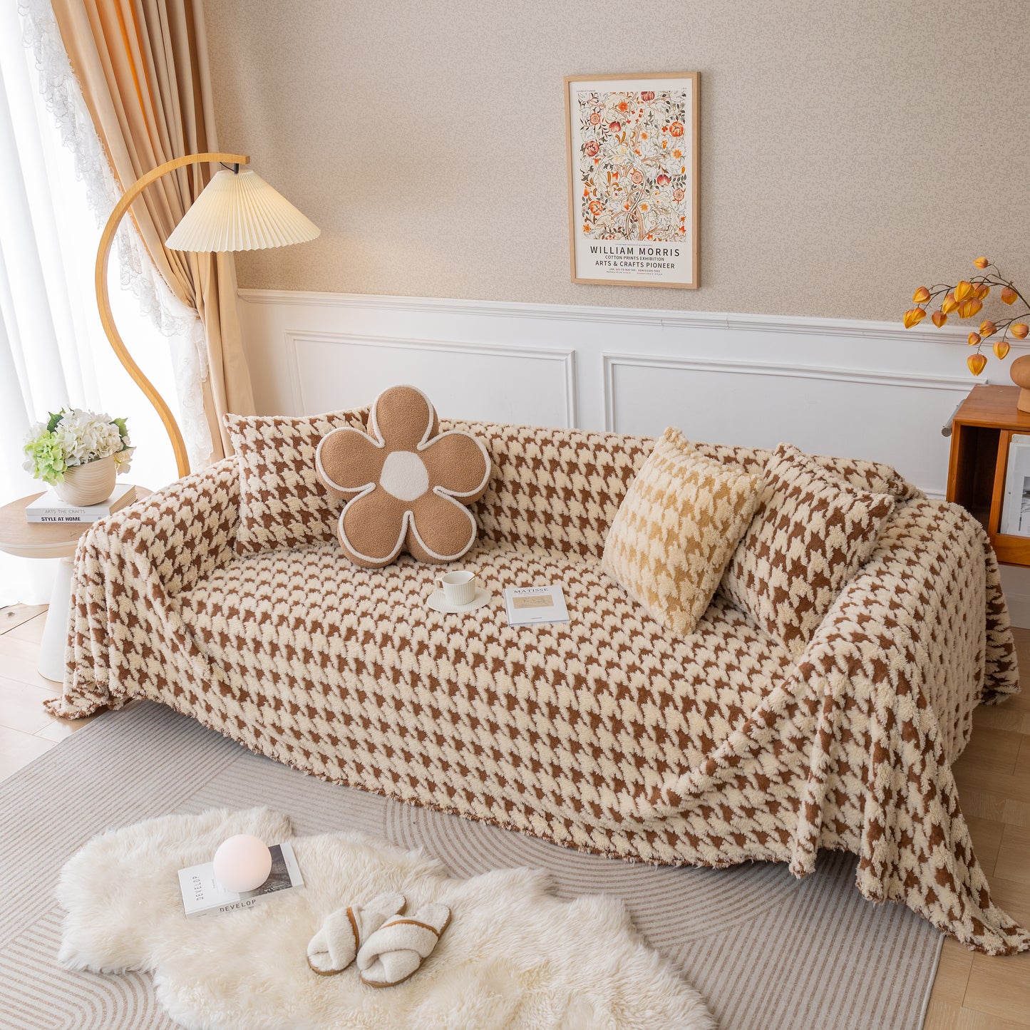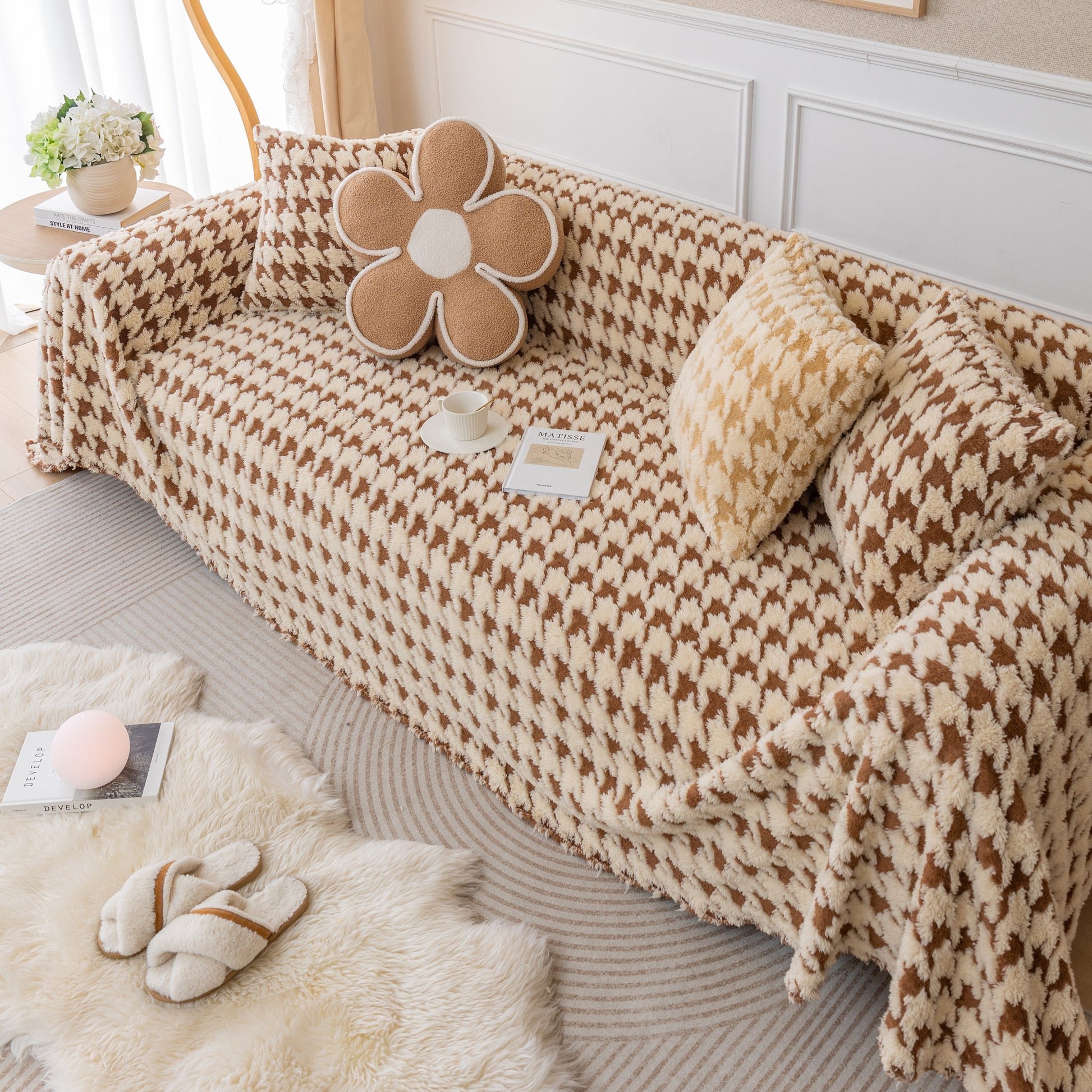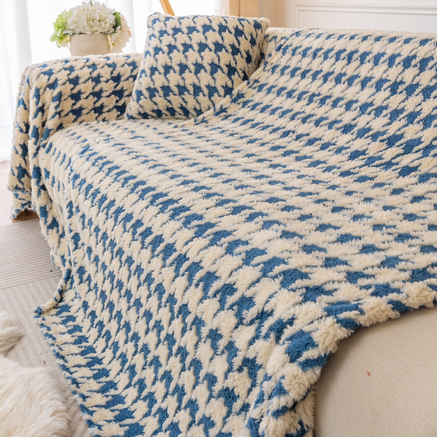 Luxury Plush Universal Couch Cover Blanket, Washable Couch Protector Houndstooth Sofa Covers