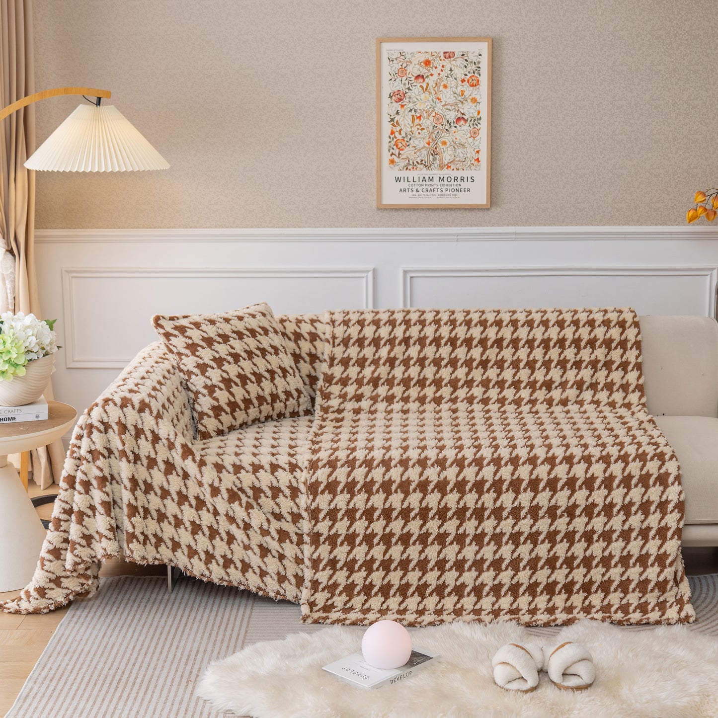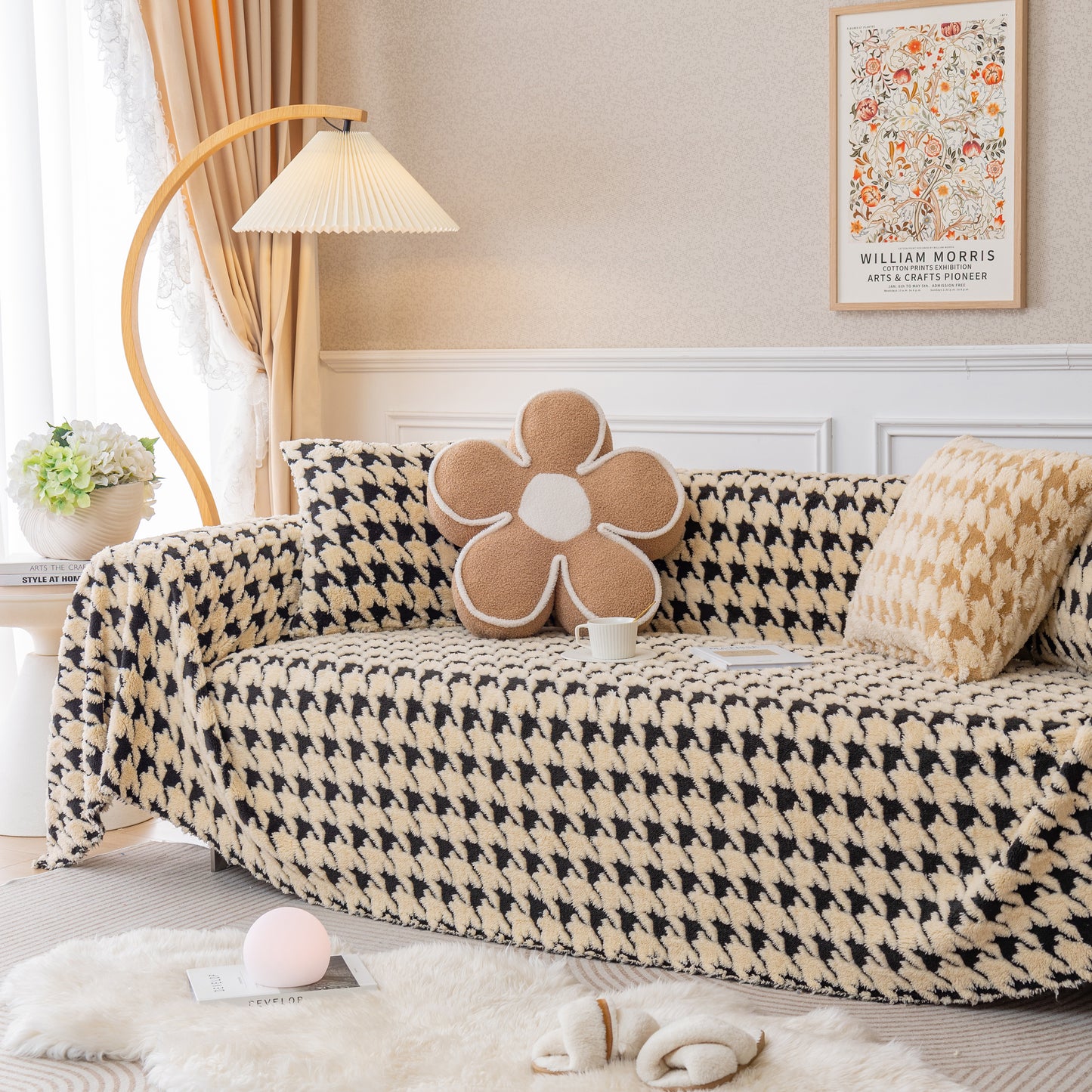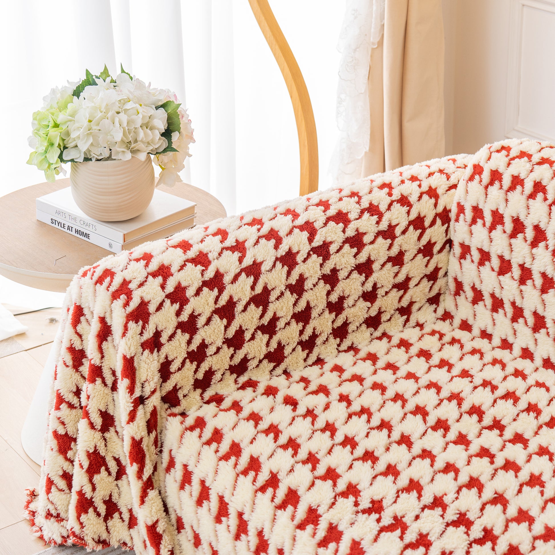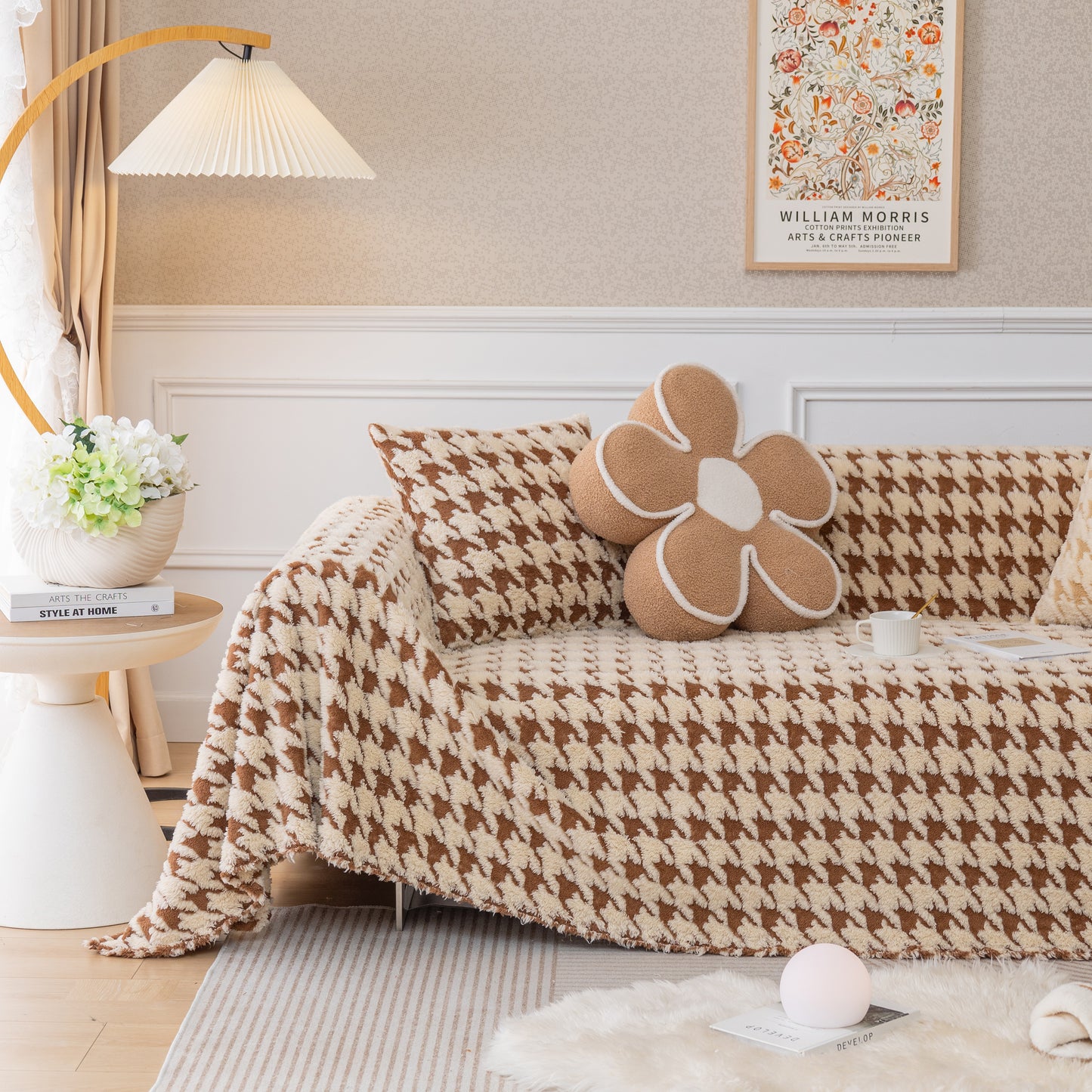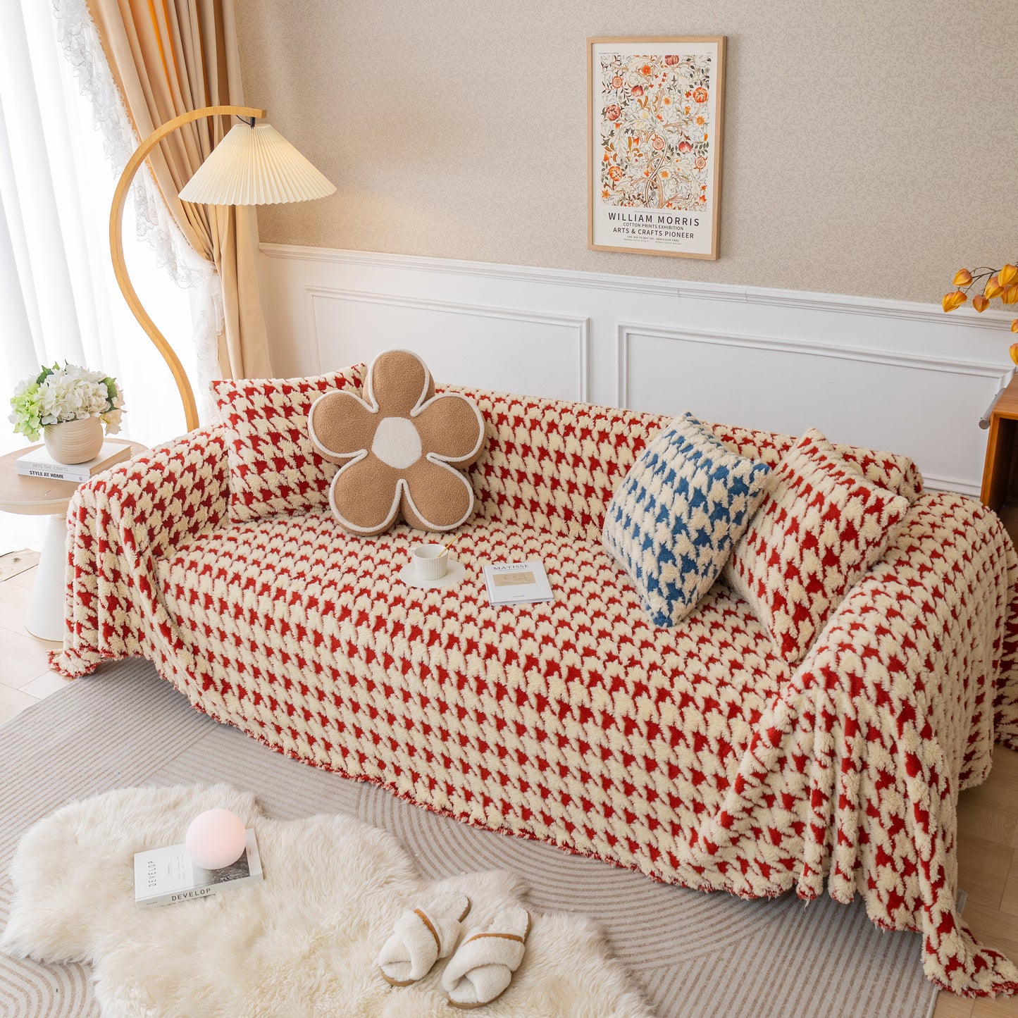 Luxury Plush Universal Couch Cover Blanket, Washable Couch Protector Houndstooth Sofa Covers