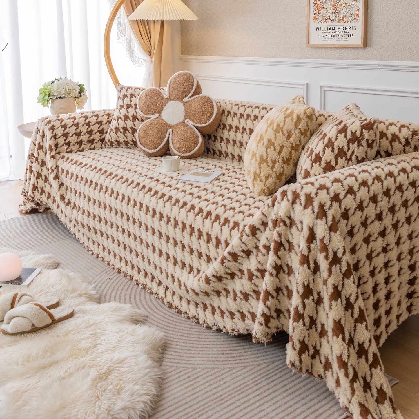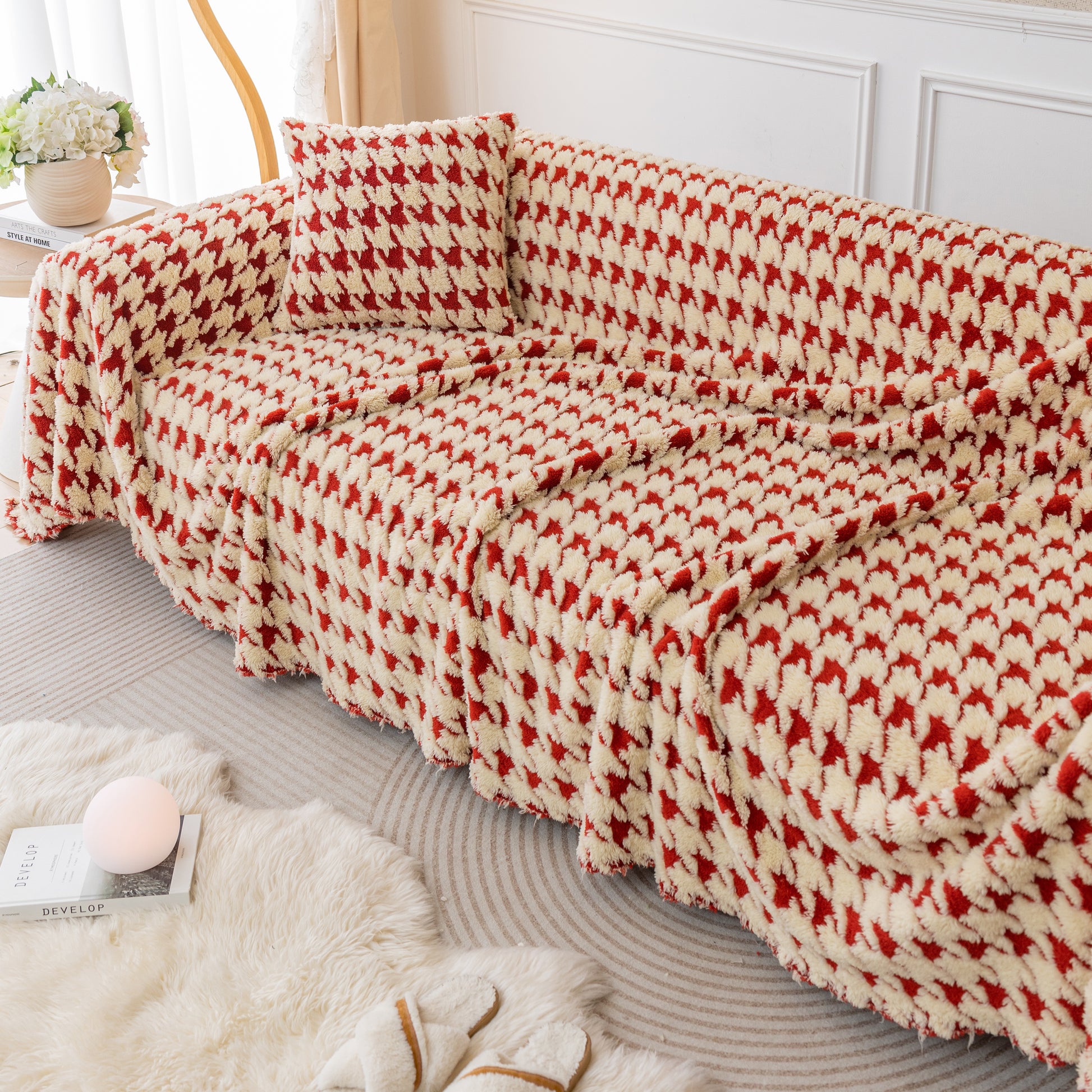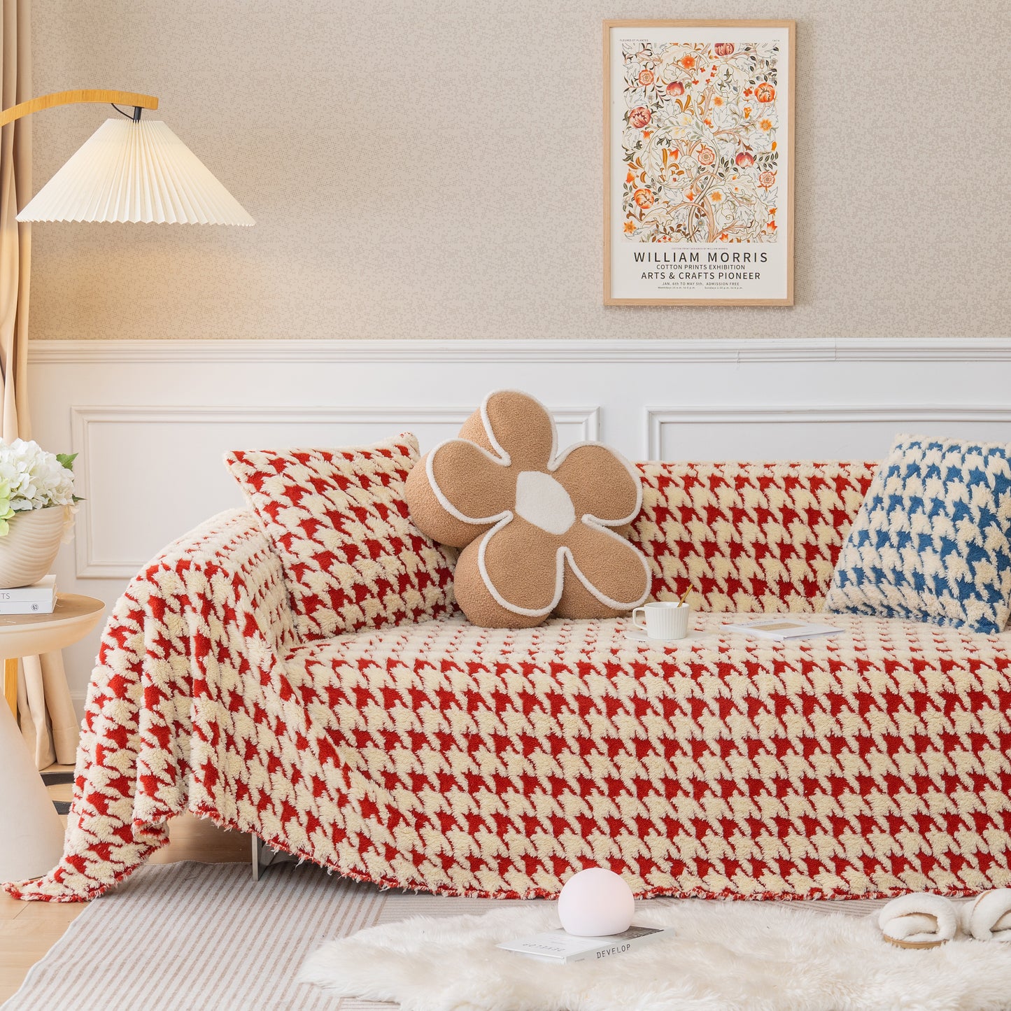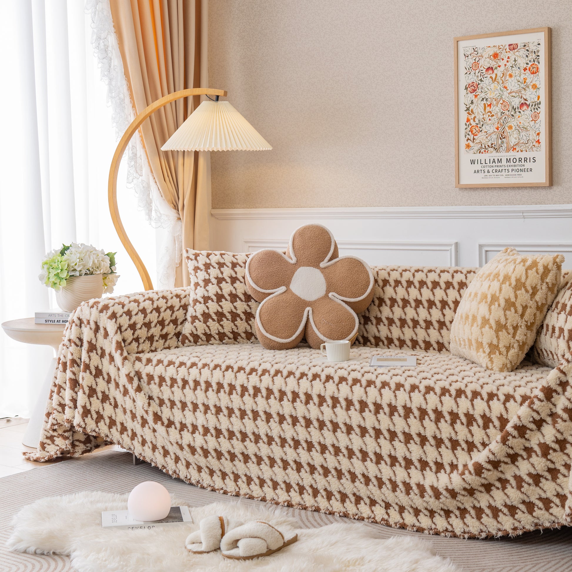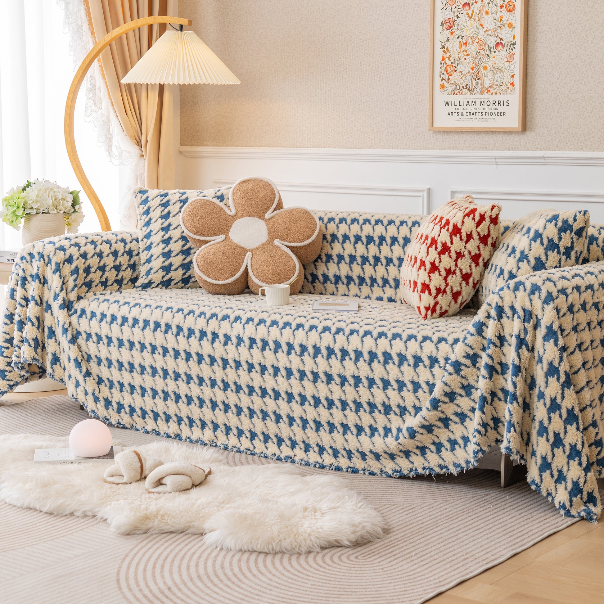 Luxury Plush Universal Couch Cover Blanket, Washable Couch Protector Houndstooth Sofa Covers