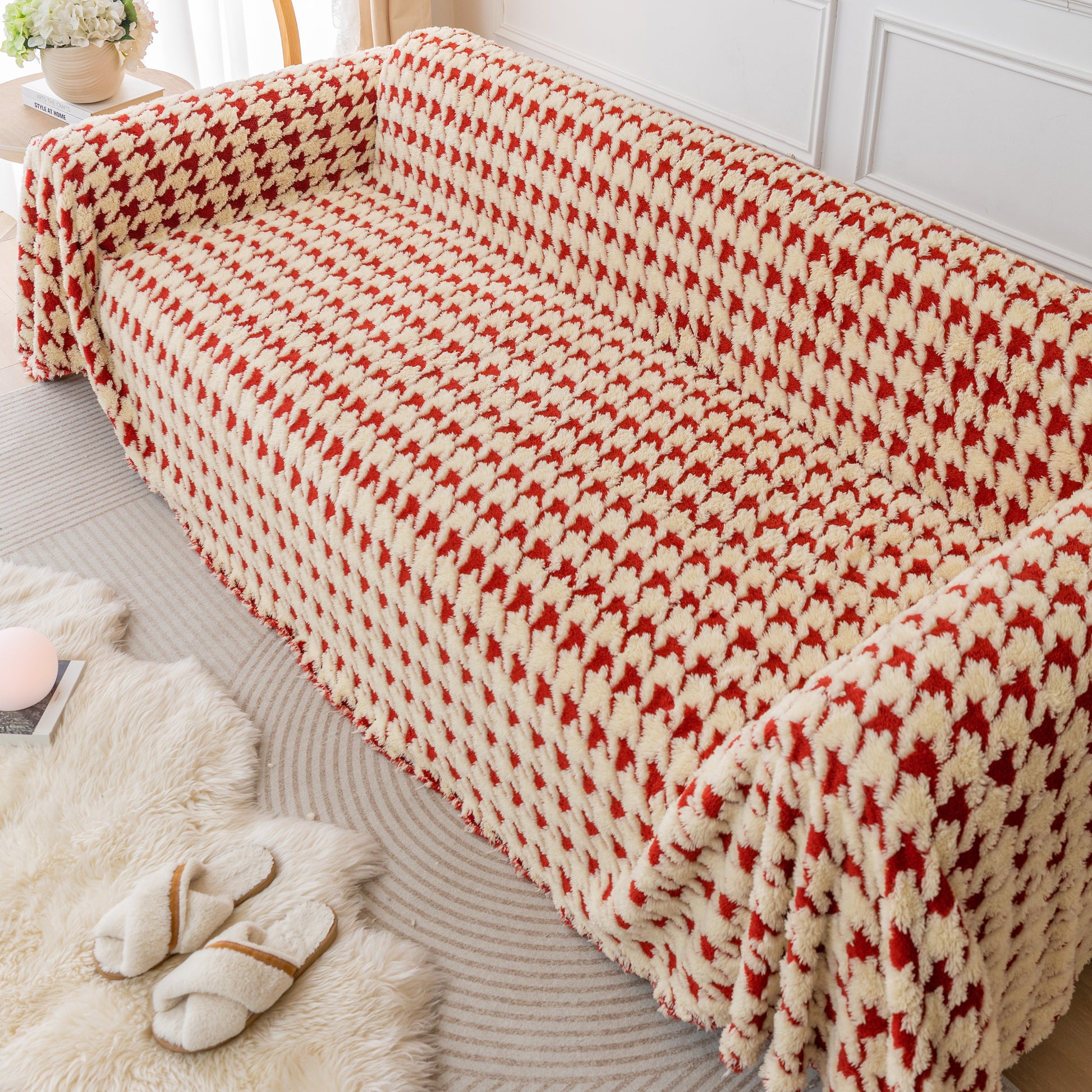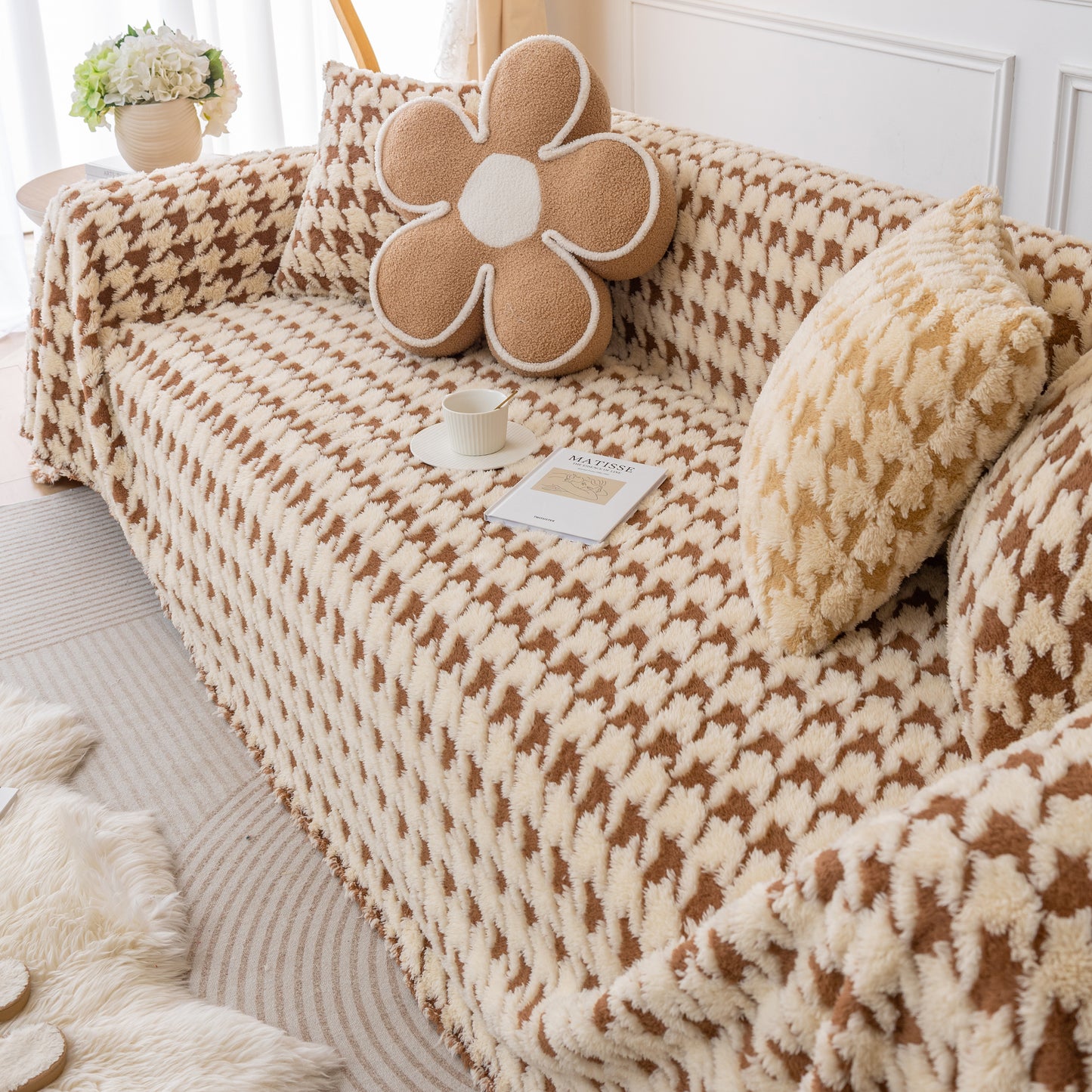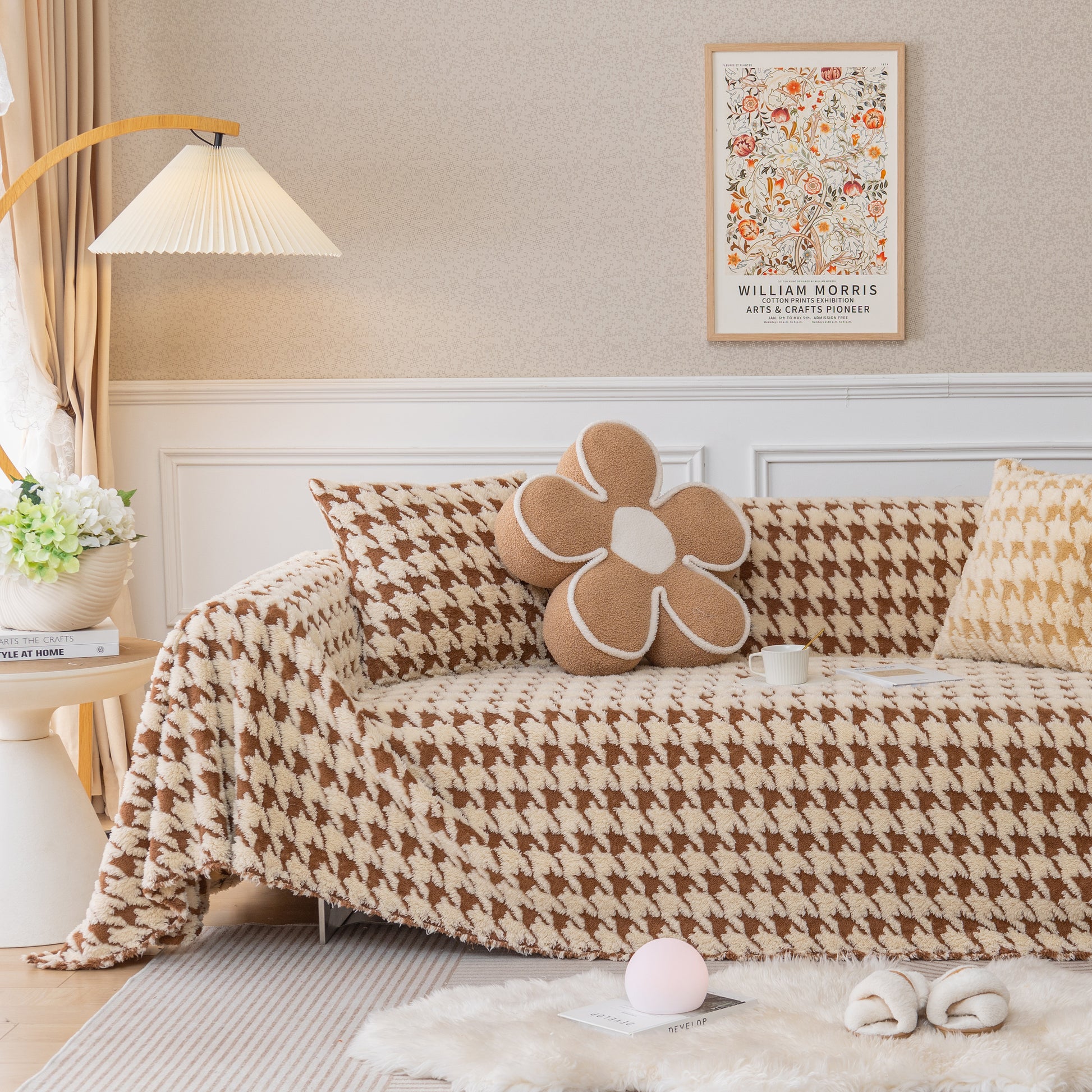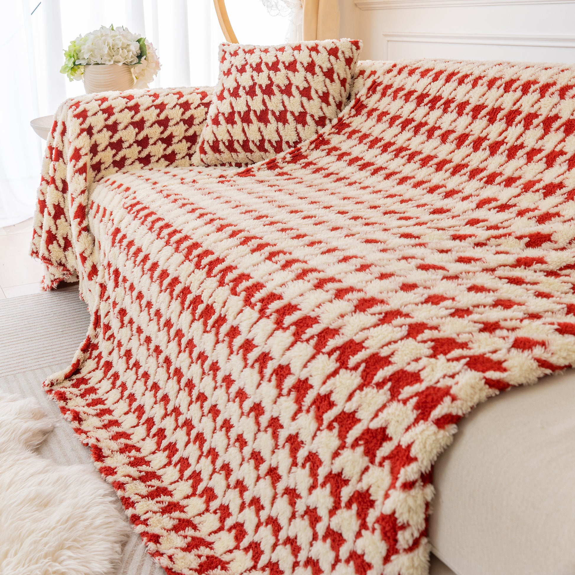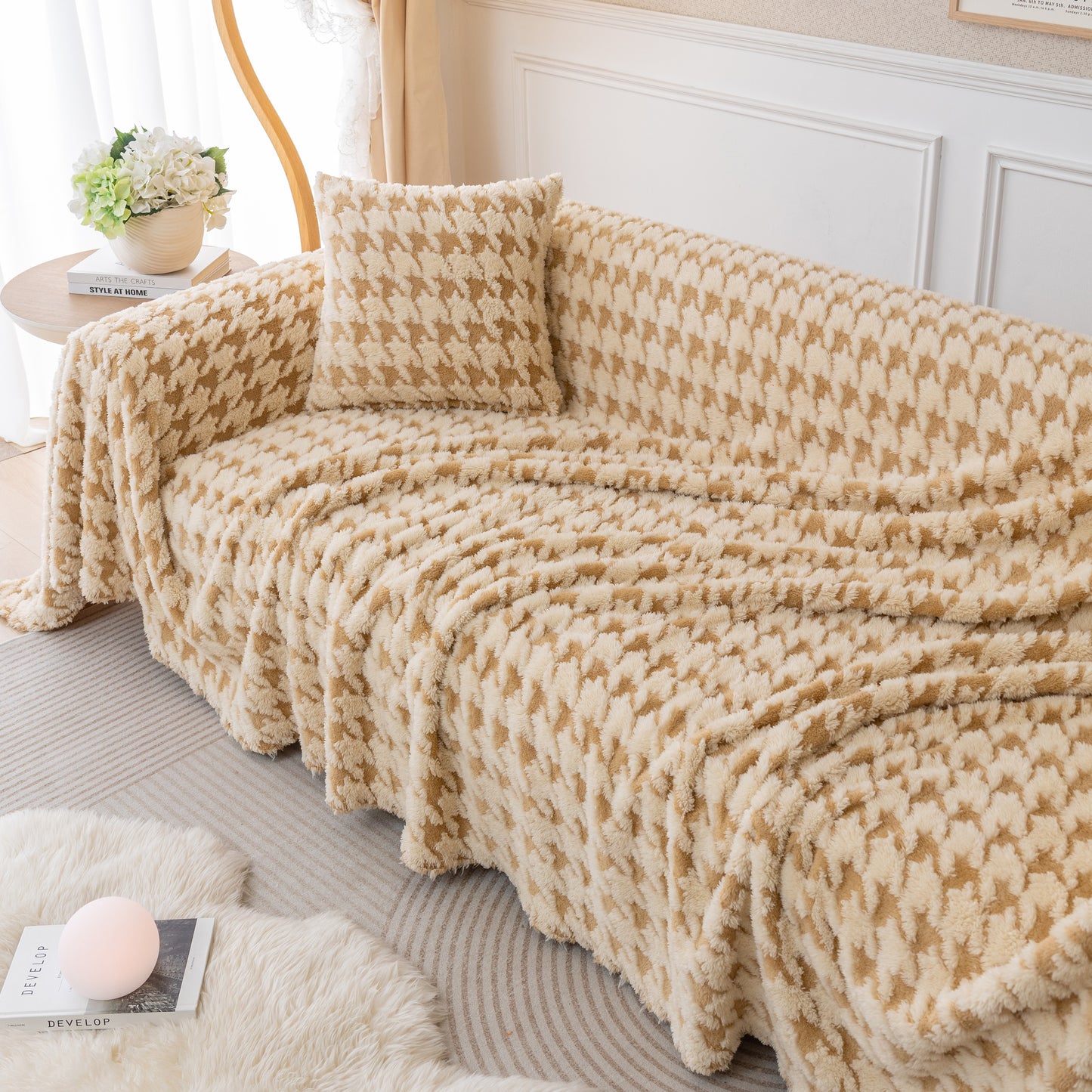 Luxury Plush Universal Couch Cover Blanket, Washable Couch Protector Houndstooth Sofa Covers