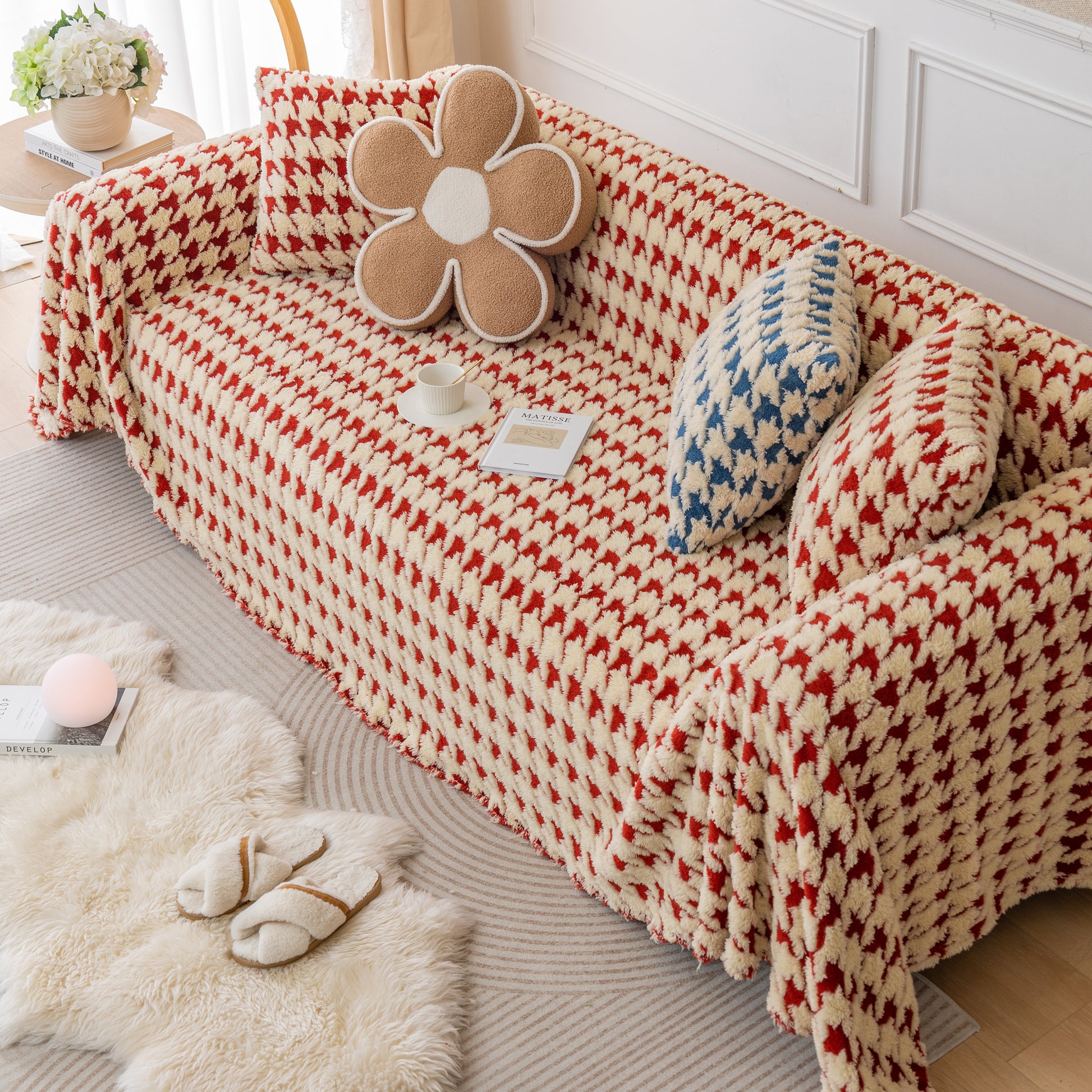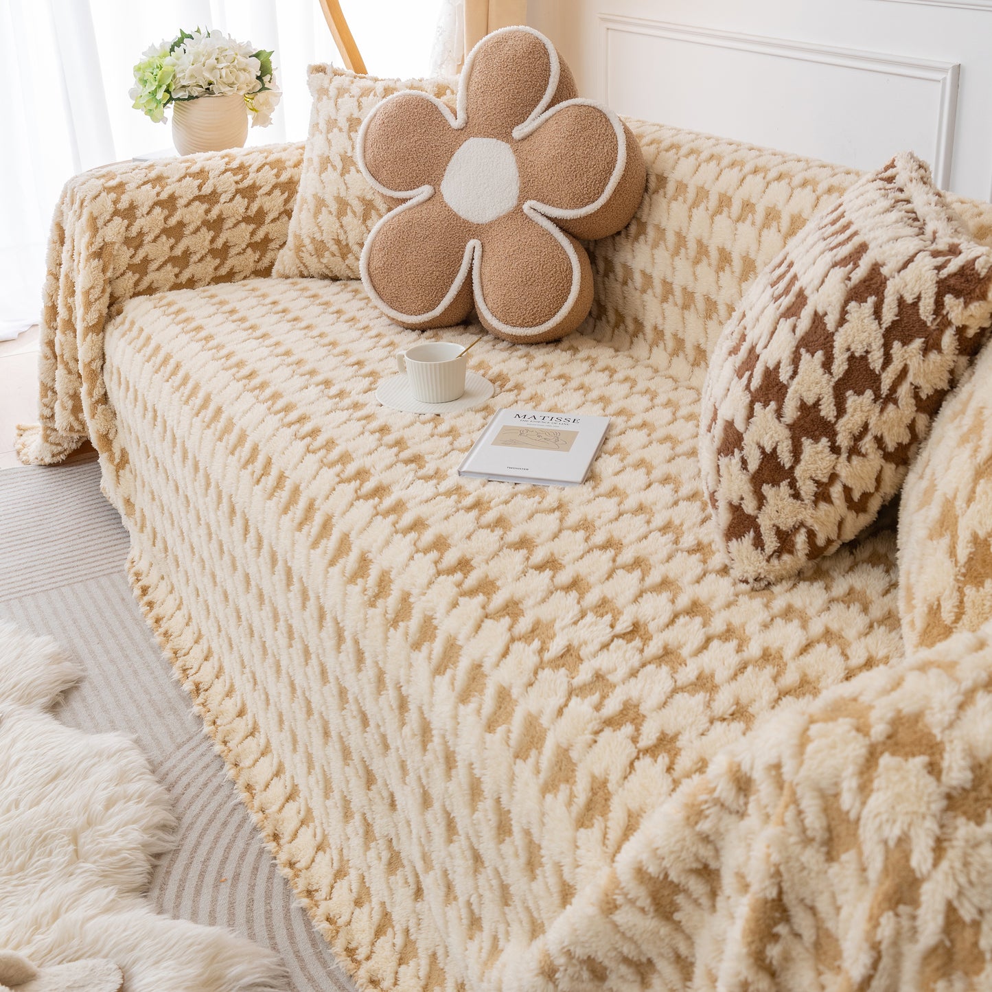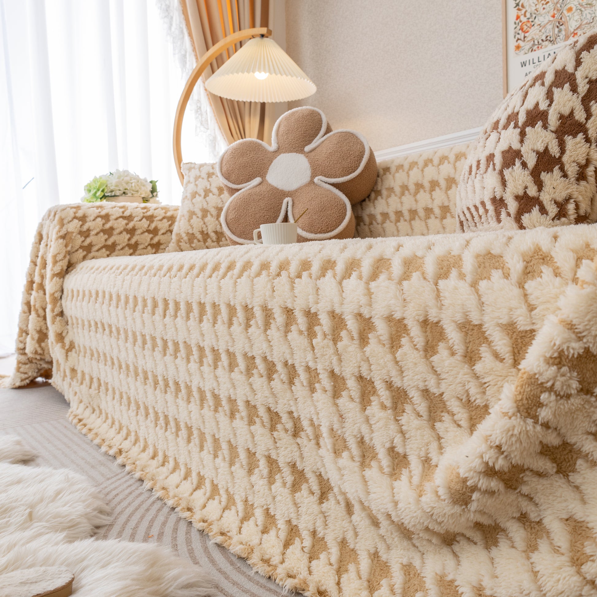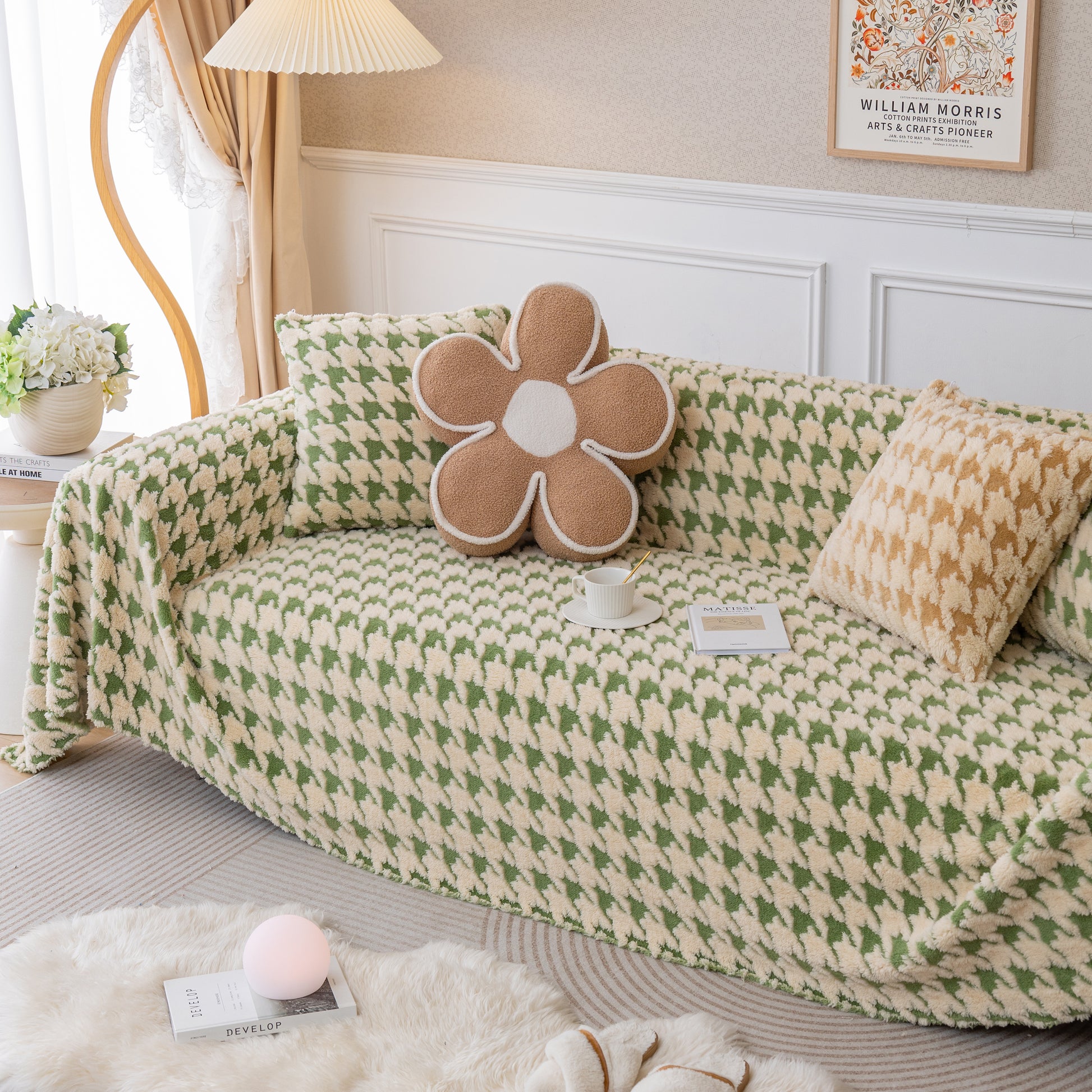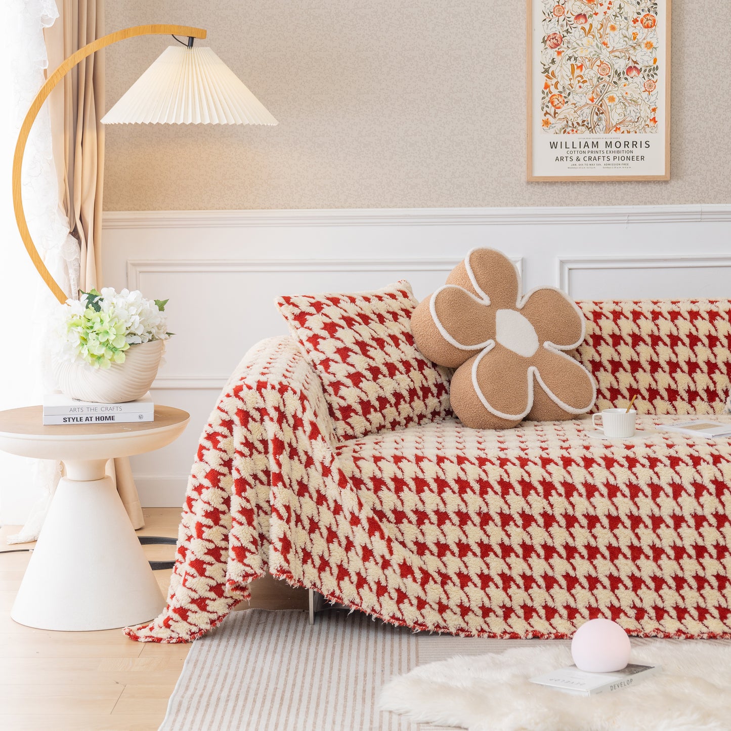 Luxury Plush Universal Couch Cover Blanket, Washable Couch Protector Houndstooth Sofa Covers