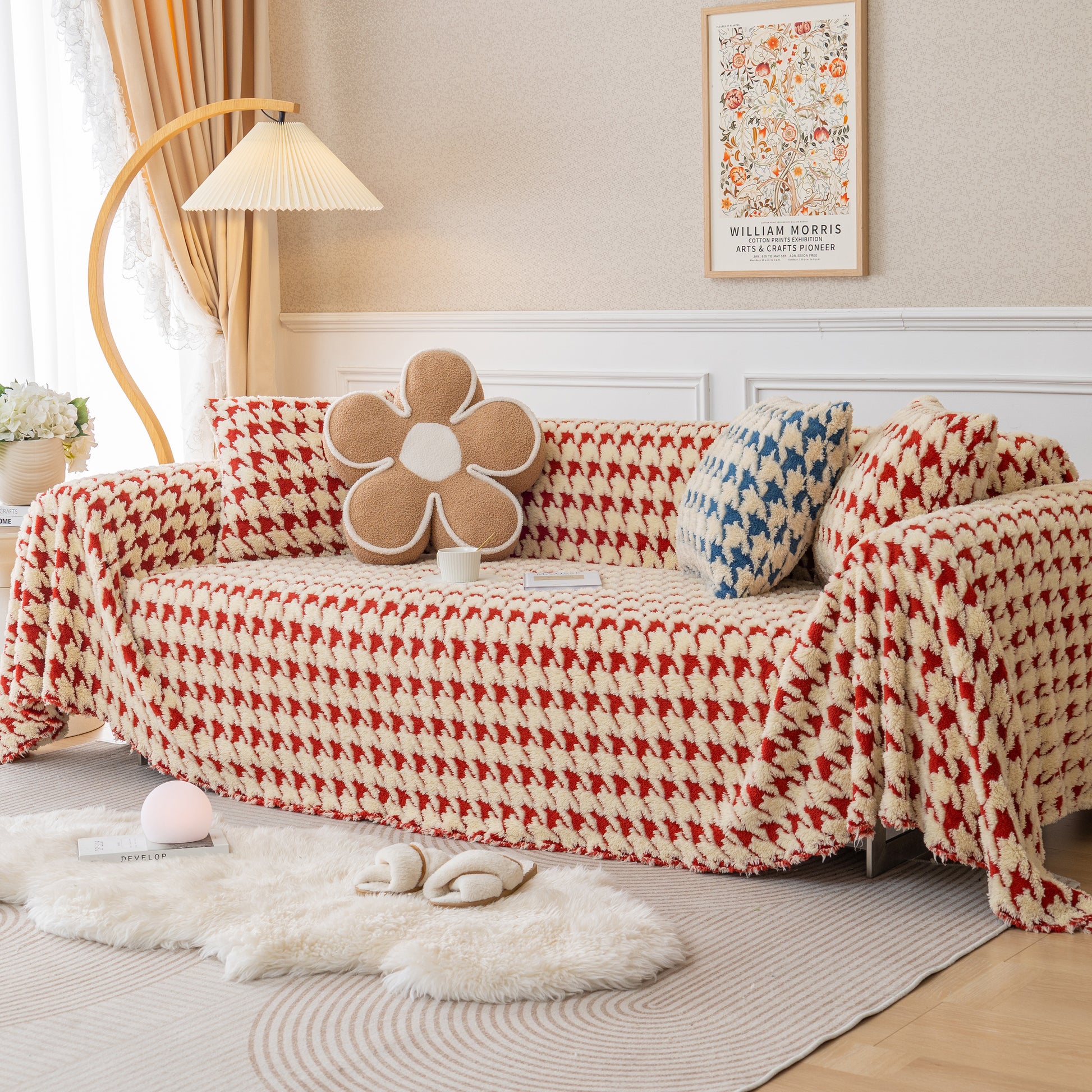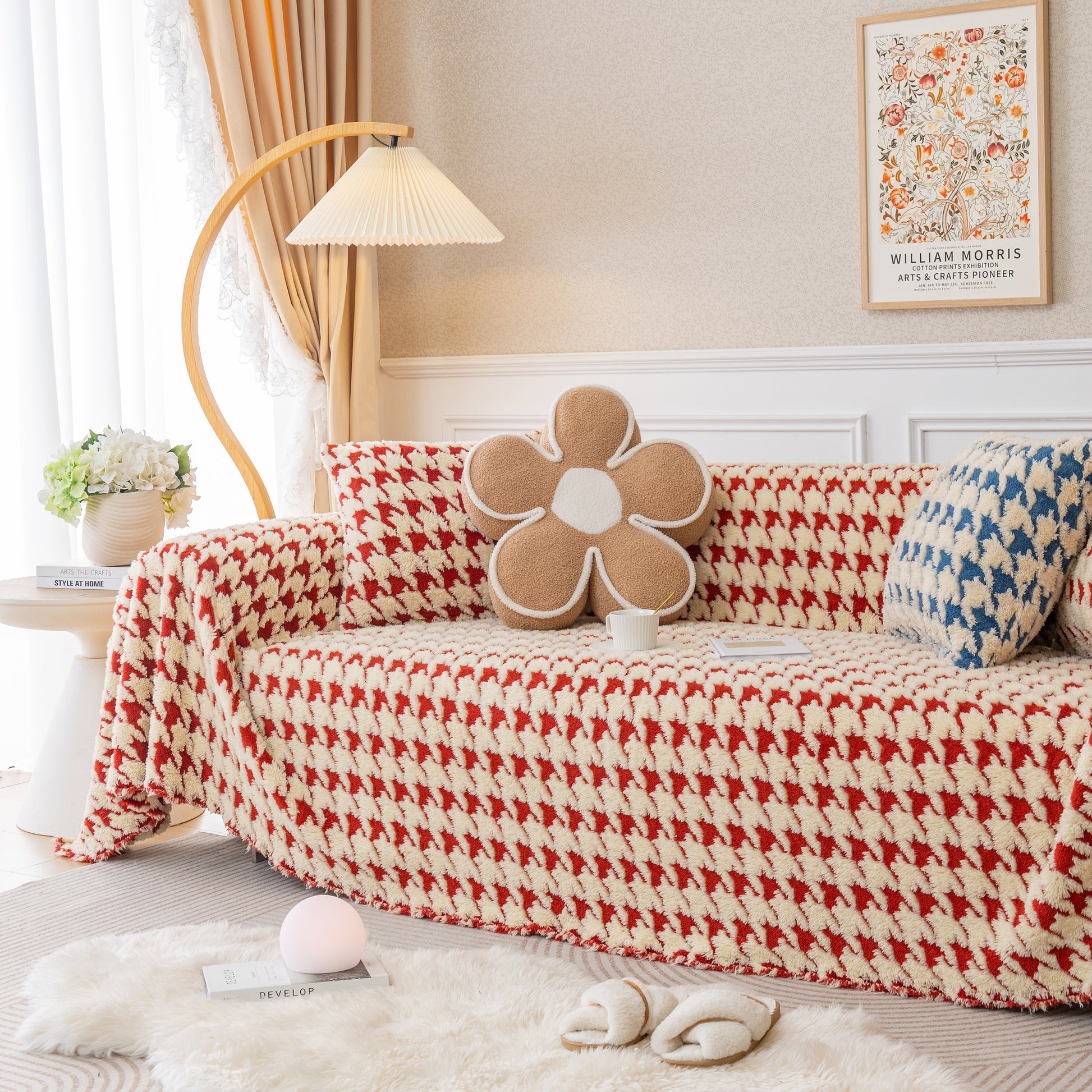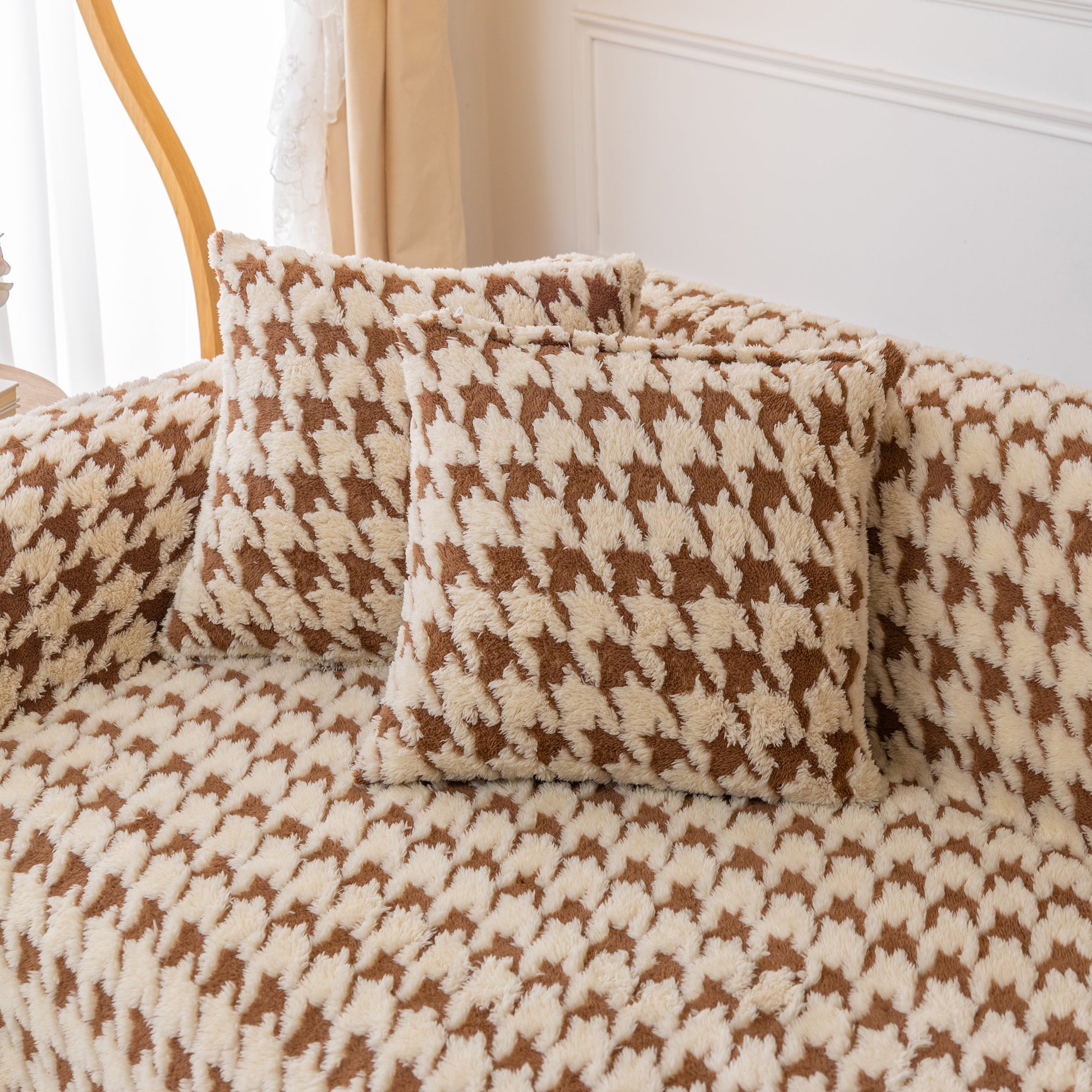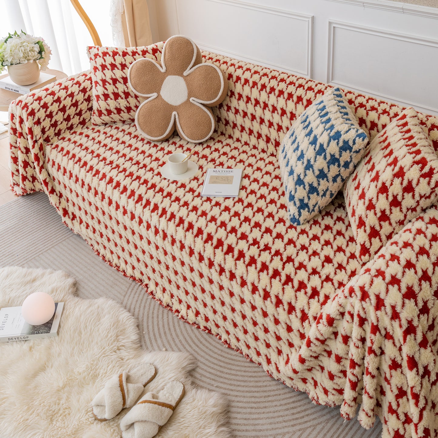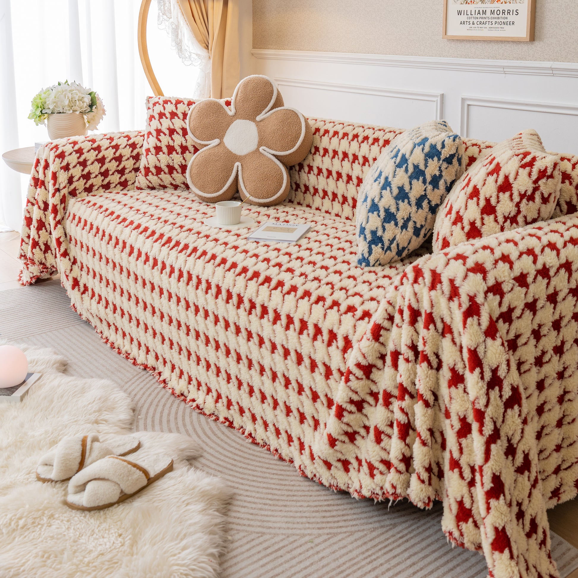 Luxury Plush Universal Couch Cover Blanket, Washable Couch Protector Houndstooth Sofa Covers