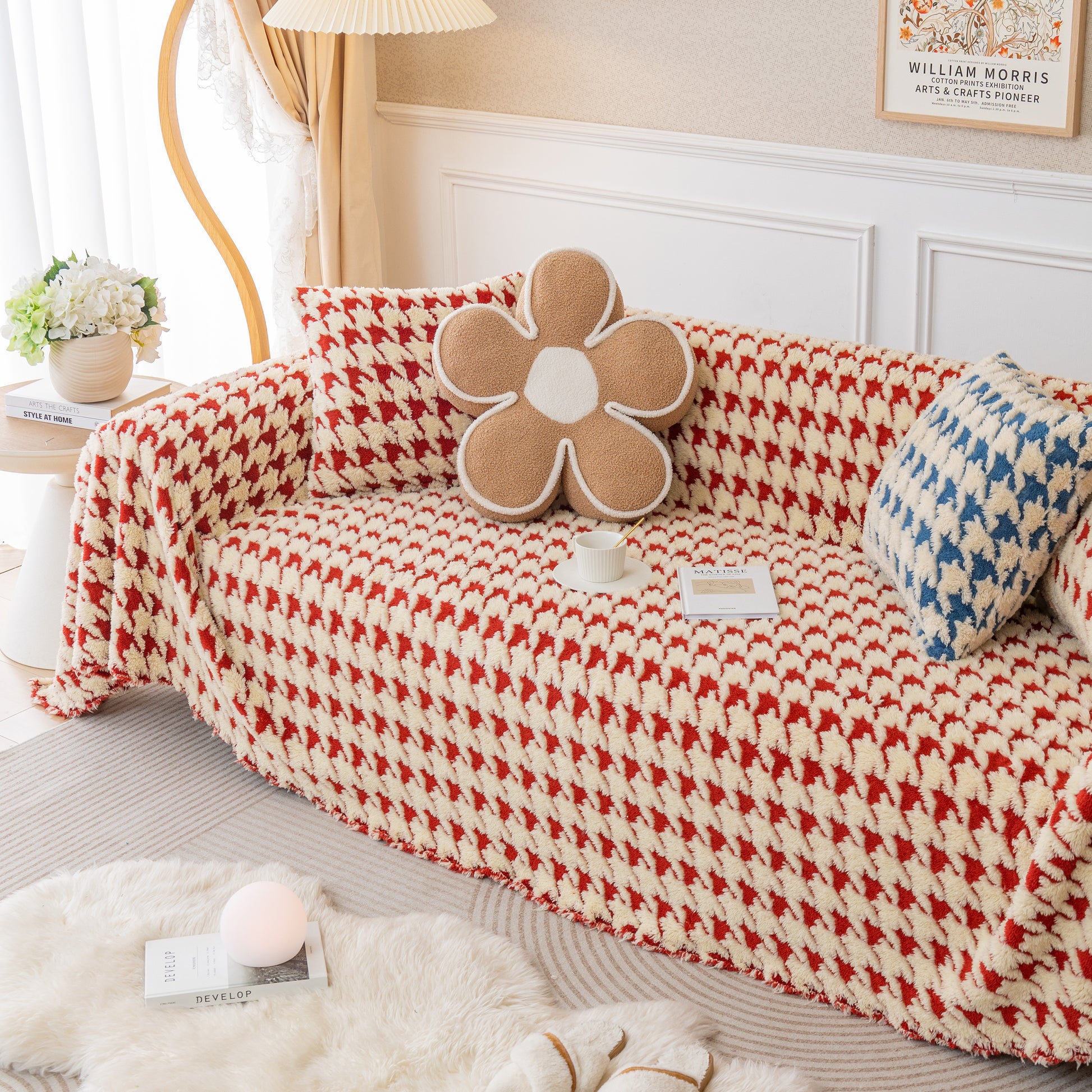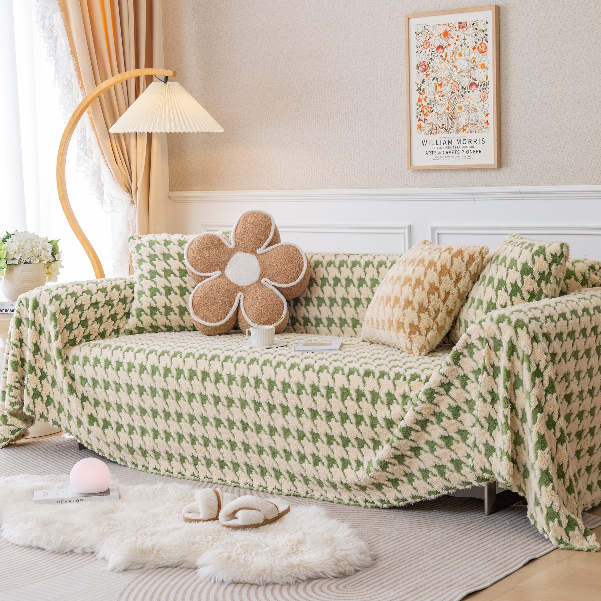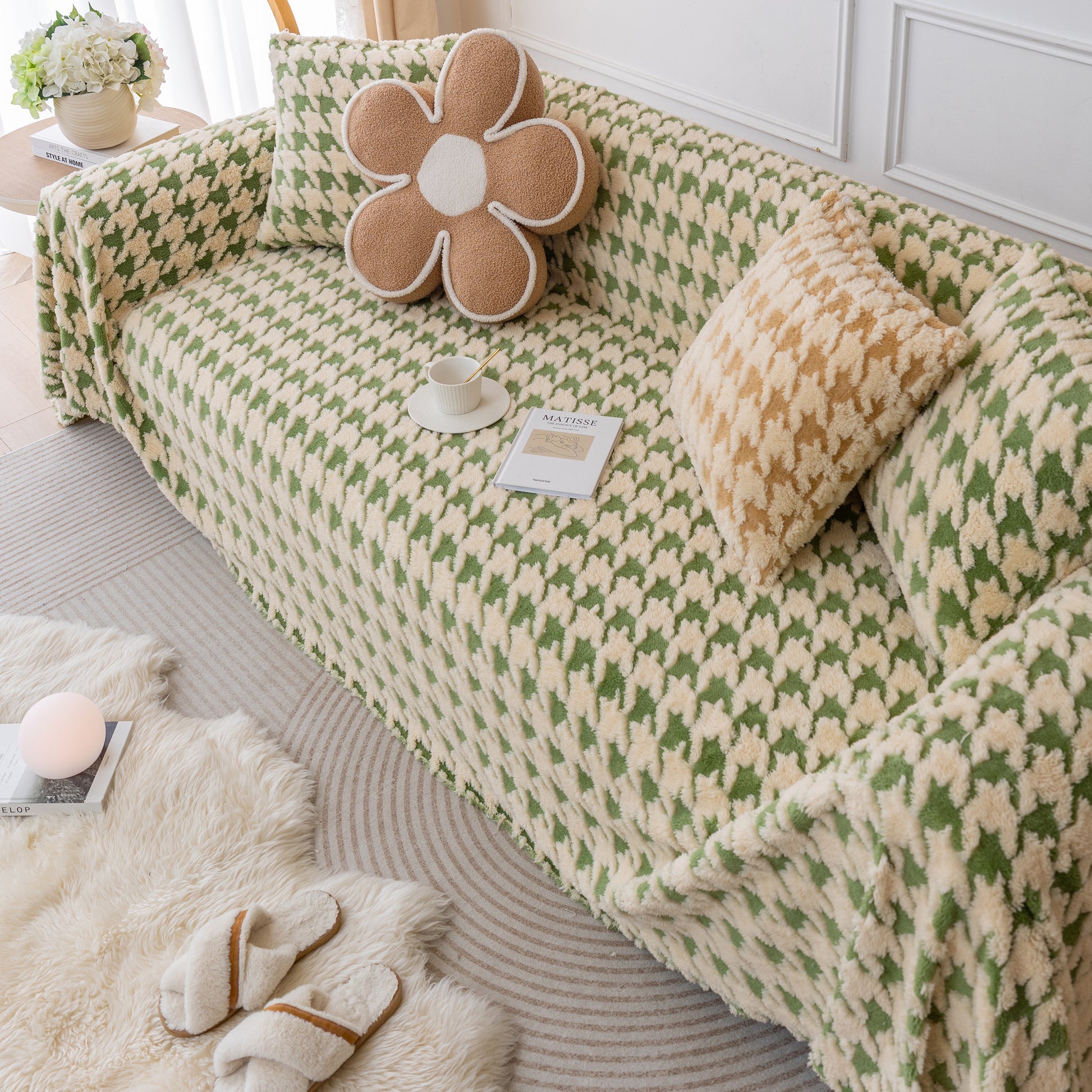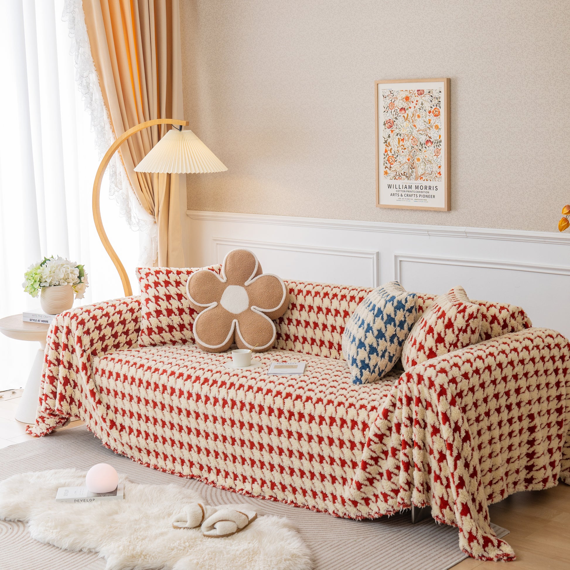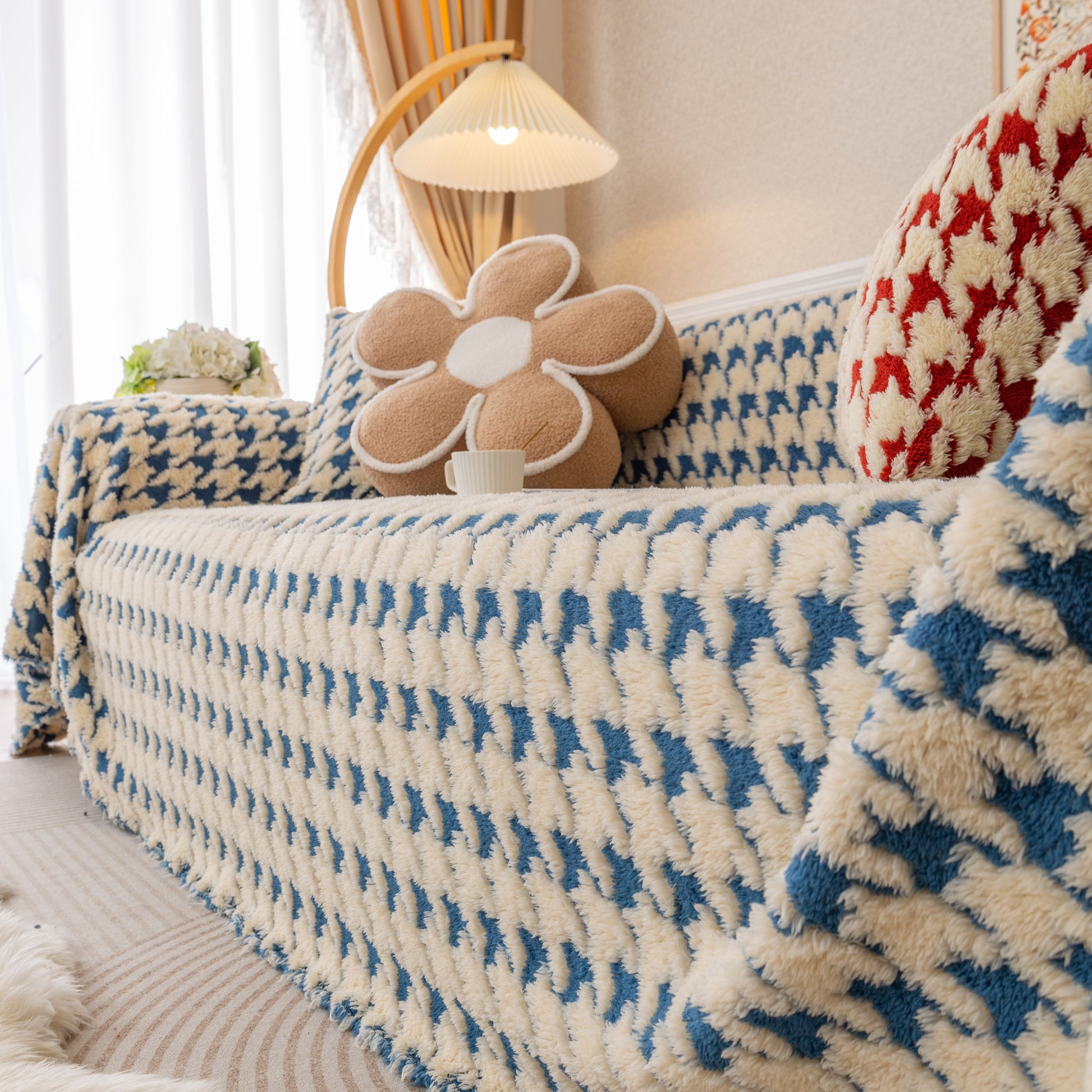 Luxury Plush Universal Couch Cover Blanket, Washable Couch Protector Houndstooth Sofa Covers