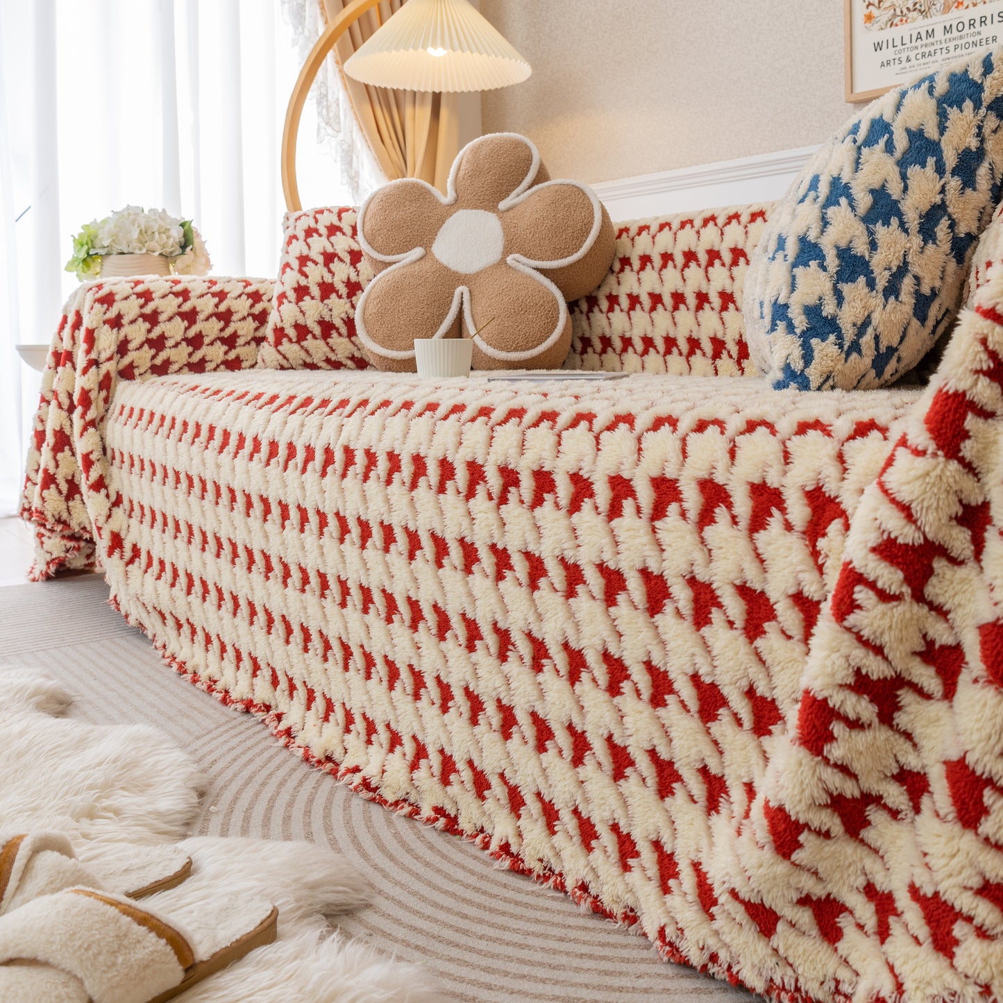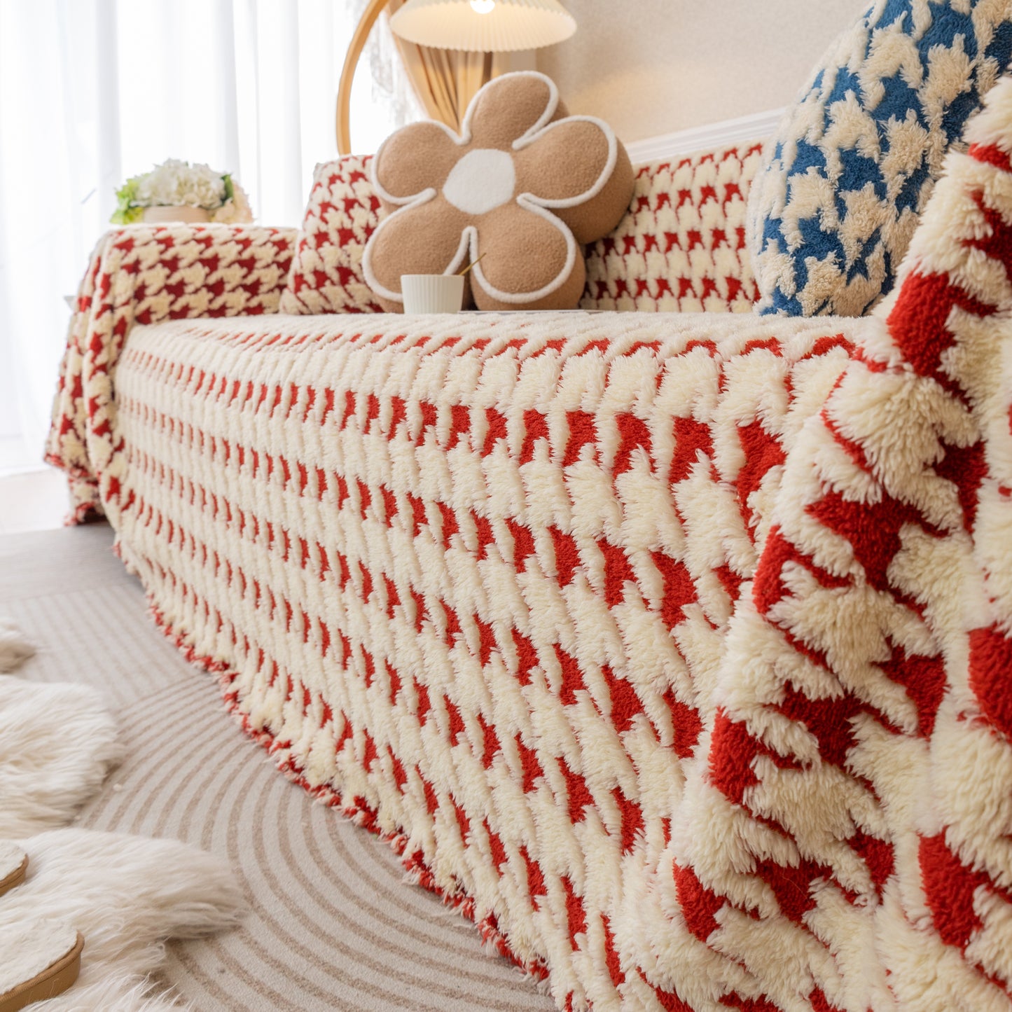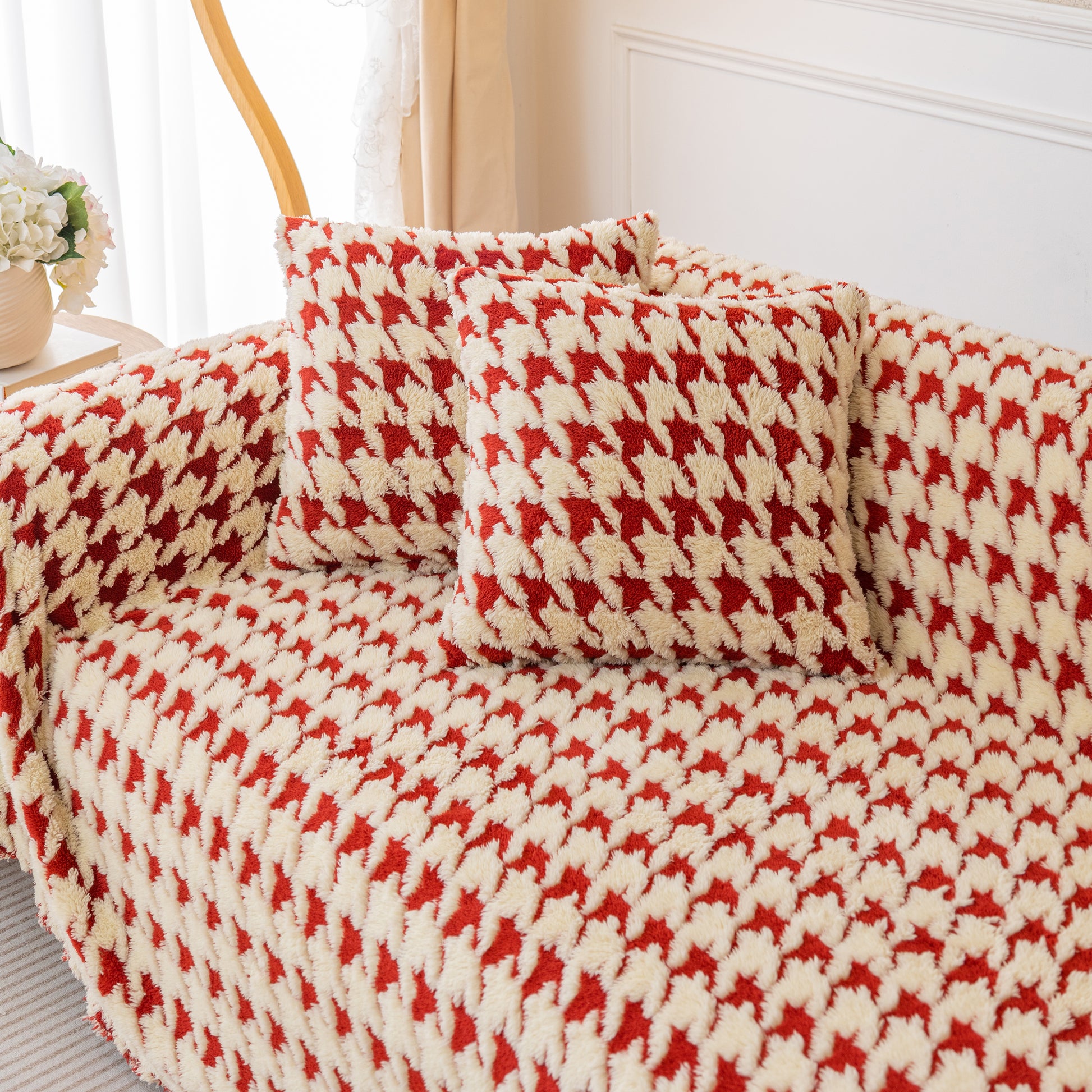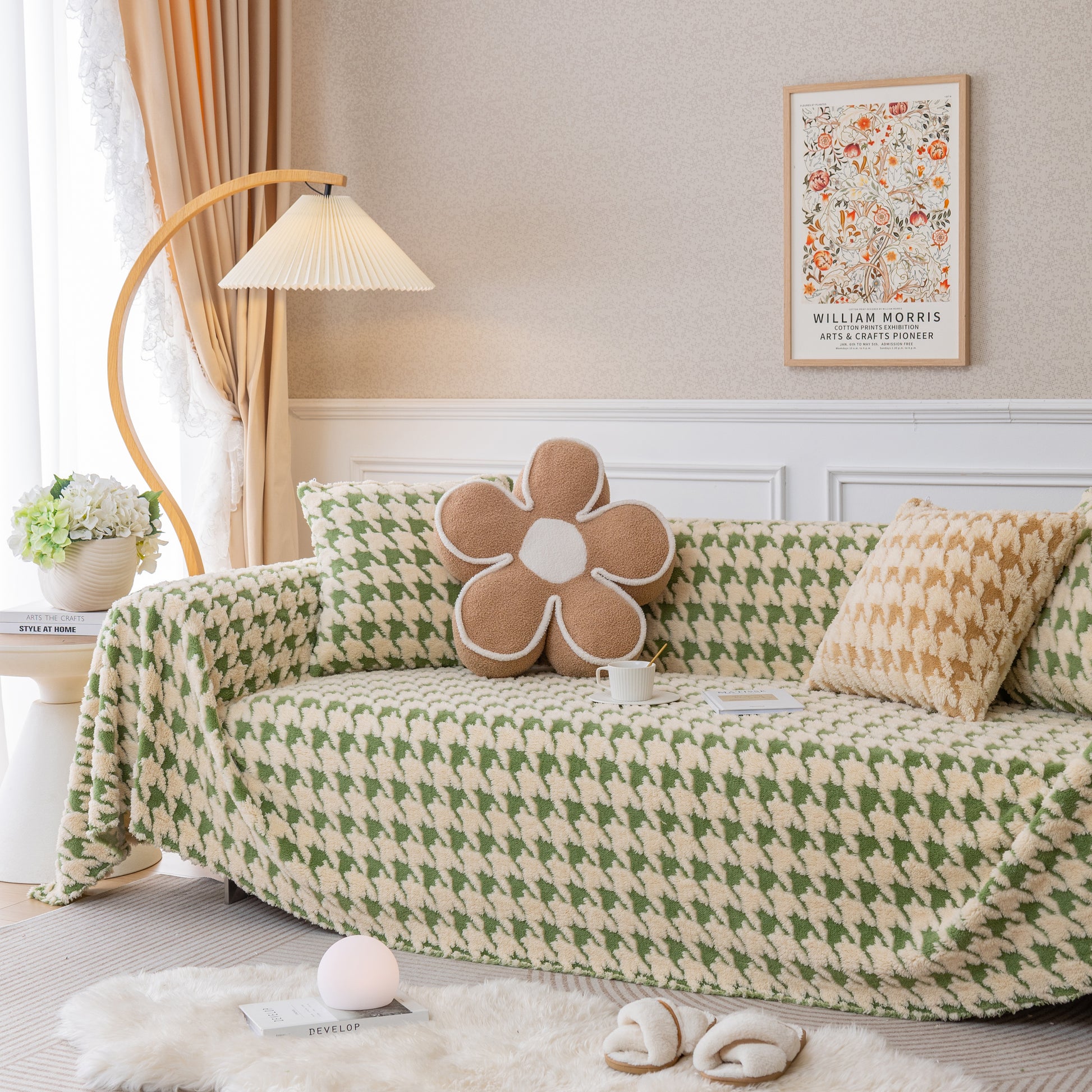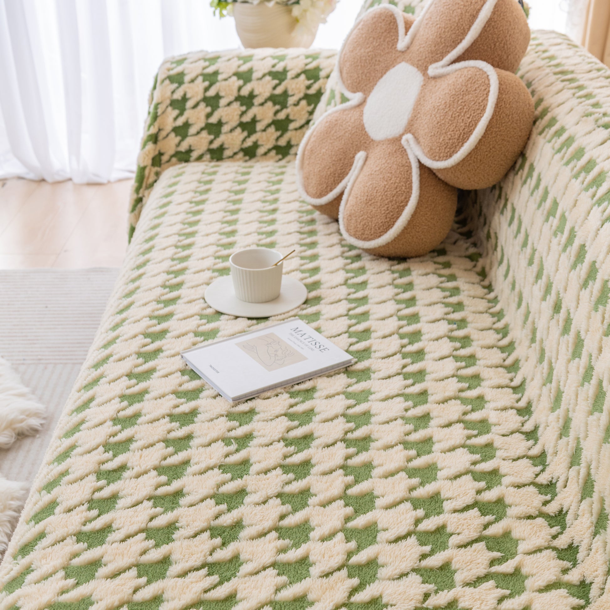 Luxury Plush Universal Couch Cover Blanket, Washable Couch Protector Houndstooth Sofa Covers