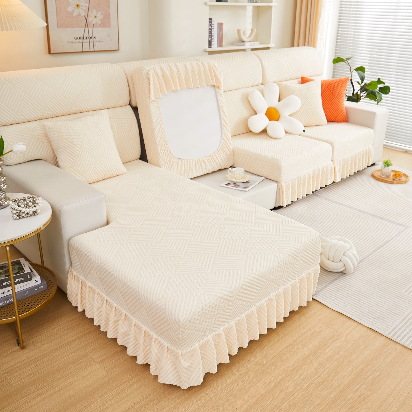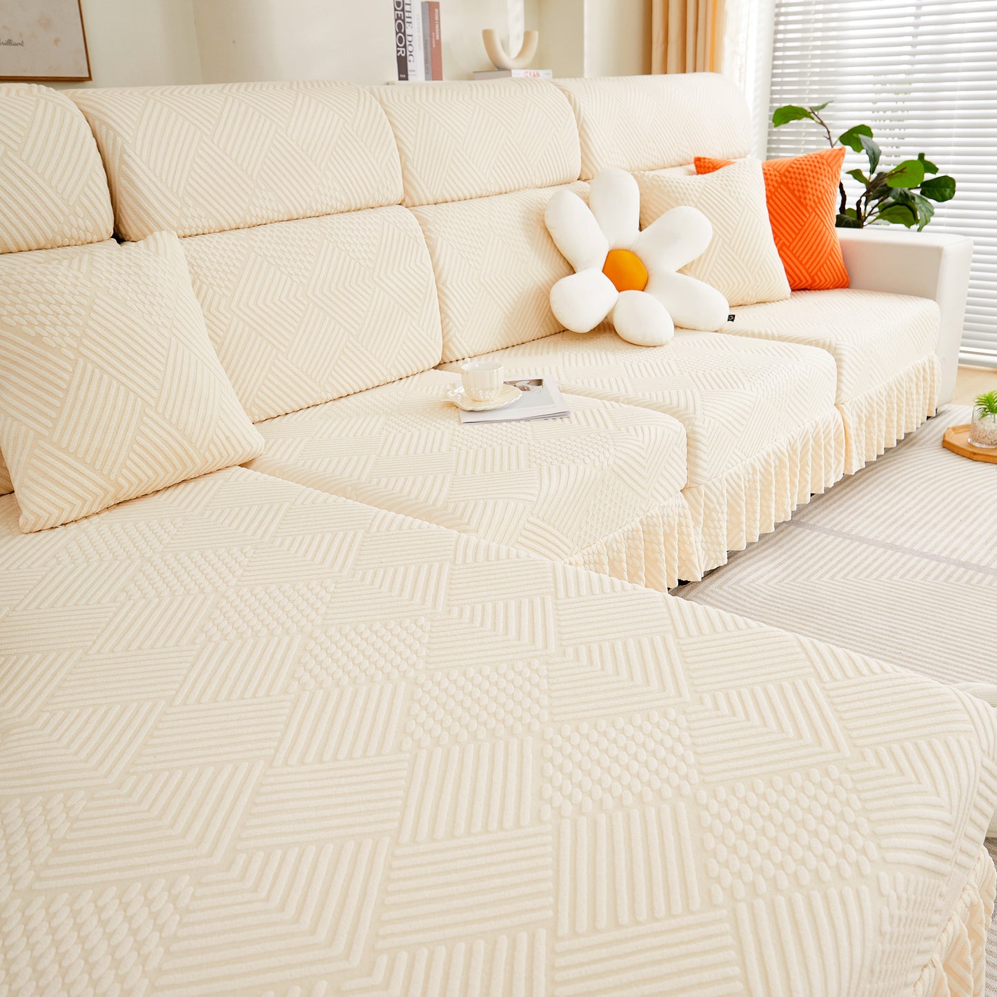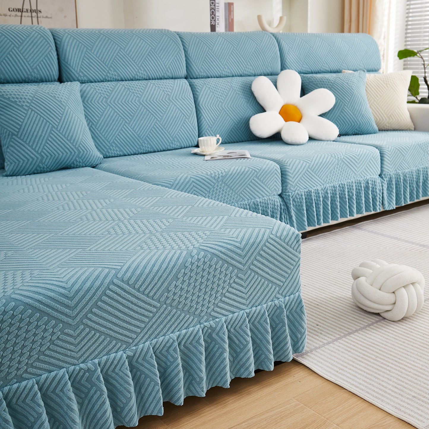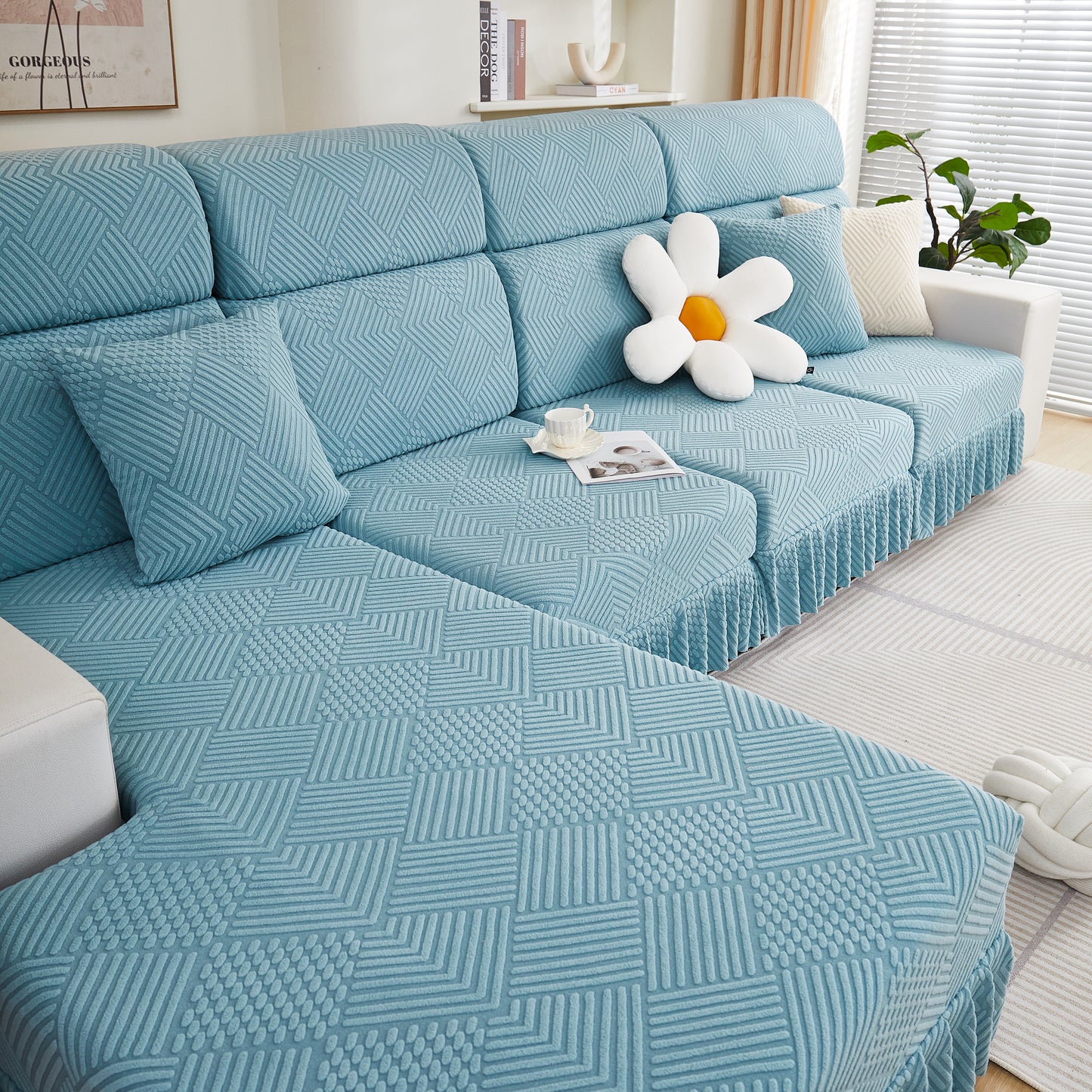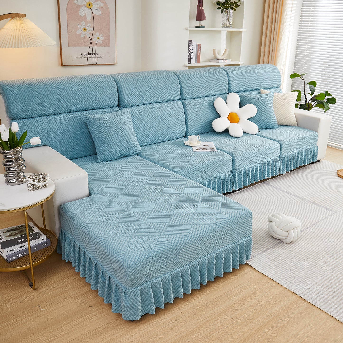 Transform your old sofa into a brand new one with our Stretch Sofa Covers. These covers fit 1/2/3/4/L seater sofas and couches and come with a stylish skirt, adding a touch of elegance to your furniture. Say goodbye to stains, wear and tear, and hello to a refreshed and modern look for your living room.