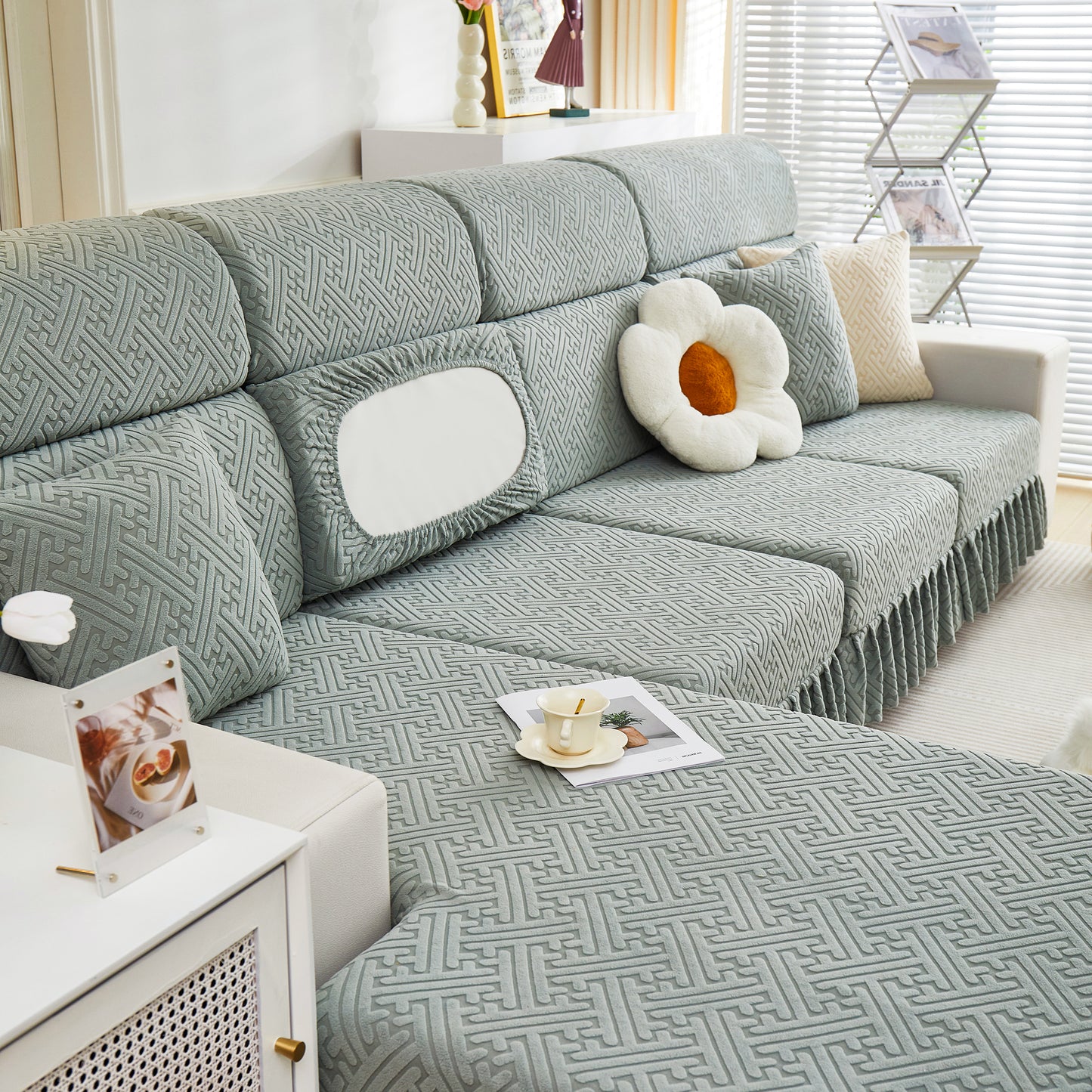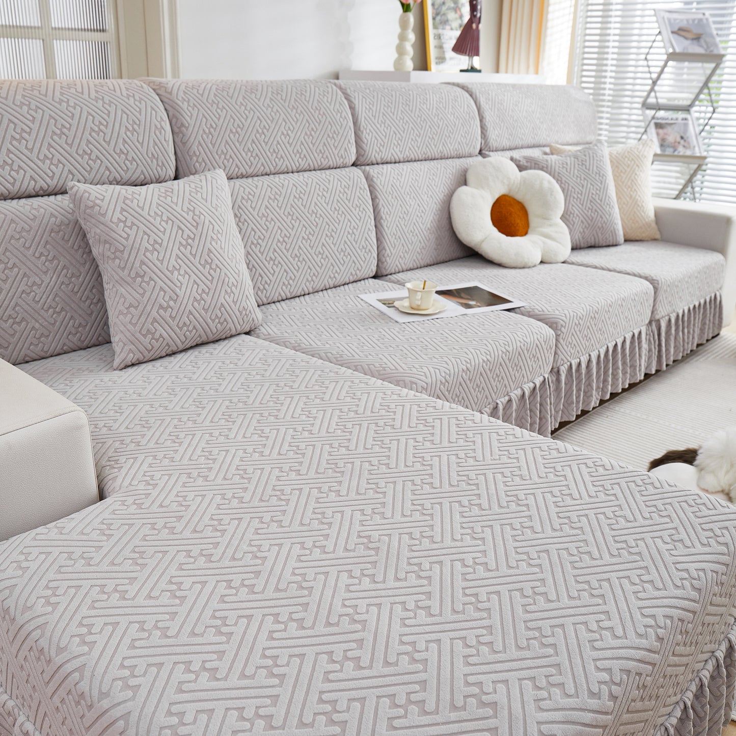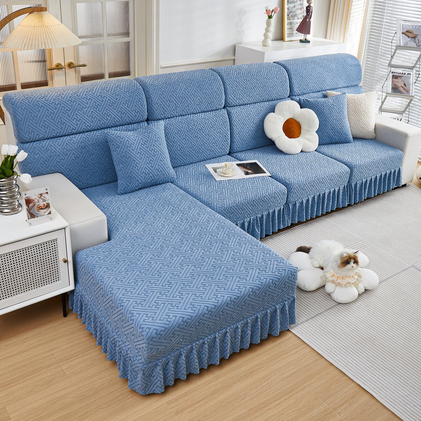 Stretch Sofa Covers with Skirt for Couch Seat and Cushion, Chaise, Sectional, 1/2/3/4 Seater Sofas