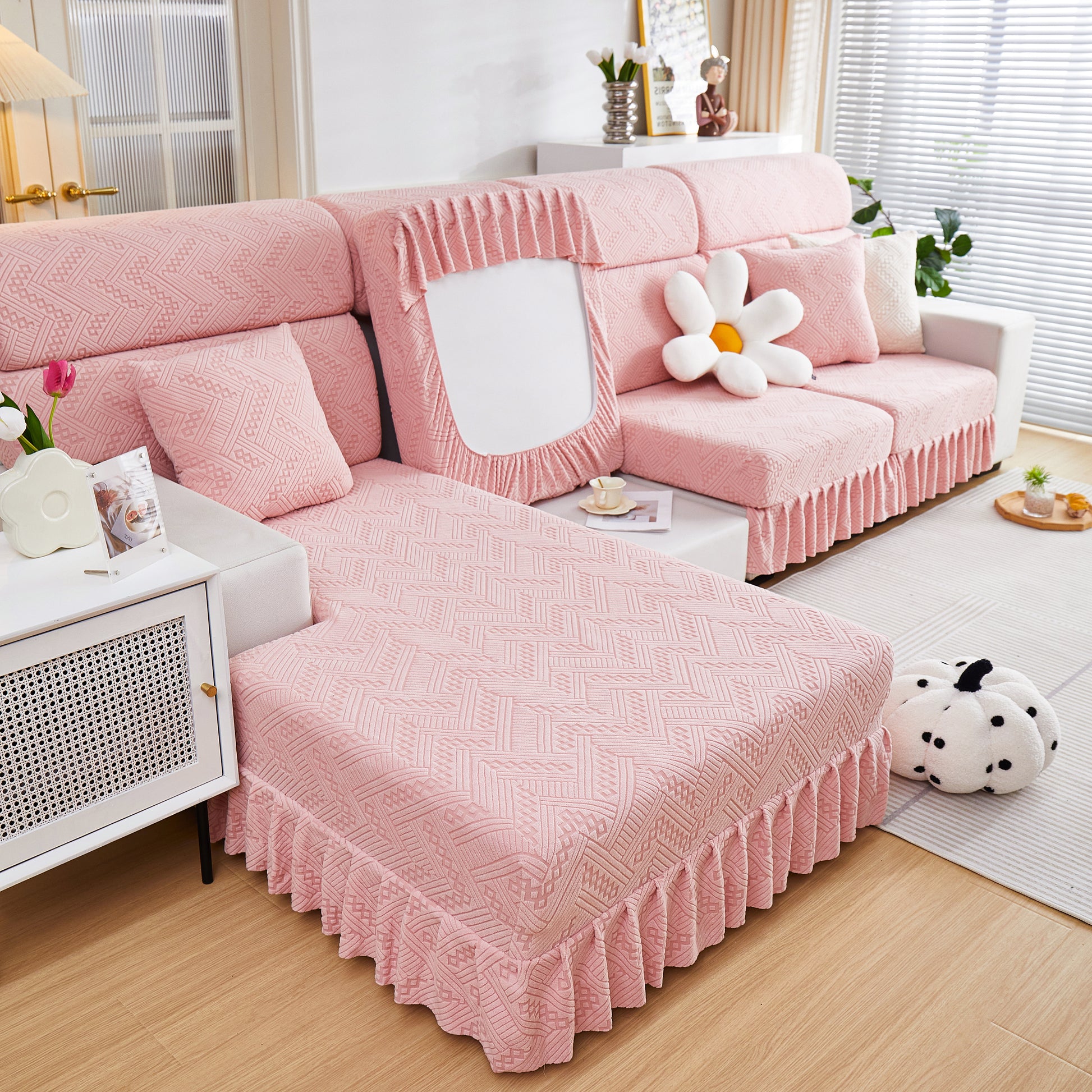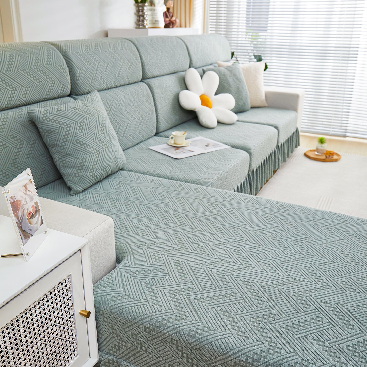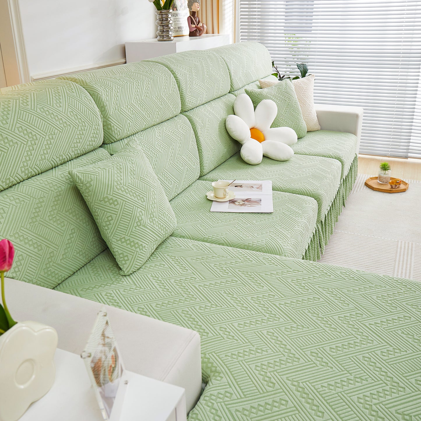 Stretchable Chaise Lounge Sofa Covers and Couch Seat Covers with Skirt for Sectional Couches