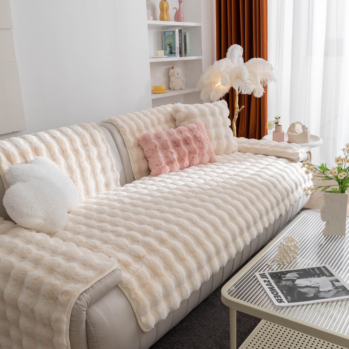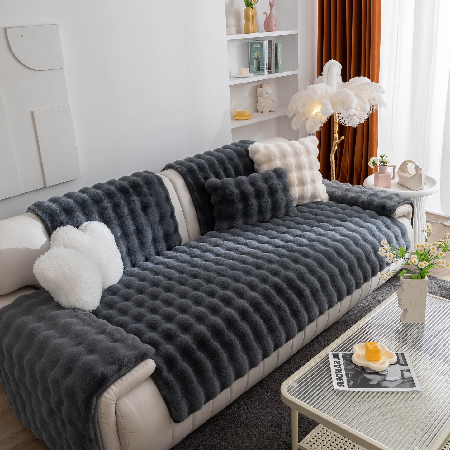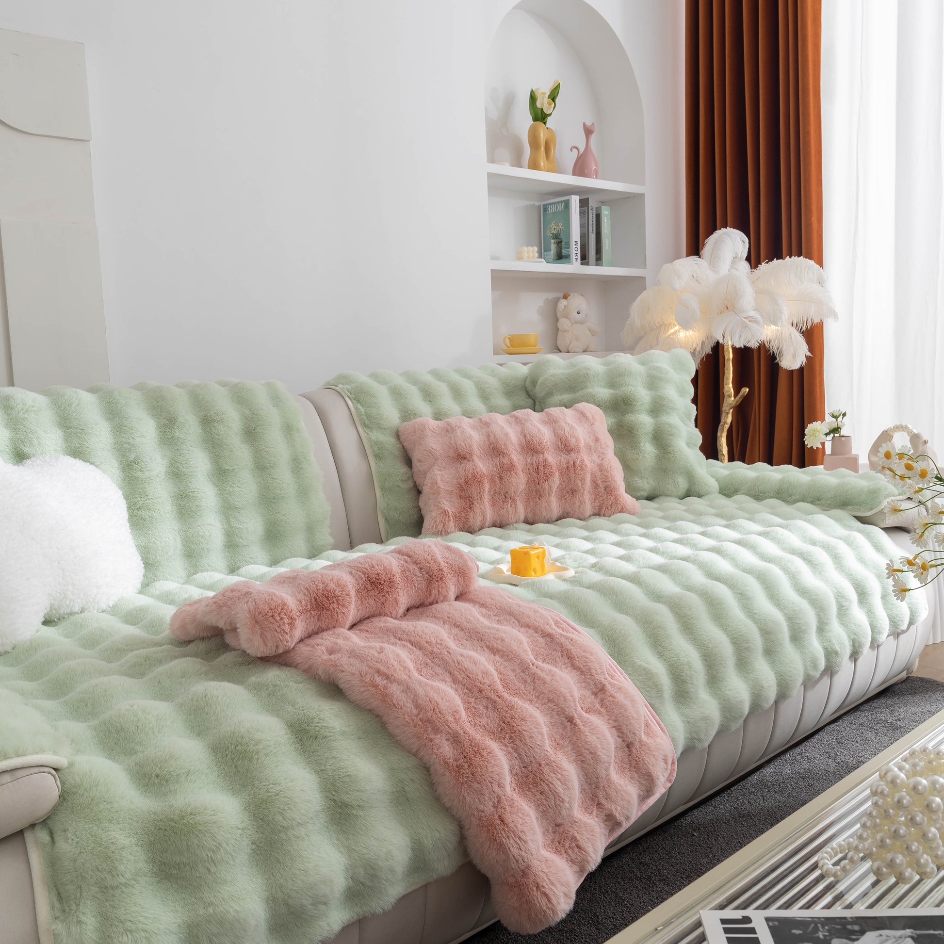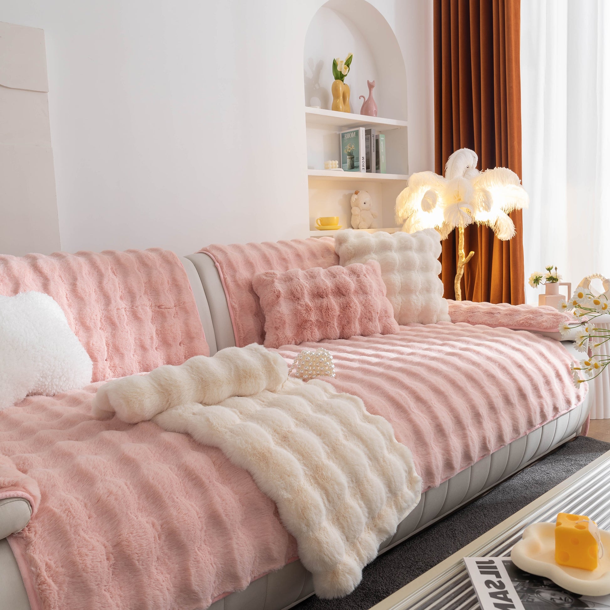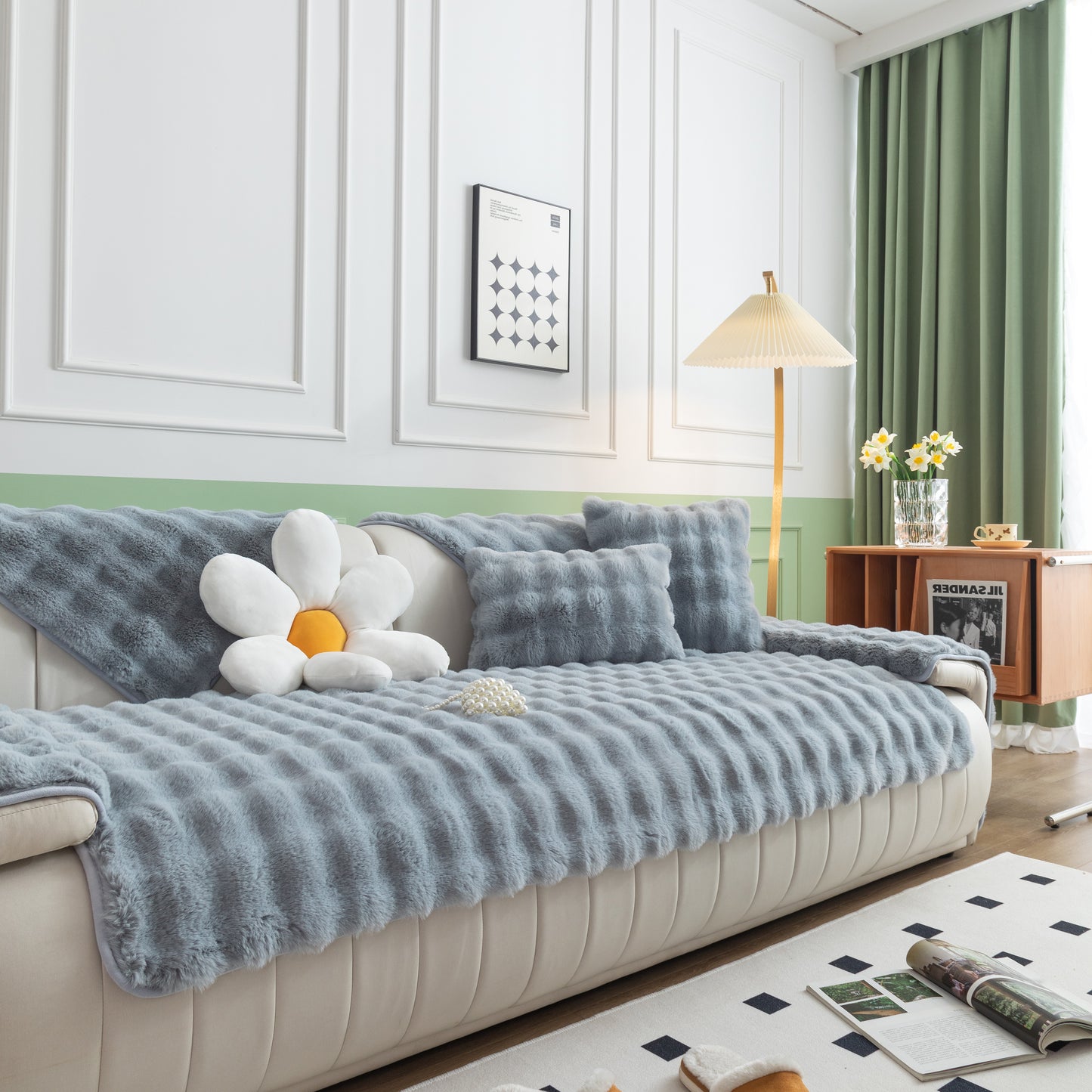 - High-quality materials: This rabbit plush sofa cover Made of high-quality rabbit plush (It's faux rabbit fur, not real rabbit fur), the delicate fluff is firm, not easy to depilate, and anti-static. Soft to the touch, every touch is as comfortable as a cloud.