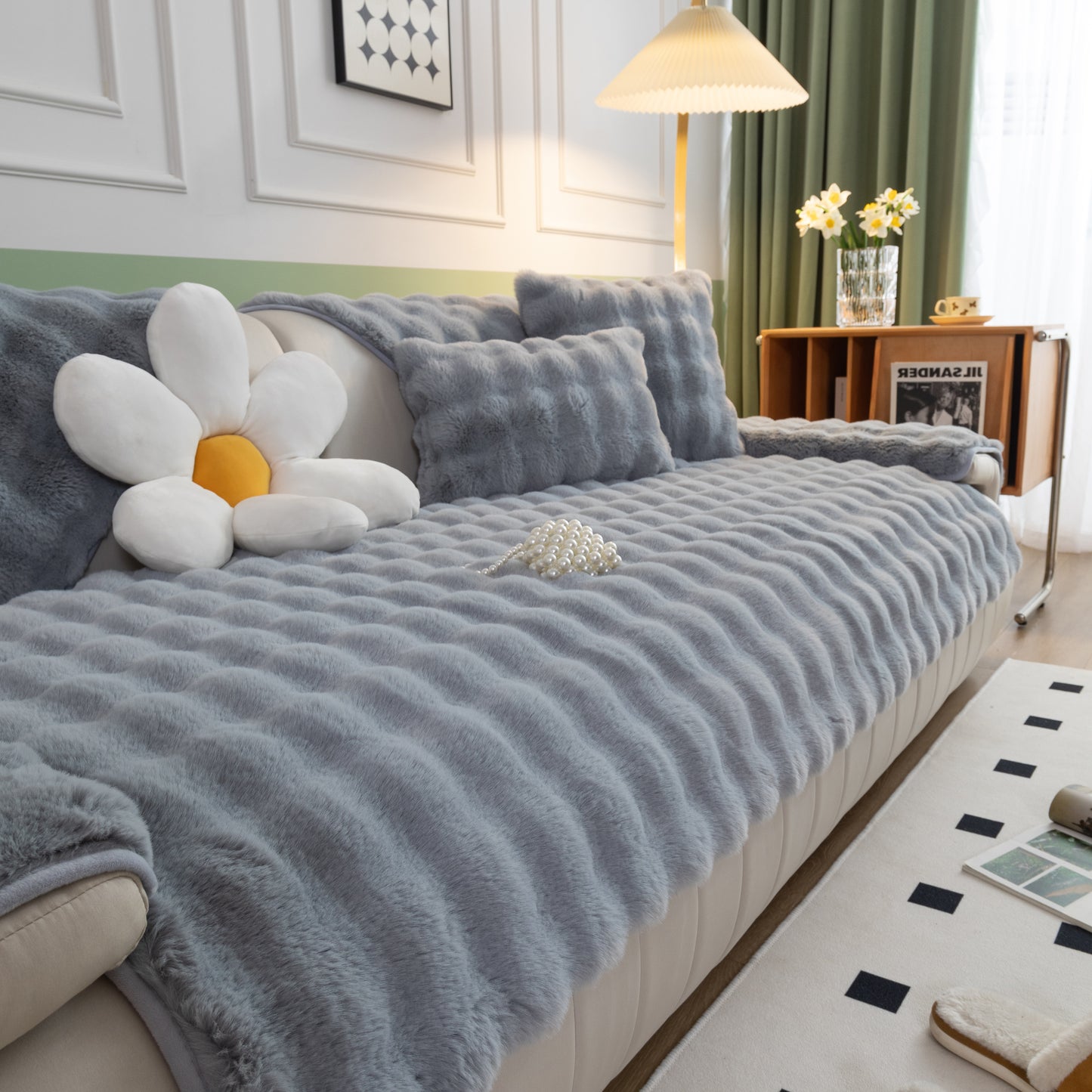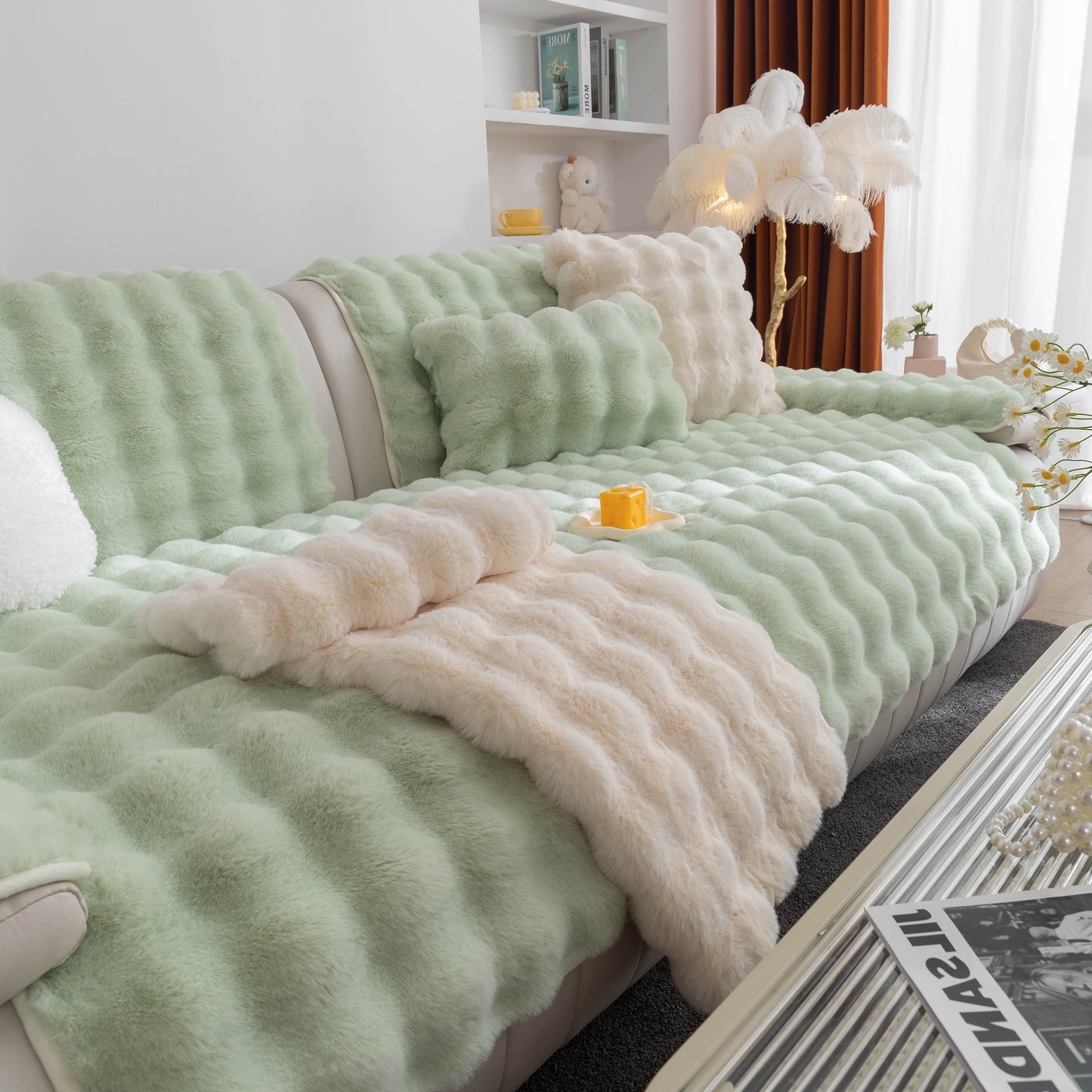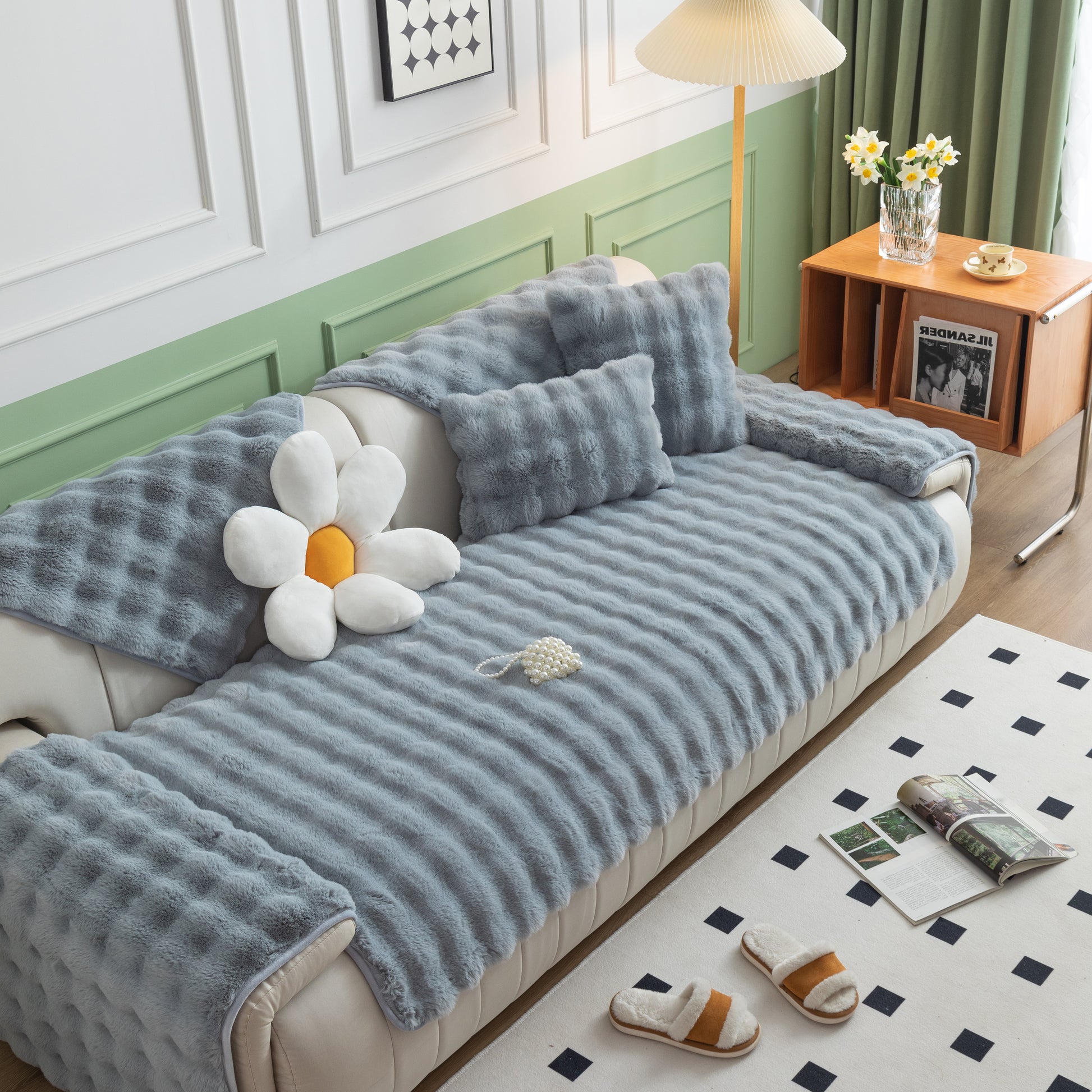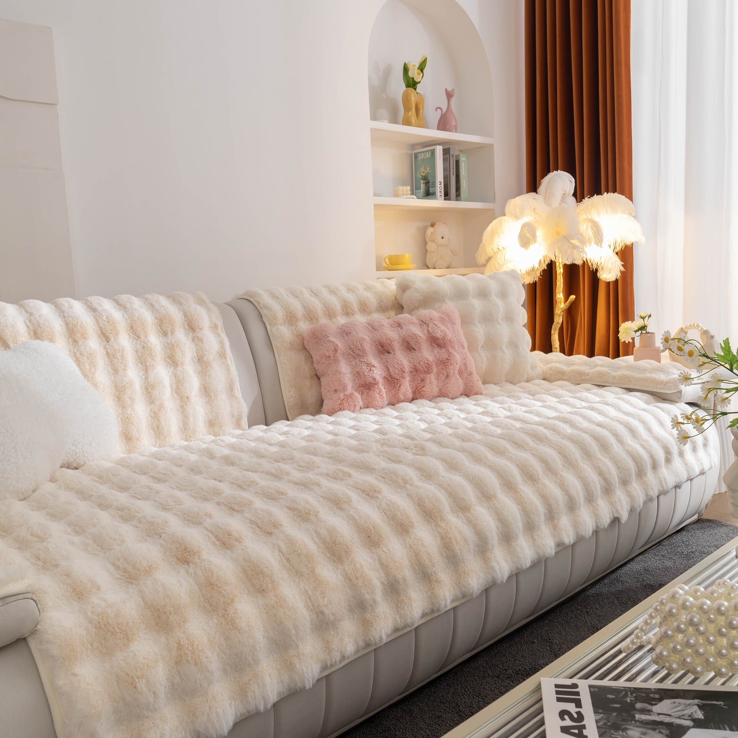 - High-quality materials: This rabbit plush sofa cover Made of high-quality rabbit plush (It's faux rabbit fur, not real rabbit fur), the delicate fluff is firm, not easy to depilate, and anti-static. Soft to the touch, every touch is as comfortable as a cloud.