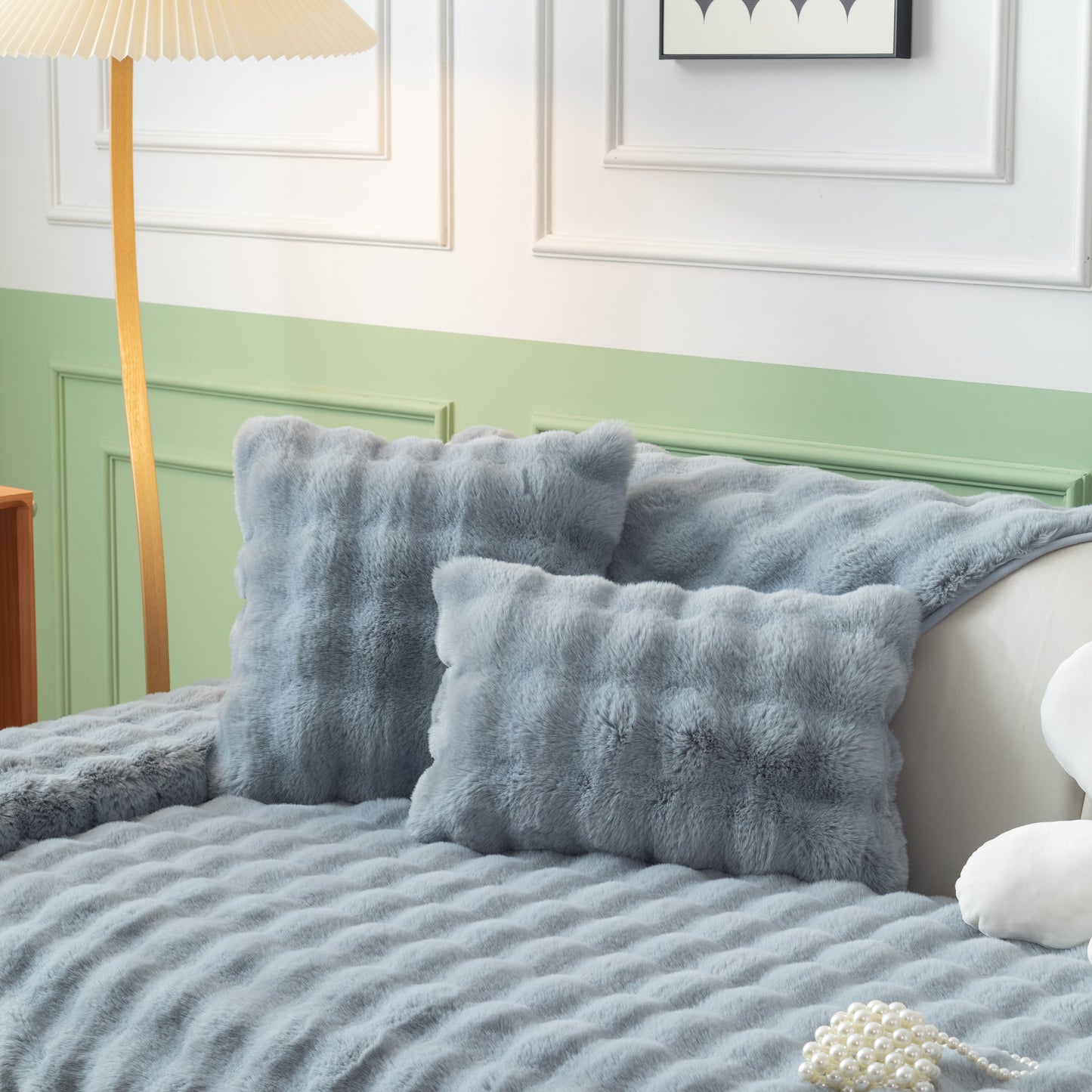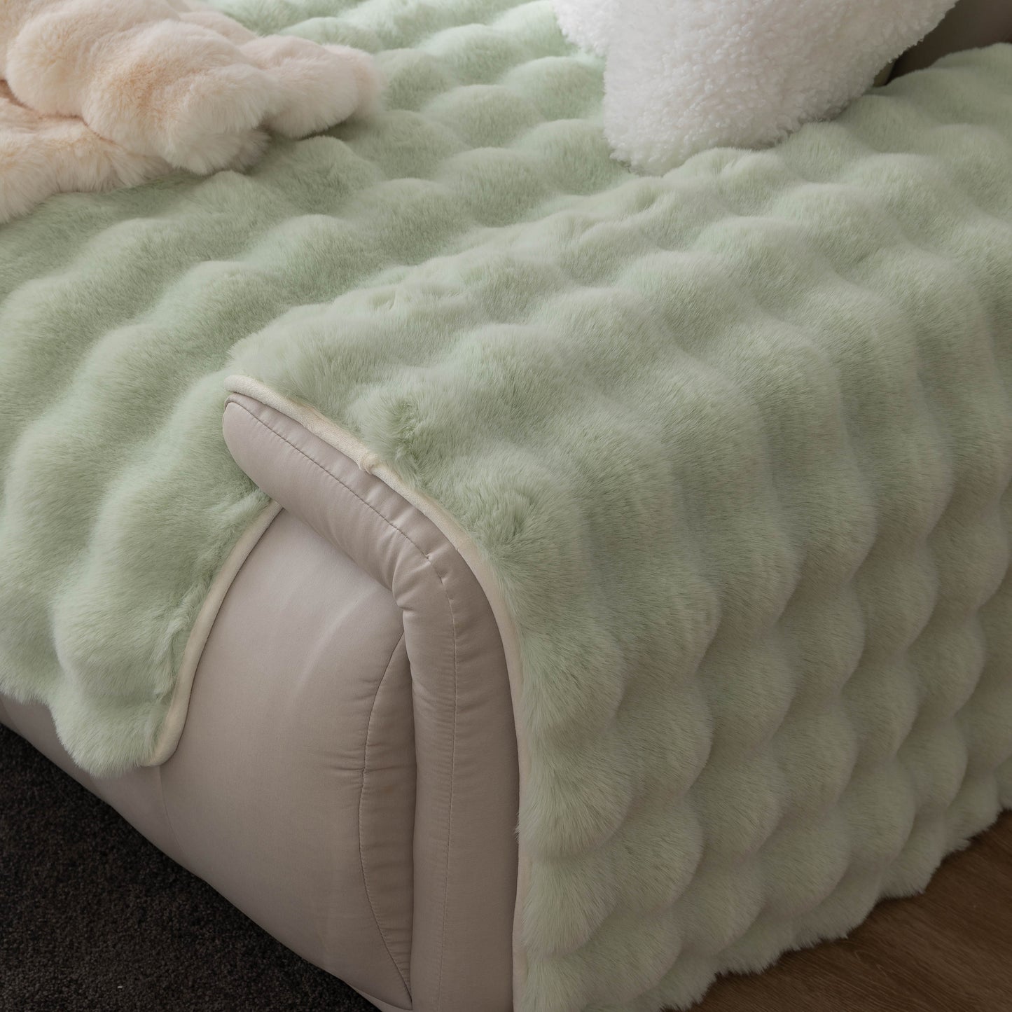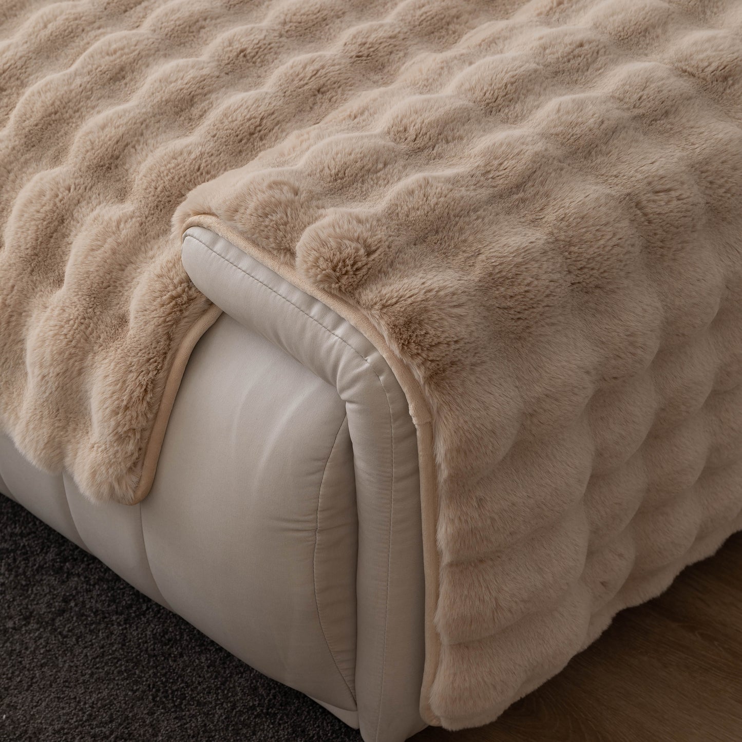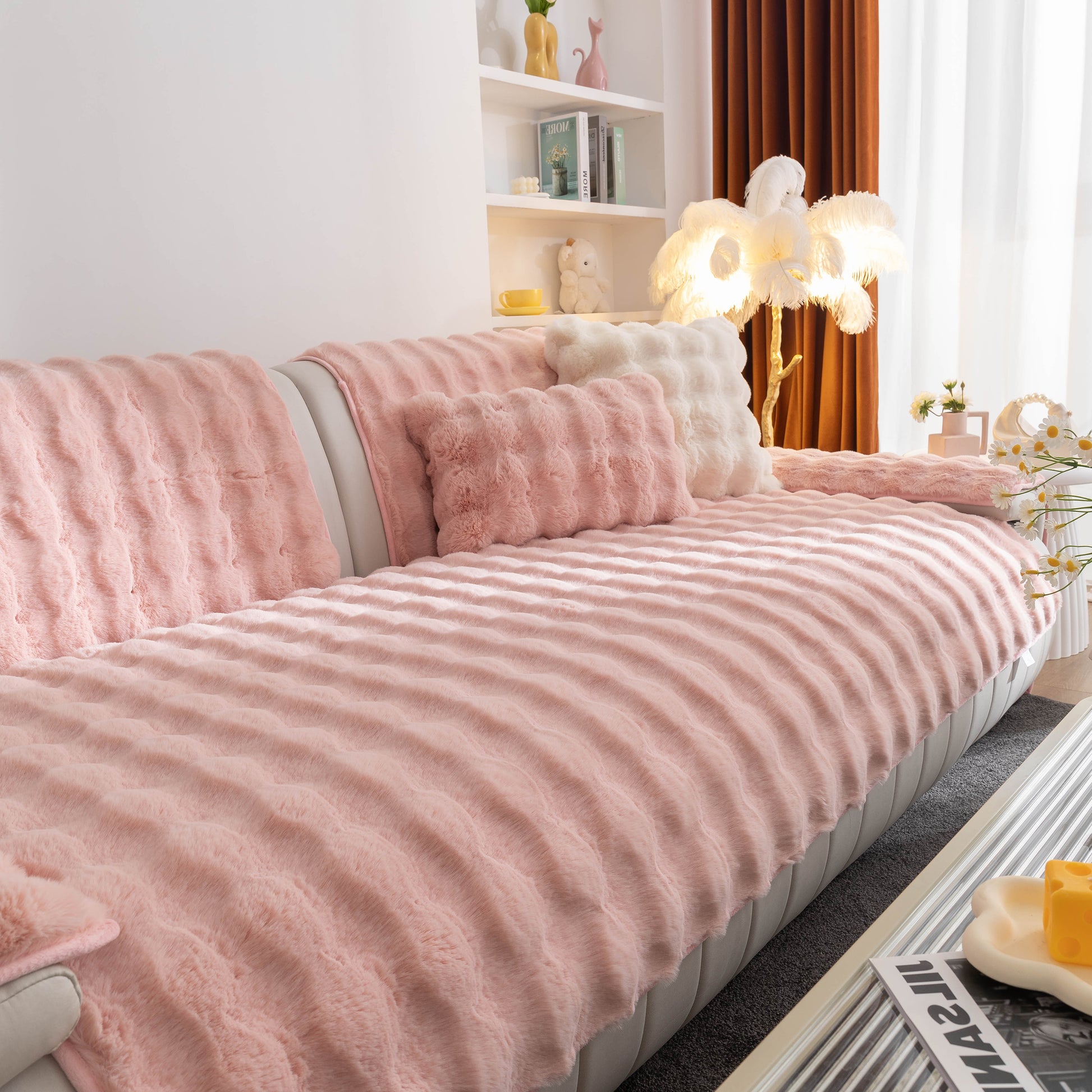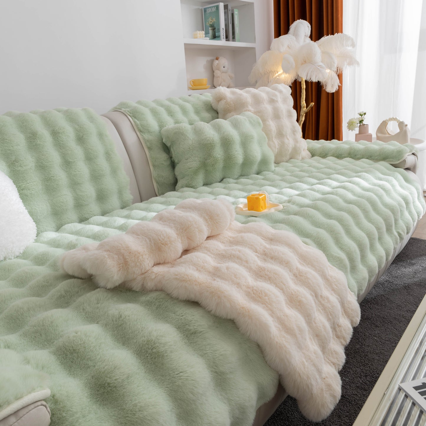 - High-quality materials: This rabbit plush sofa cover Made of high-quality rabbit plush (It's faux rabbit fur, not real rabbit fur), the delicate fluff is firm, not easy to depilate, and anti-static. Soft to the touch, every touch is as comfortable as a cloud.