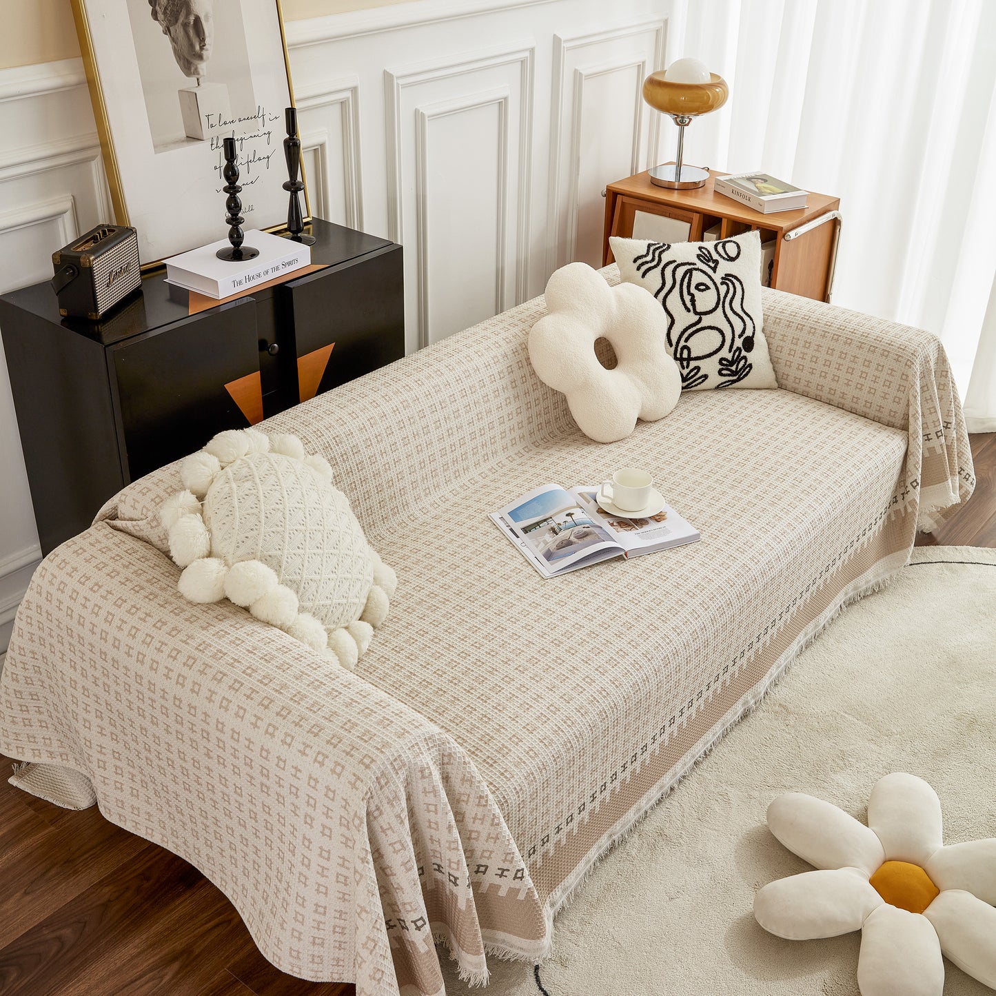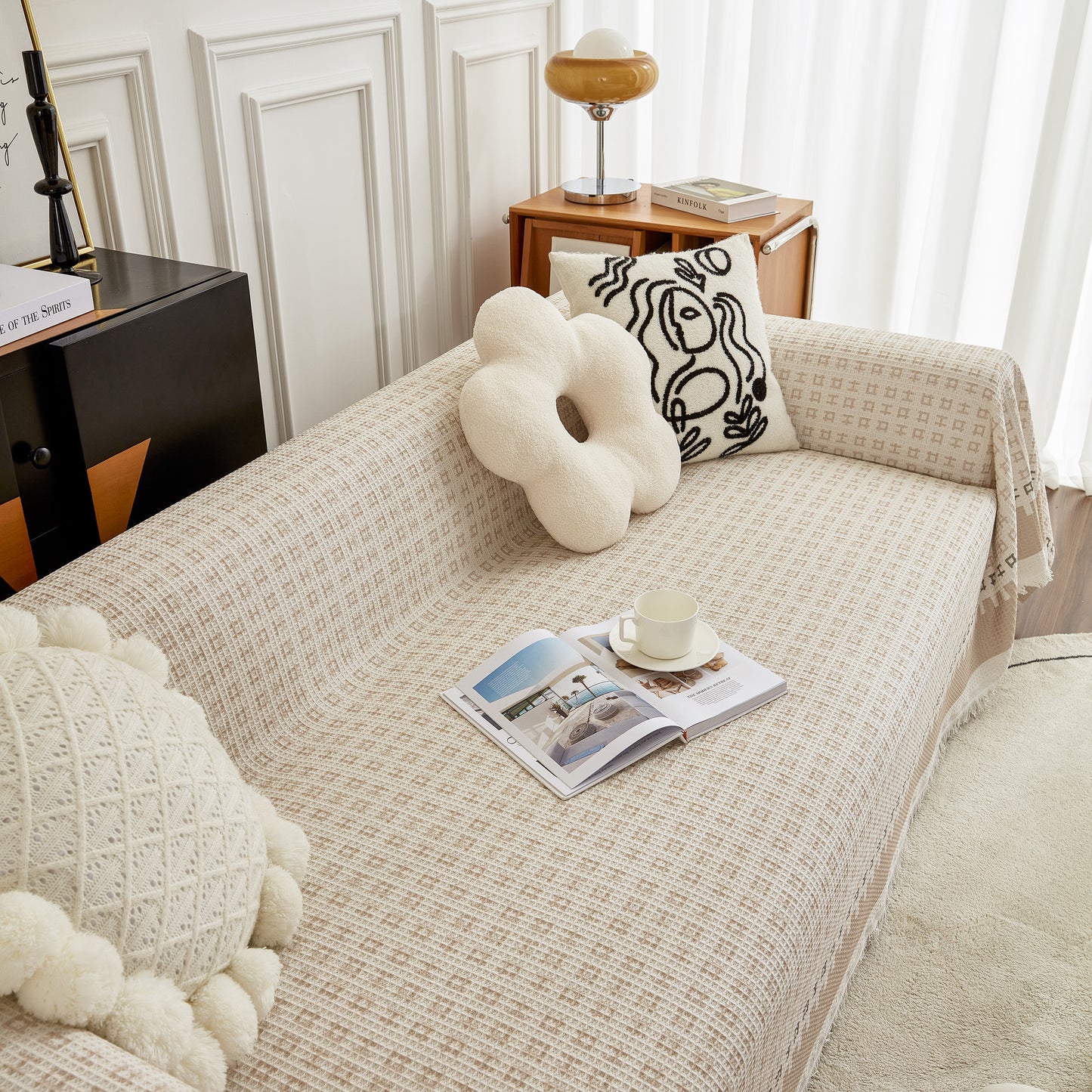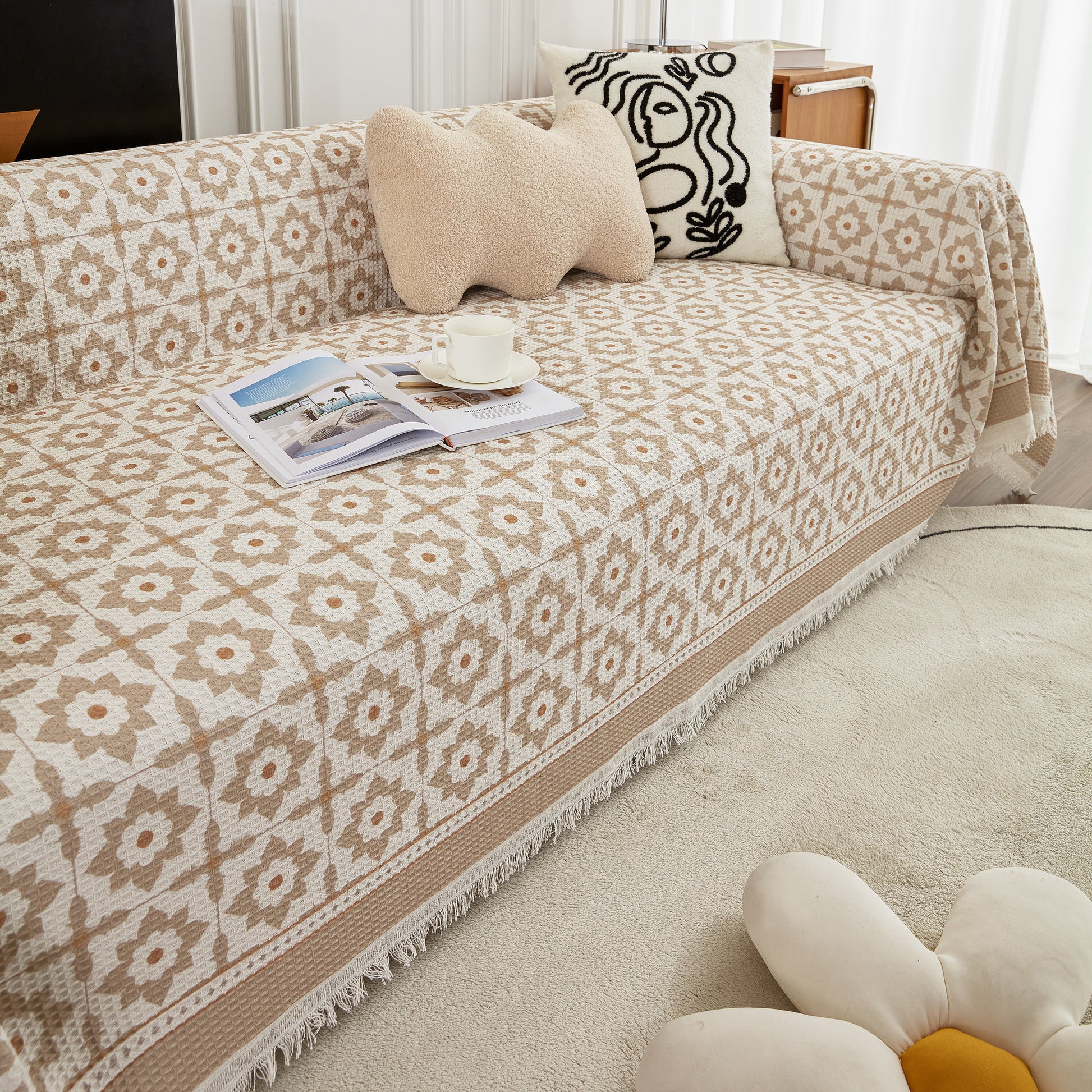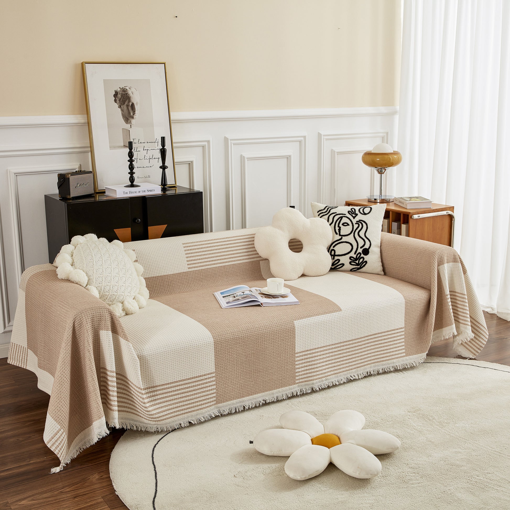 Waffle Lattice Fabric Sofa Cover, Multi-purpose Soft Sofa Throw, Couch Cover Blanket Throws for Couches