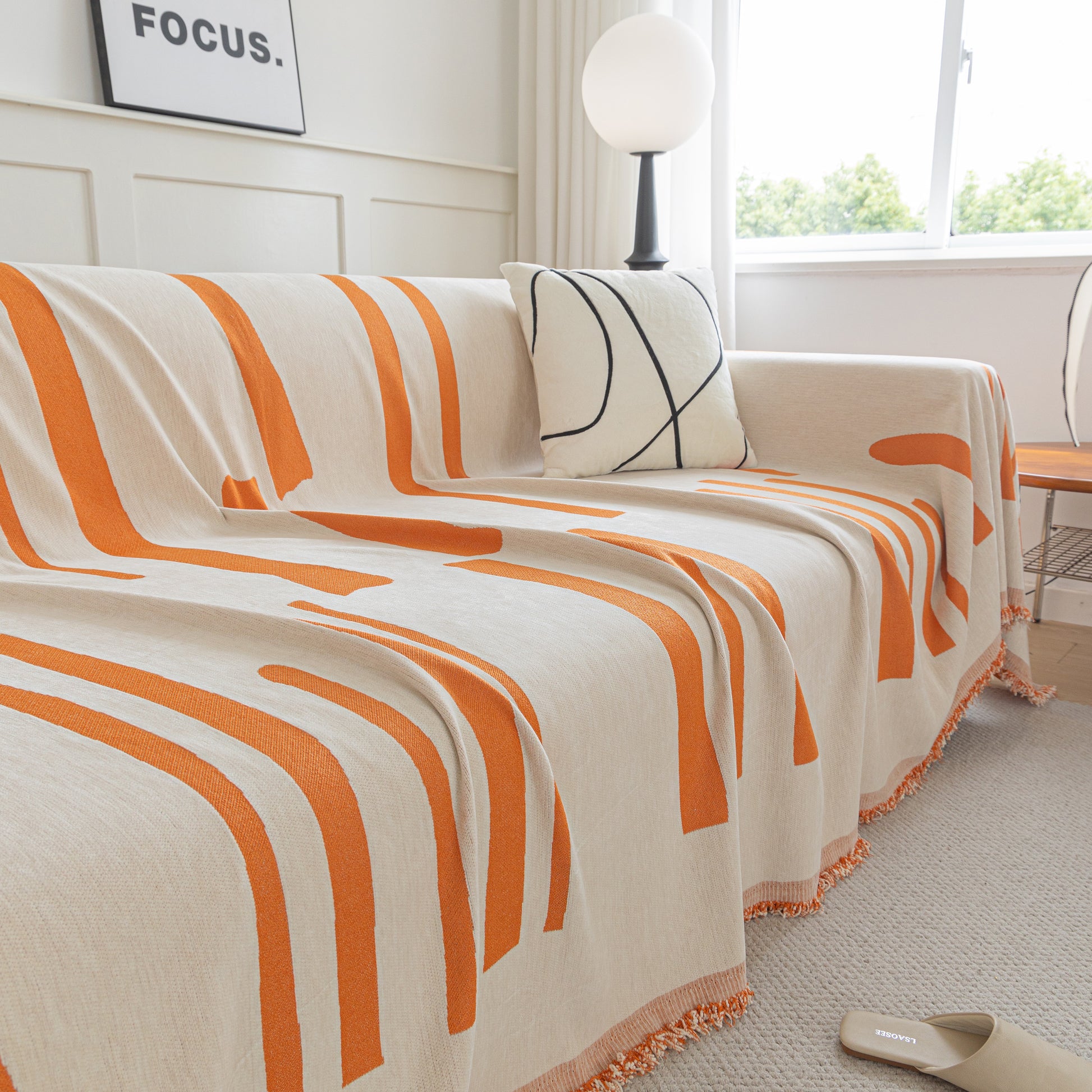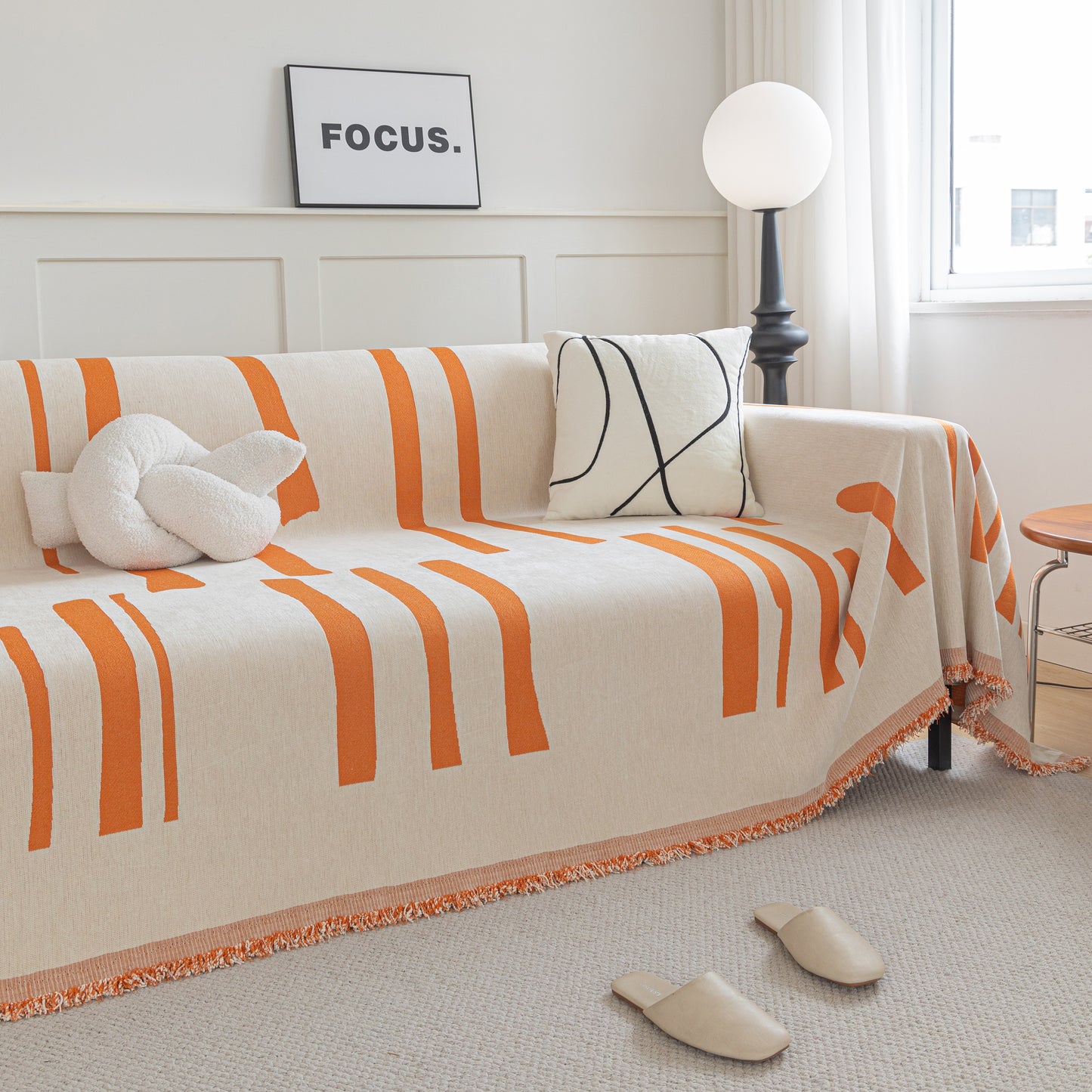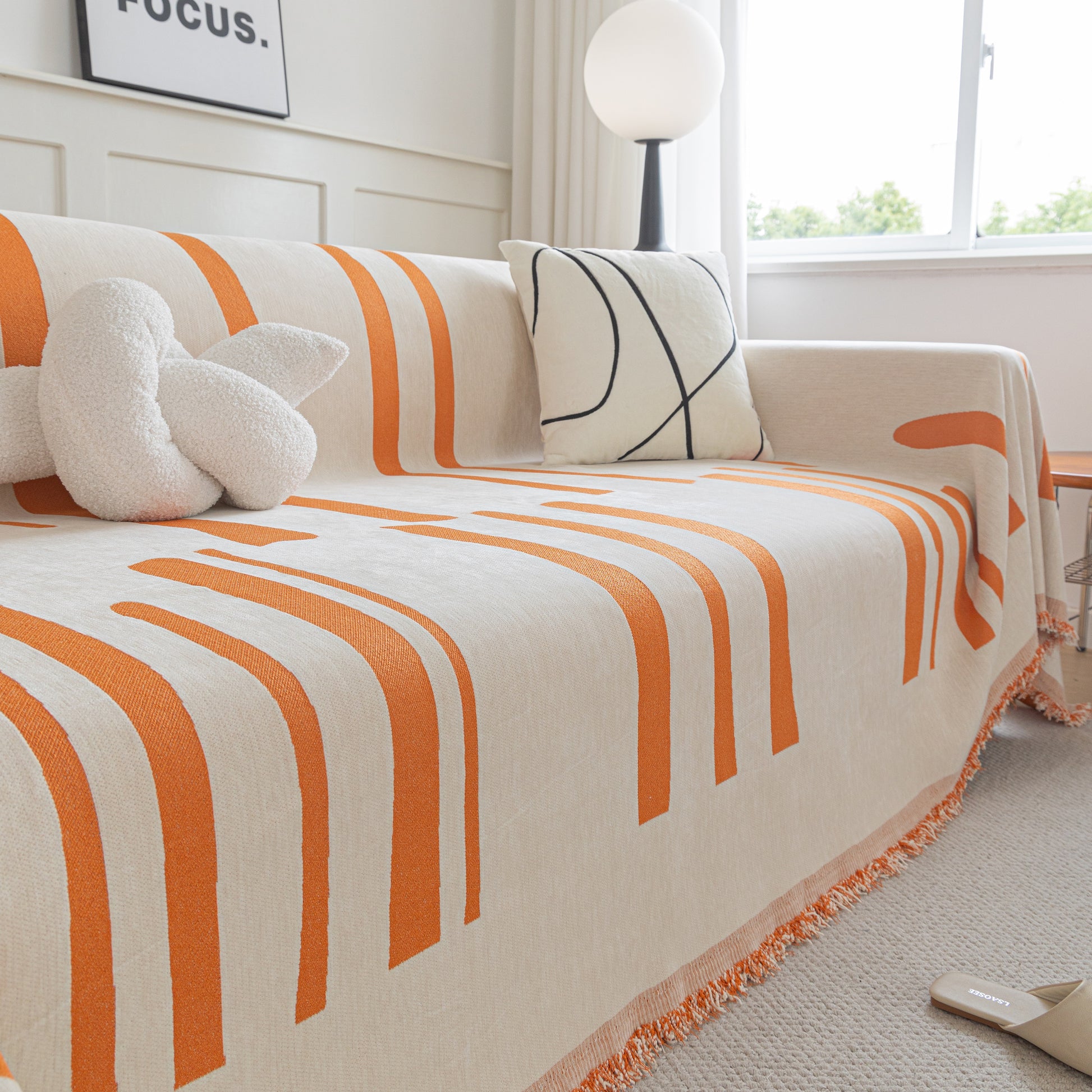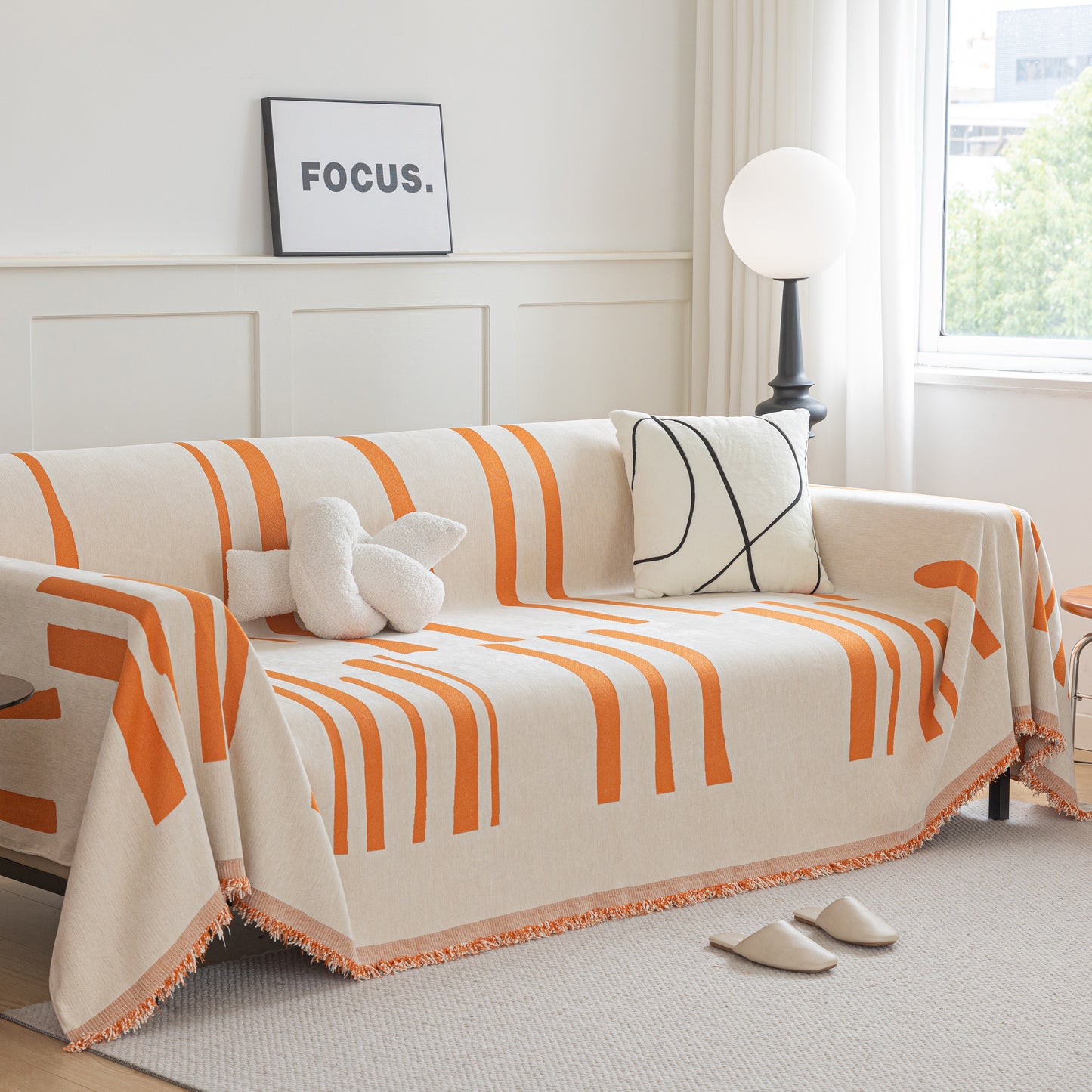 Soft Cozy Chenille Throw Cover for Couch with Tassel Accents, Dustproof Soft Throws for Sofa