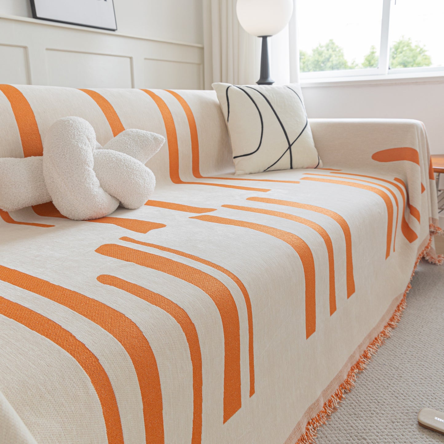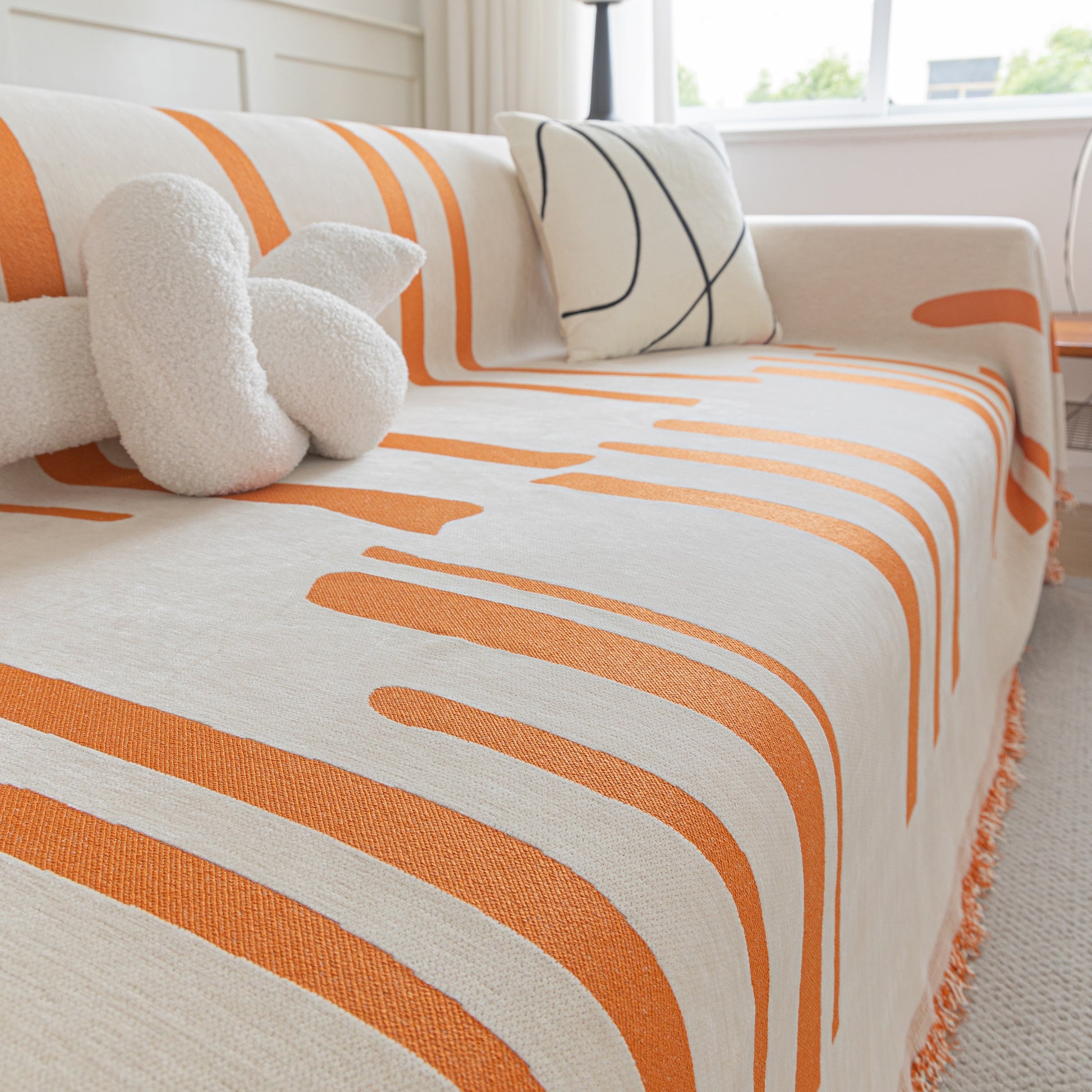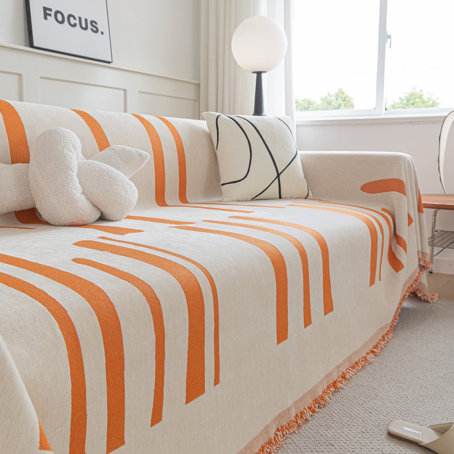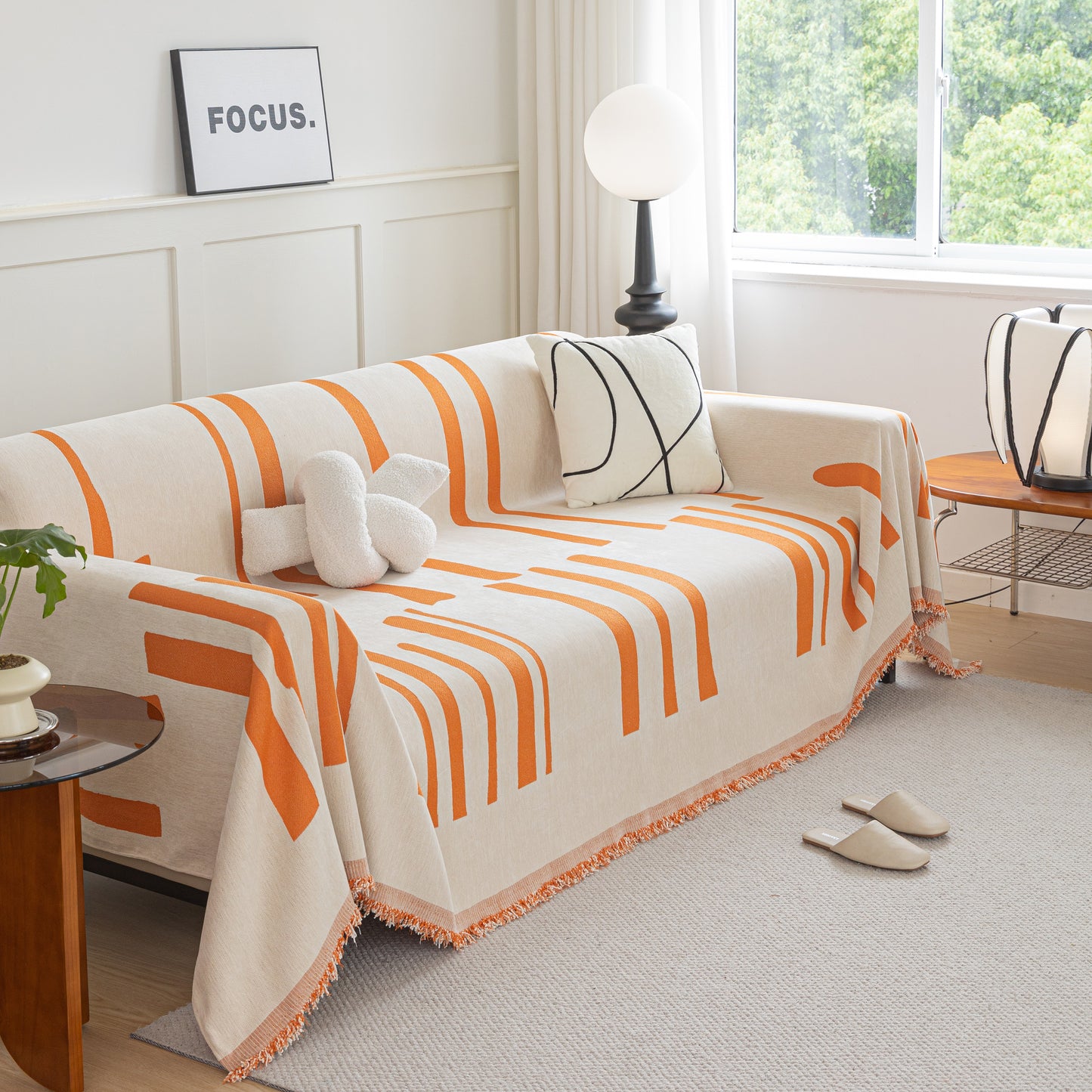 Soft Cozy Chenille Throw Cover for Couch with Tassel Accents, Dustproof Soft Throws for Sofa