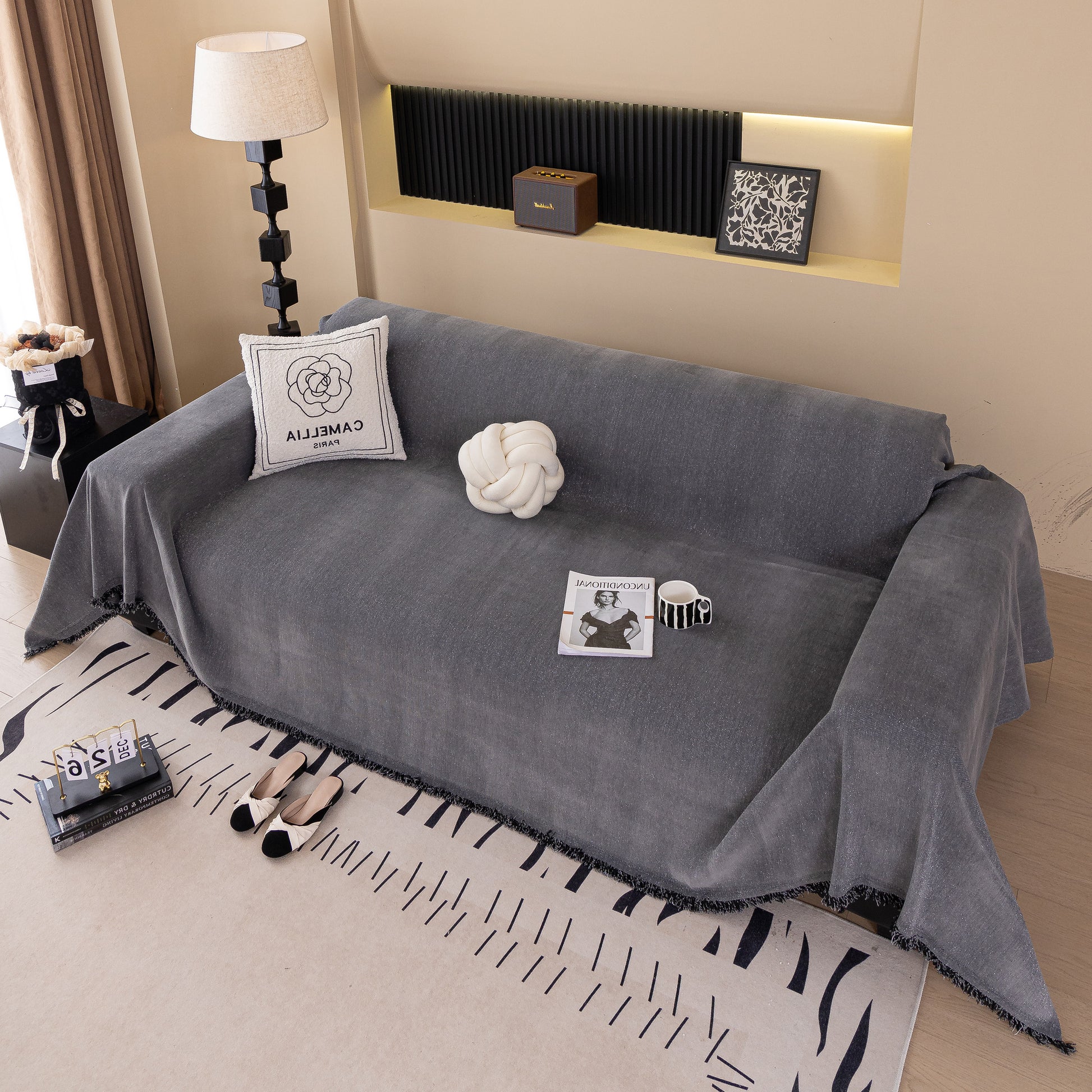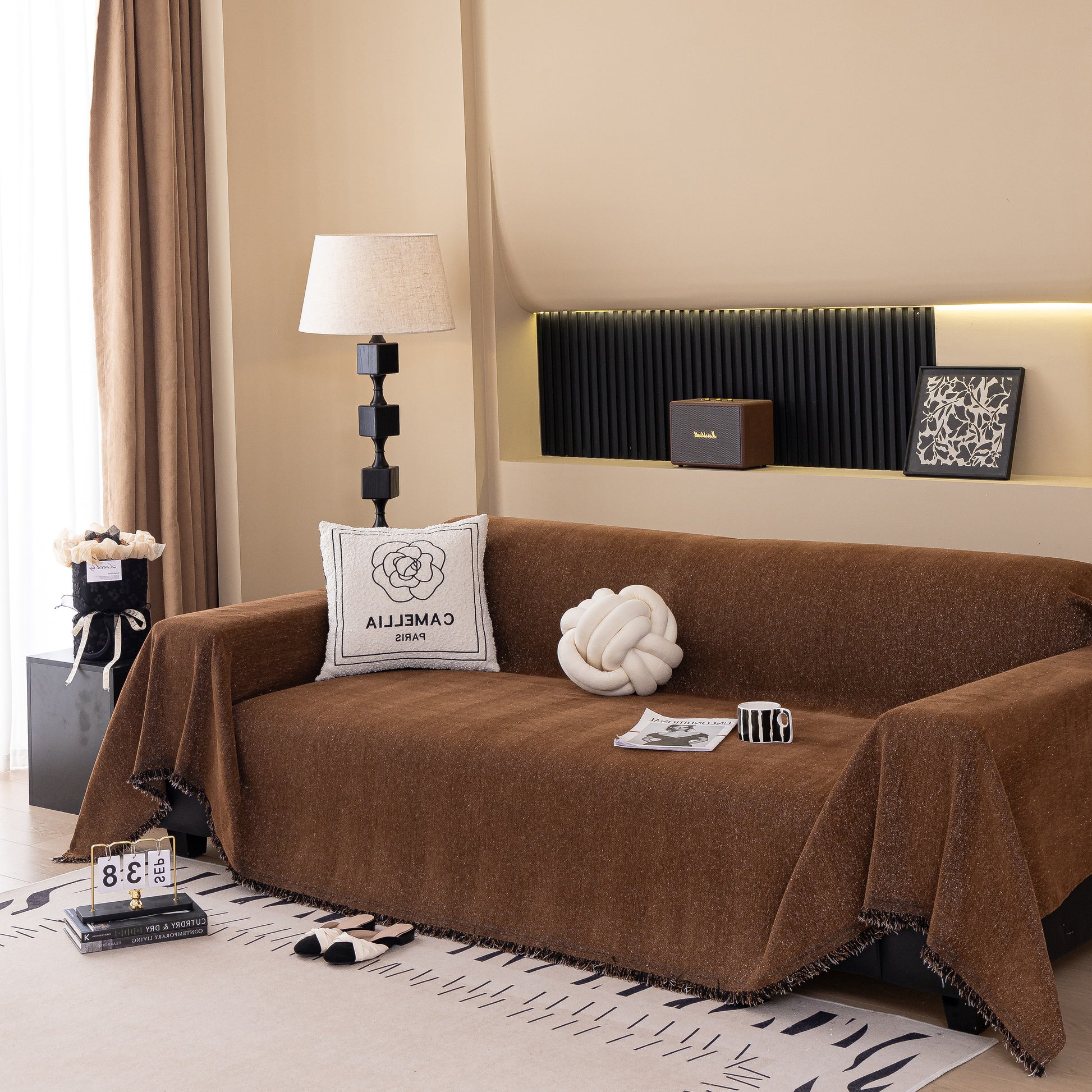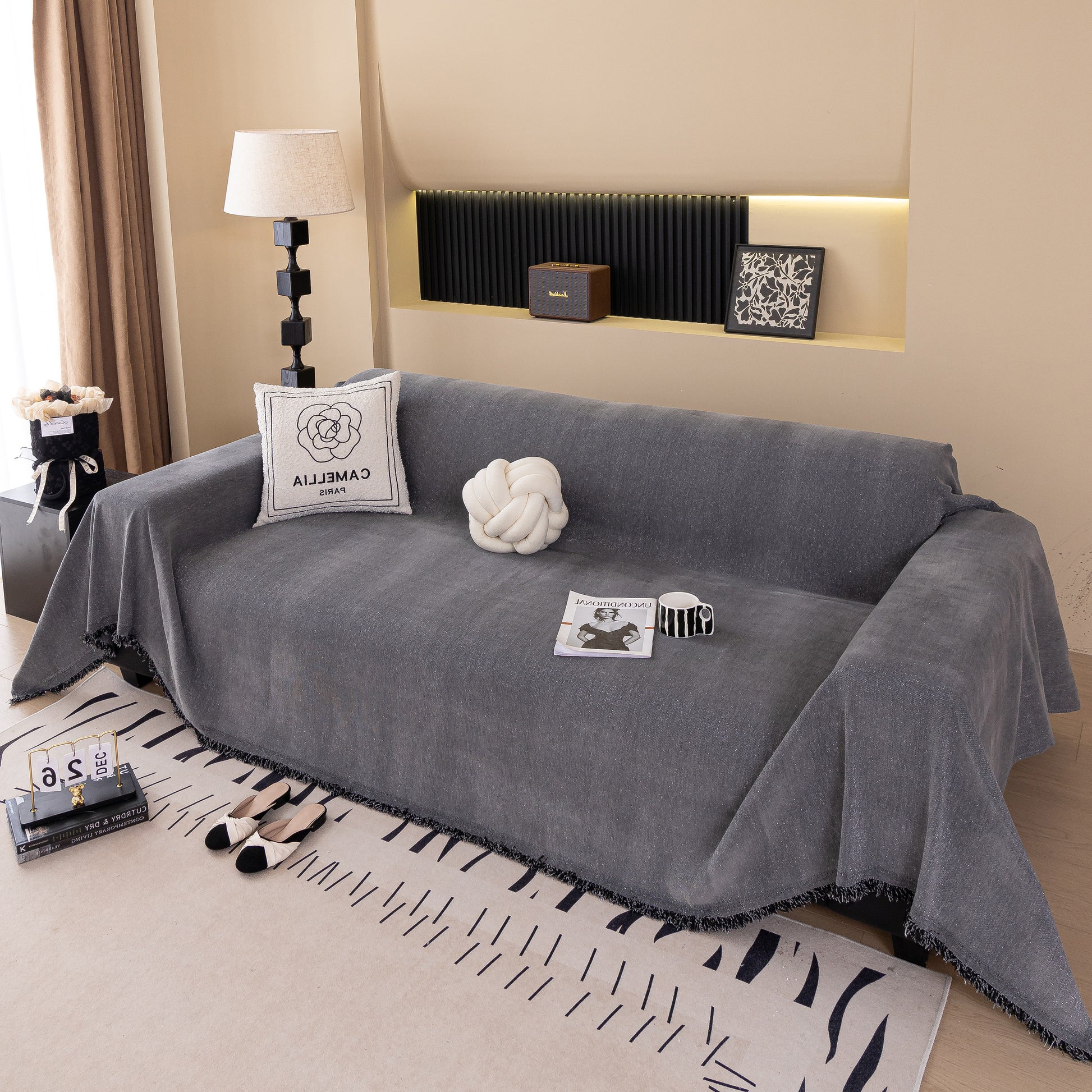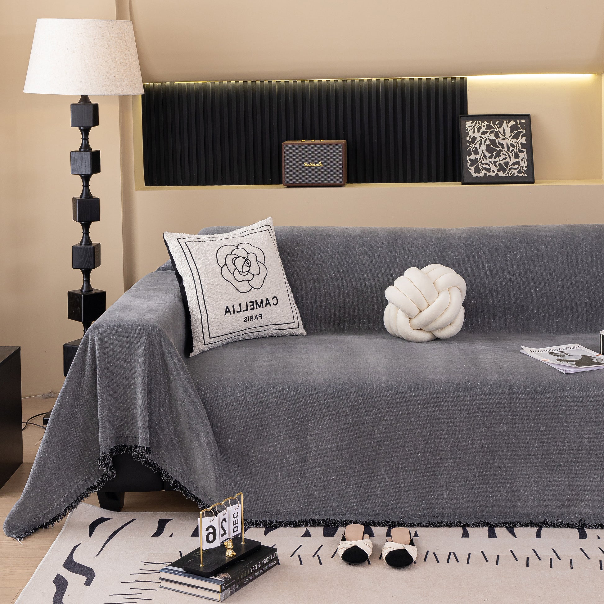 This solid color chenille sofa cover blanket is a furniture cover for sofas and loveseats, designed to enhance the look of your sofa while offering practical protection. Crafted from high-quality chenille fabric, it provides a soft, cozy texture that feels gentle against the skin. The cover helps shield your furniture from dust, pet hair, and everyday wear. Its simple yet elegant appearance complements a variety of interior styles, making it suitable for all seasons. With multiple size options available, it’s easy to find the right fit for different types of sofas, including sectionals. Drape it effortlessly over your couch for an instant style refresh and added functionality.