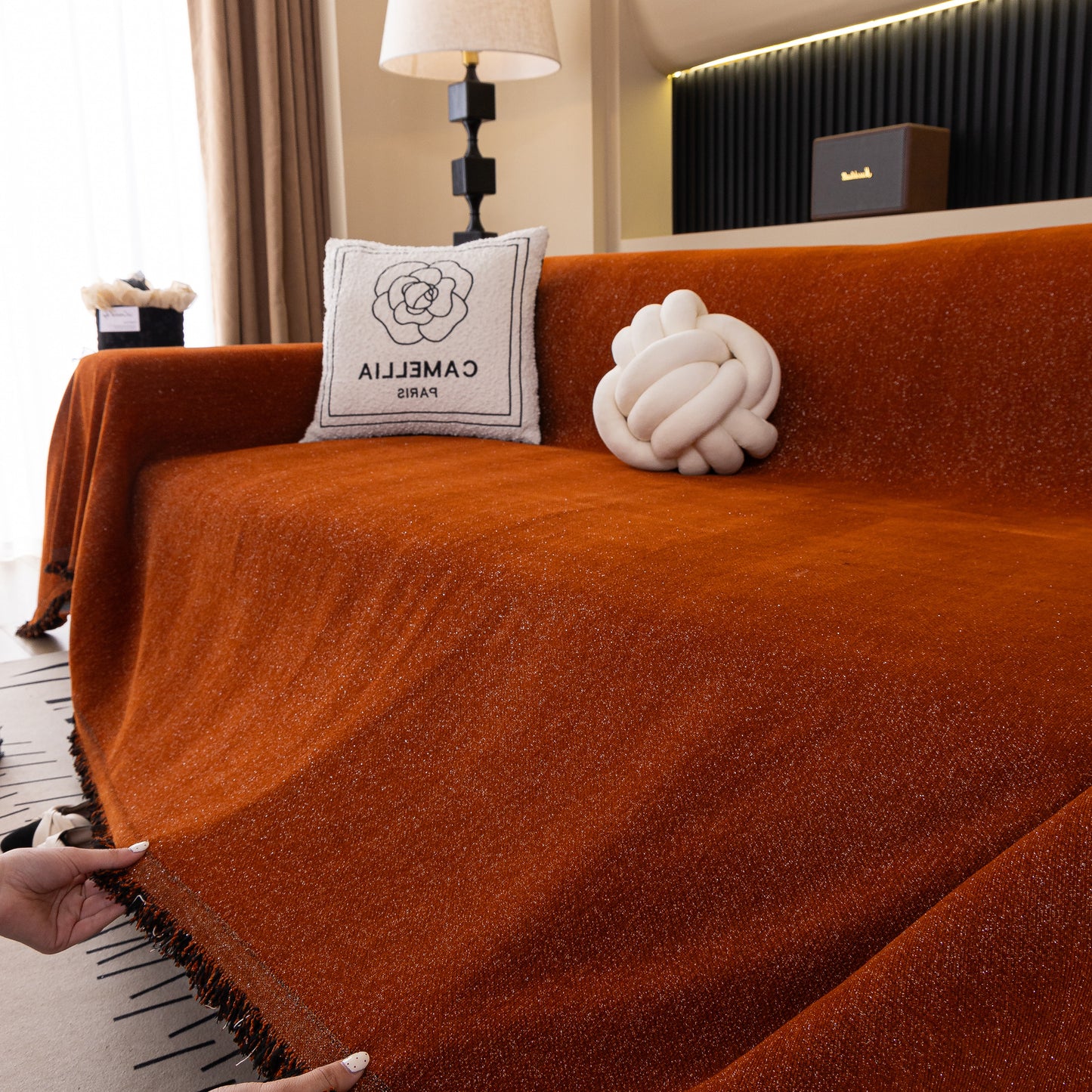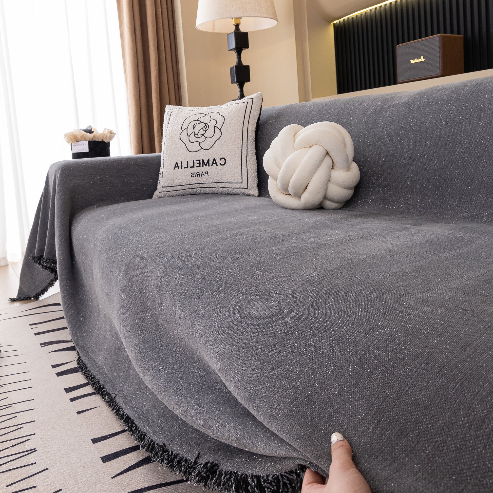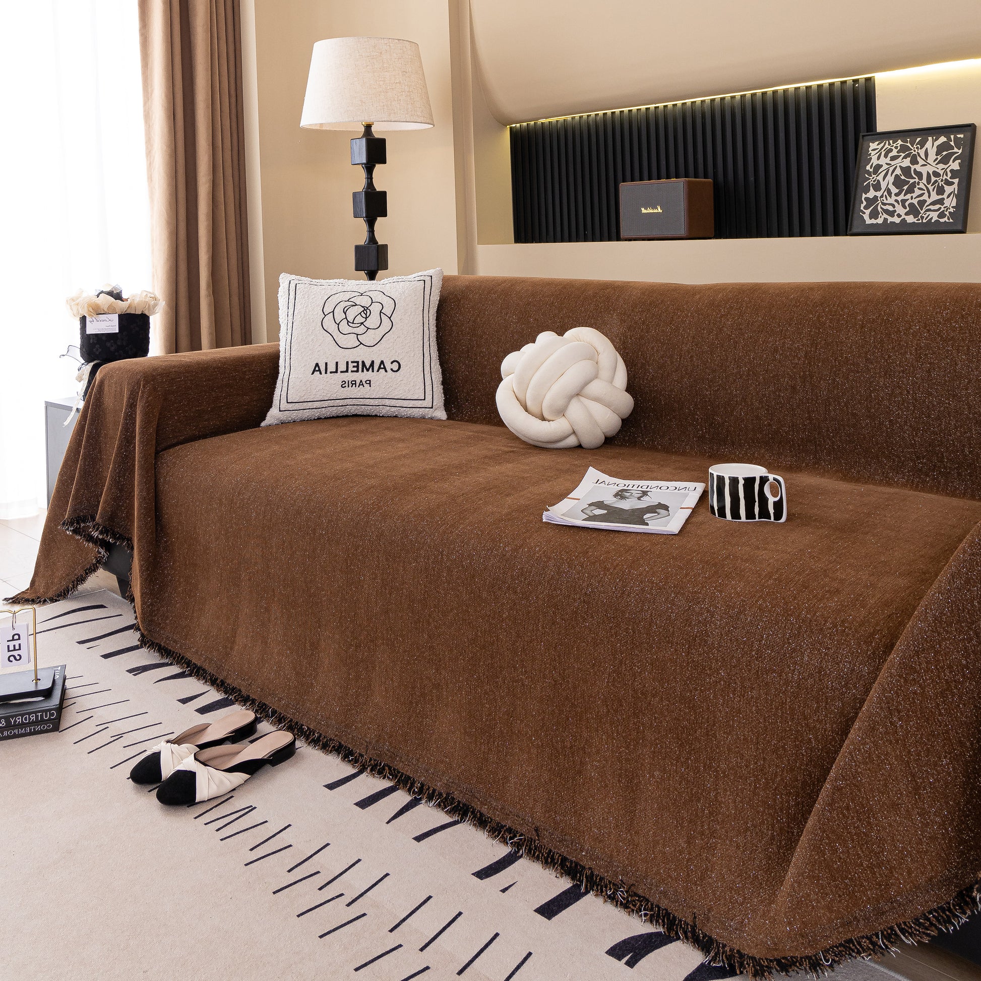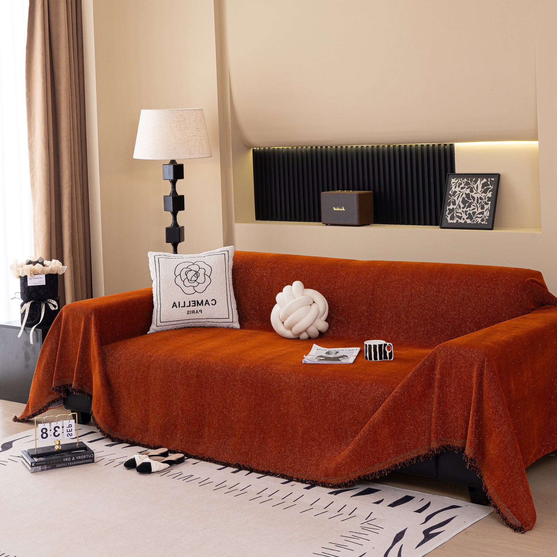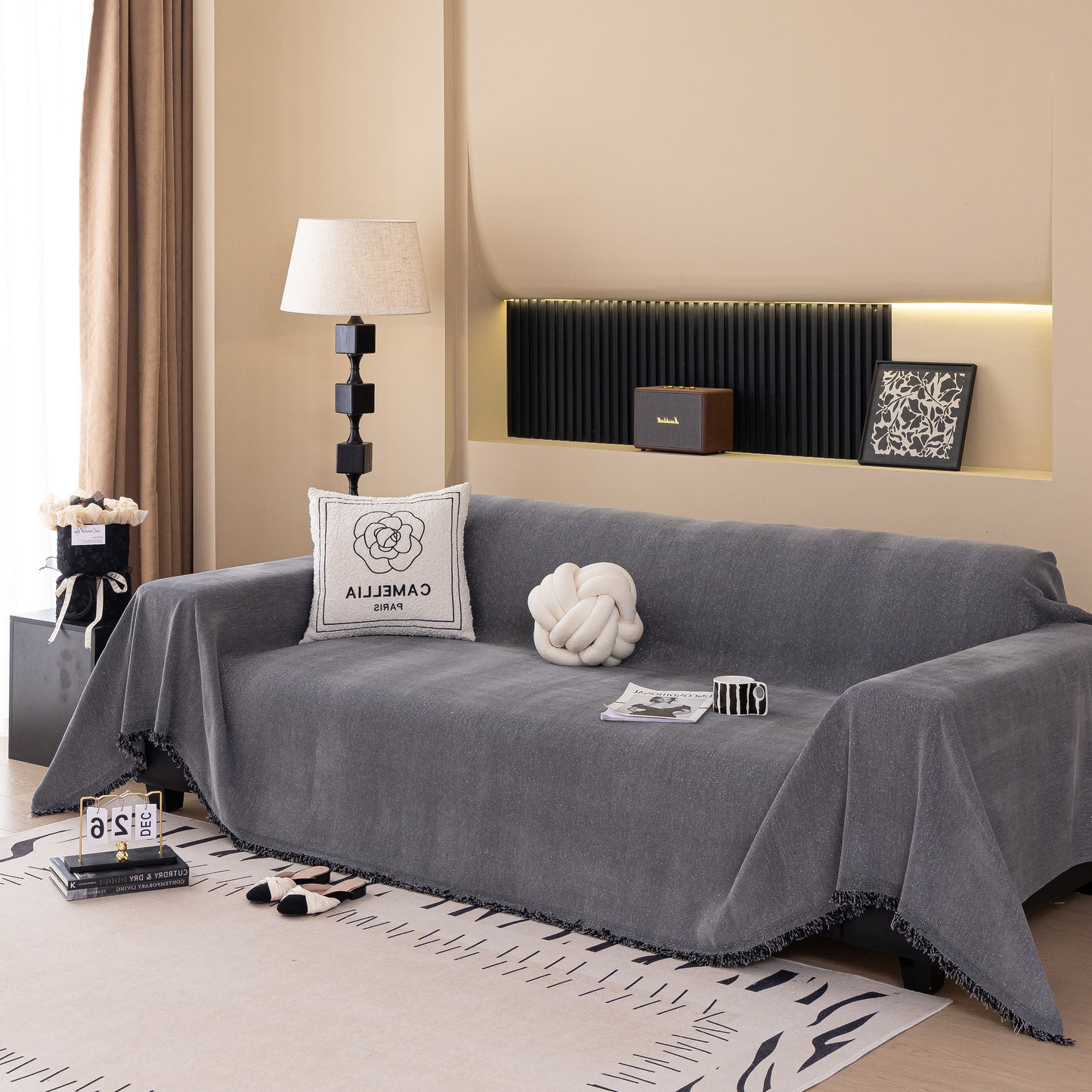 This solid color chenille sofa cover blanket is a furniture cover for sofas and loveseats, designed to enhance the look of your sofa while offering practical protection. Crafted from high-quality chenille fabric, it provides a soft, cozy texture that feels gentle against the skin. The cover helps shield your furniture from dust, pet hair, and everyday wear. Its simple yet elegant appearance complements a variety of interior styles, making it suitable for all seasons. With multiple size options available, it’s easy to find the right fit for different types of sofas, including sectionals. Drape it effortlessly over your couch for an instant style refresh and added functionality.