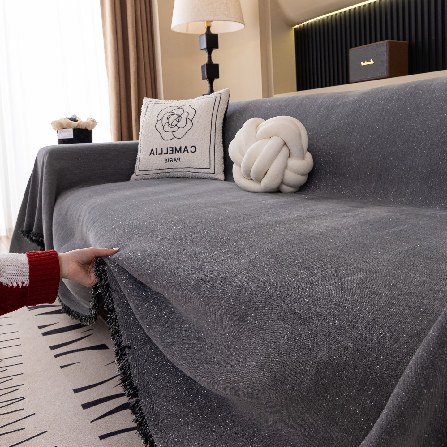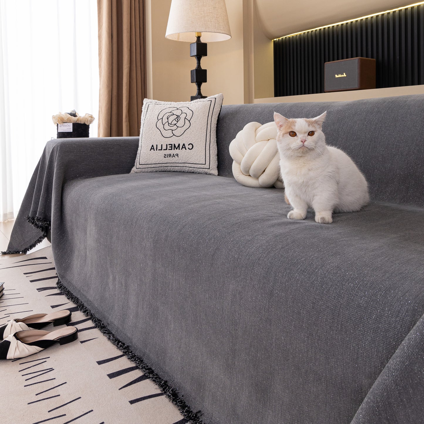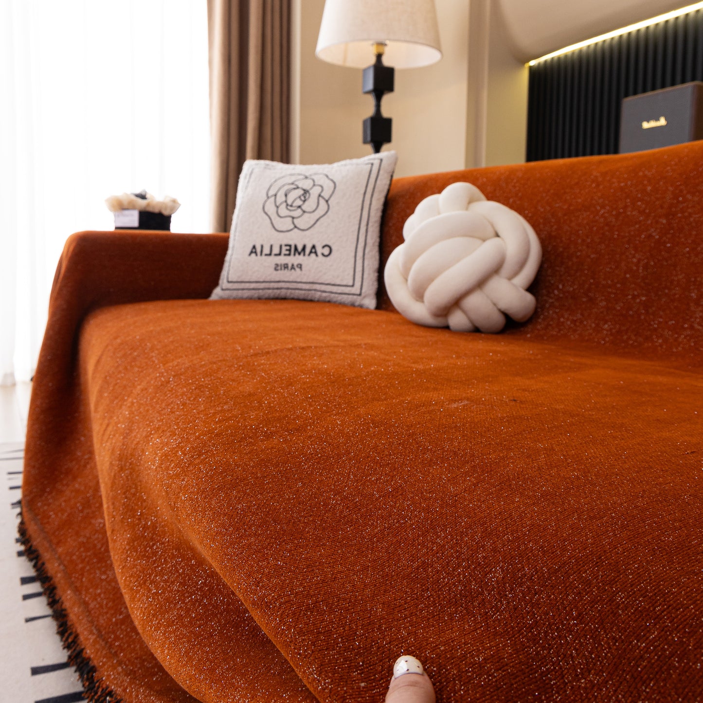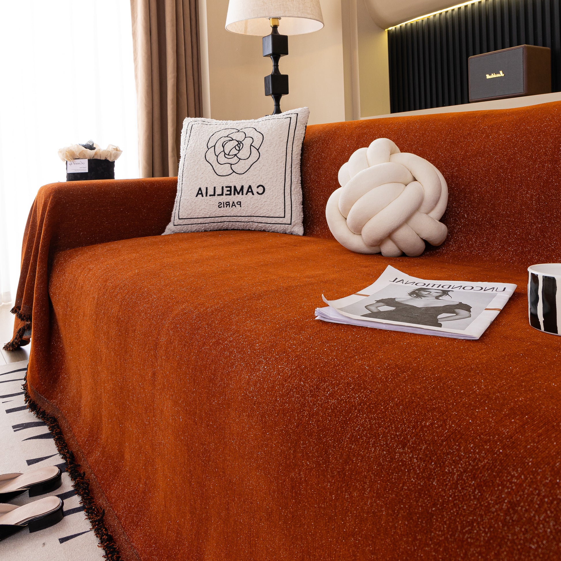 This solid color chenille sofa cover blanket is a furniture cover for sofas and loveseats, designed to enhance the look of your sofa while offering practical protection. Crafted from high-quality chenille fabric, it provides a soft, cozy texture that feels gentle against the skin. The cover helps shield your furniture from dust, pet hair, and everyday wear. Its simple yet elegant appearance complements a variety of interior styles, making it suitable for all seasons. With multiple size options available, it’s easy to find the right fit for different types of sofas, including sectionals. Drape it effortlessly over your couch for an instant style refresh and added functionality.