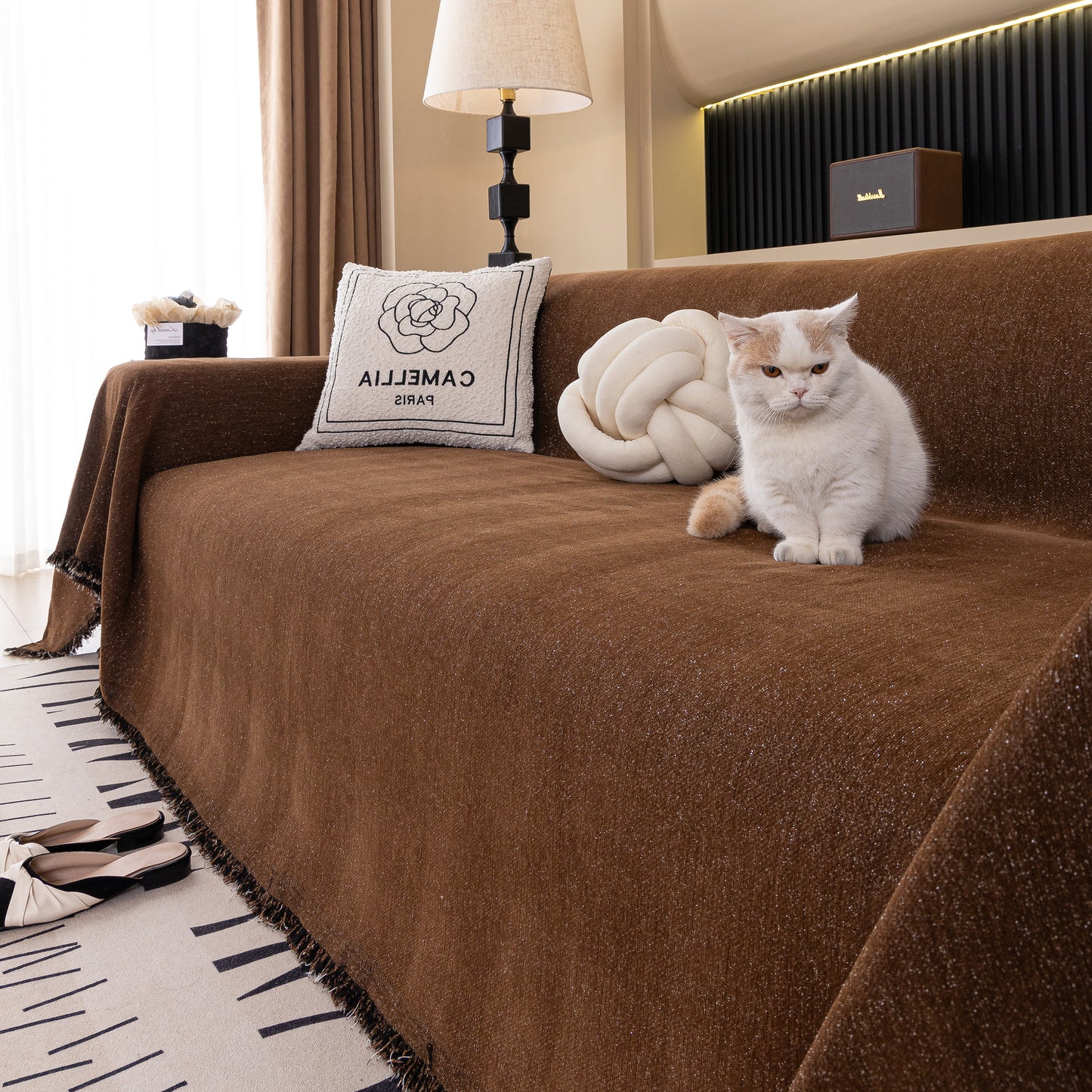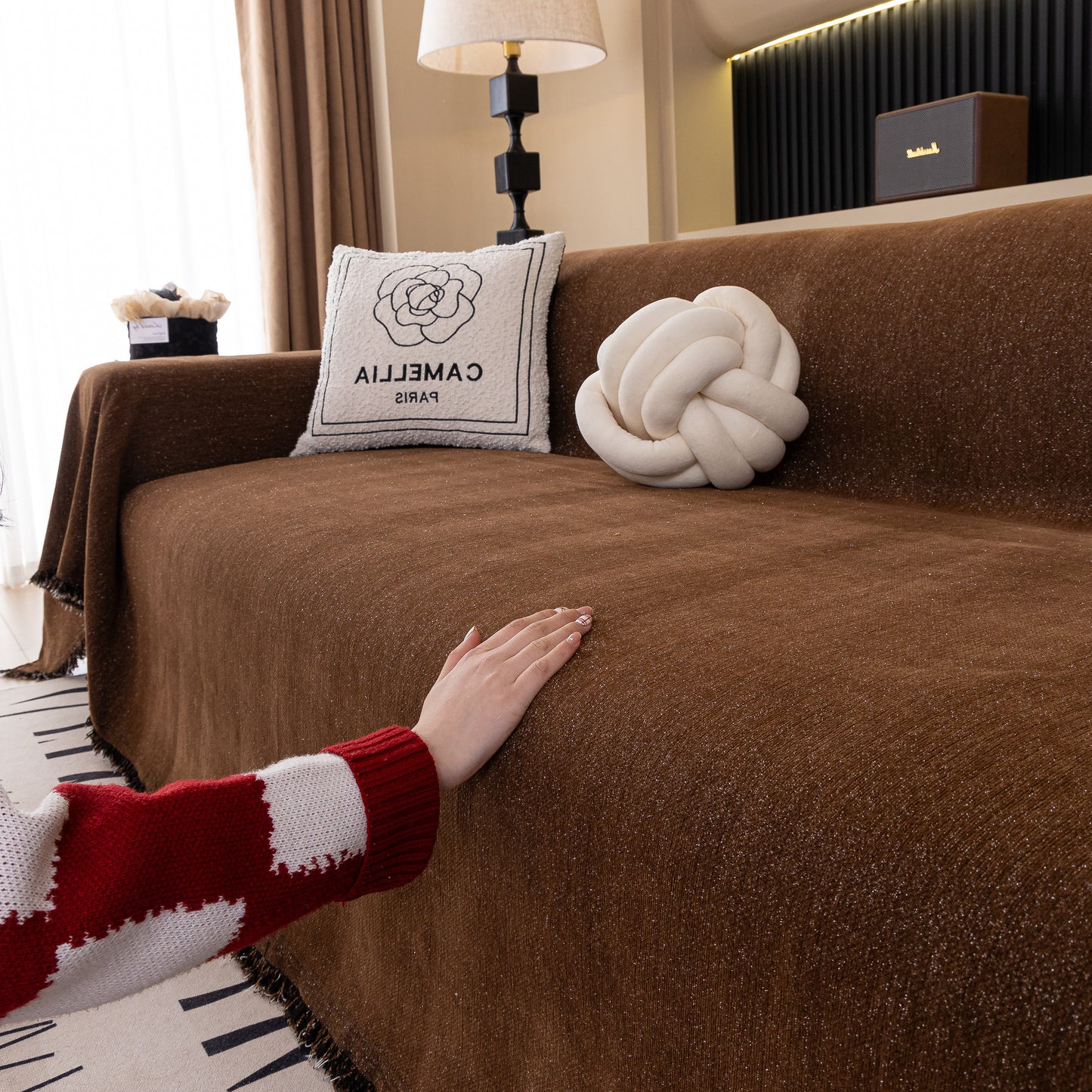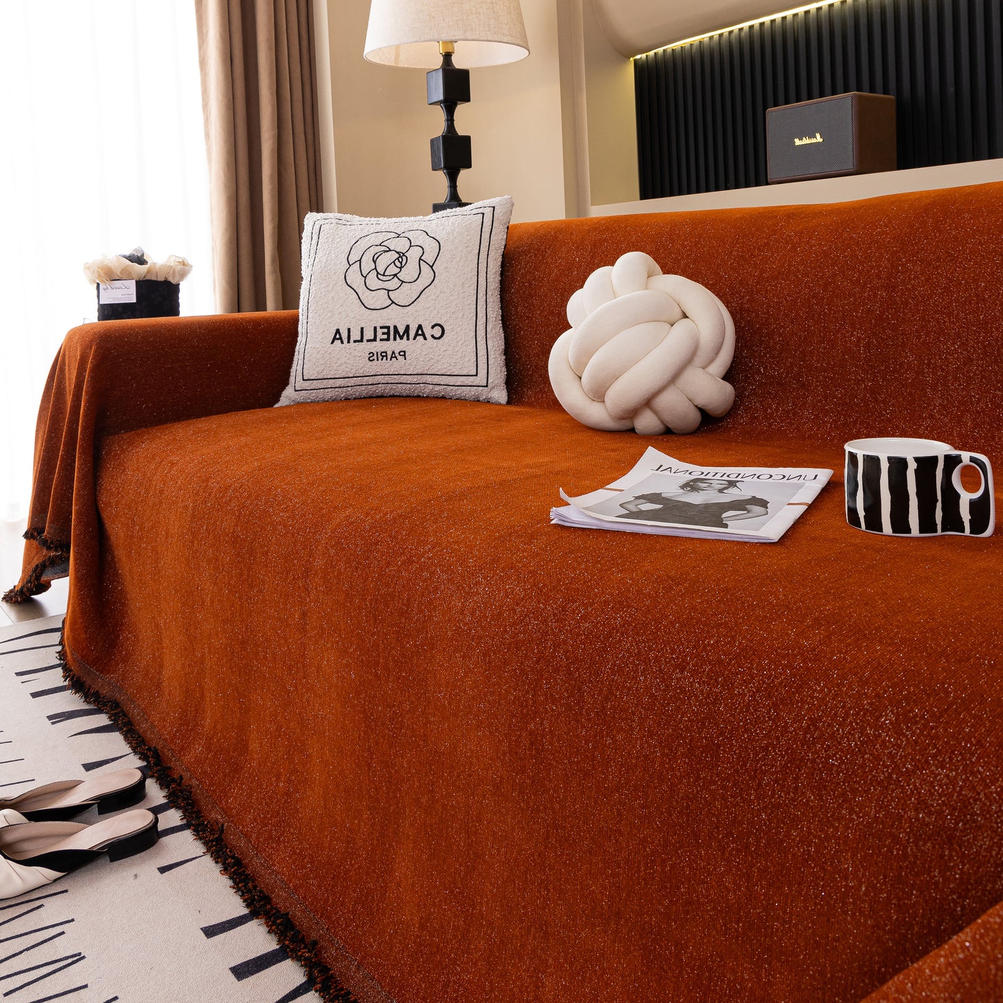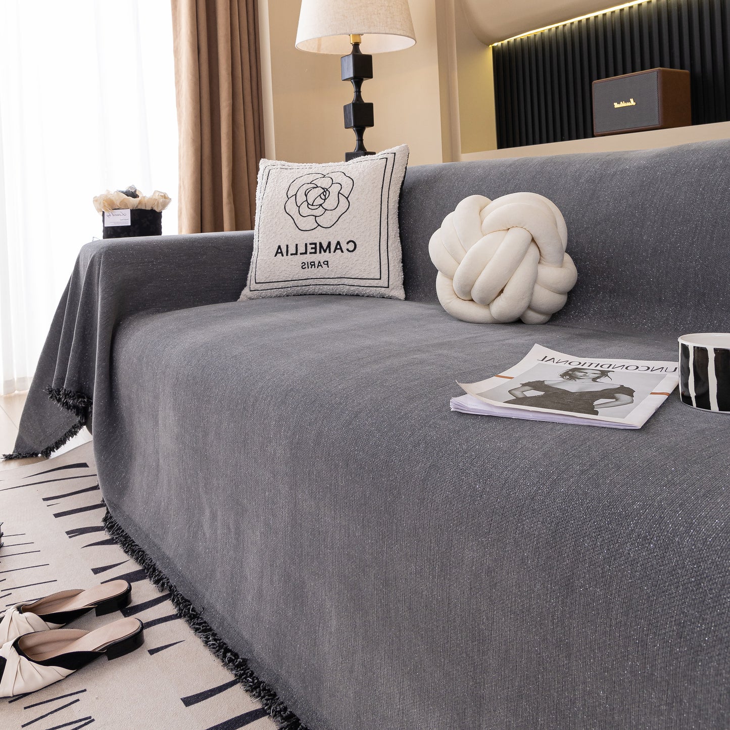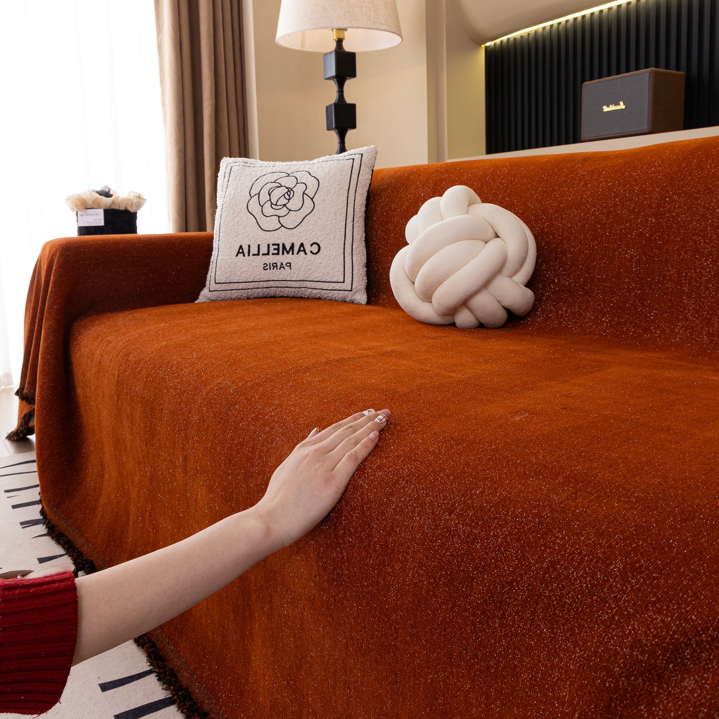 This solid color chenille sofa cover blanket is a furniture cover for sofas and loveseats, designed to enhance the look of your sofa while offering practical protection. Crafted from high-quality chenille fabric, it provides a soft, cozy texture that feels gentle against the skin. The cover helps shield your furniture from dust, pet hair, and everyday wear. Its simple yet elegant appearance complements a variety of interior styles, making it suitable for all seasons. With multiple size options available, it’s easy to find the right fit for different types of sofas, including sectionals. Drape it effortlessly over your couch for an instant style refresh and added functionality.