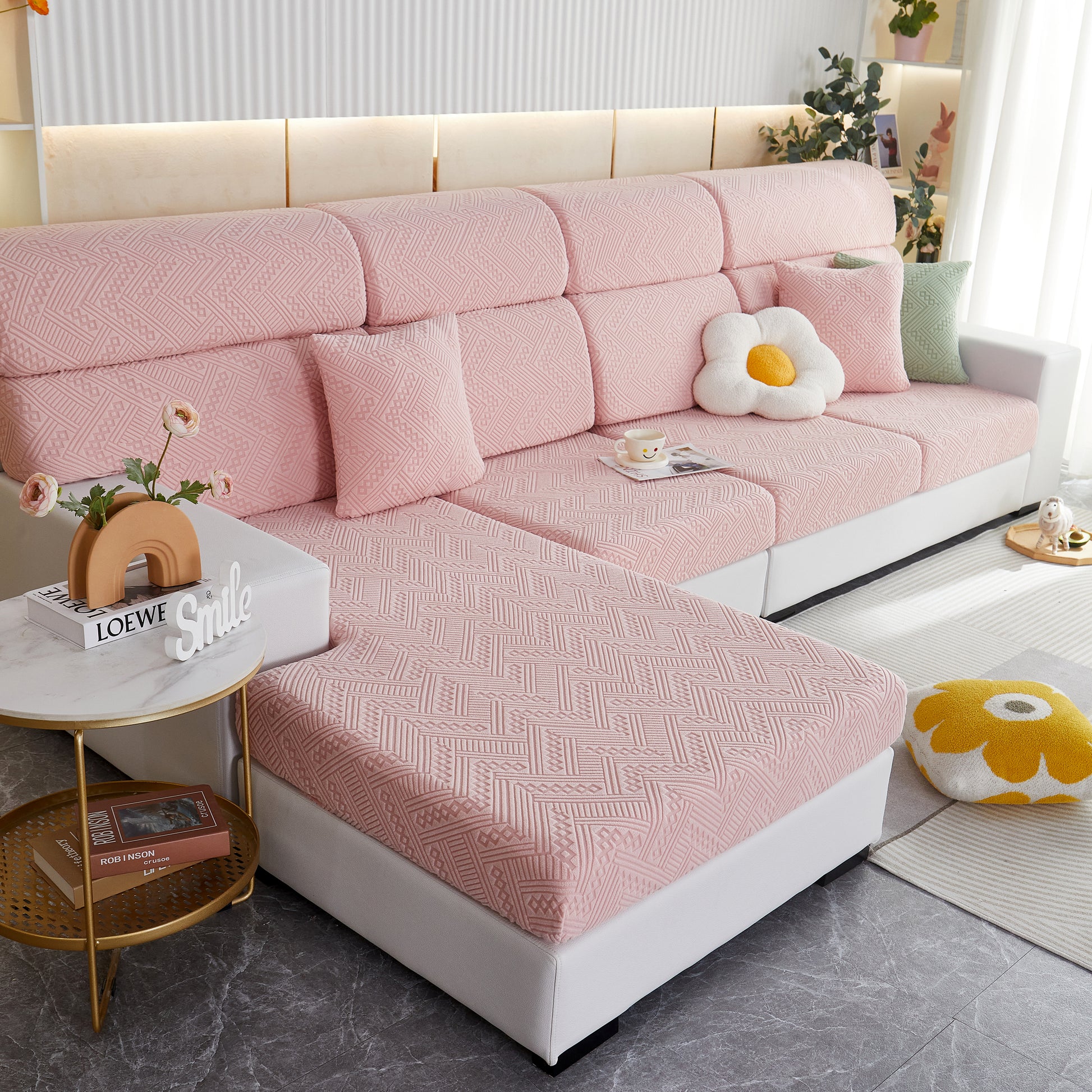 Note: The sofa cover is made of stretchable fabric, allowing it to fit within a specified range of sofa cushion sizes. Please measure your furniture for accurate sizing before purchasing.