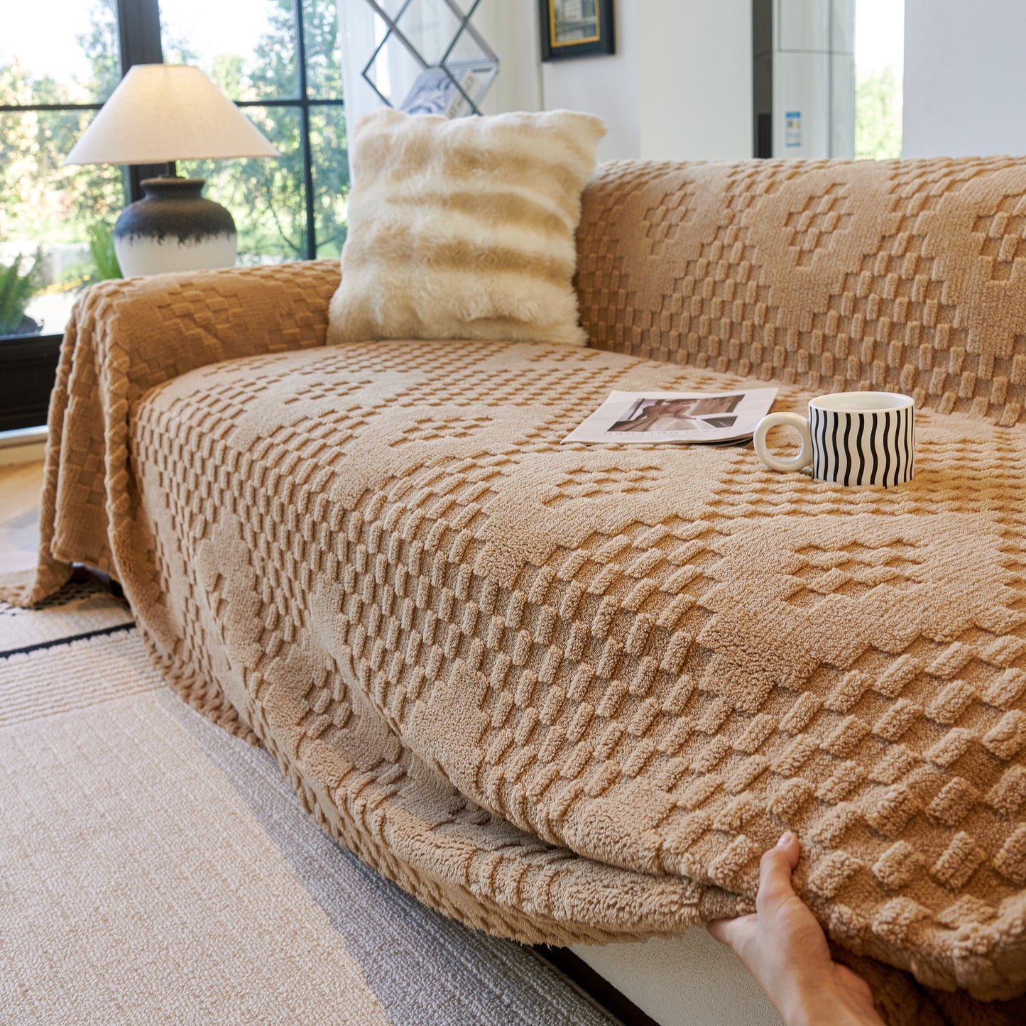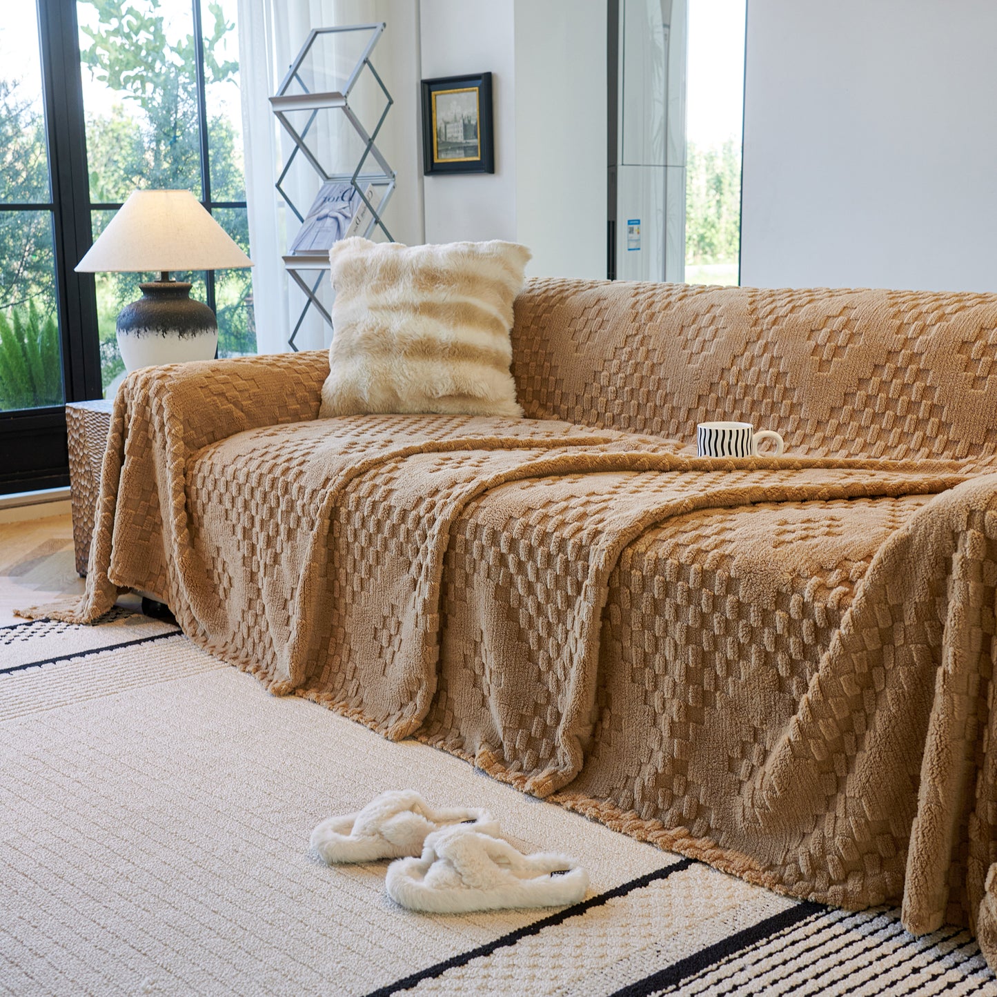 Keep your sofa cozy and protected with our thickened 3D plush coral fleece couch protector blanket. Soft, warm, and full-coverage, it's perfect for comfort and stylish living spaces!