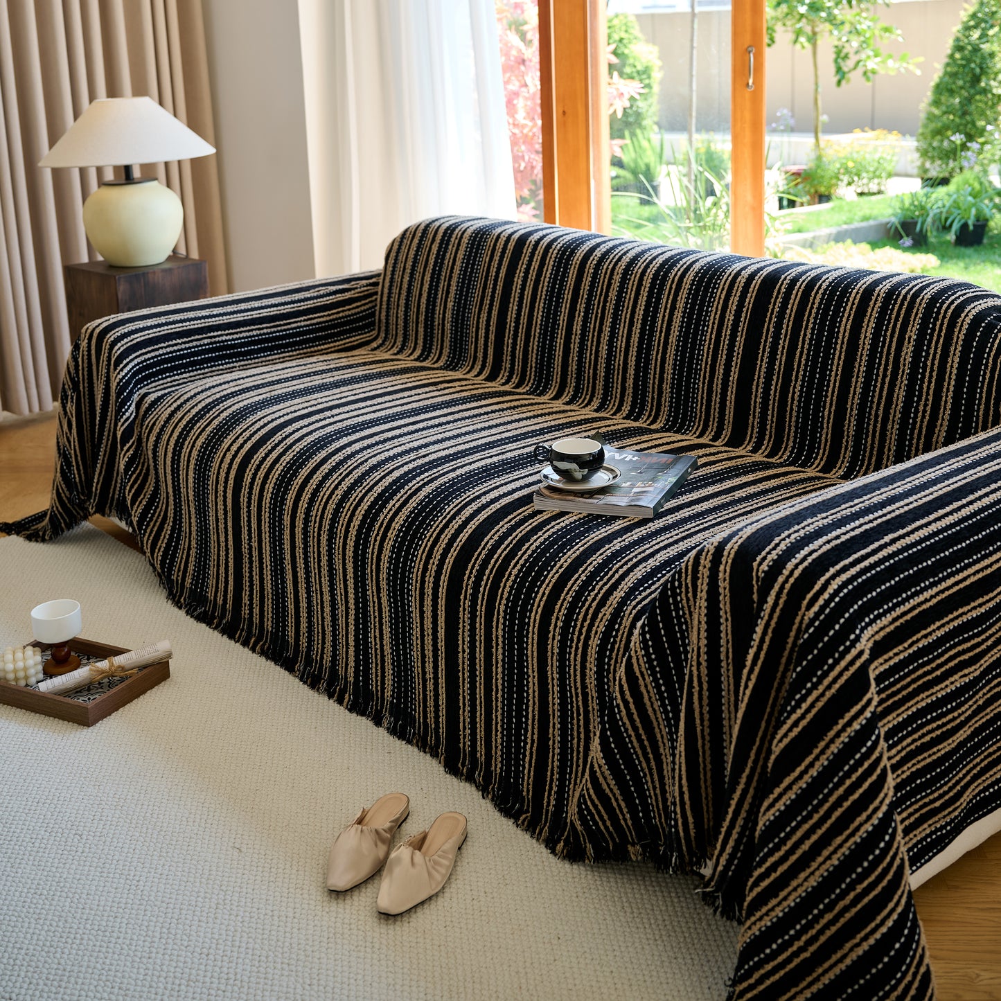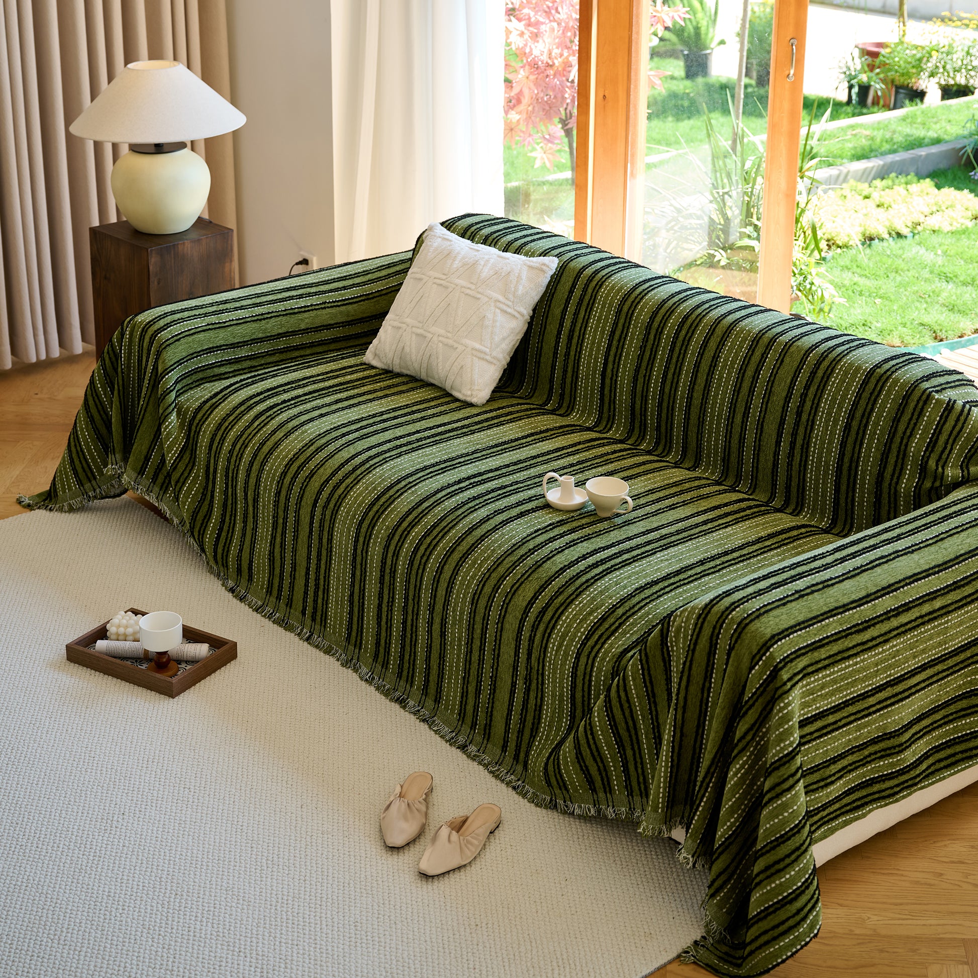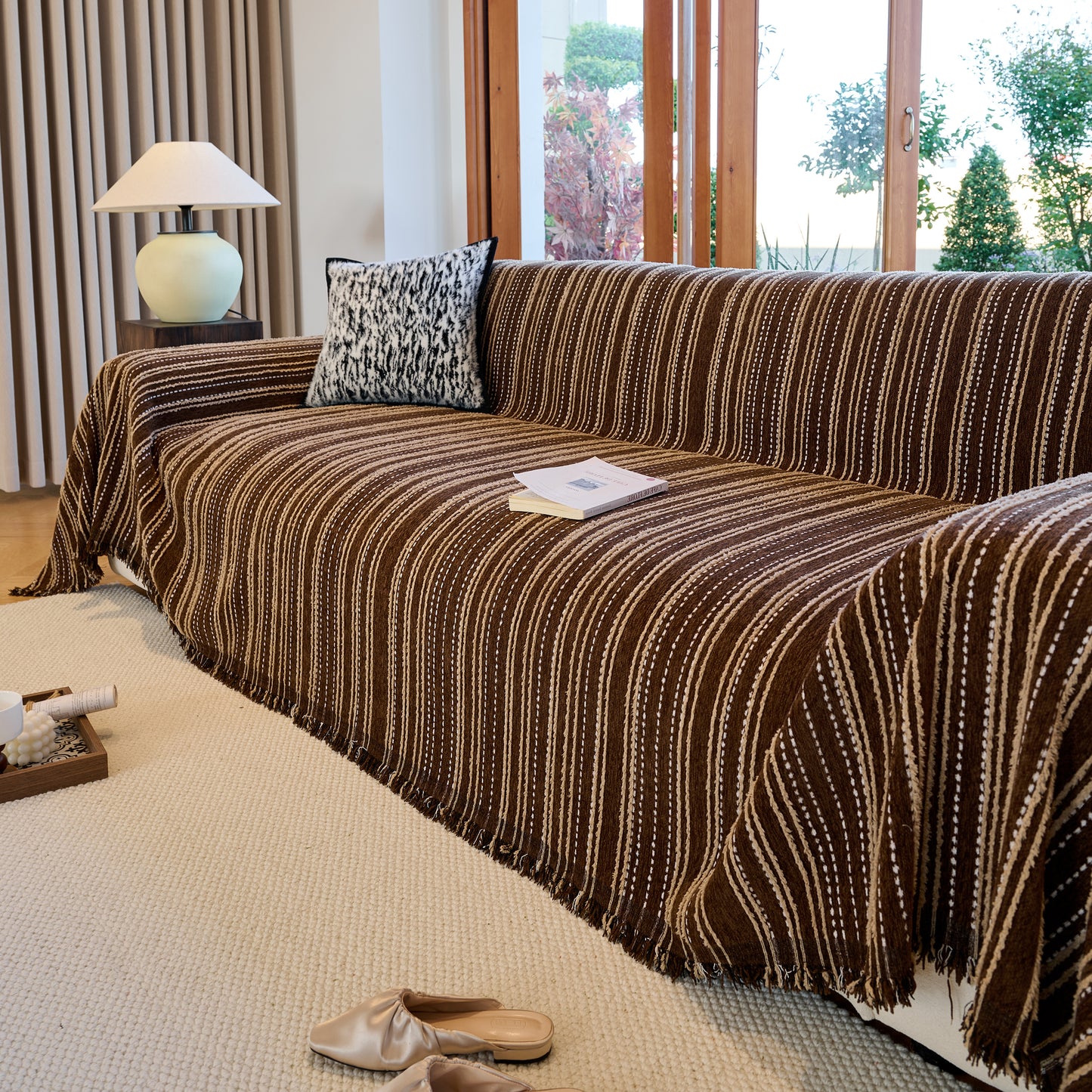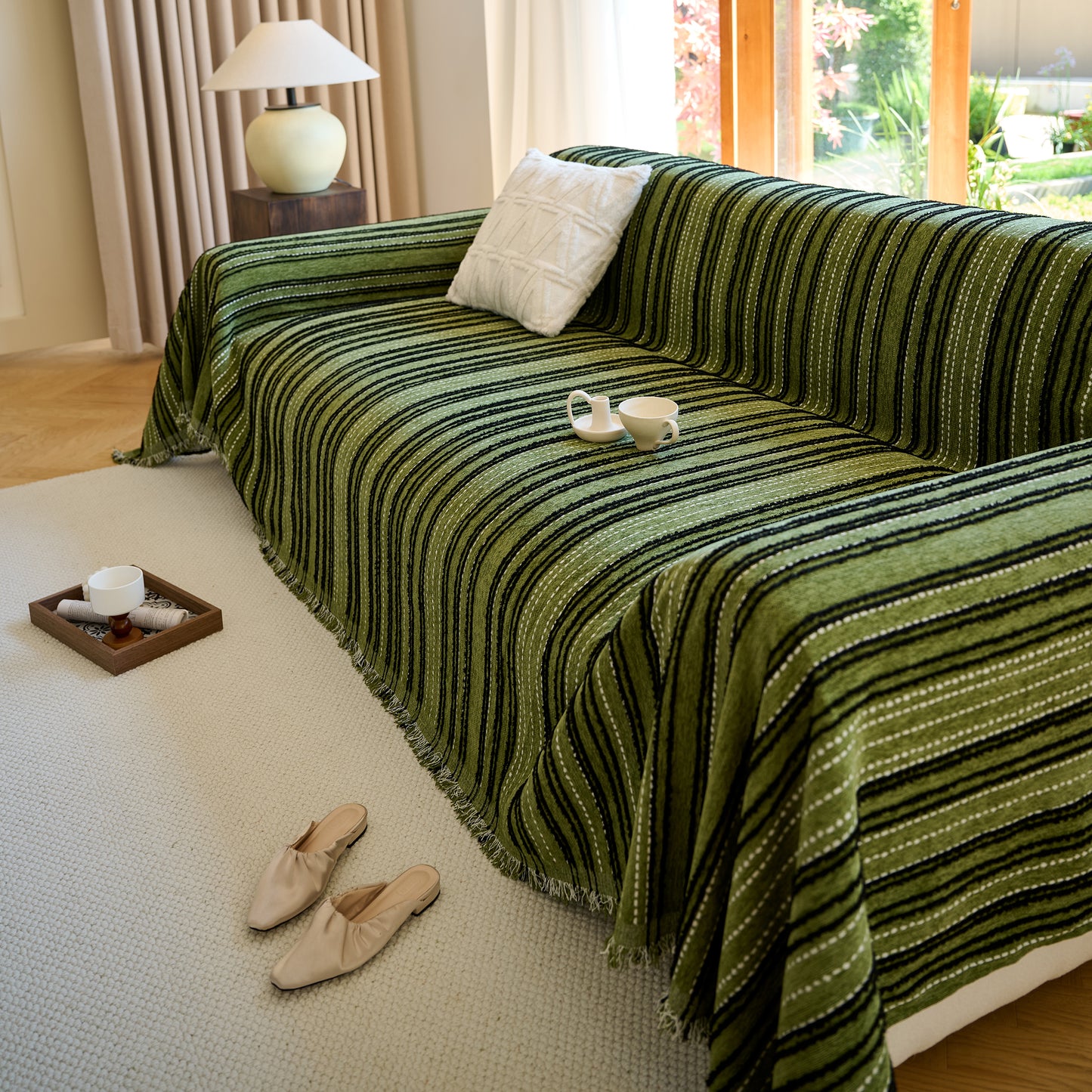 Enhance your home with our Vintage-Inspired Striped Blankets for Couch Covers, crafted from luxurious chenille. This timeless sofa throw cover combines elegance and comfort, perfect for year-round use.