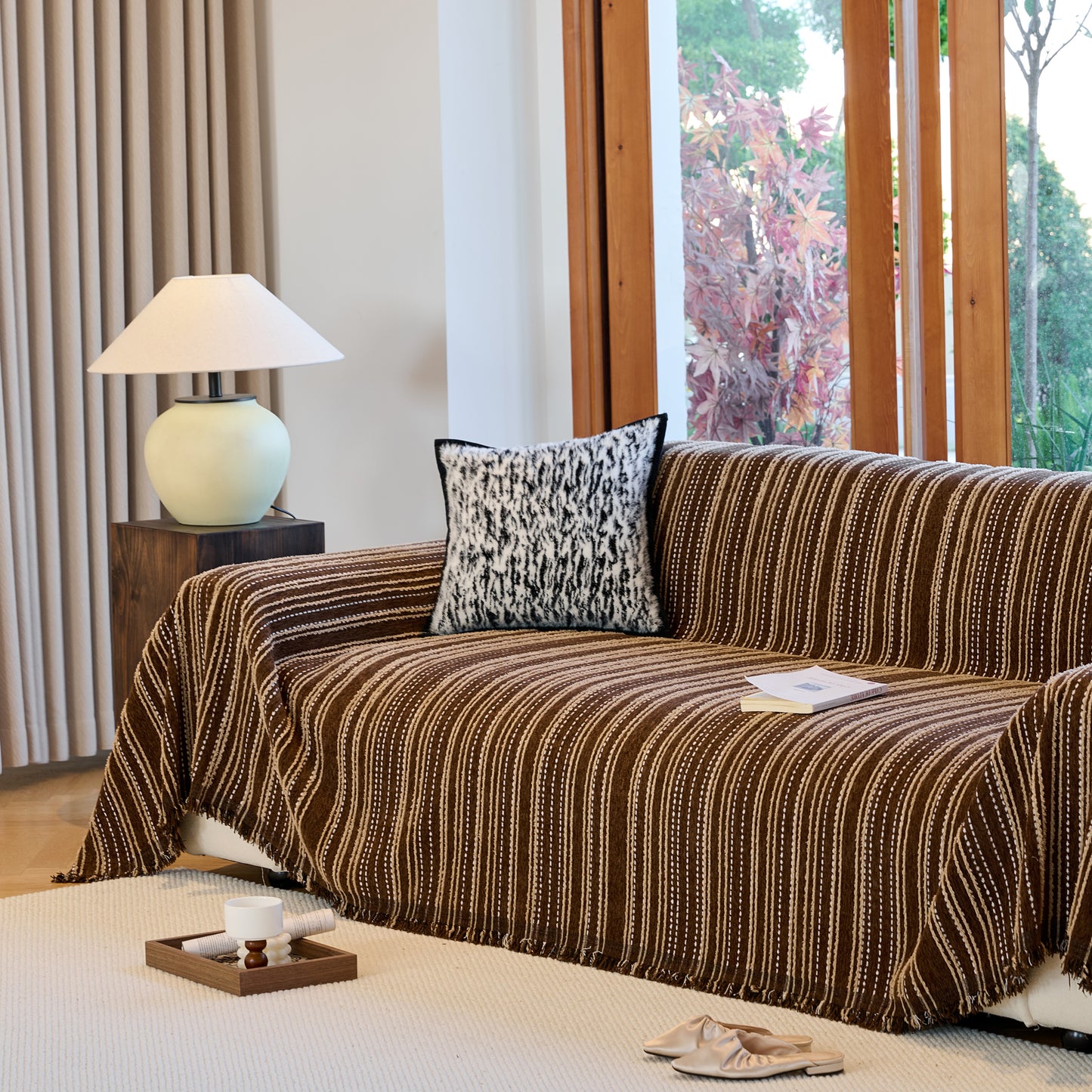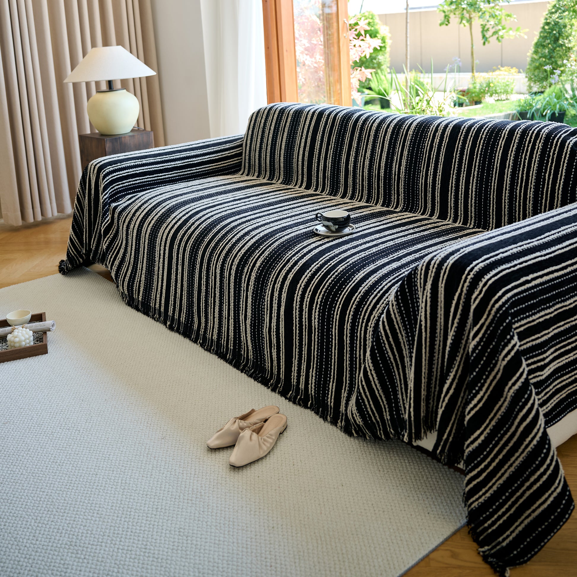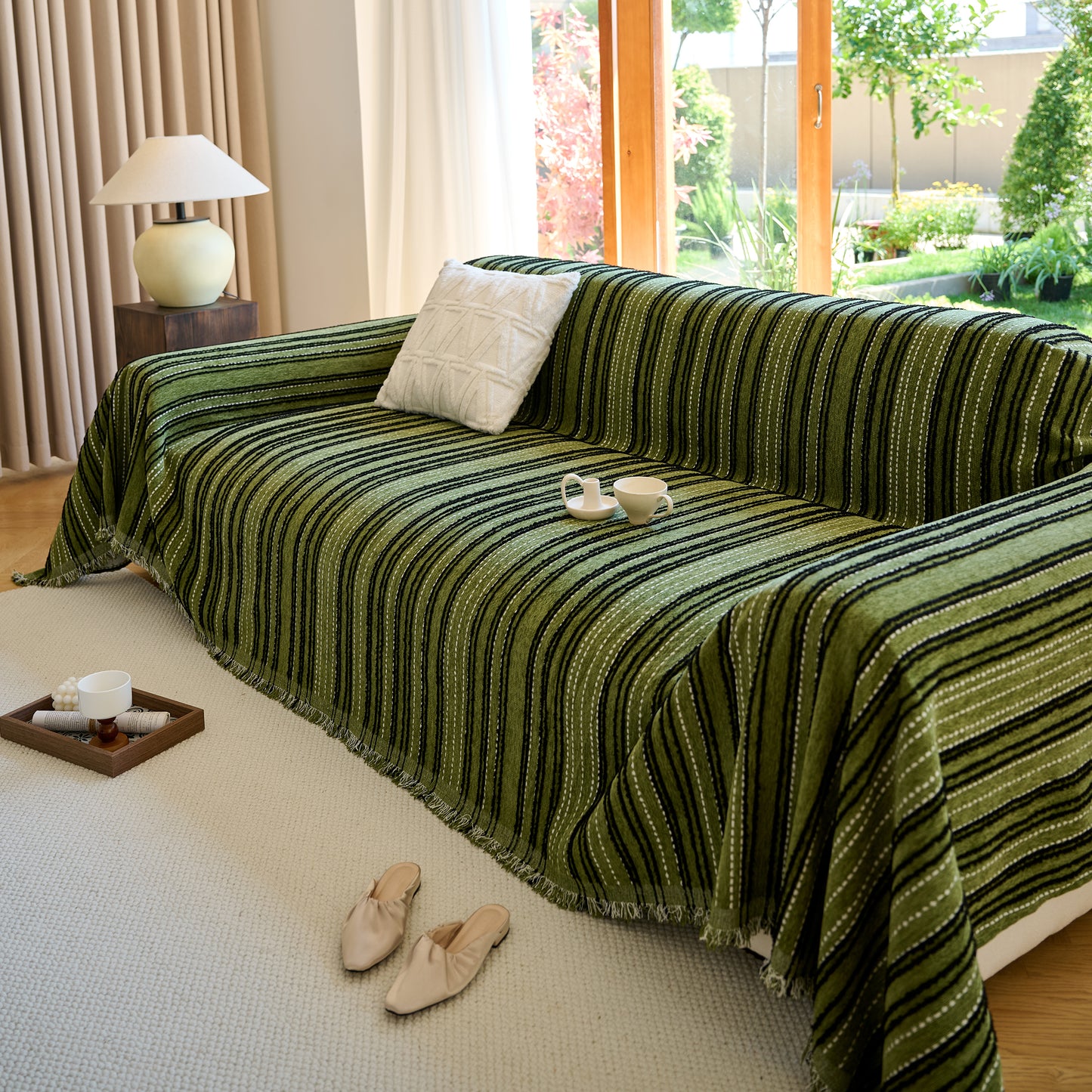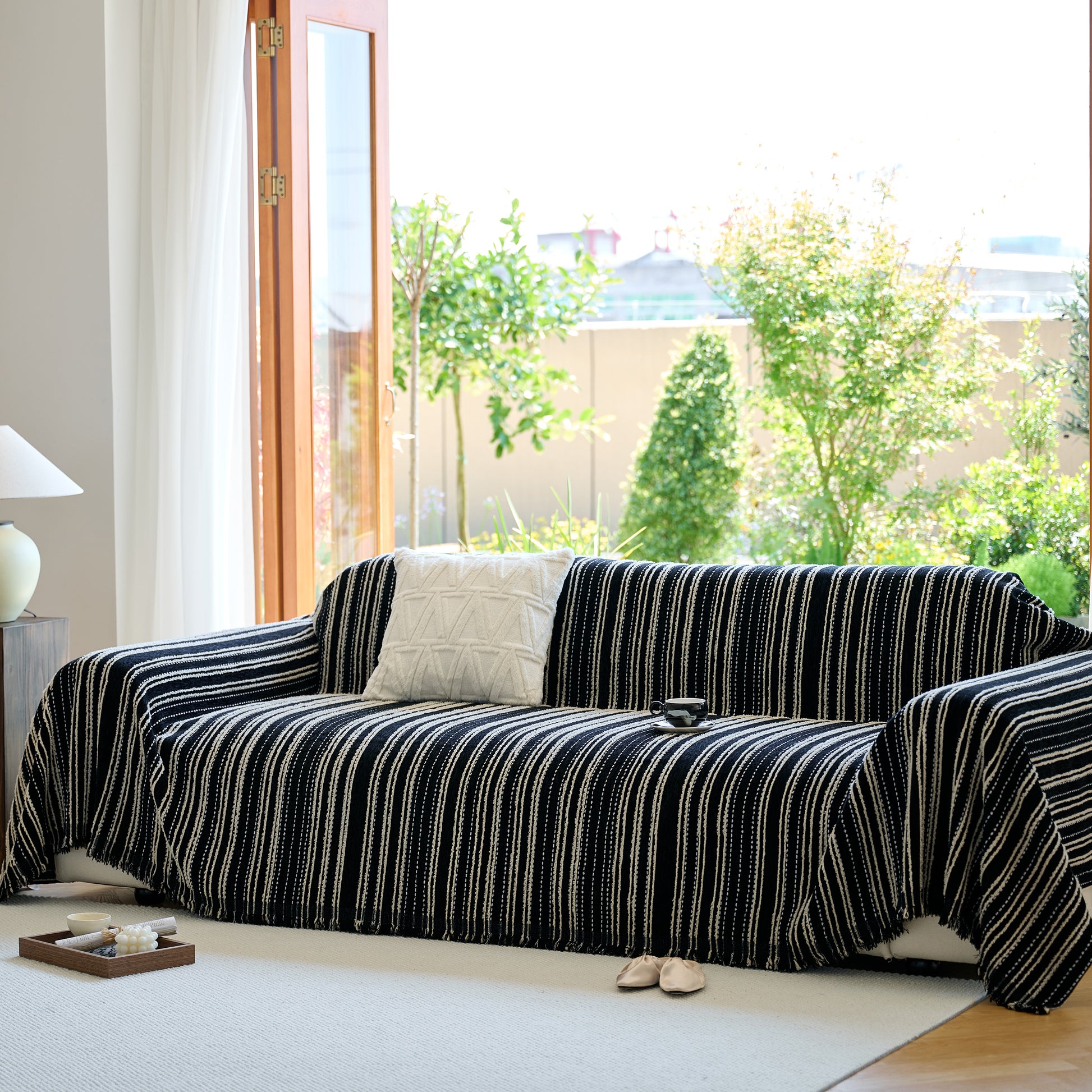 Enhance your home with our Vintage-Inspired Striped Blankets for Couch Covers, crafted from luxurious chenille. This timeless sofa throw cover combines elegance and comfort, perfect for year-round use.