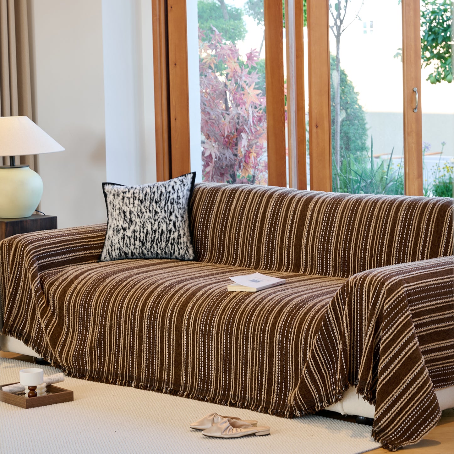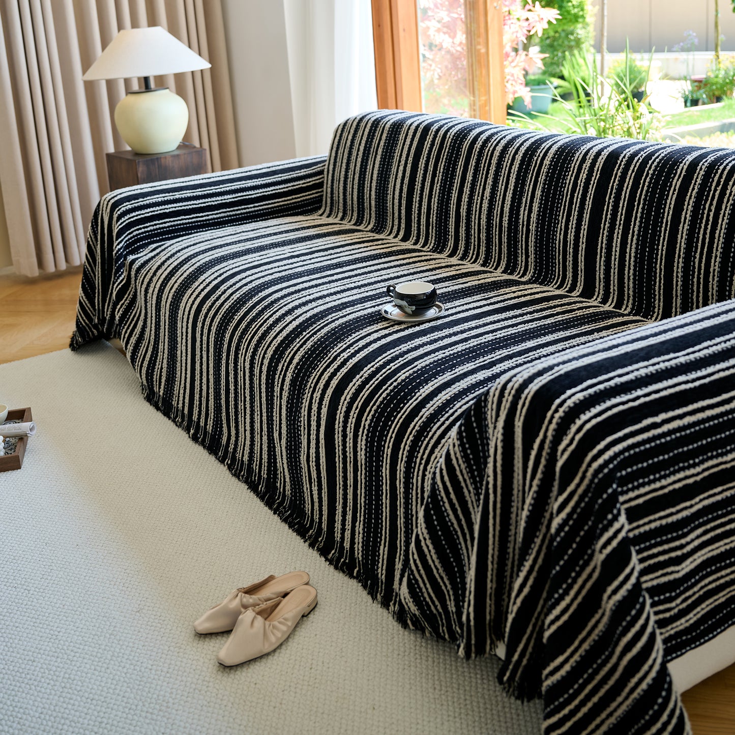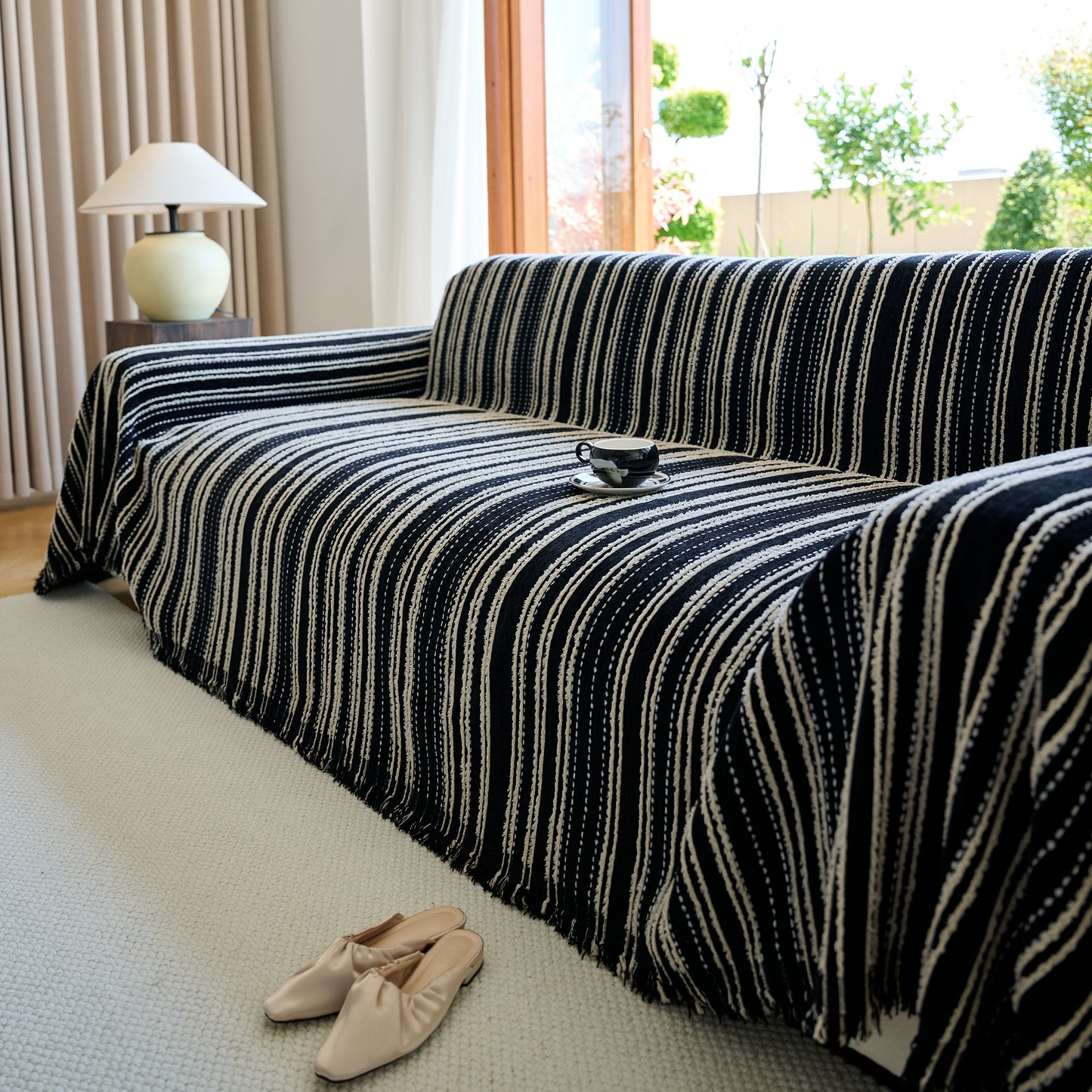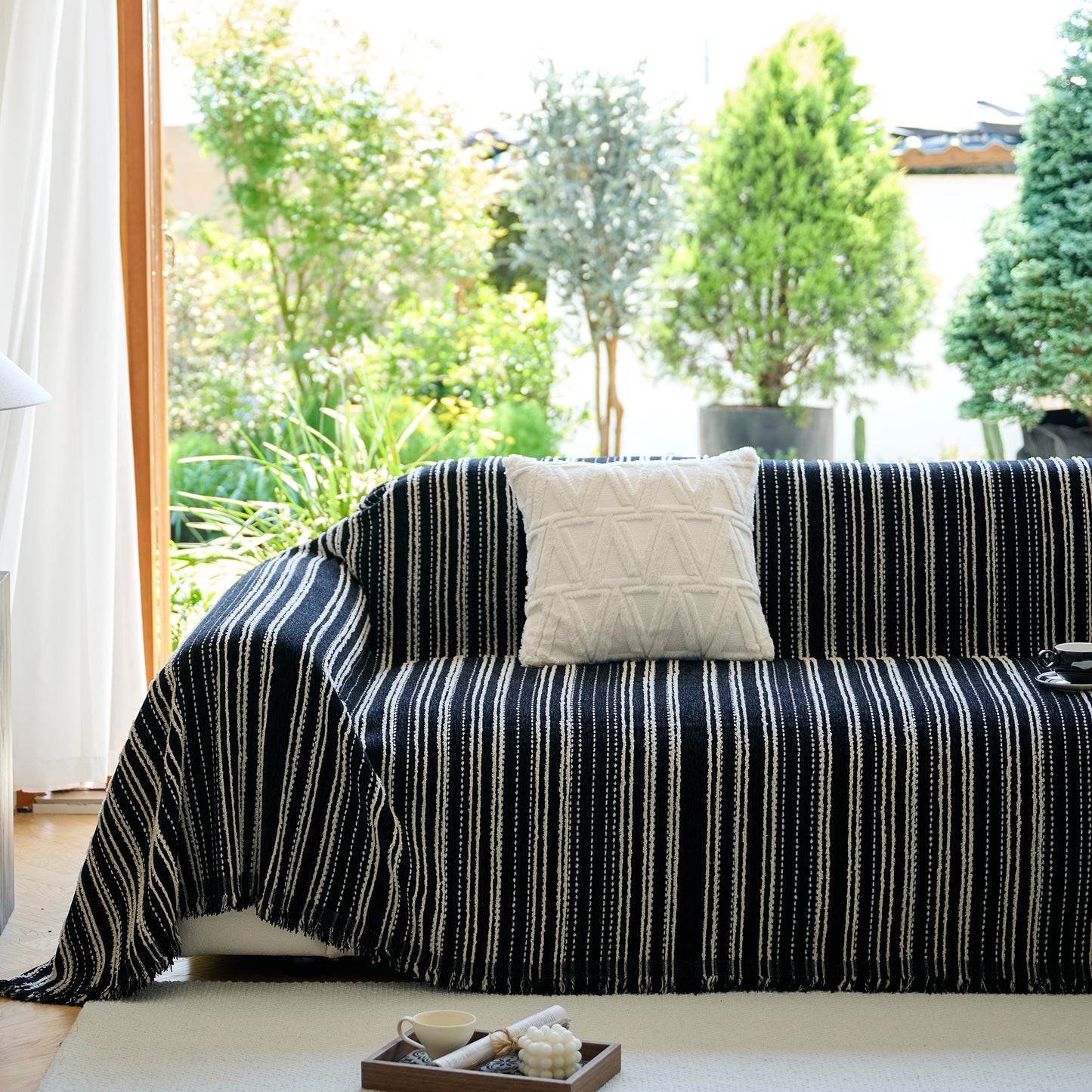 Enhance your home with our Vintage-Inspired Striped Blankets for Couch Covers, crafted from luxurious chenille. This timeless sofa throw cover combines elegance and comfort, perfect for year-round use.