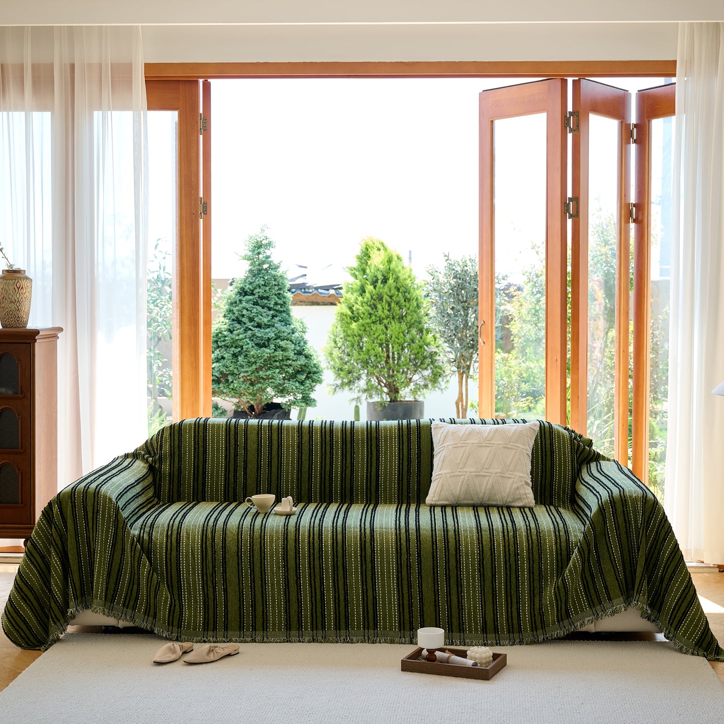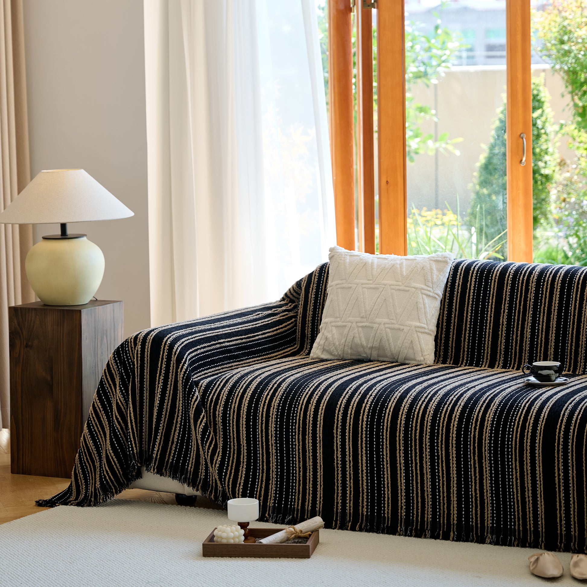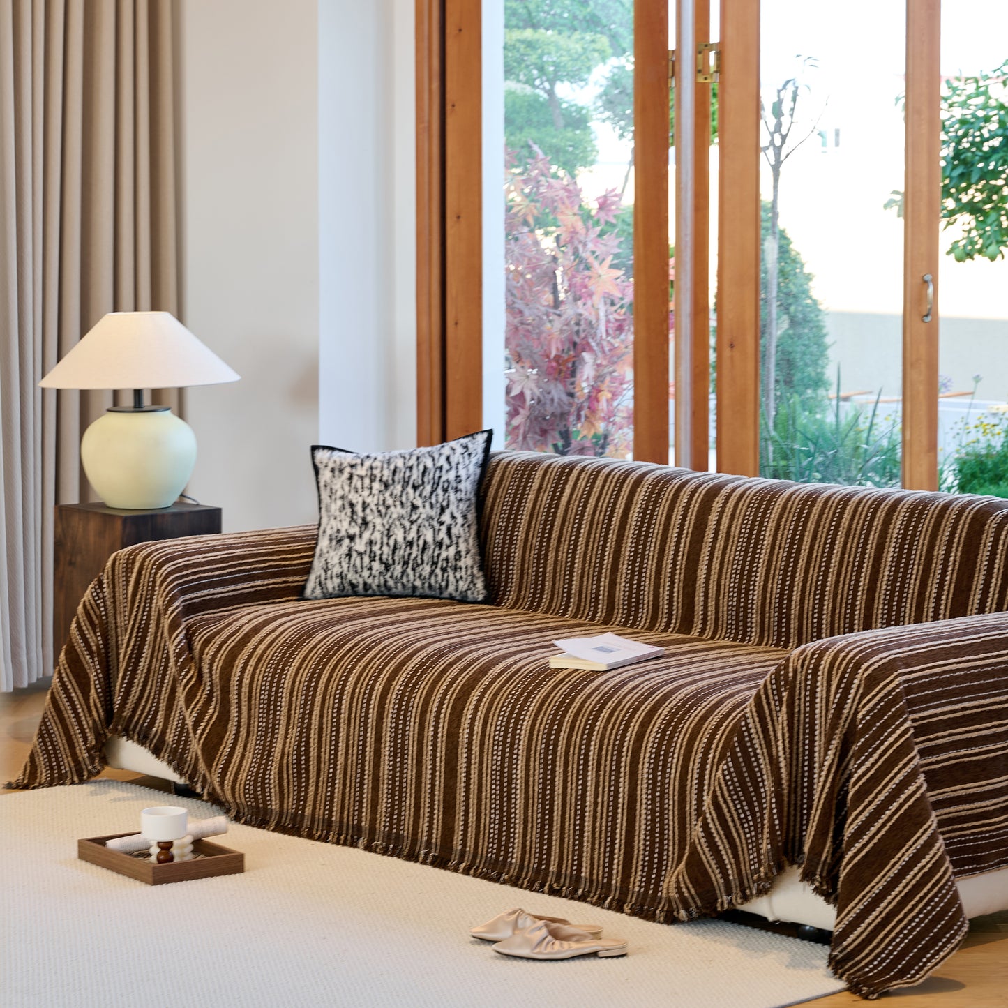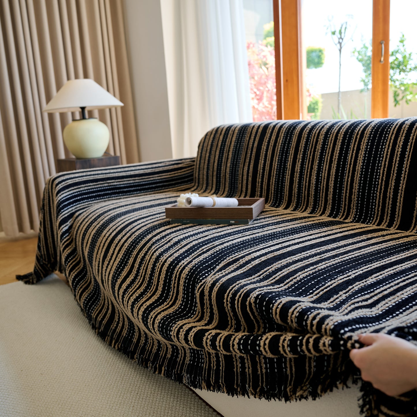 Enhance your home with our Vintage-Inspired Striped Blankets for Couch Covers, crafted from luxurious chenille. This timeless sofa throw cover combines elegance and comfort, perfect for year-round use.