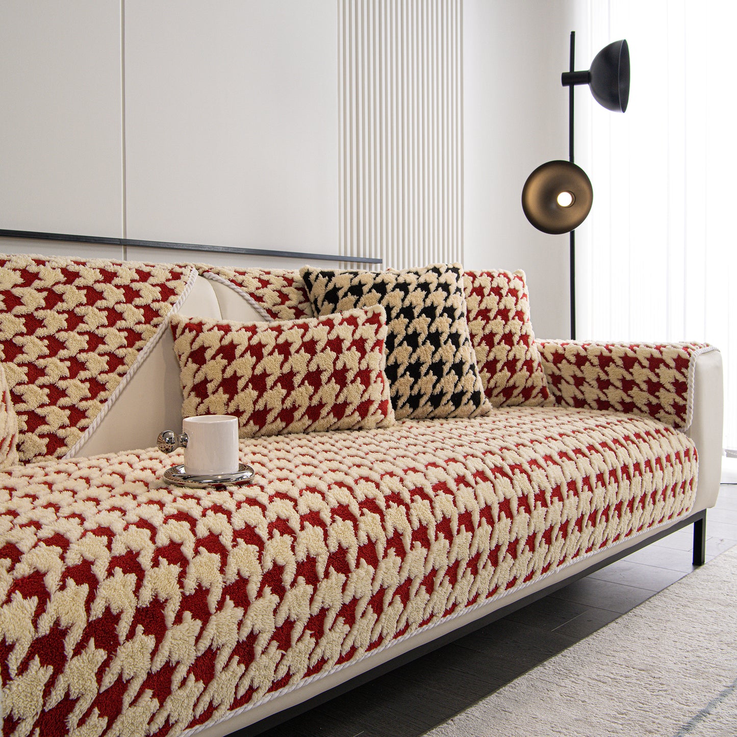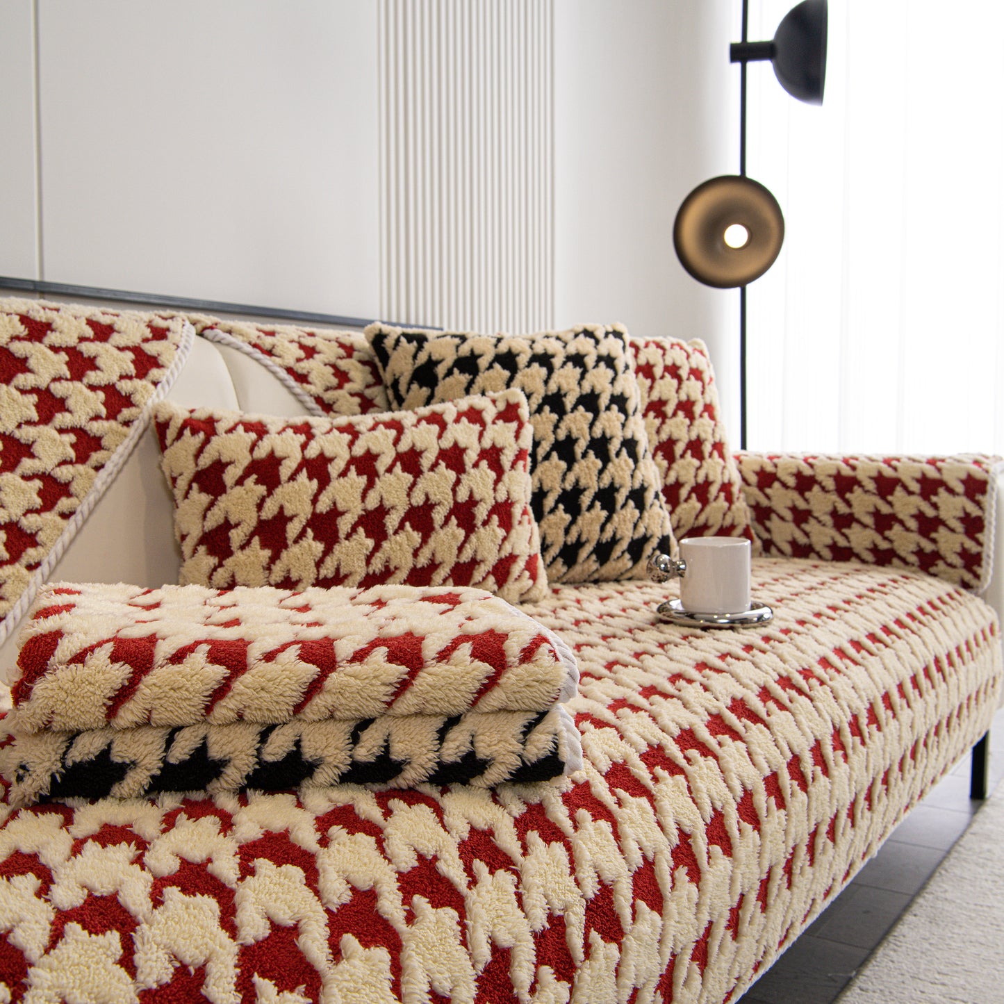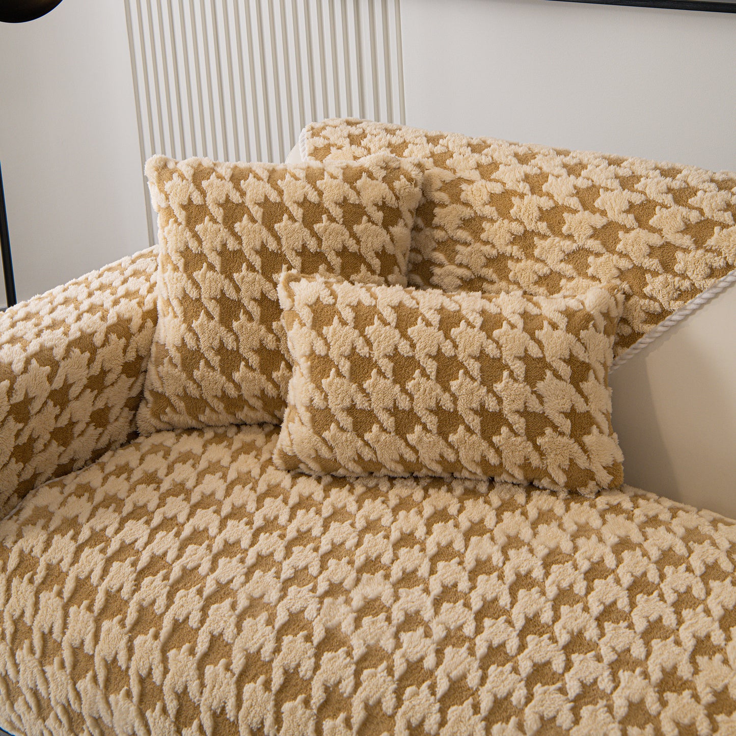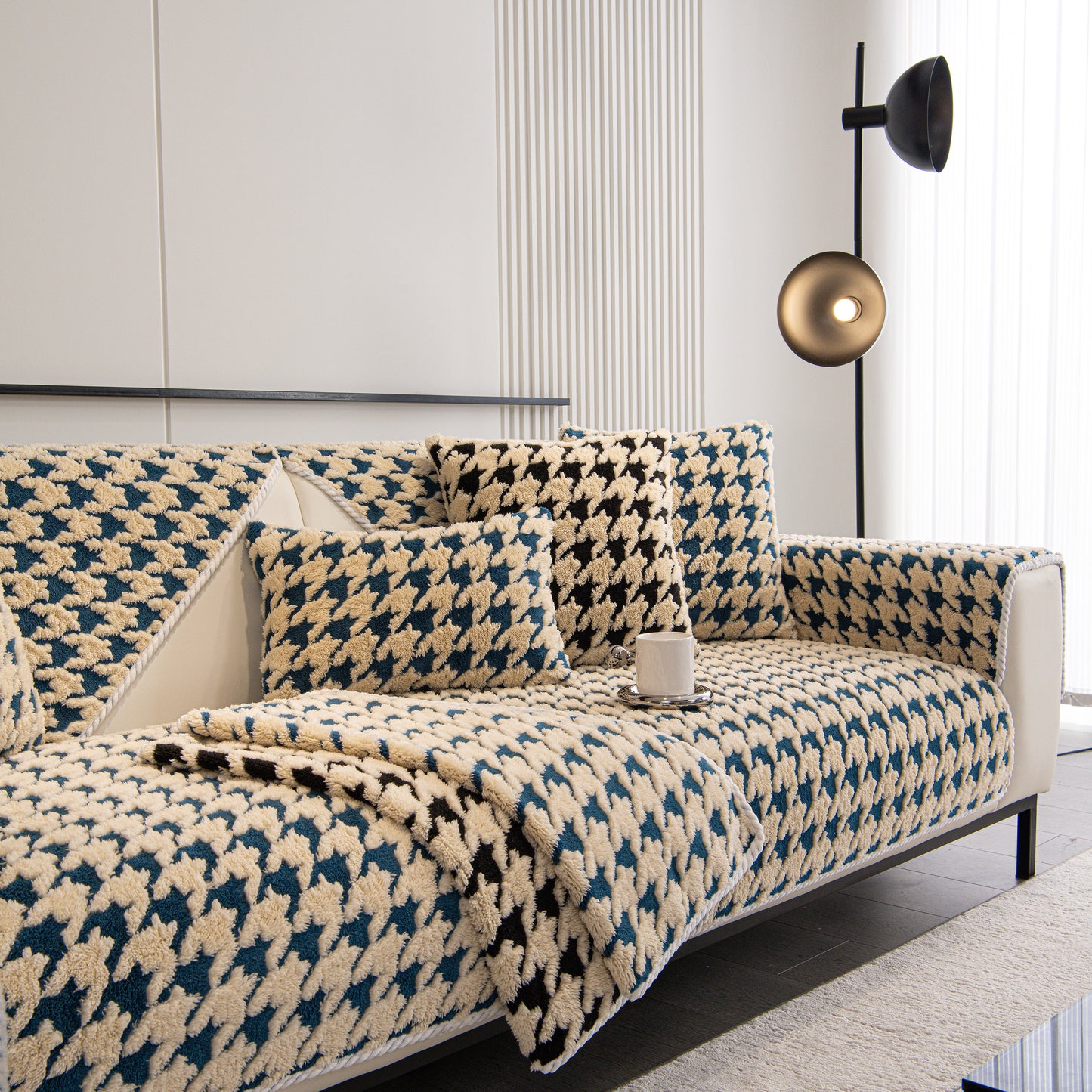 Upgrade your winter comfort with the Winter Thickened Sherpa Fleece Houndstooth Sofa Cushion. Non-slip design, soft plush, and classic houndstooth pattern offer warmth, style, and functionality for your couch. Perfect for cozying up during chilly days!