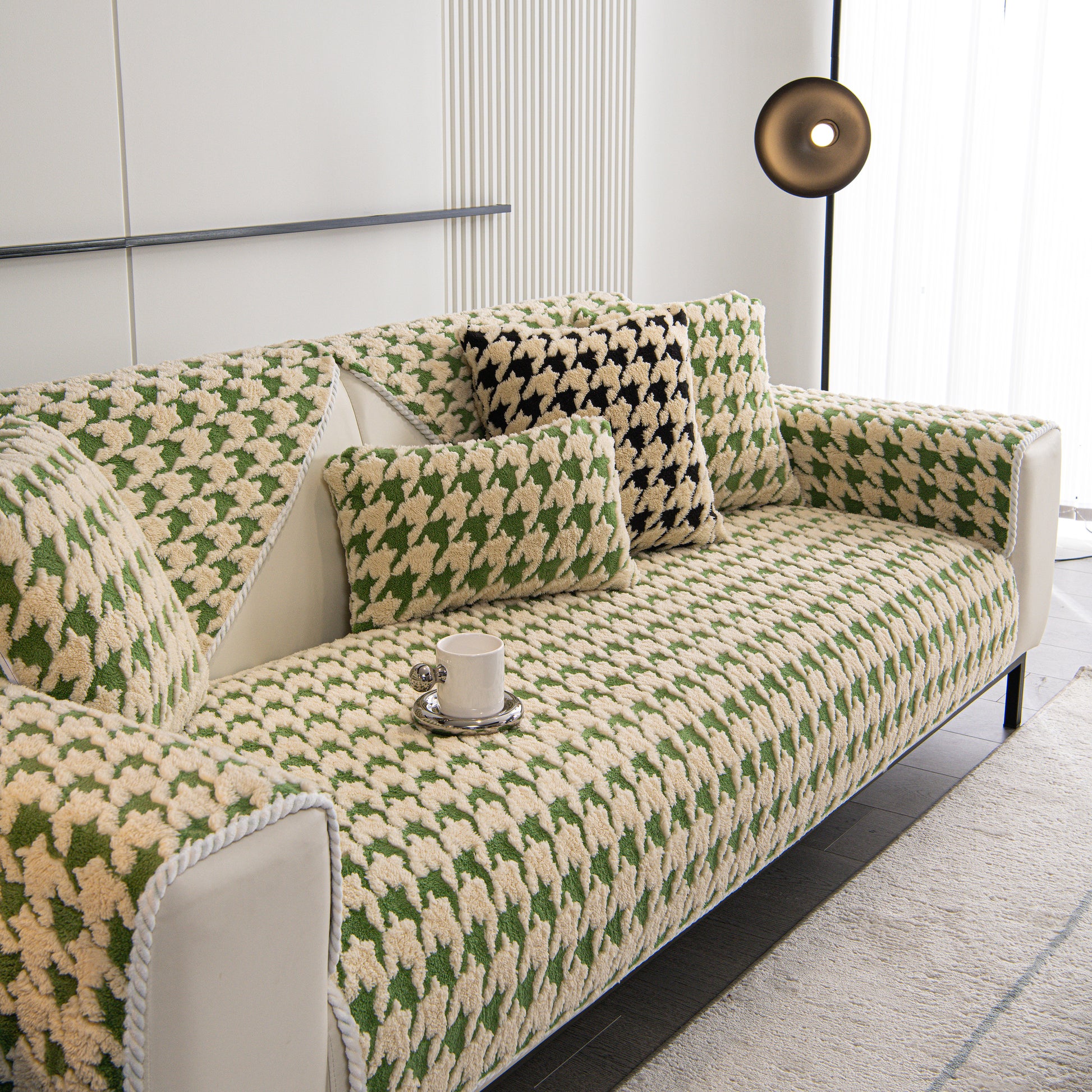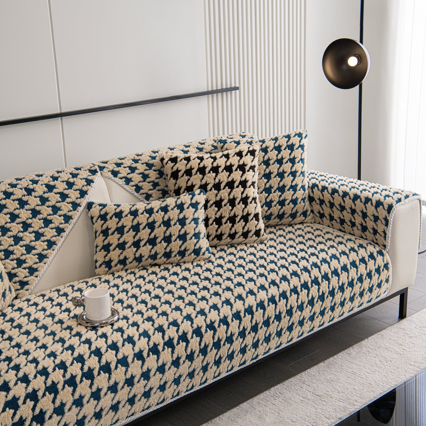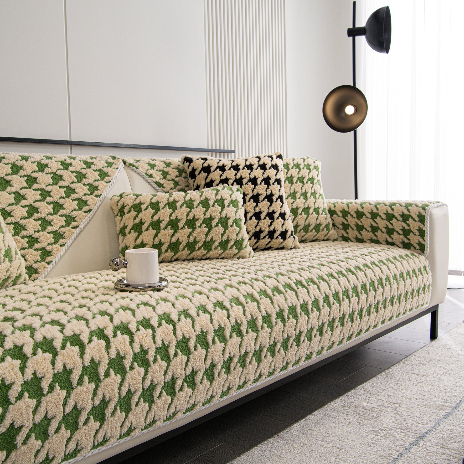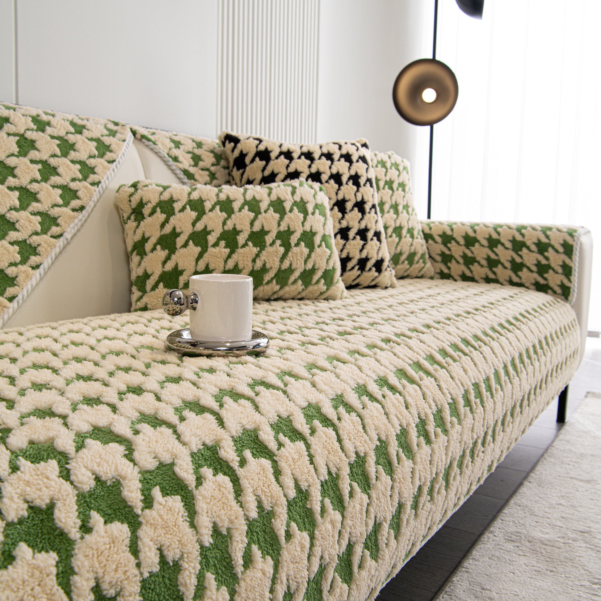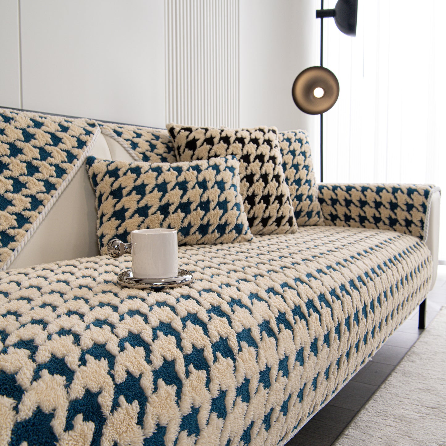 Upgrade your winter comfort with the Winter Thickened Sherpa Fleece Houndstooth Sofa Cushion. Non-slip design, soft plush, and classic houndstooth pattern offer warmth, style, and functionality for your couch. Perfect for cozying up during chilly days!