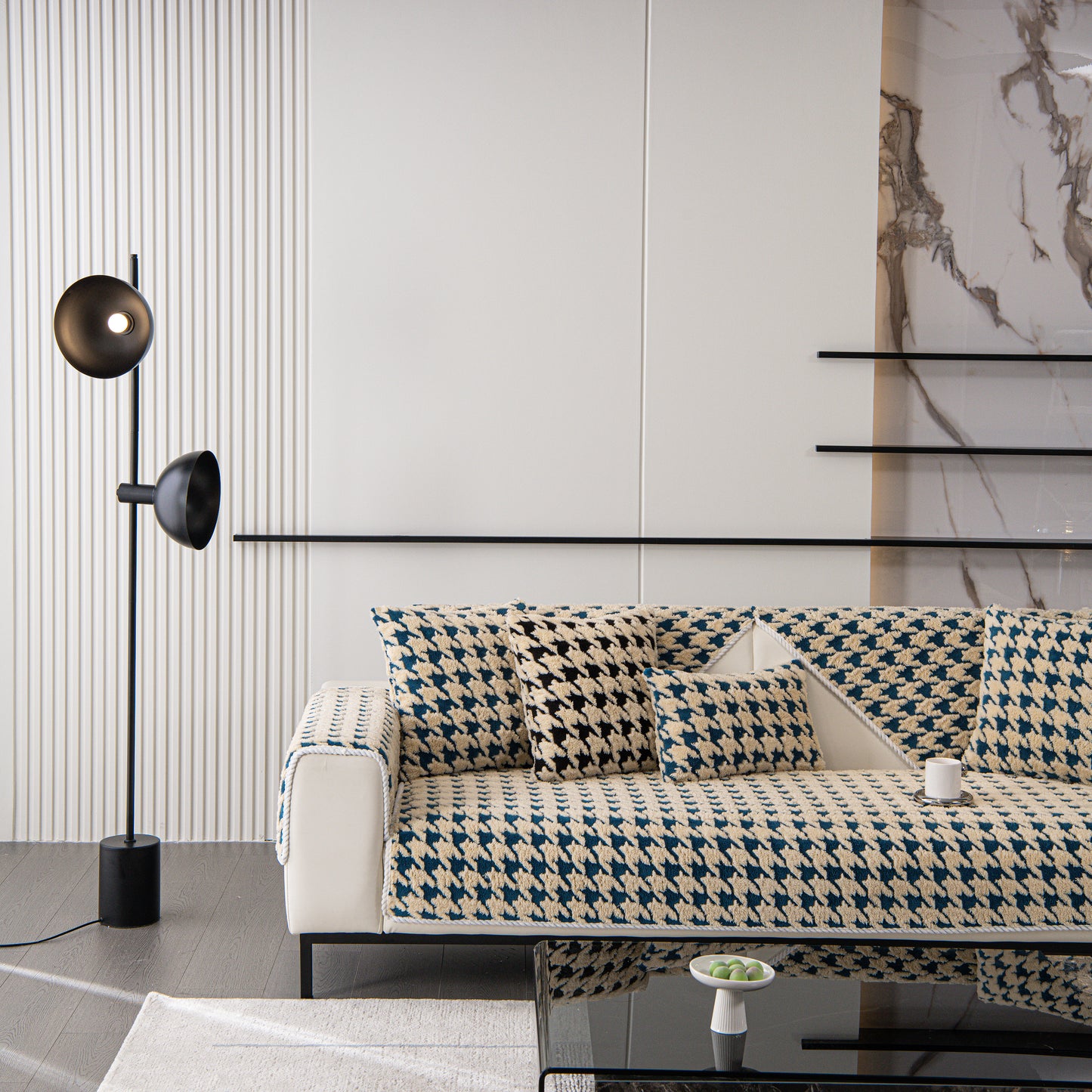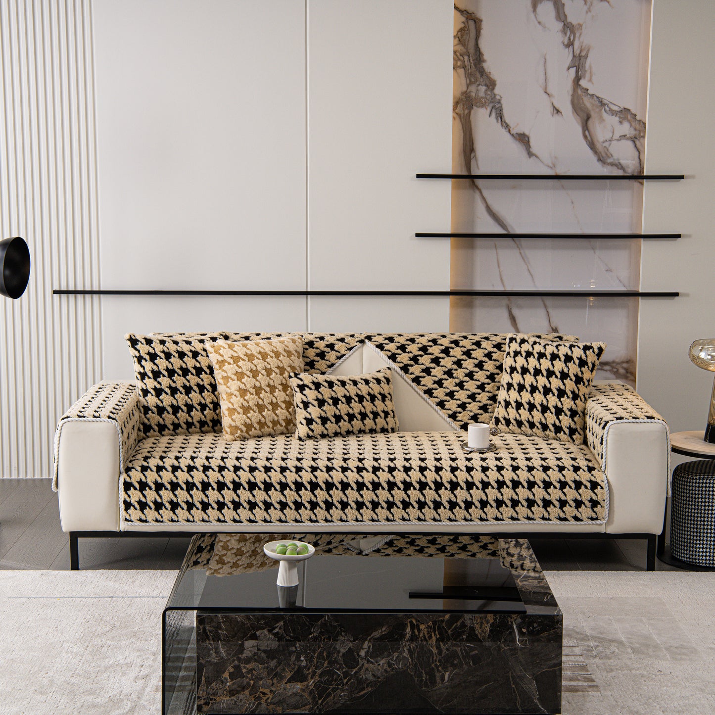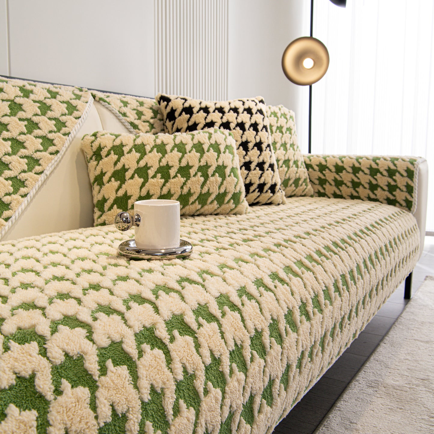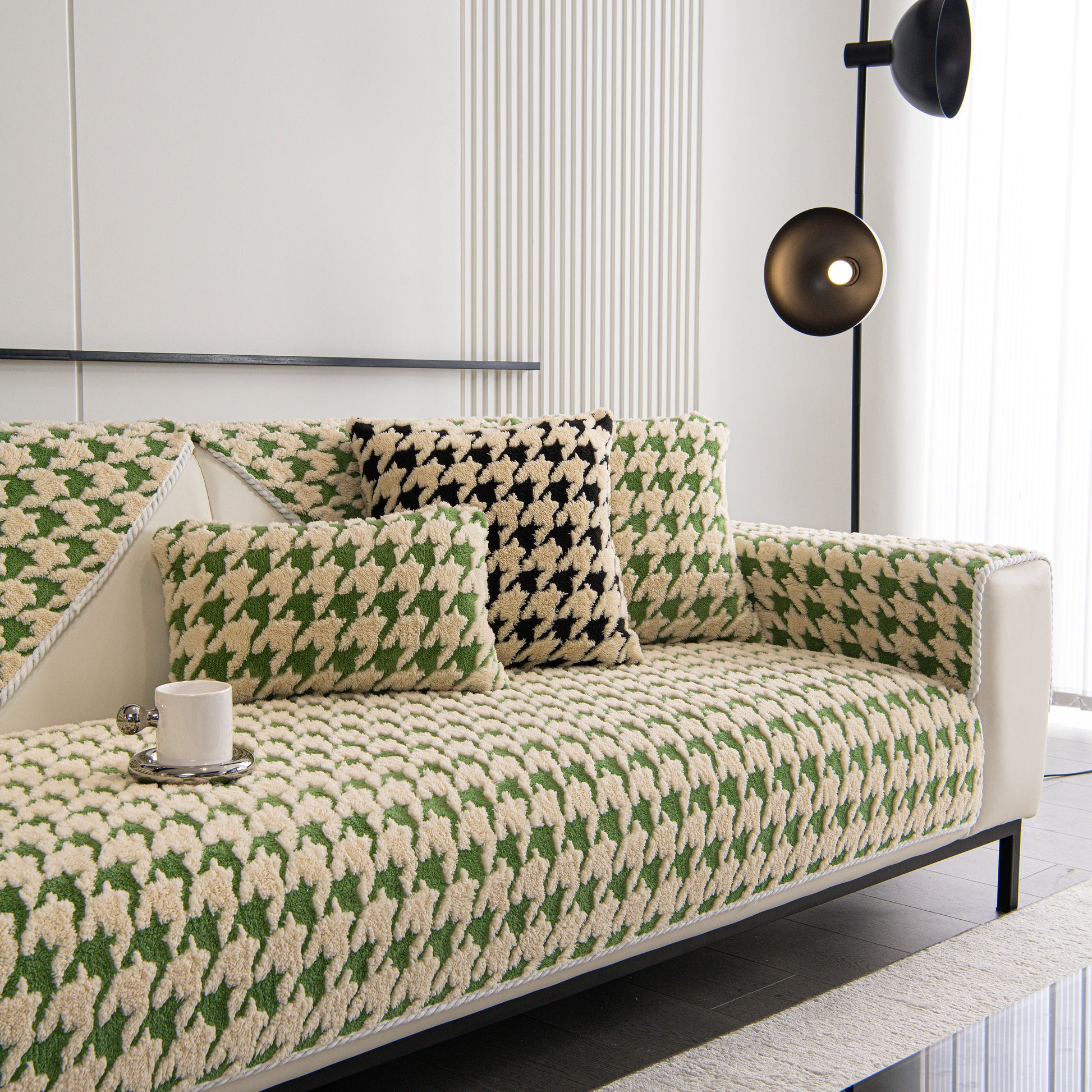 Upgrade your winter comfort with the Winter Thickened Sherpa Fleece Houndstooth Sofa Cushion. Non-slip design, soft plush, and classic houndstooth pattern offer warmth, style, and functionality for your couch. Perfect for cozying up during chilly days!