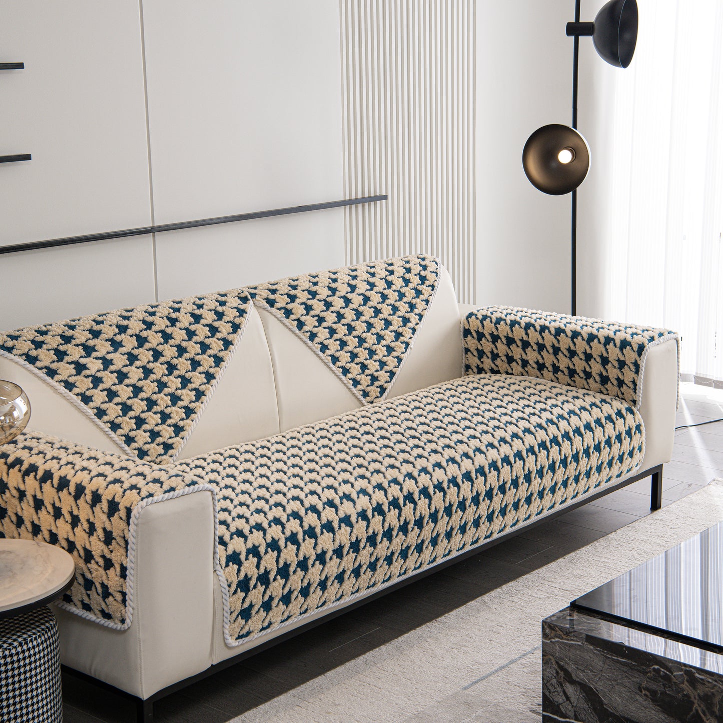 Winter Thickened Sherpa Fleece Houndstooth Sofa Cushion, Non-slip Sofa Cover with Plush