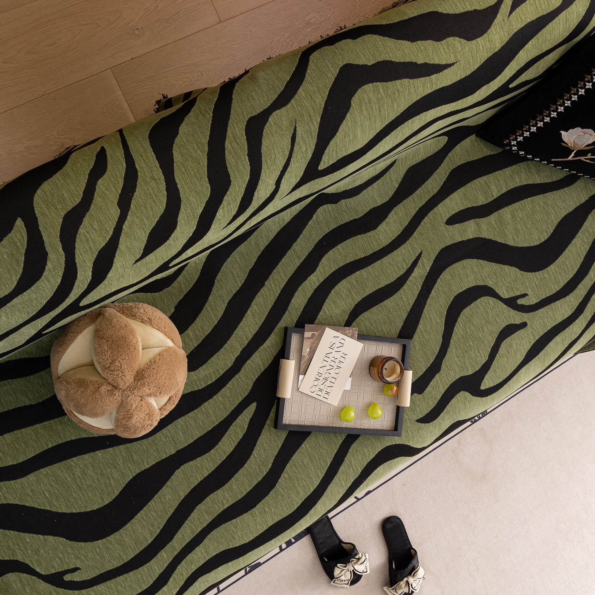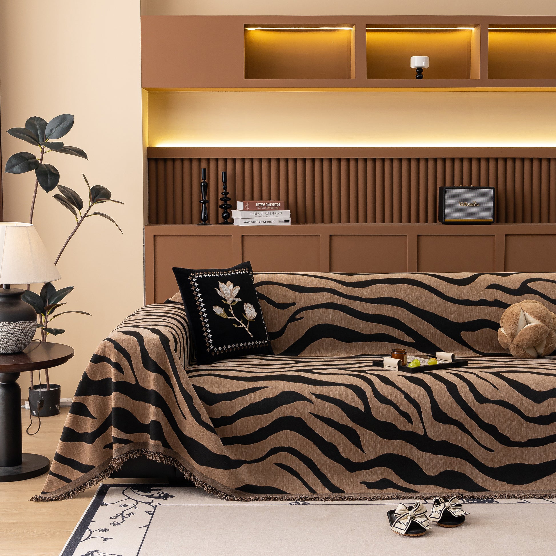 Zebra Striped Chenille Throw Sofa Cover Full-Cover Decorative Furniture Slipcover